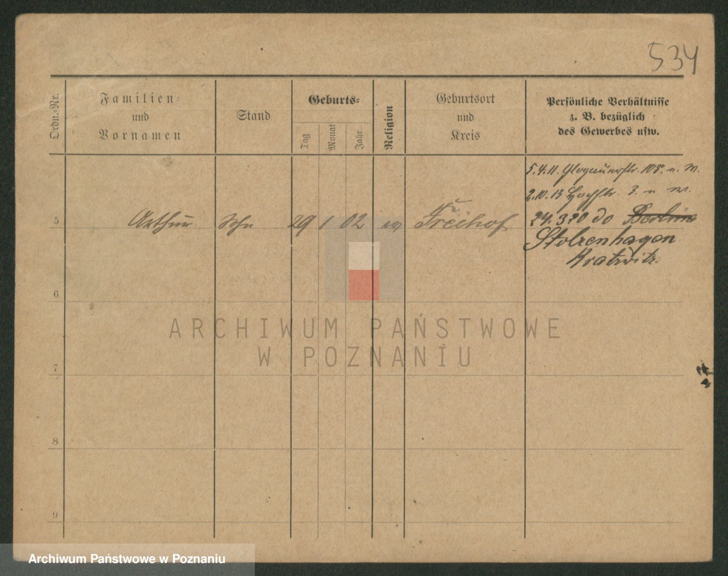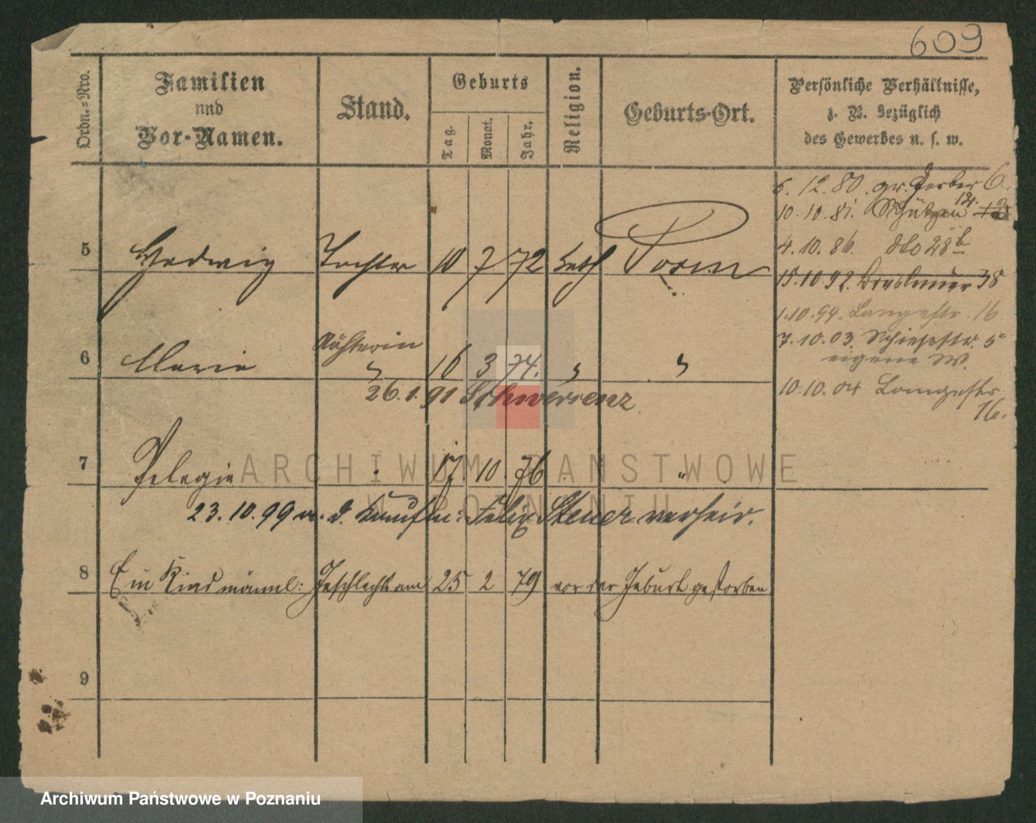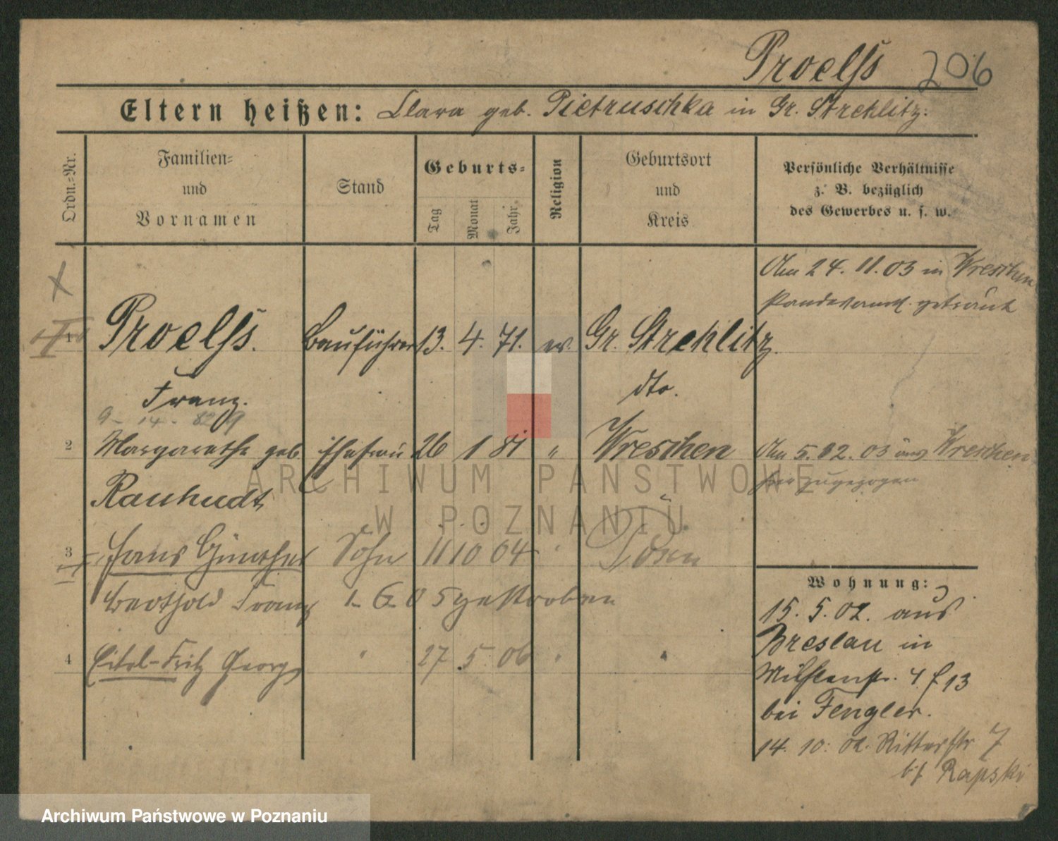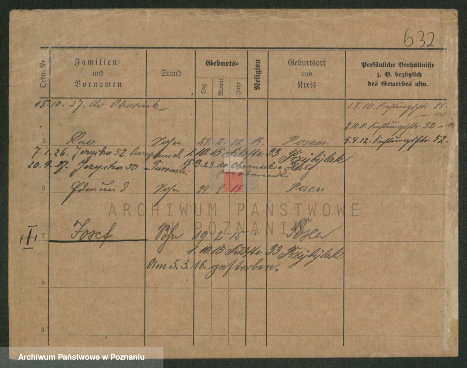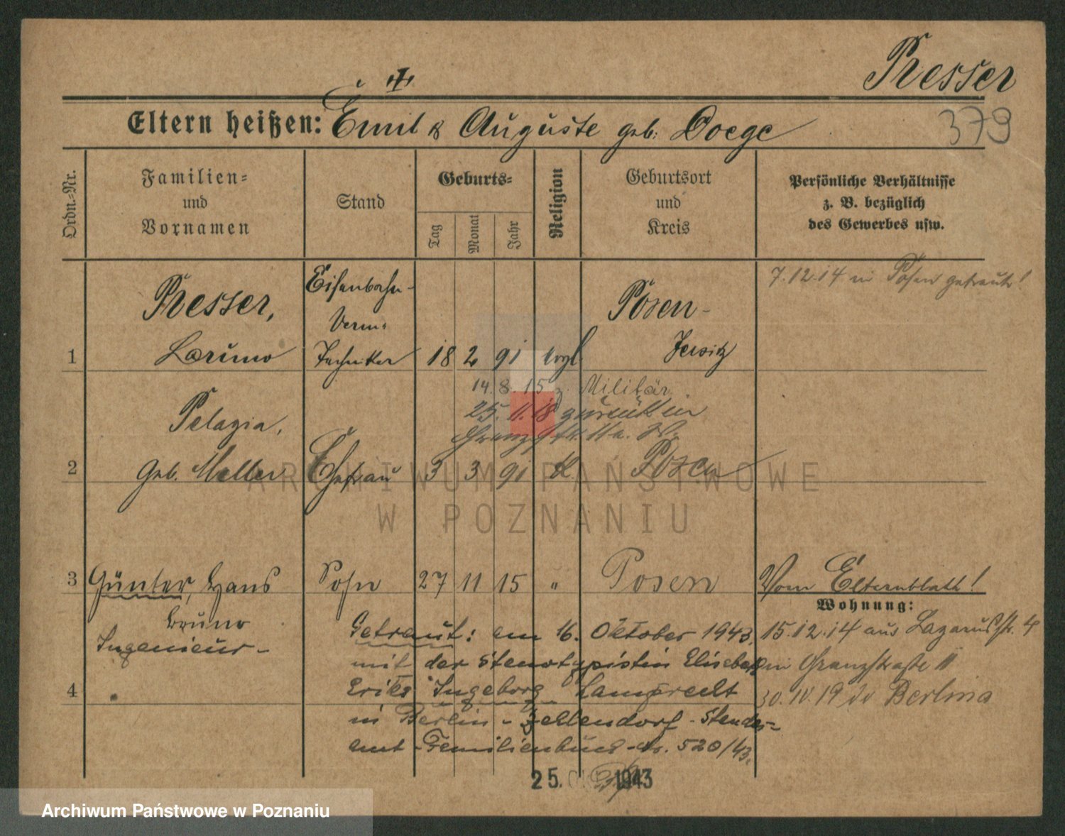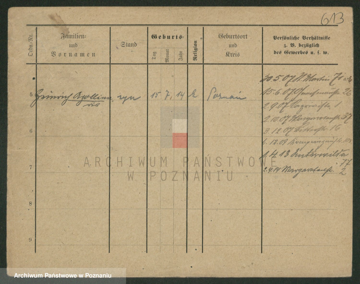 Podgląd karty osobowej dostępny jest po kliknięciu na nazwisko lub ikonkę karty. Można dokonywać powiększenia (ikony na górze) lub przechodzić między kolejnymi skanami (strzałki po bokach).