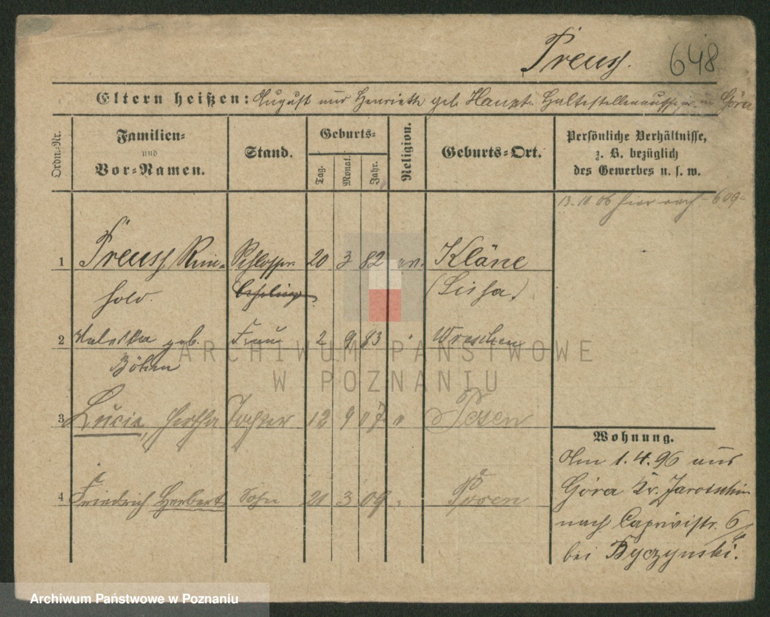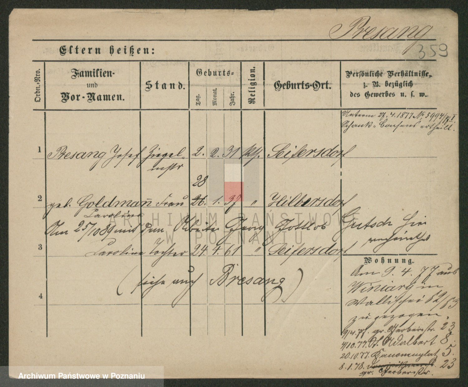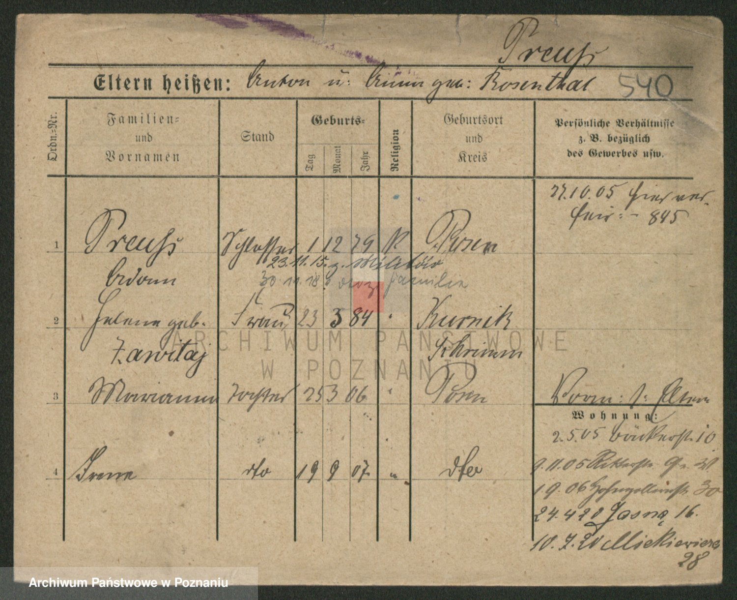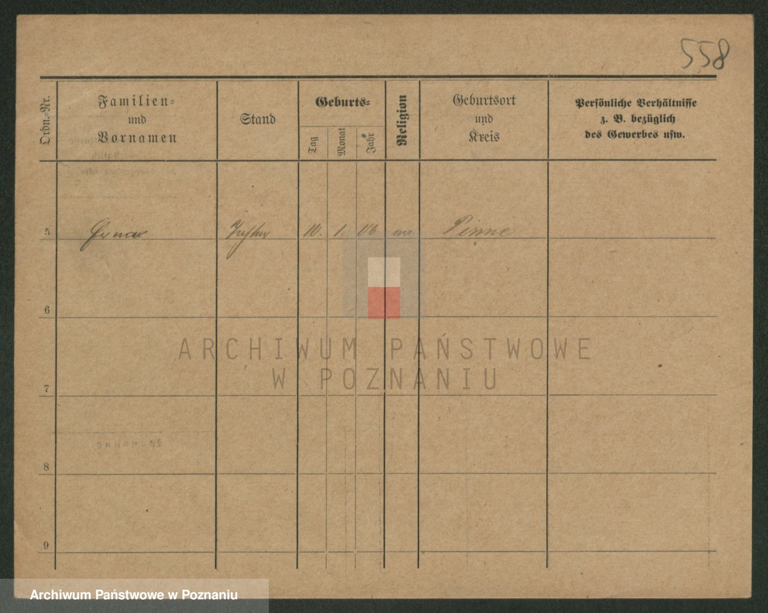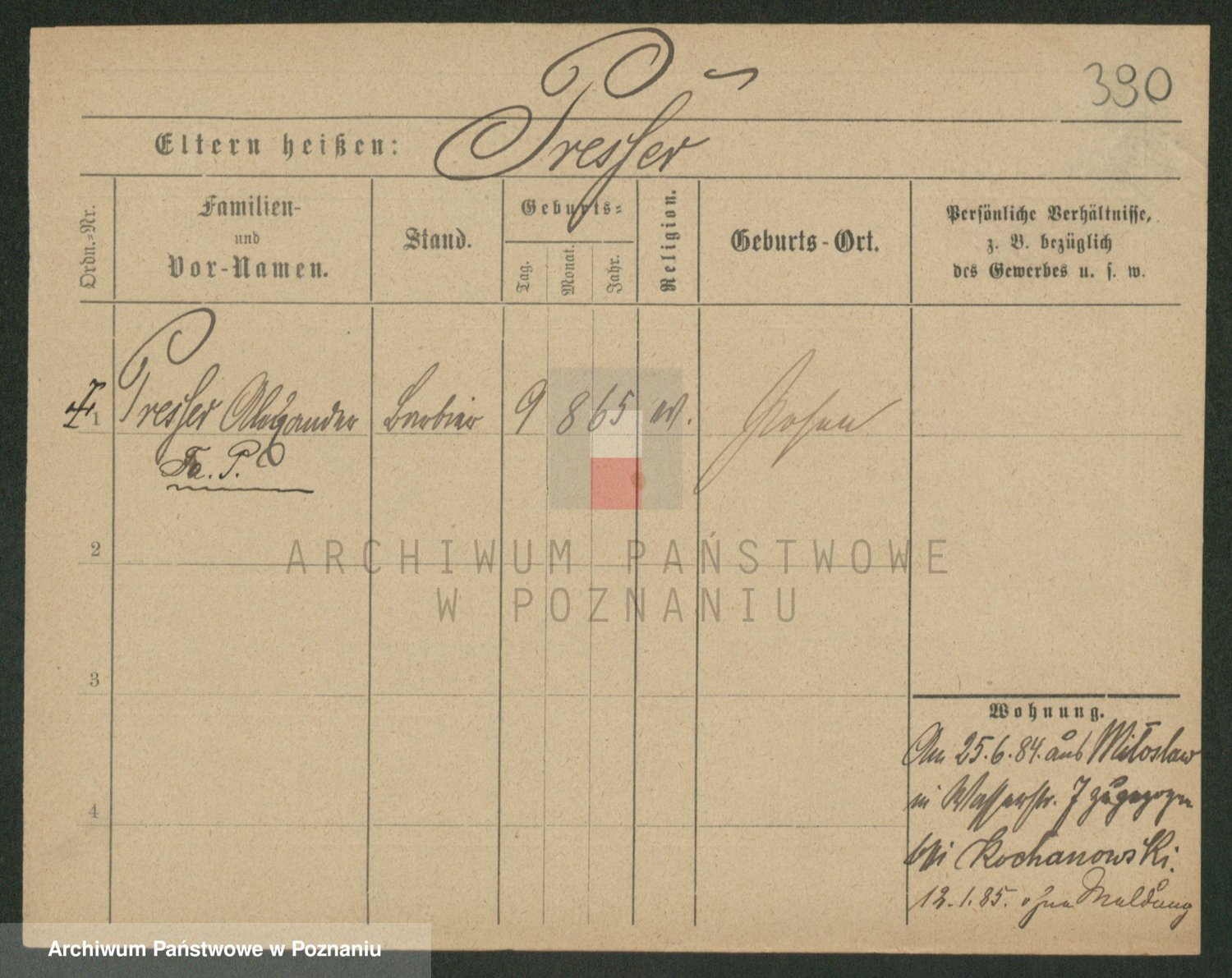 Podgląd karty osobowej dostępny jest po kliknięciu na nazwisko lub ikonkę karty. Można dokonywać powiększenia (ikony na górze) lub przechodzić między kolejnymi skanami (strzałki po bokach).