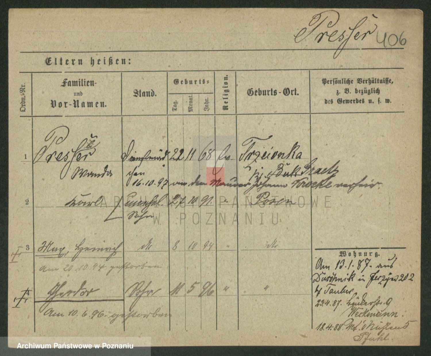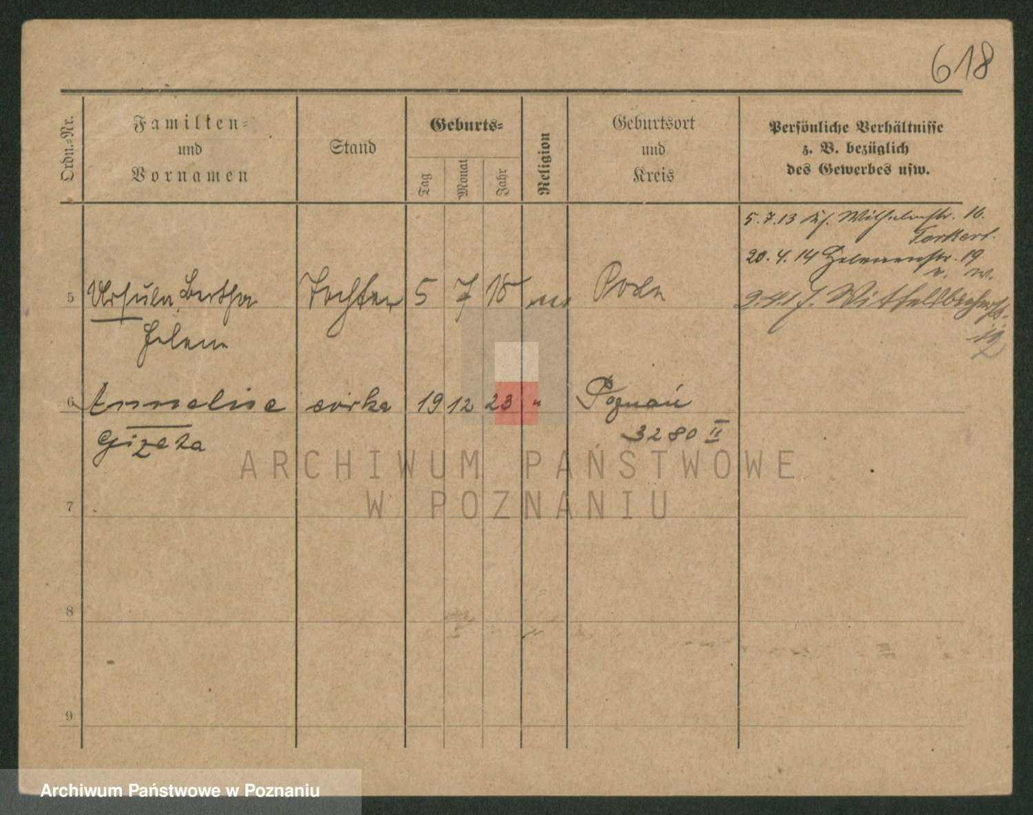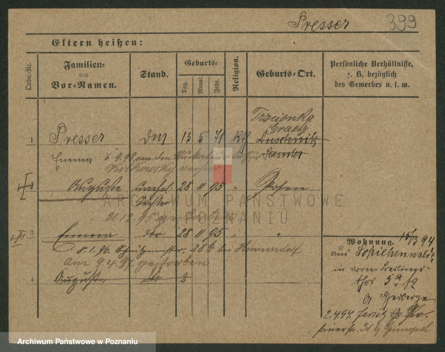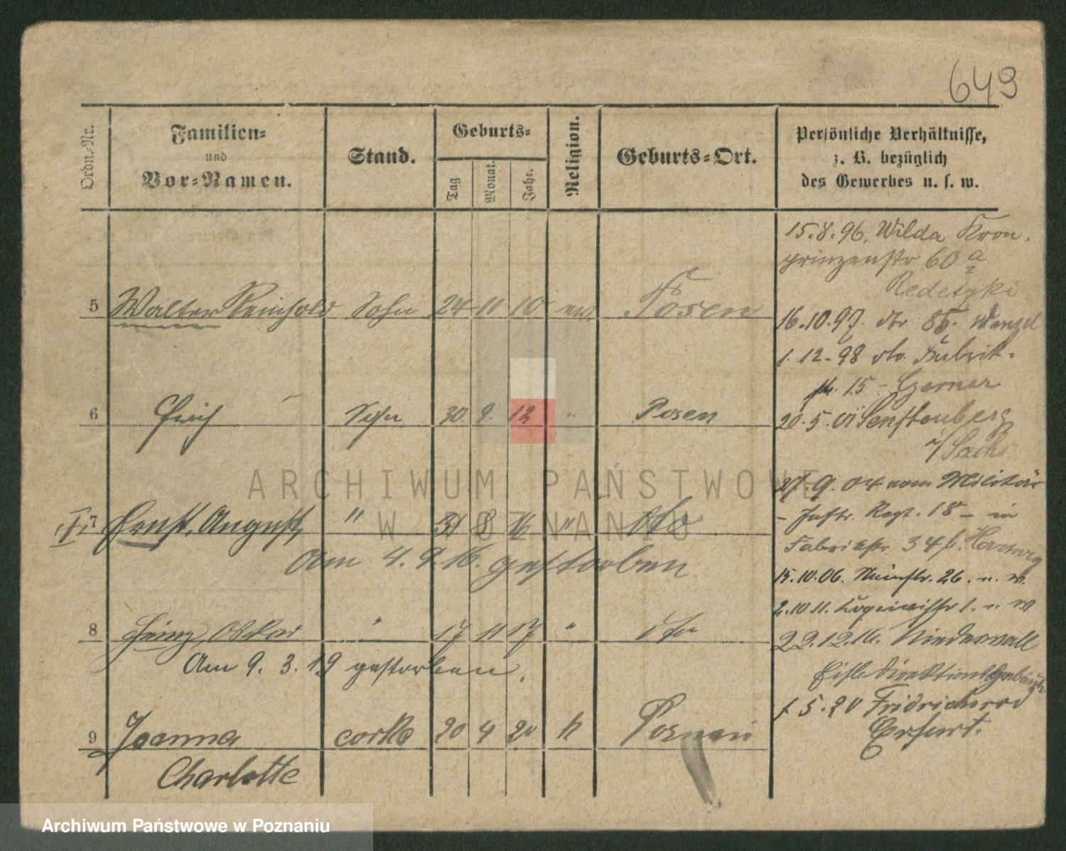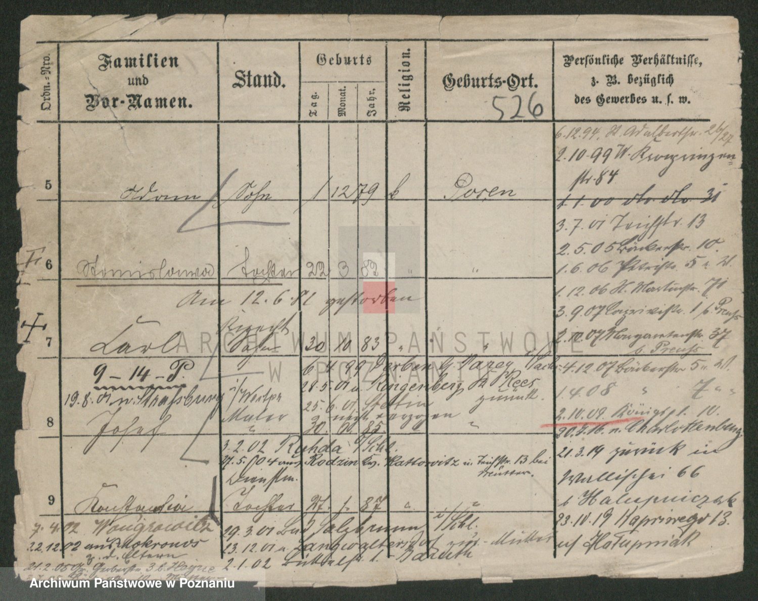 Podgląd karty osobowej dostępny jest po kliknięciu na nazwisko lub ikonkę karty. Można dokonywać powiększenia (ikony na górze) lub przechodzić między kolejnymi skanami (strzałki po bokach).