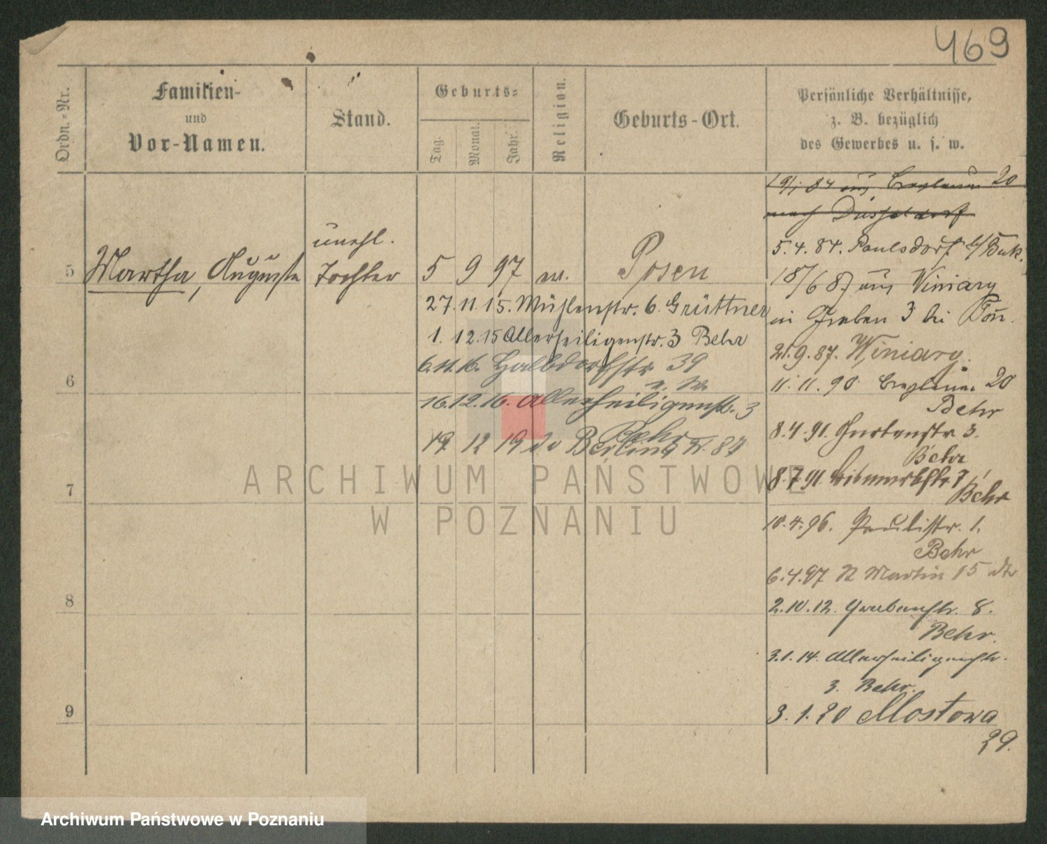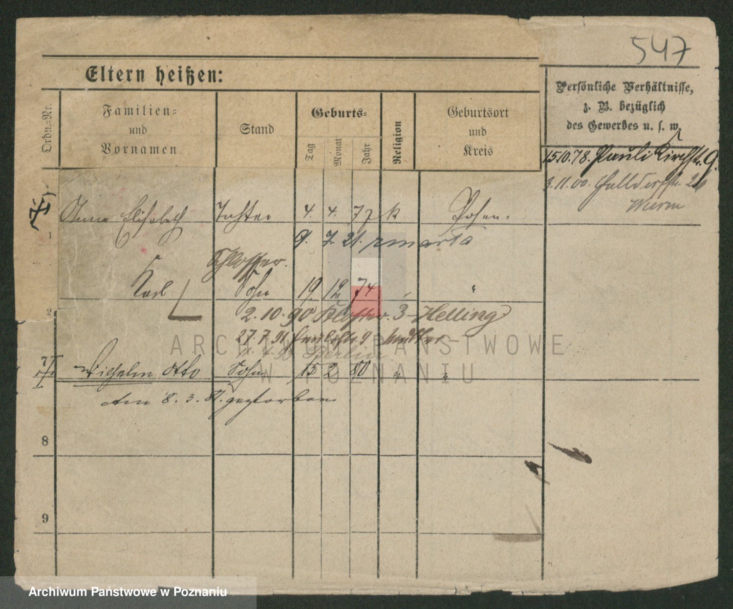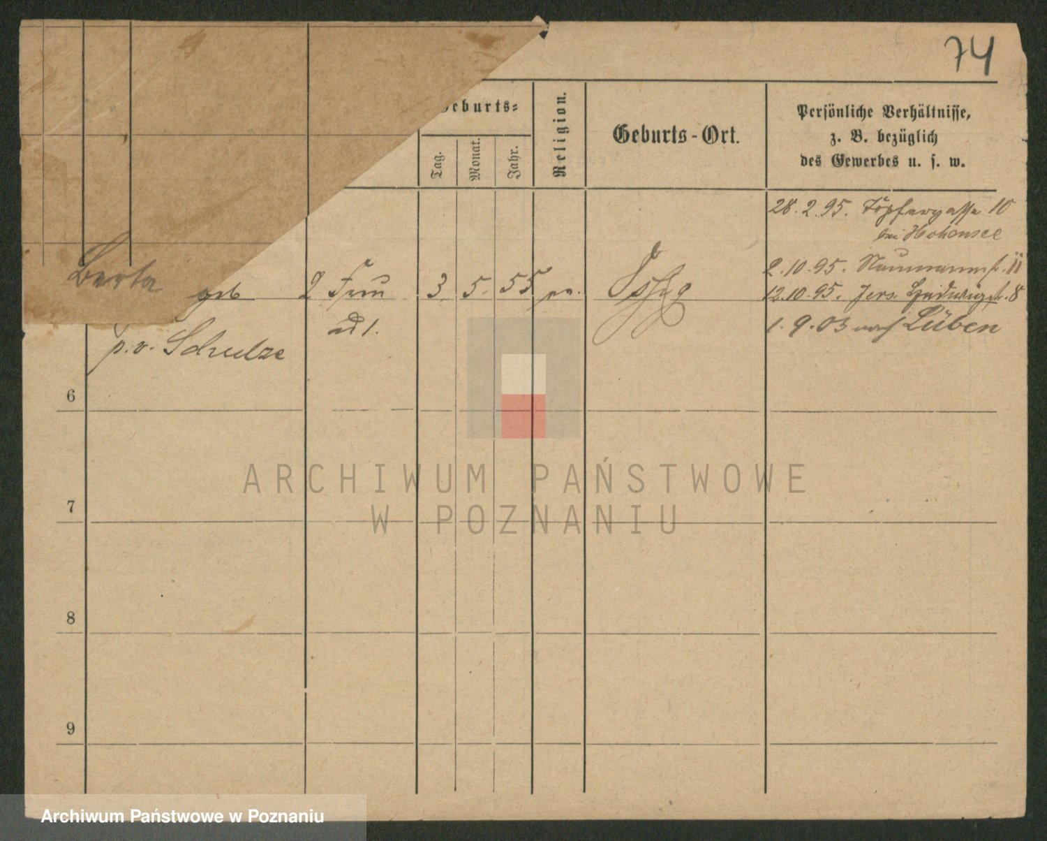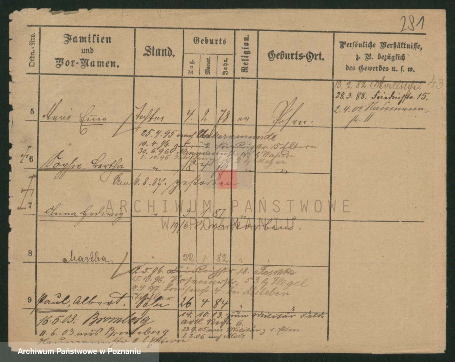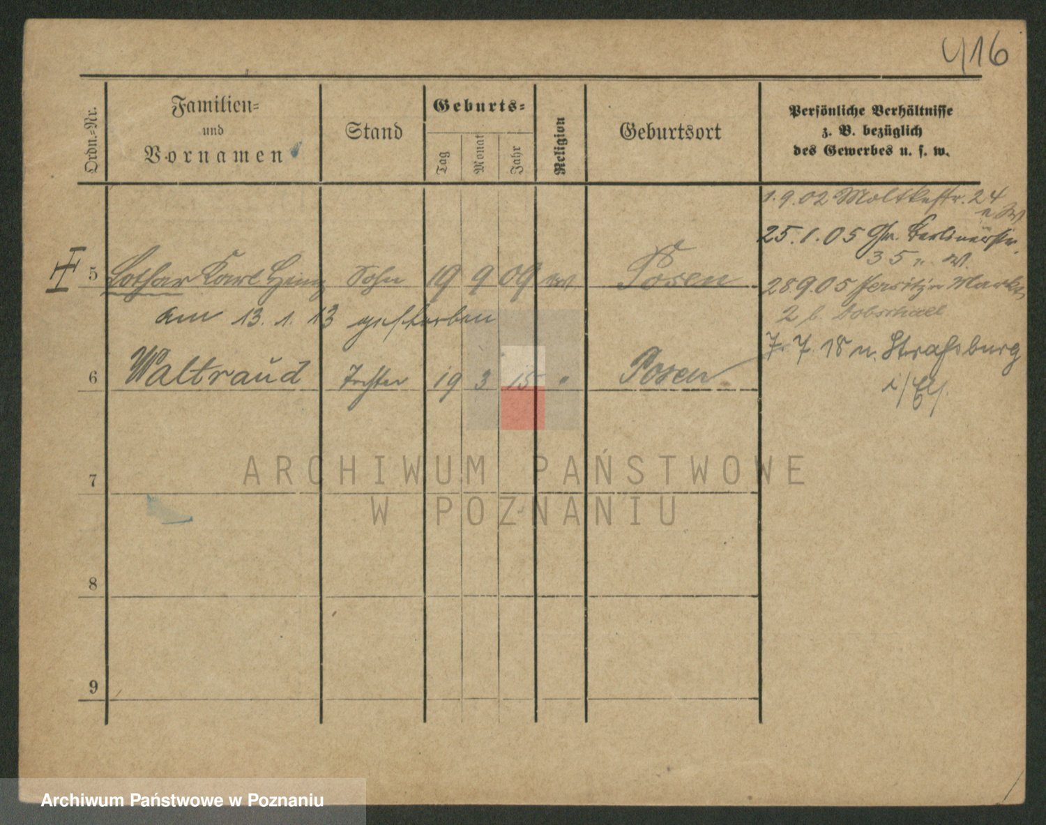 Podgląd karty osobowej dostępny jest po kliknięciu na nazwisko lub ikonkę karty. Można dokonywać powiększenia (ikony na górze) lub przechodzić między kolejnymi skanami (strzałki po bokach).