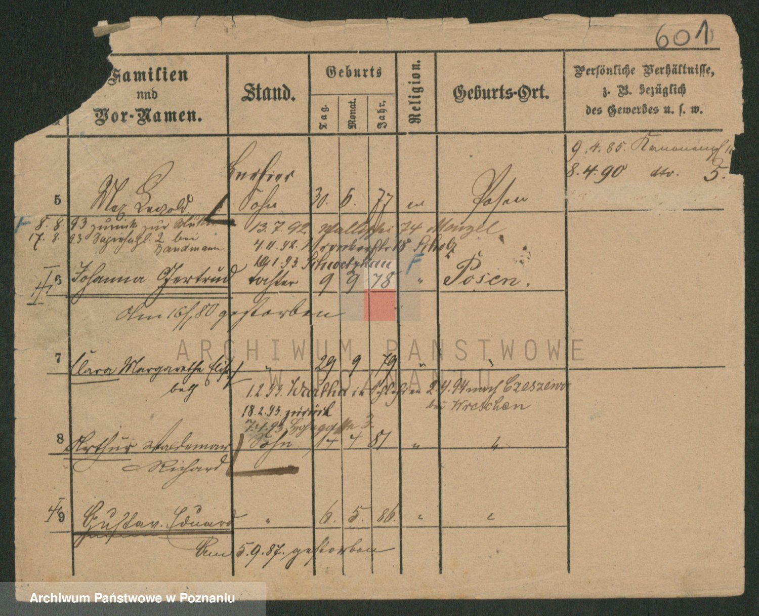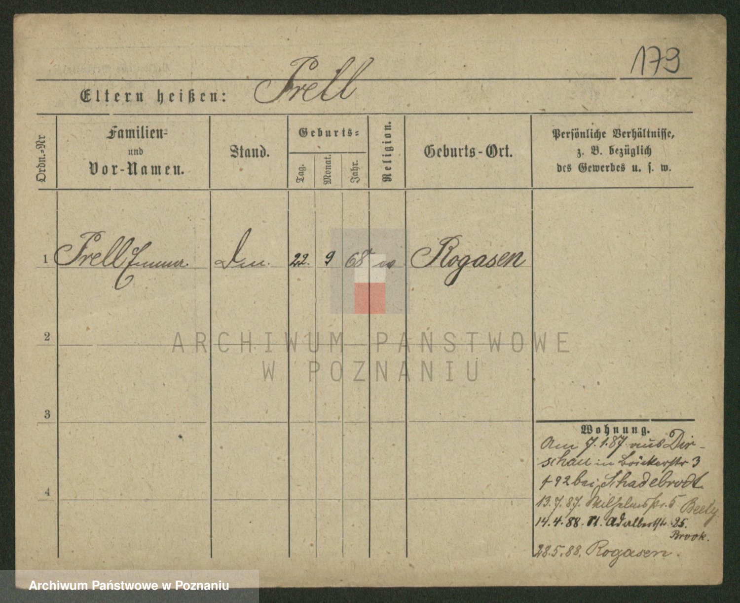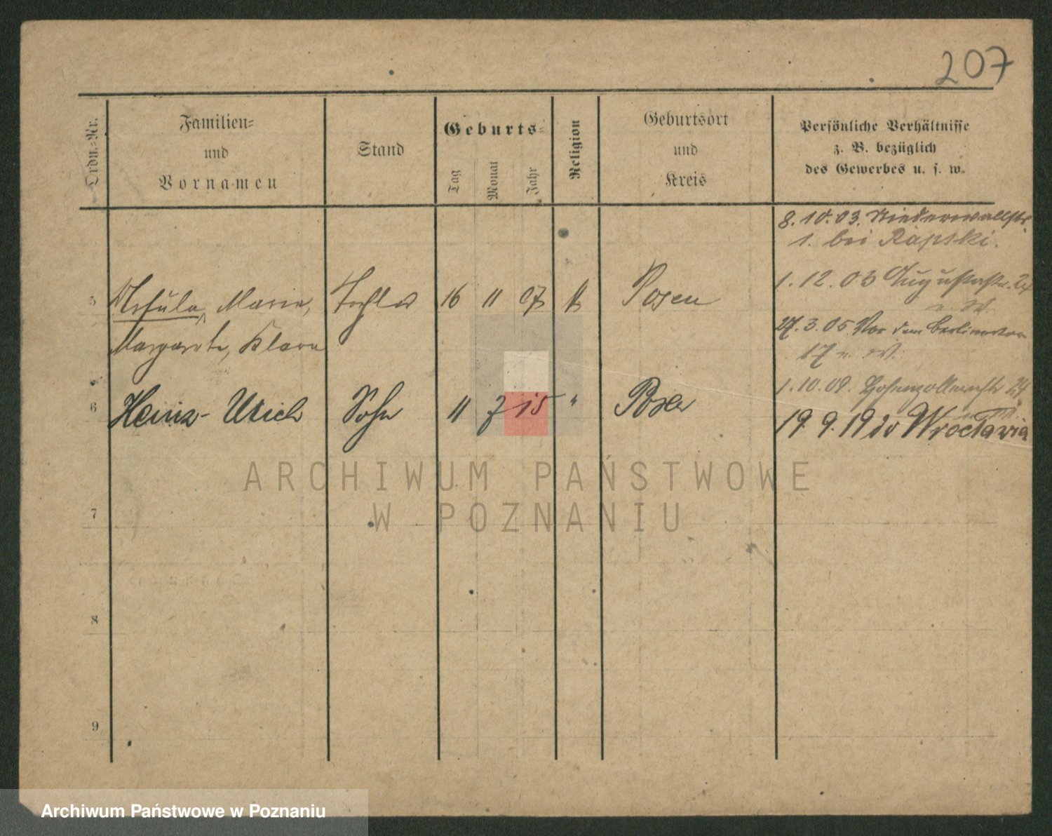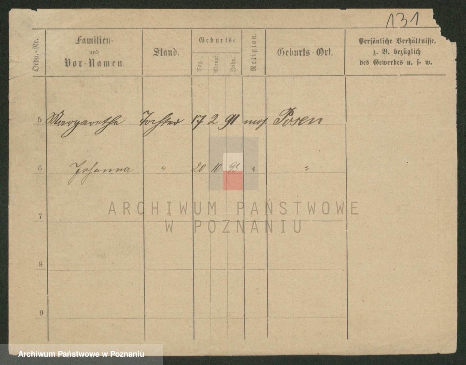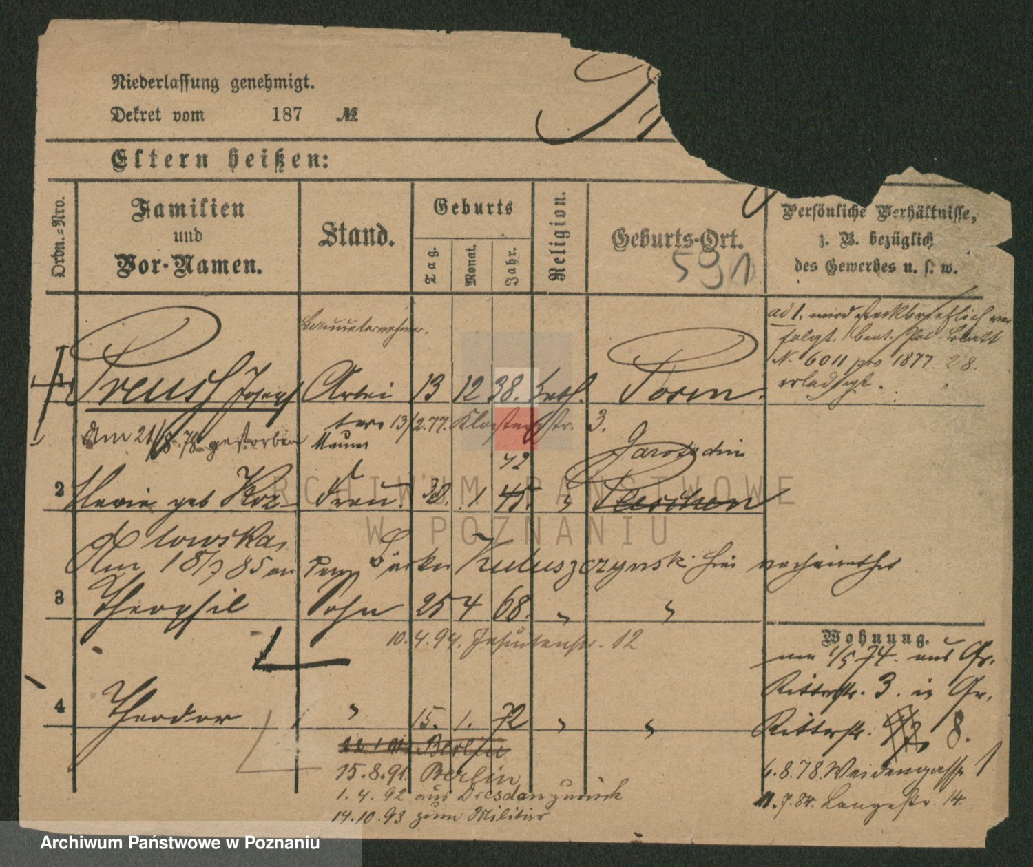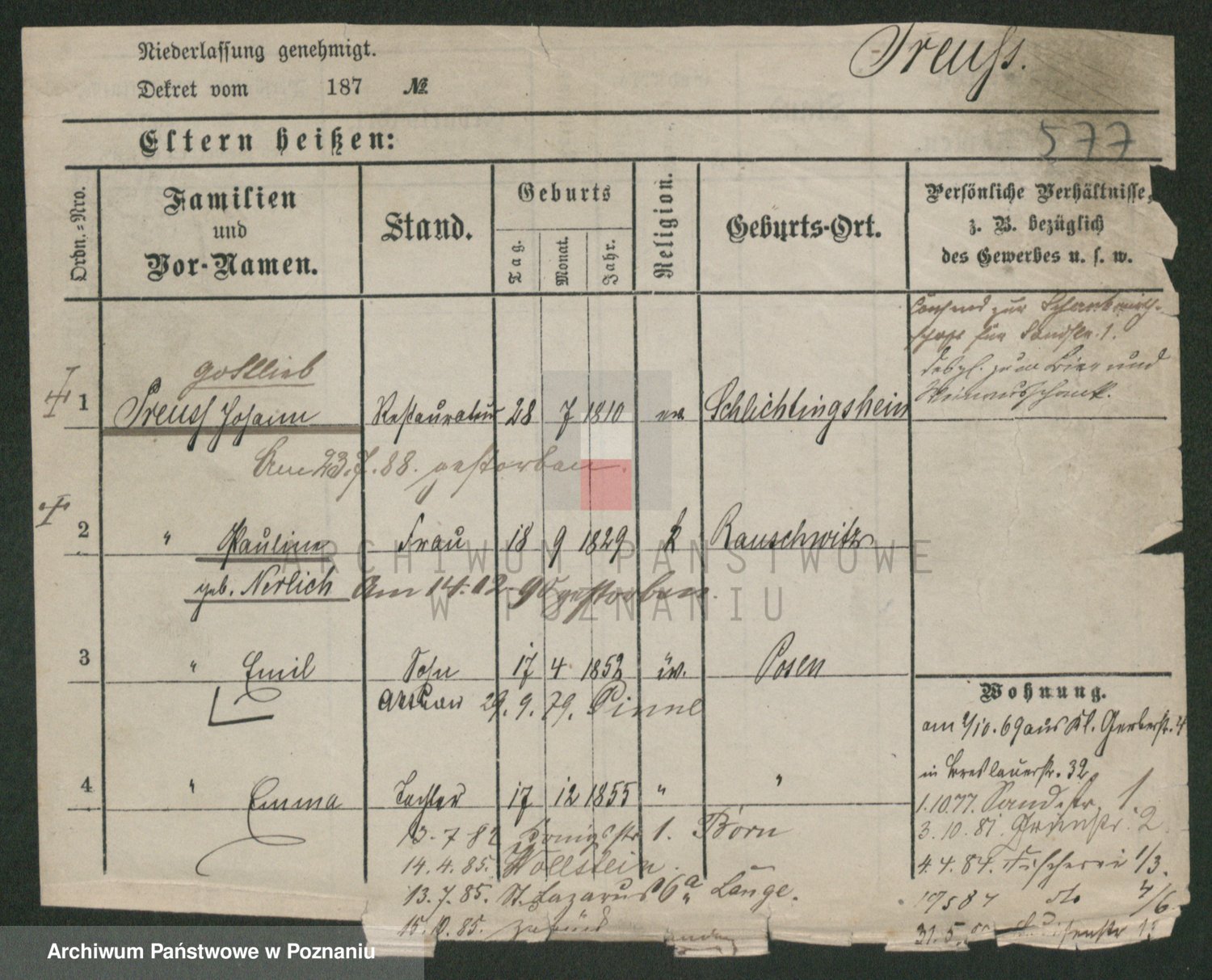 Podgląd karty osobowej dostępny jest po kliknięciu na nazwisko lub ikonkę karty. Można dokonywać powiększenia (ikony na górze) lub przechodzić między kolejnymi skanami (strzałki po bokach).