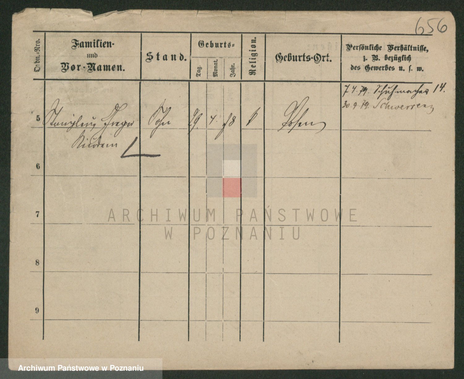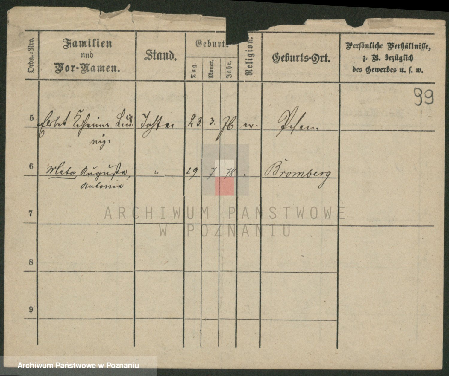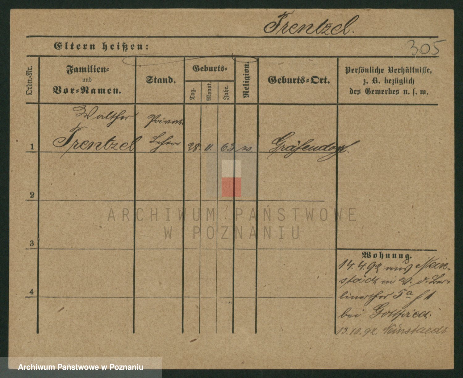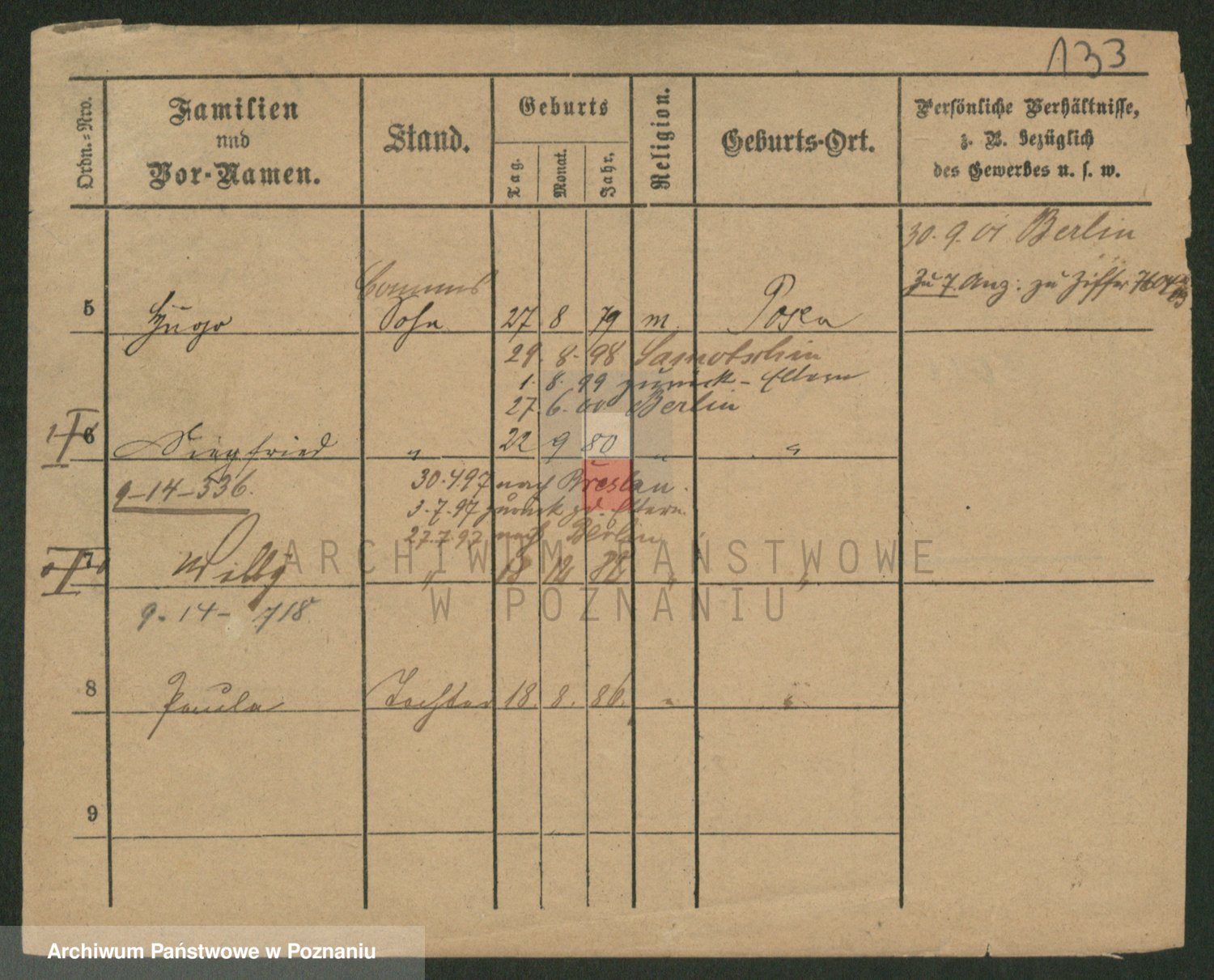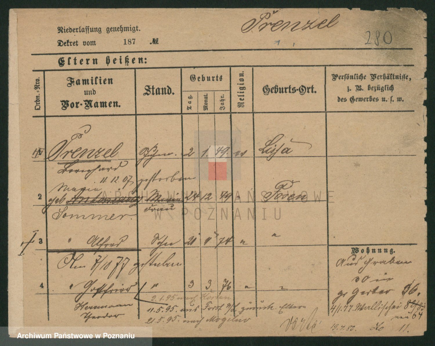 Podgląd karty osobowej dostępny jest po kliknięciu na nazwisko lub ikonkę karty. Można dokonywać powiększenia (ikony na górze) lub przechodzić między kolejnymi skanami (strzałki po bokach).