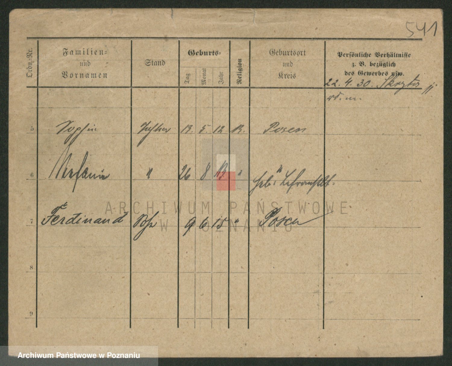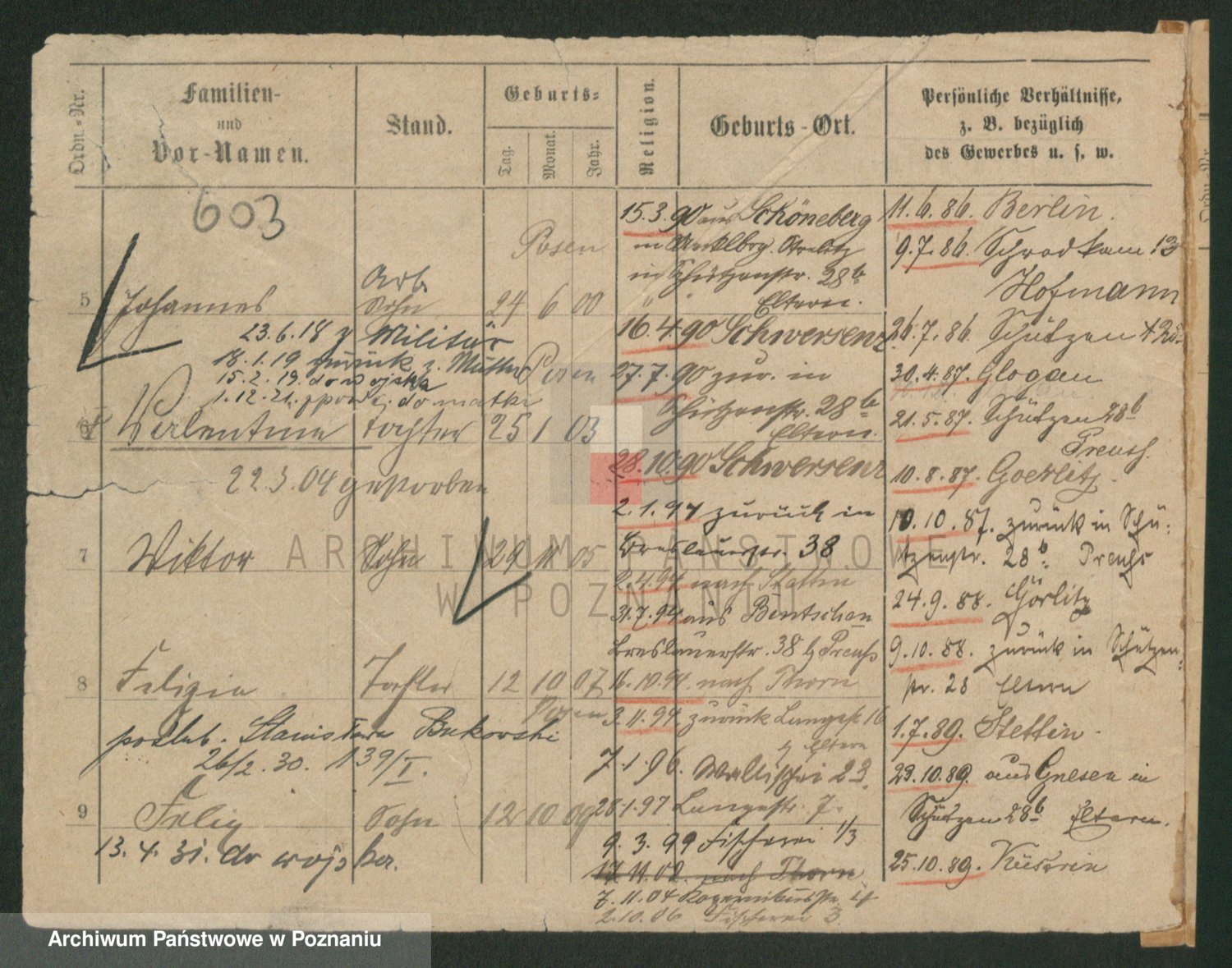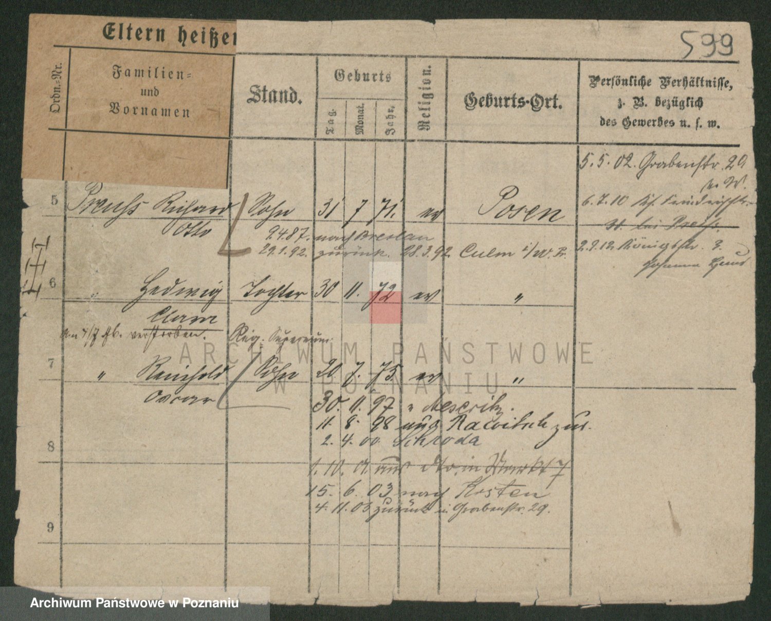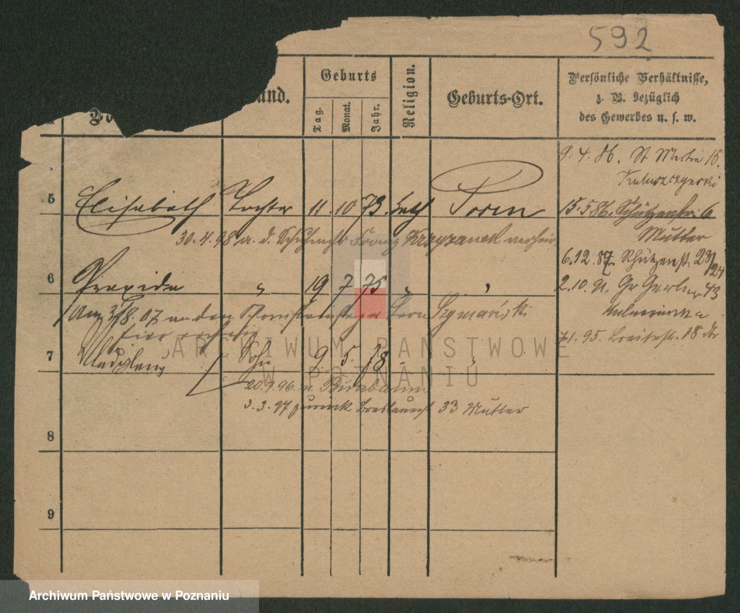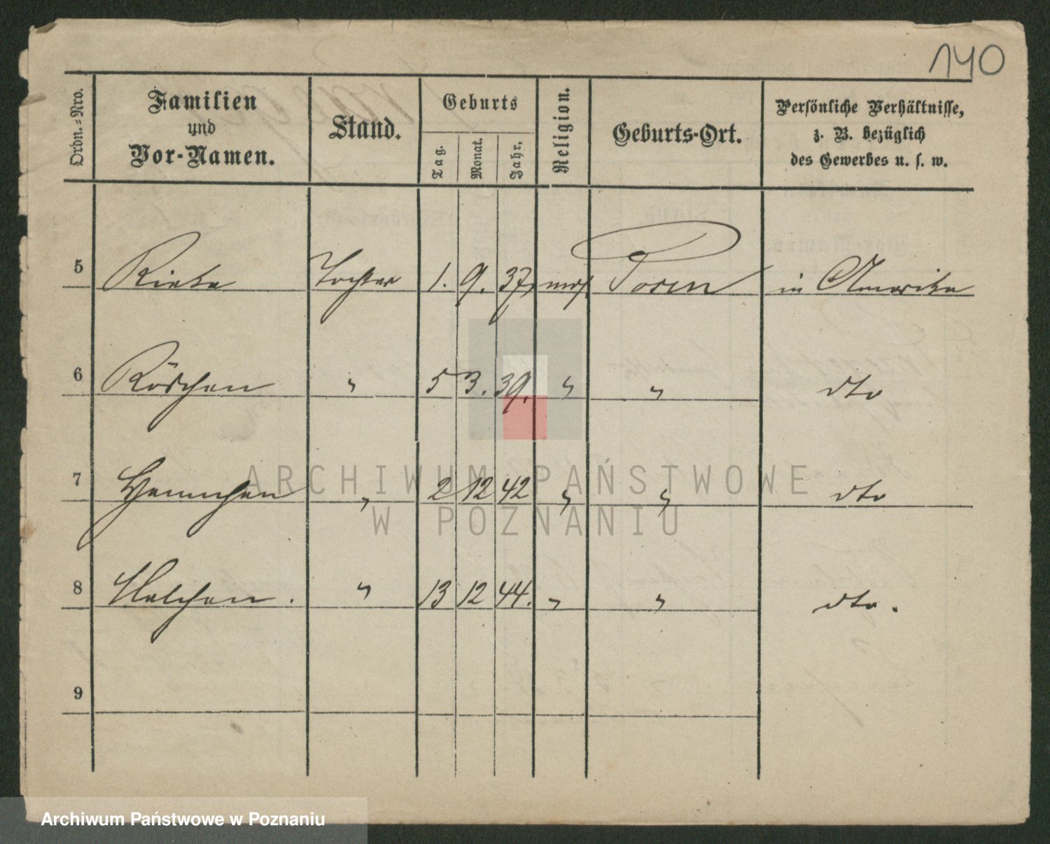 Podgląd karty osobowej dostępny jest po kliknięciu na nazwisko lub ikonkę karty. Można dokonywać powiększenia (ikony na górze) lub przechodzić między kolejnymi skanami (strzałki po bokach).