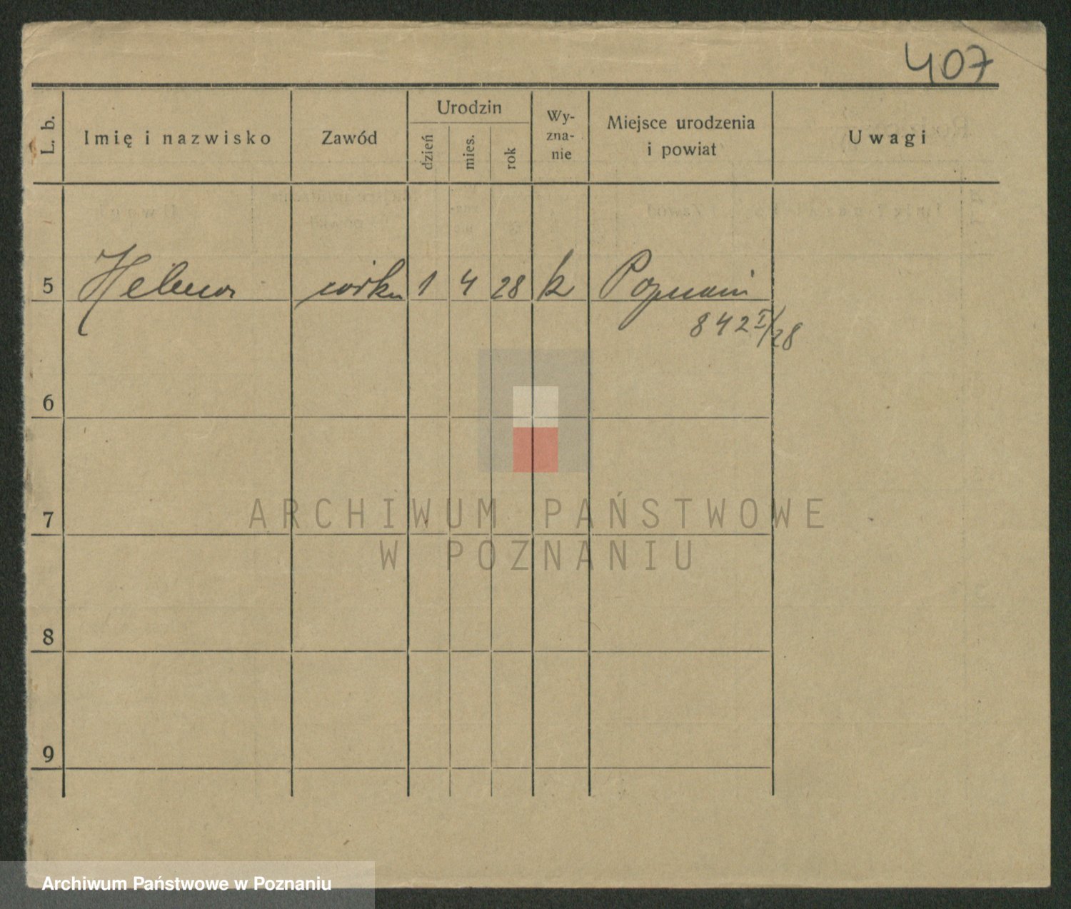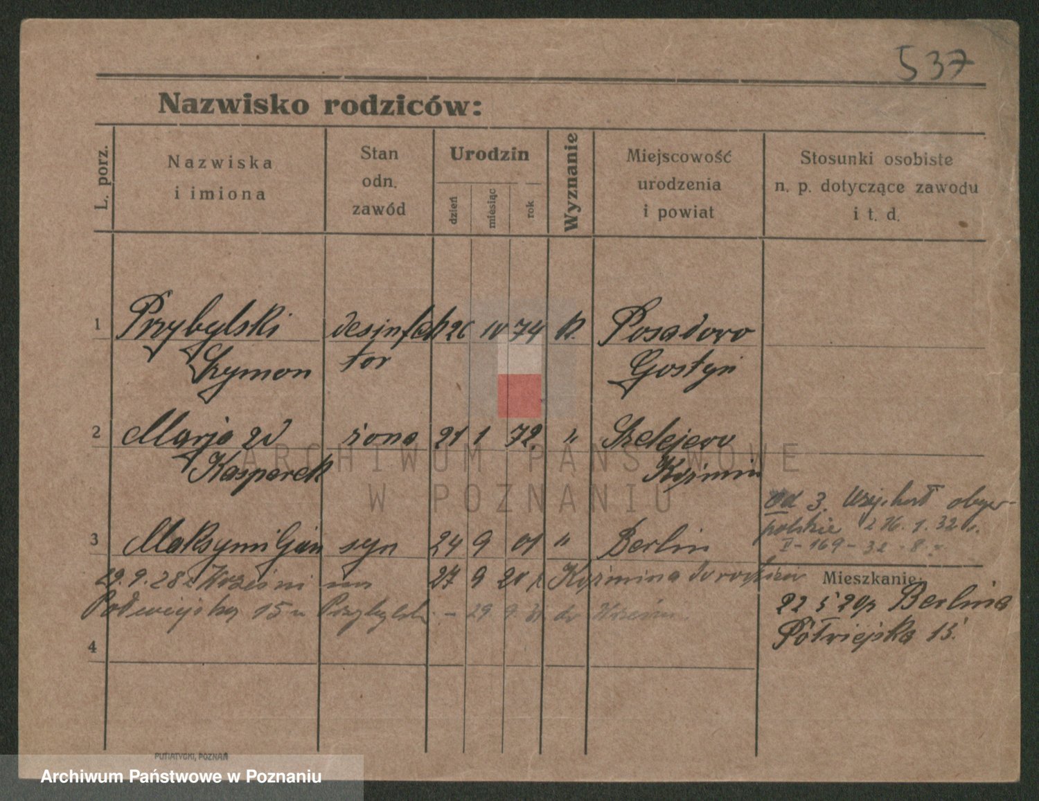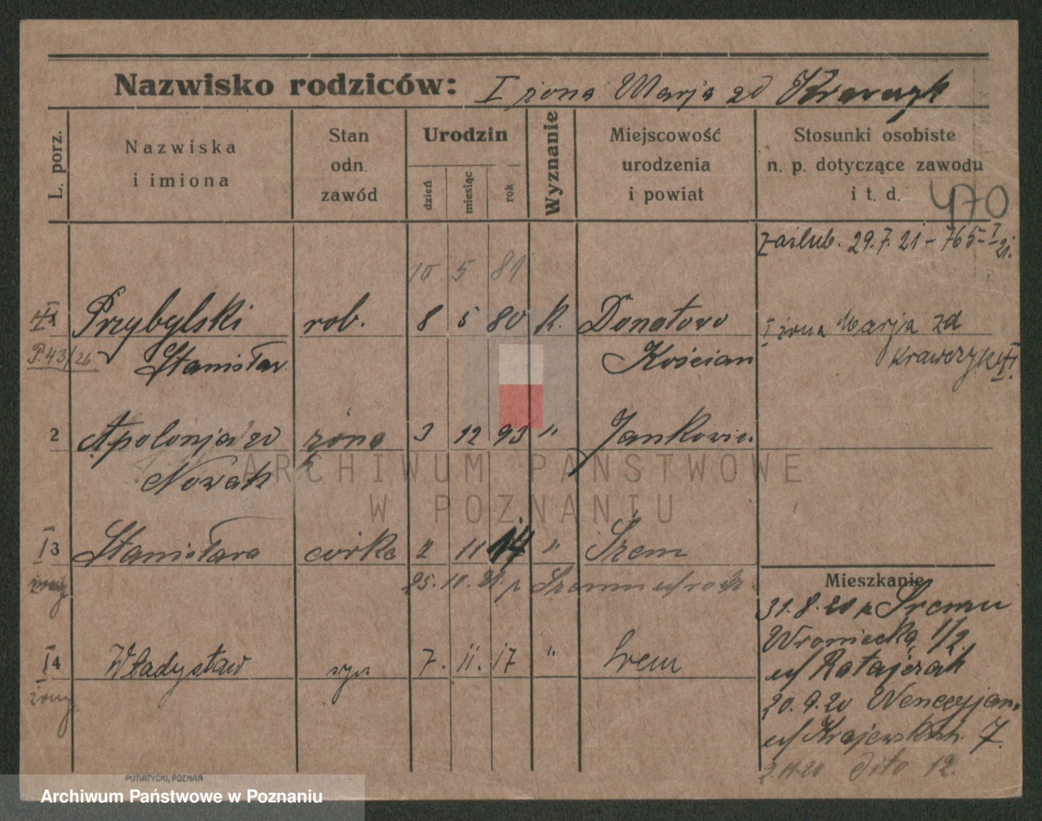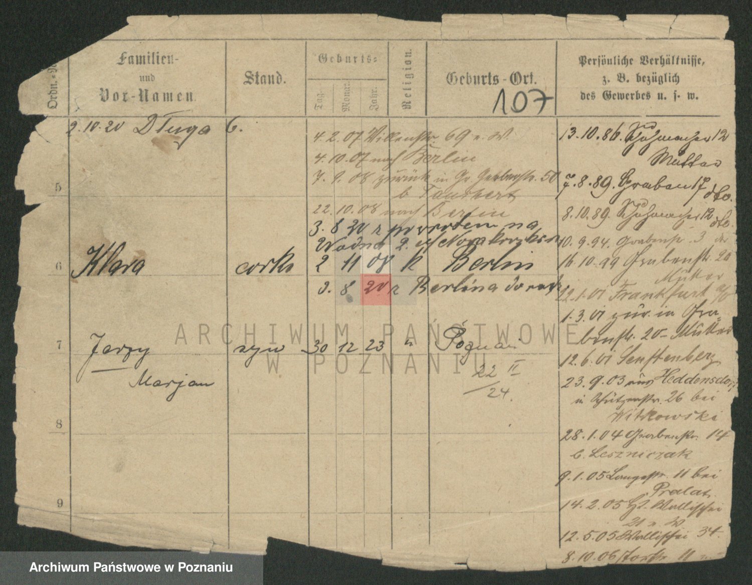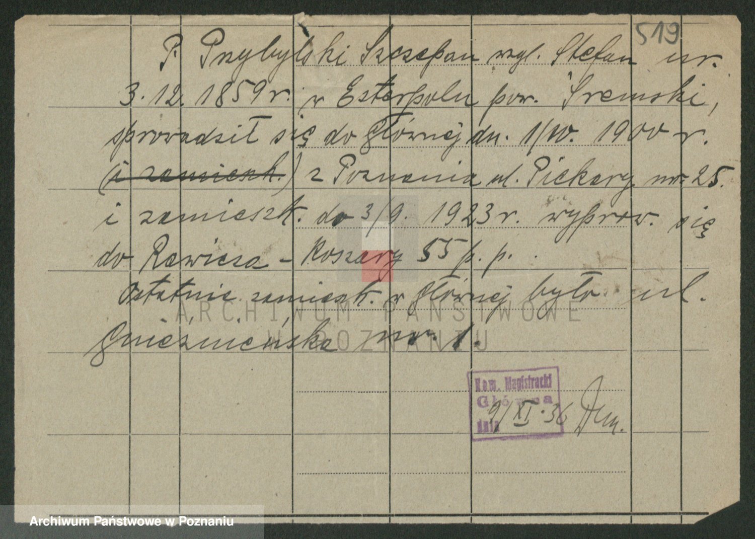 Podgląd karty osobowej dostępny jest po kliknięciu na nazwisko lub ikonkę karty. Można dokonywać powiększenia (ikony na górze) lub przechodzić między kolejnymi skanami (strzałki po bokach).