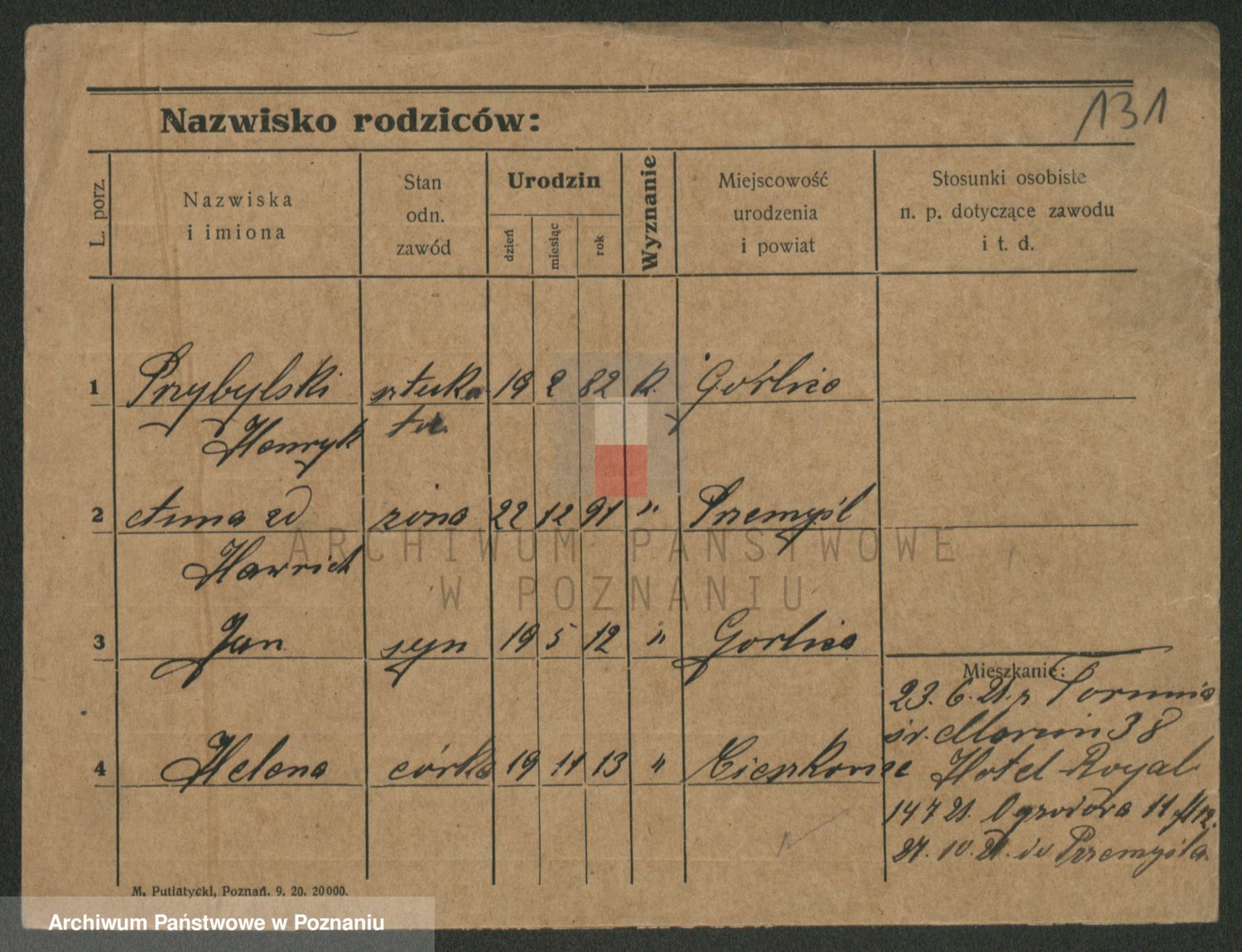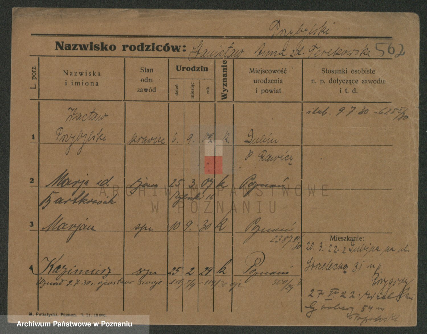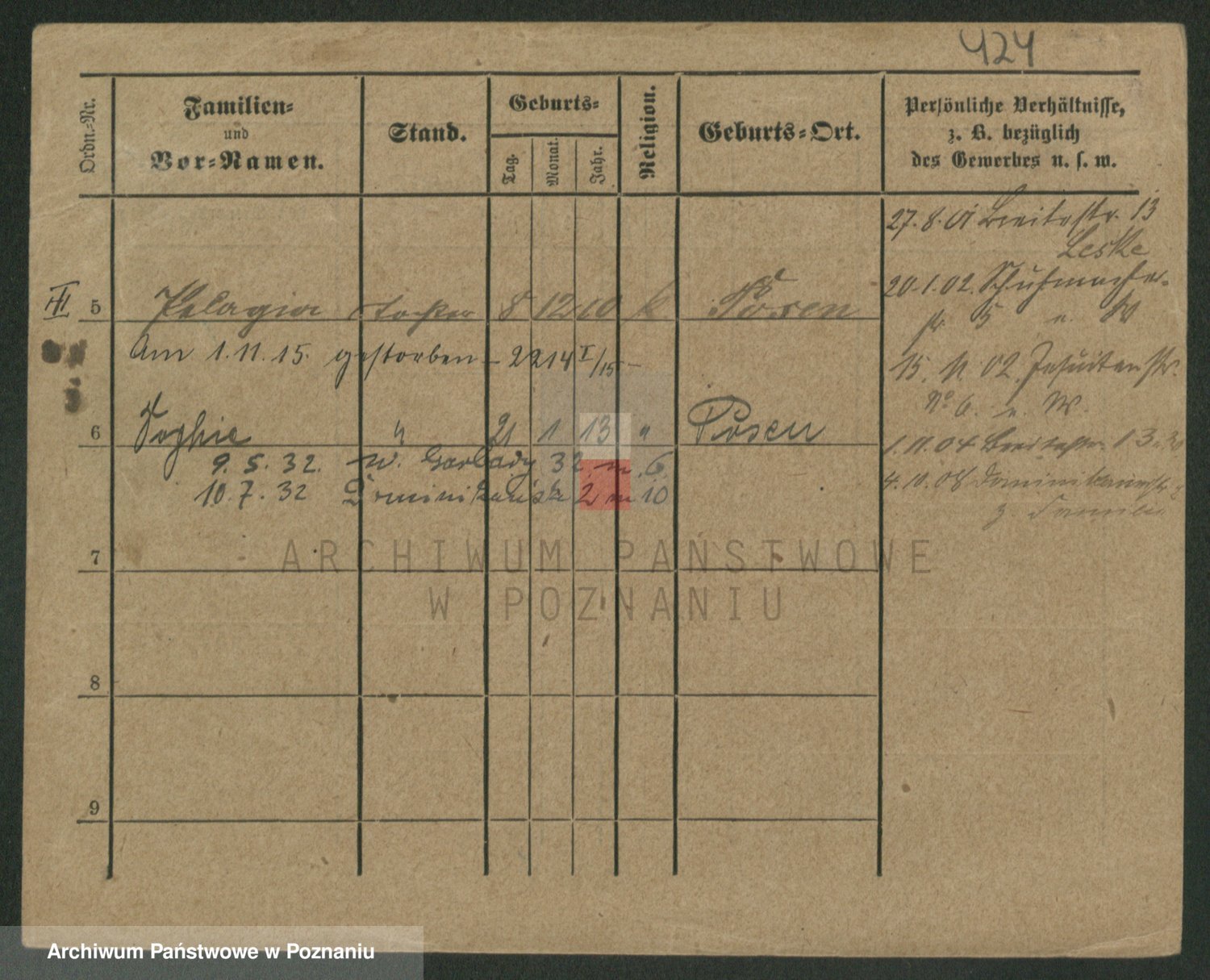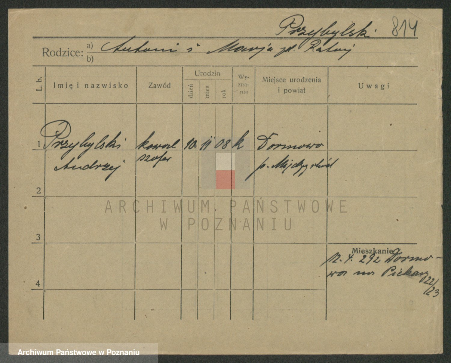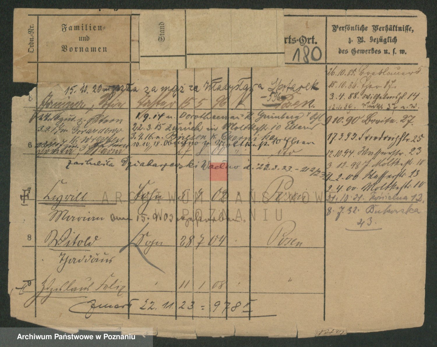 Podgląd karty osobowej dostępny jest po kliknięciu na nazwisko lub ikonkę karty. Można dokonywać powiększenia (ikony na górze) lub przechodzić między kolejnymi skanami (strzałki po bokach).