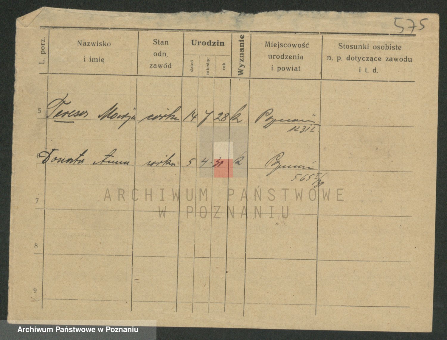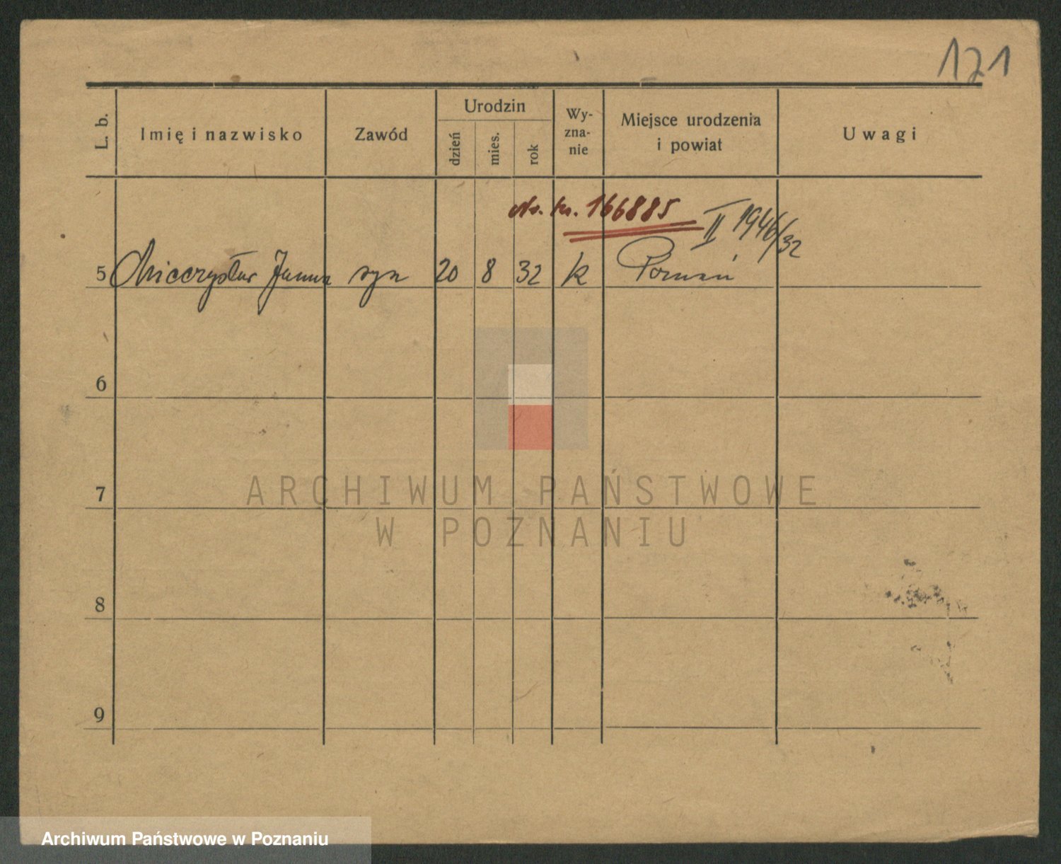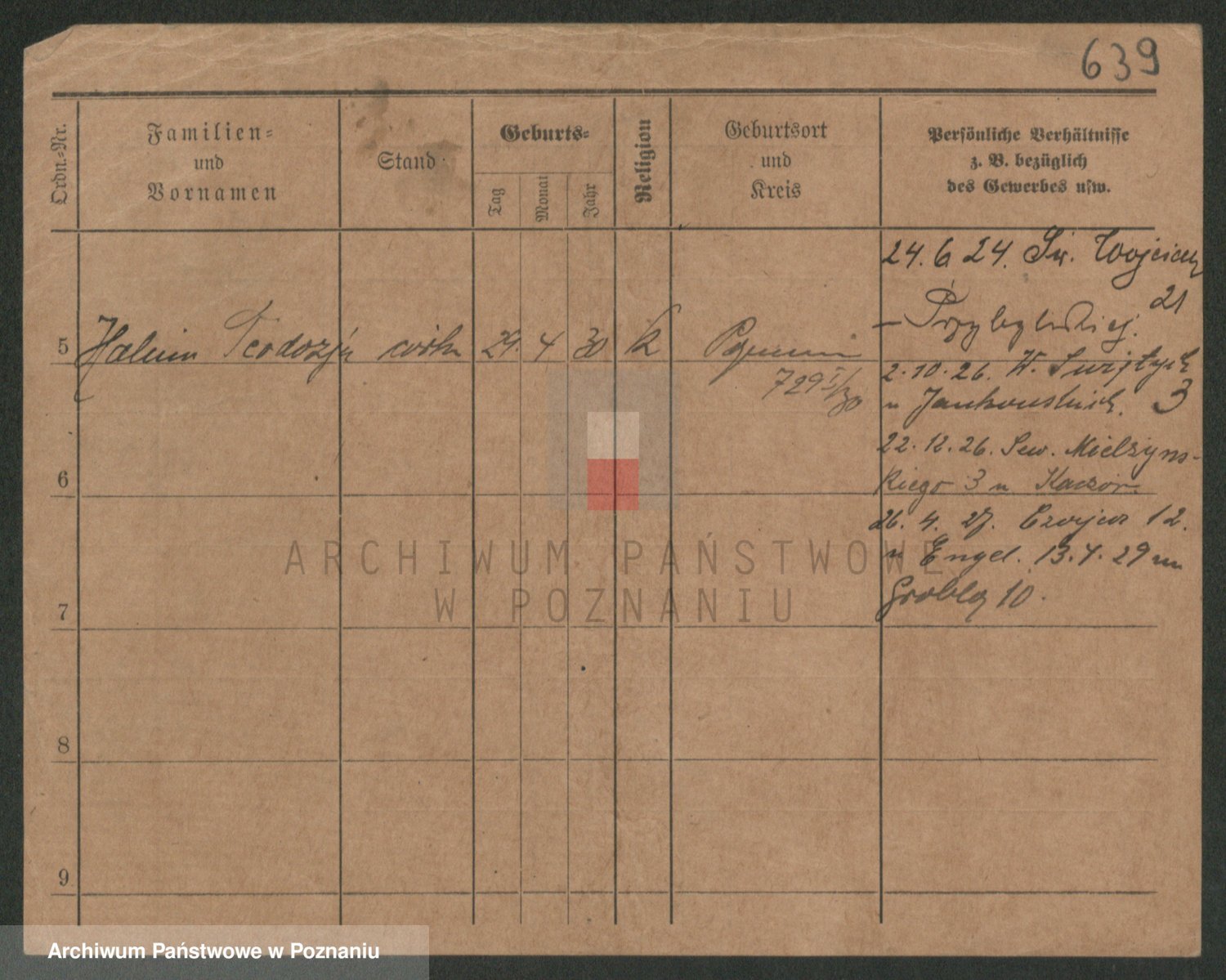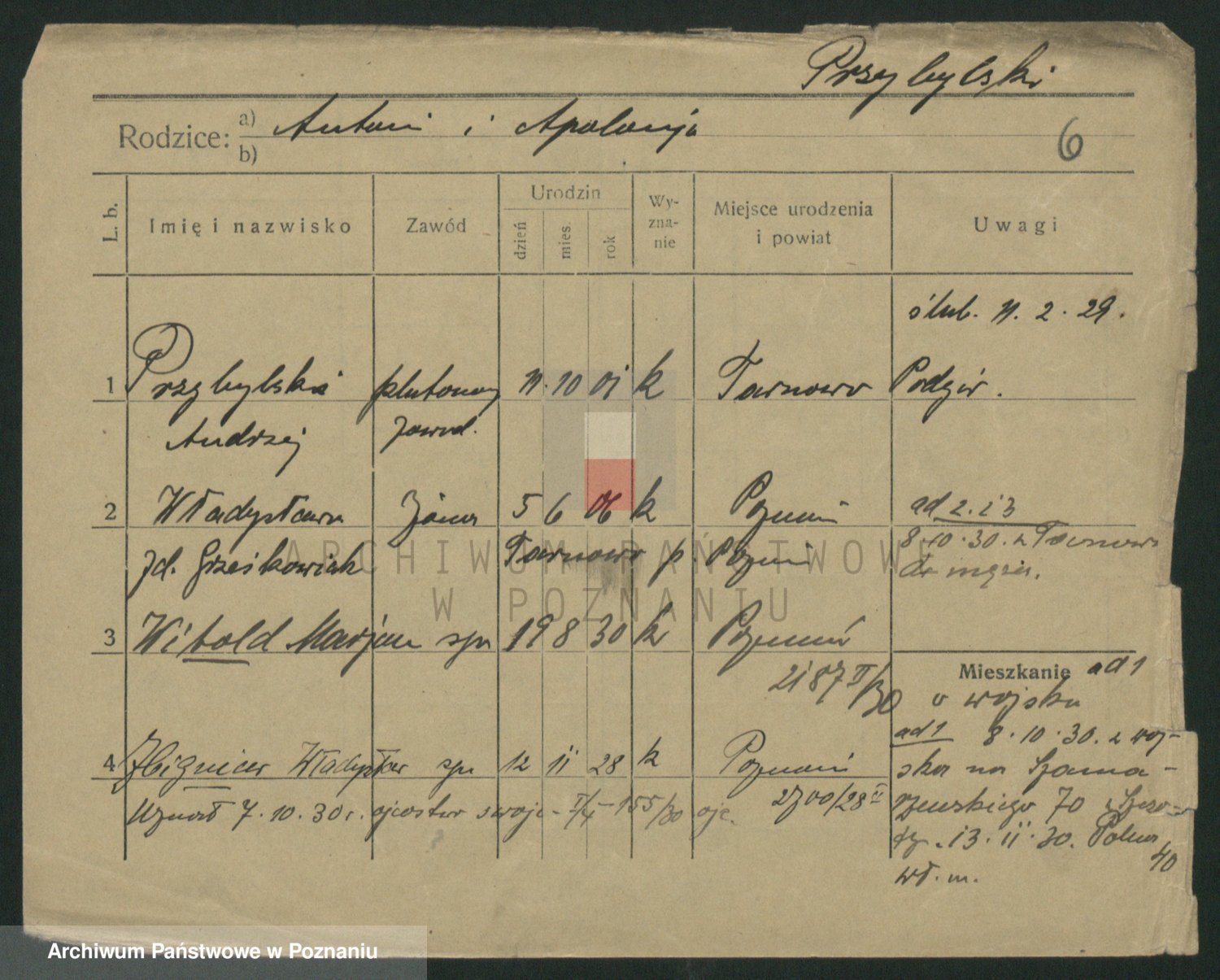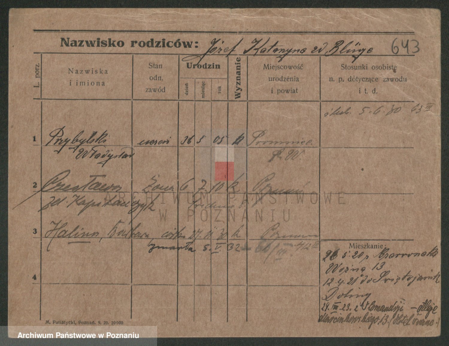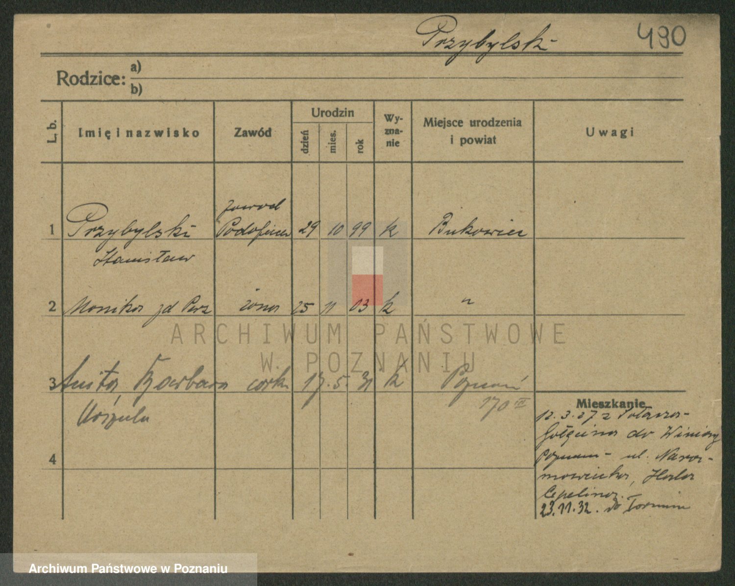 Podgląd karty osobowej dostępny jest po kliknięciu na nazwisko lub ikonkę karty. Można dokonywać powiększenia (ikony na górze) lub przechodzić między kolejnymi skanami (strzałki po bokach).