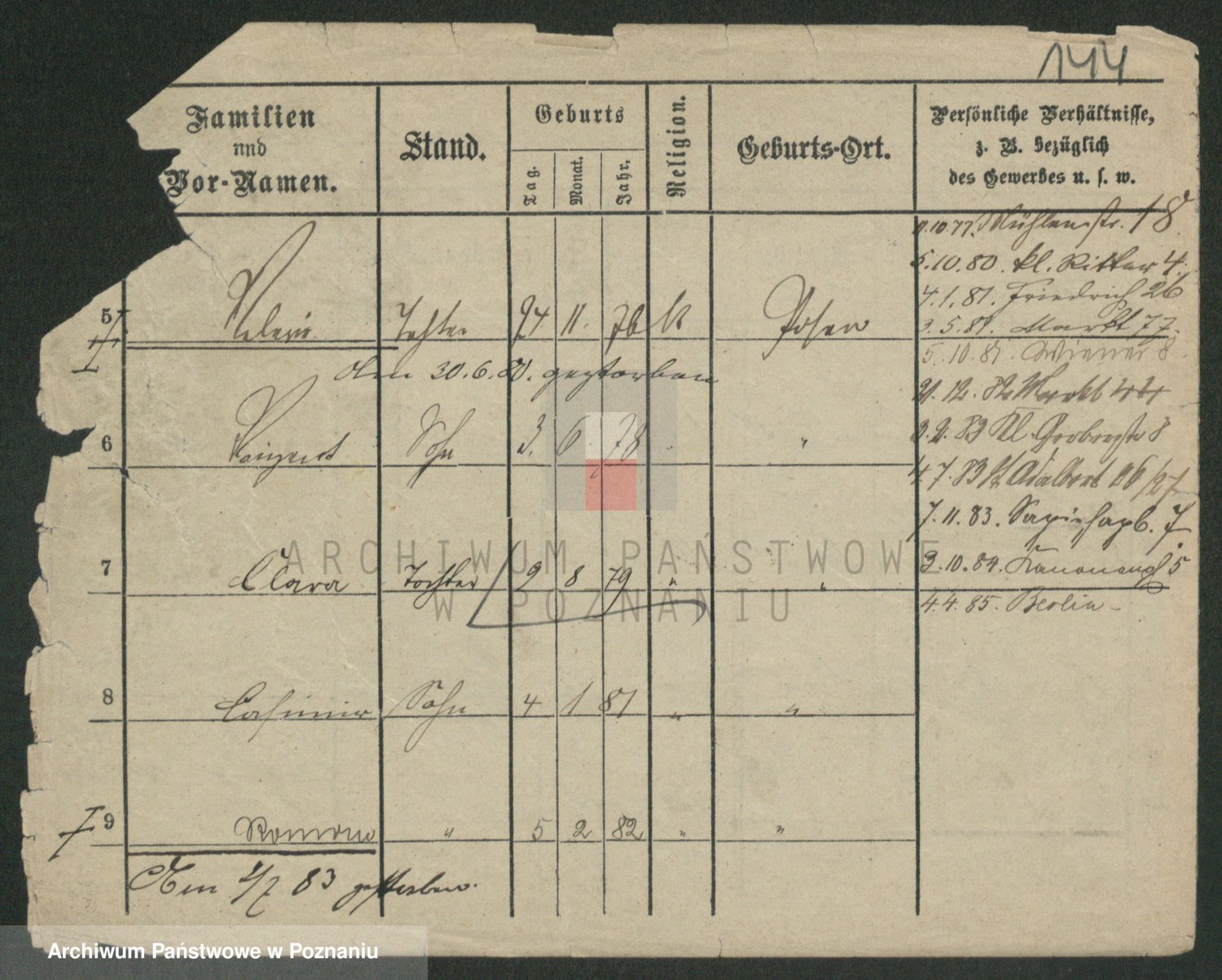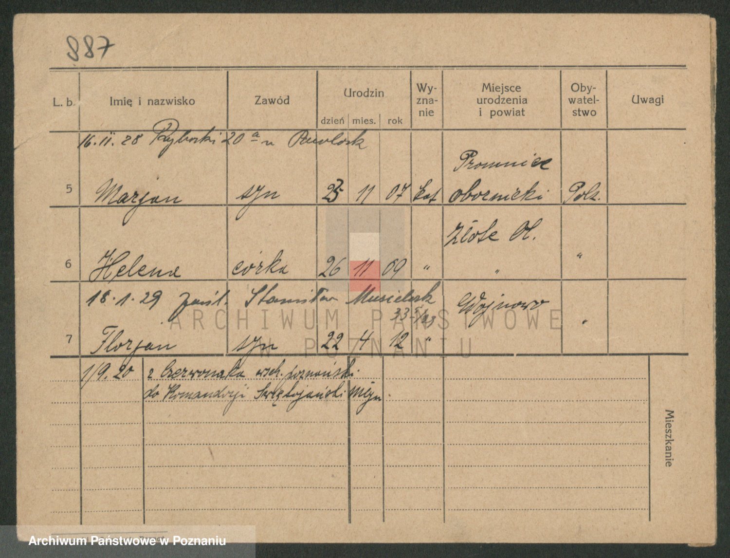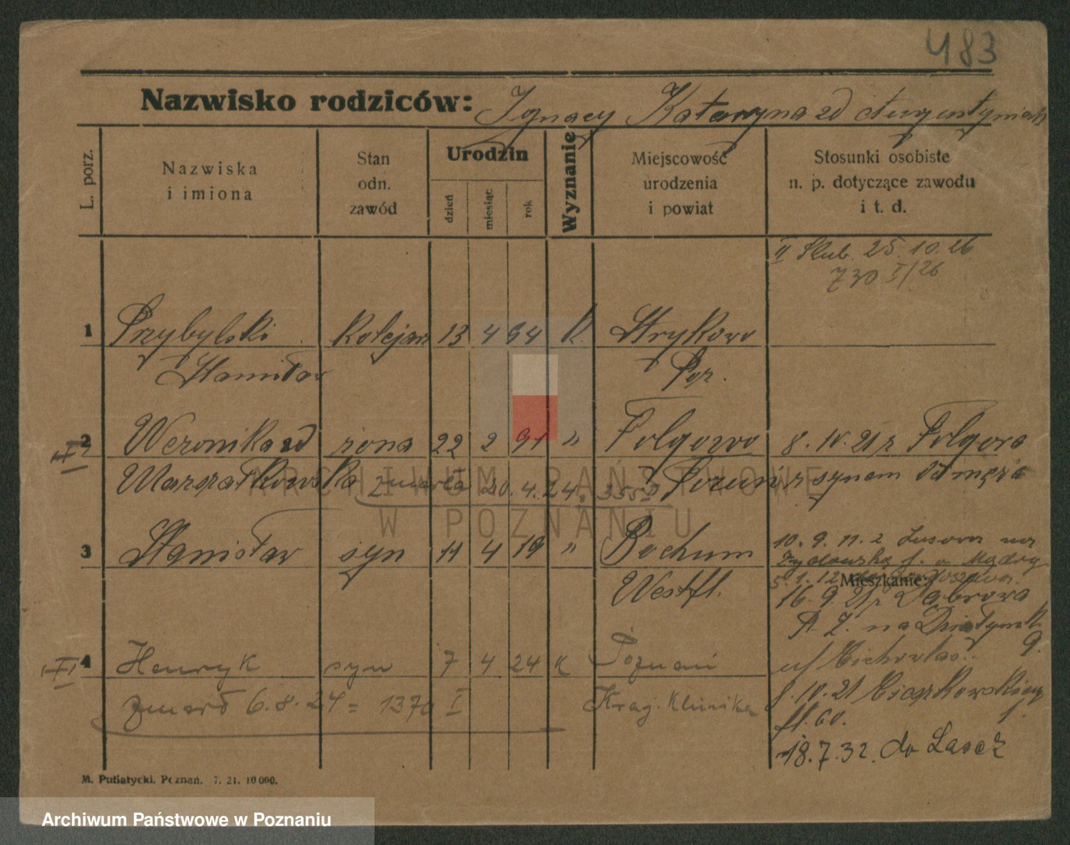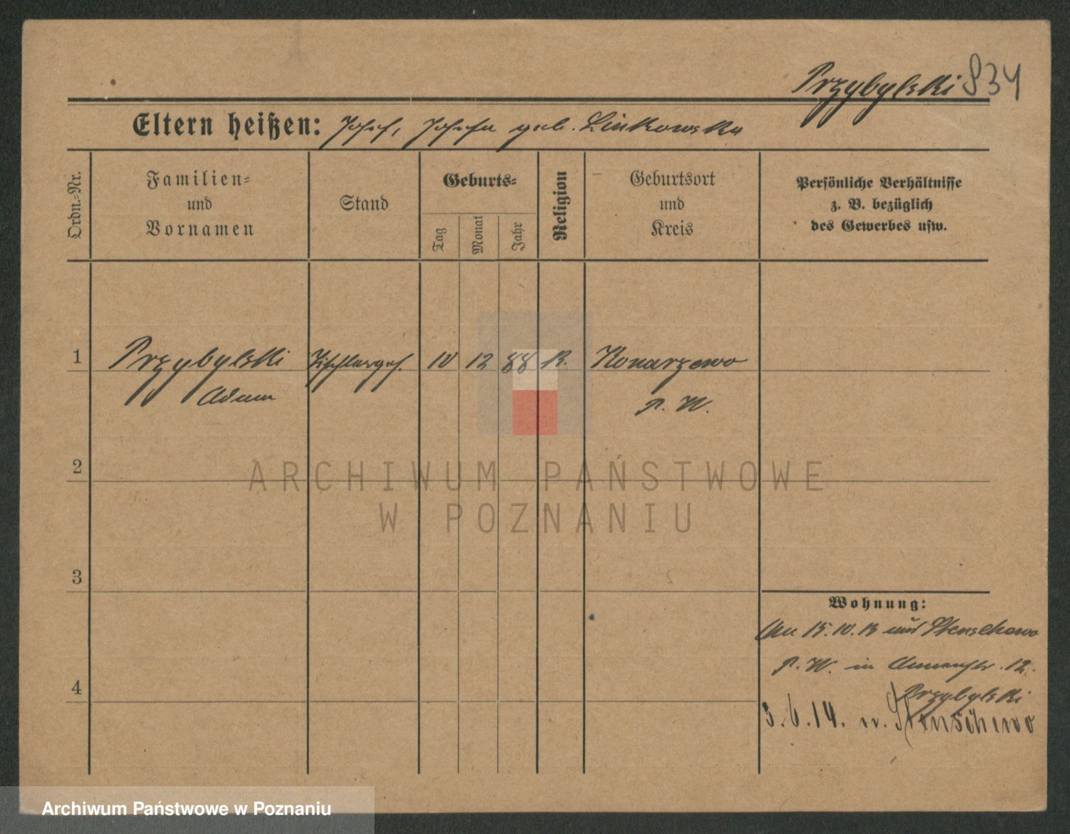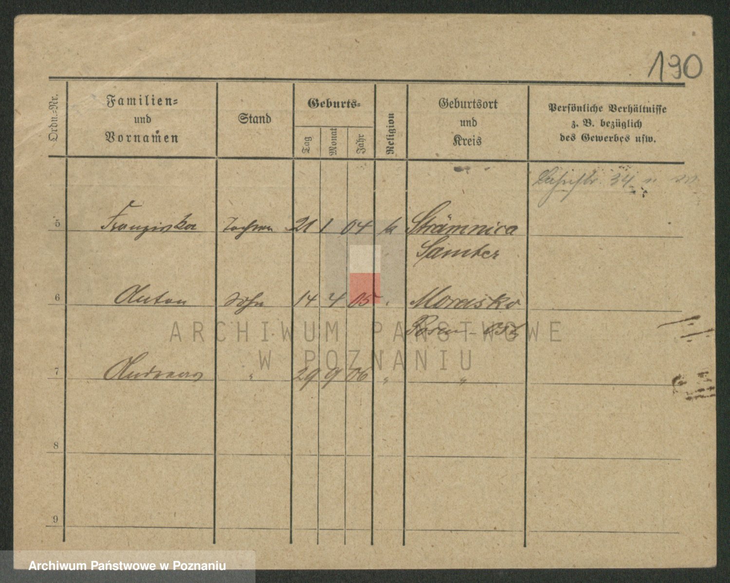 Podgląd karty osobowej dostępny jest po kliknięciu na nazwisko lub ikonkę karty. Można dokonywać powiększenia (ikony na górze) lub przechodzić między kolejnymi skanami (strzałki po bokach).