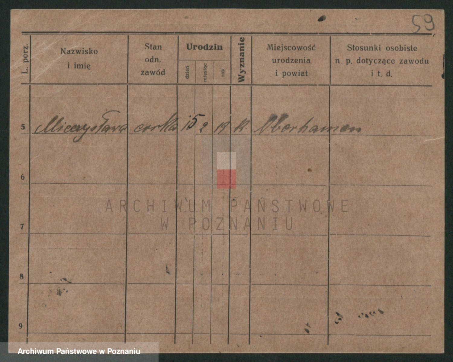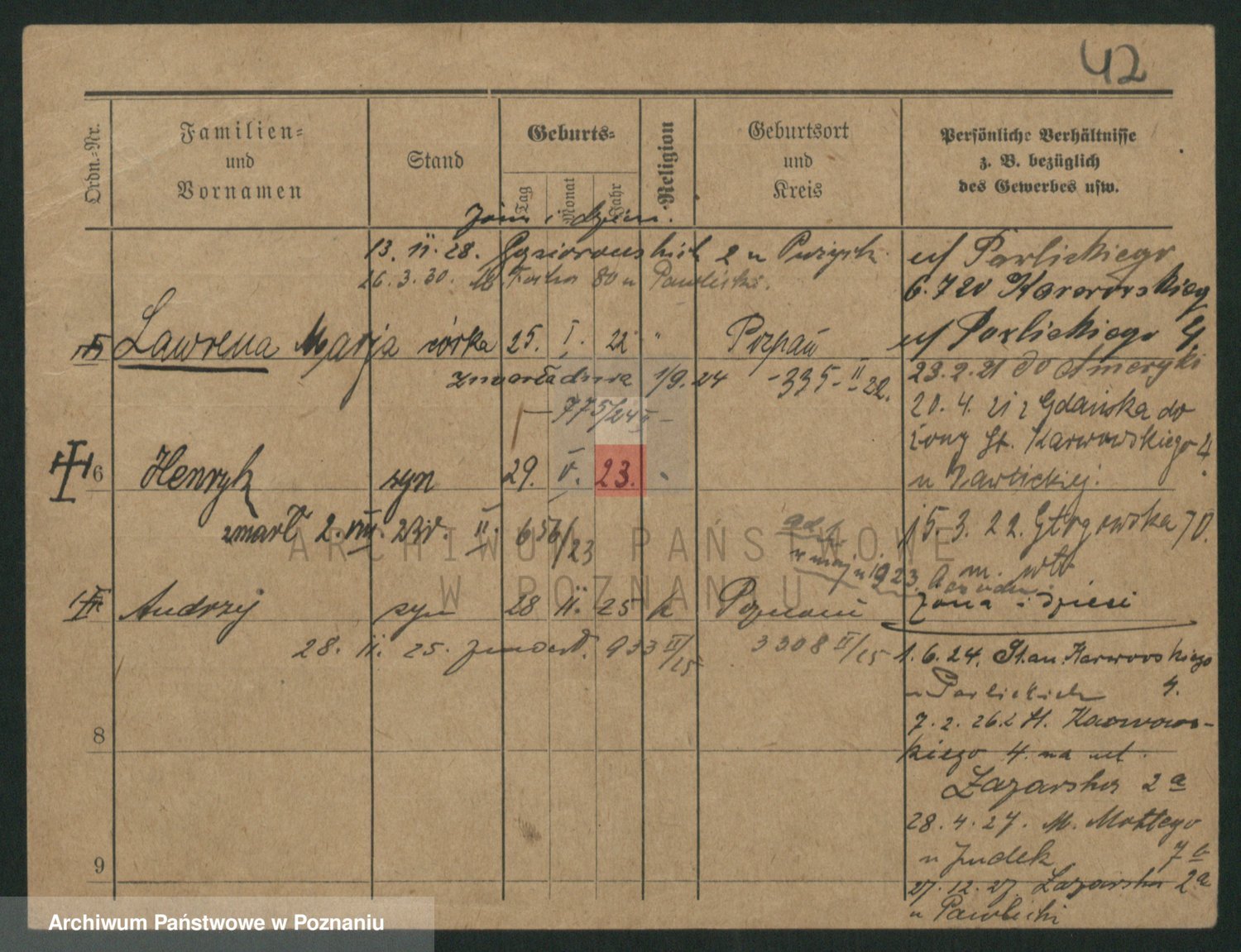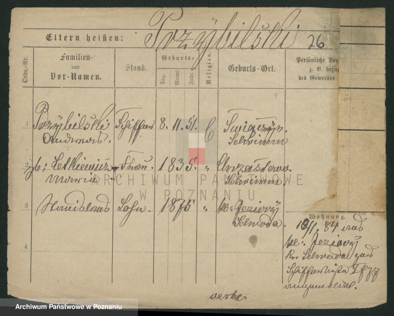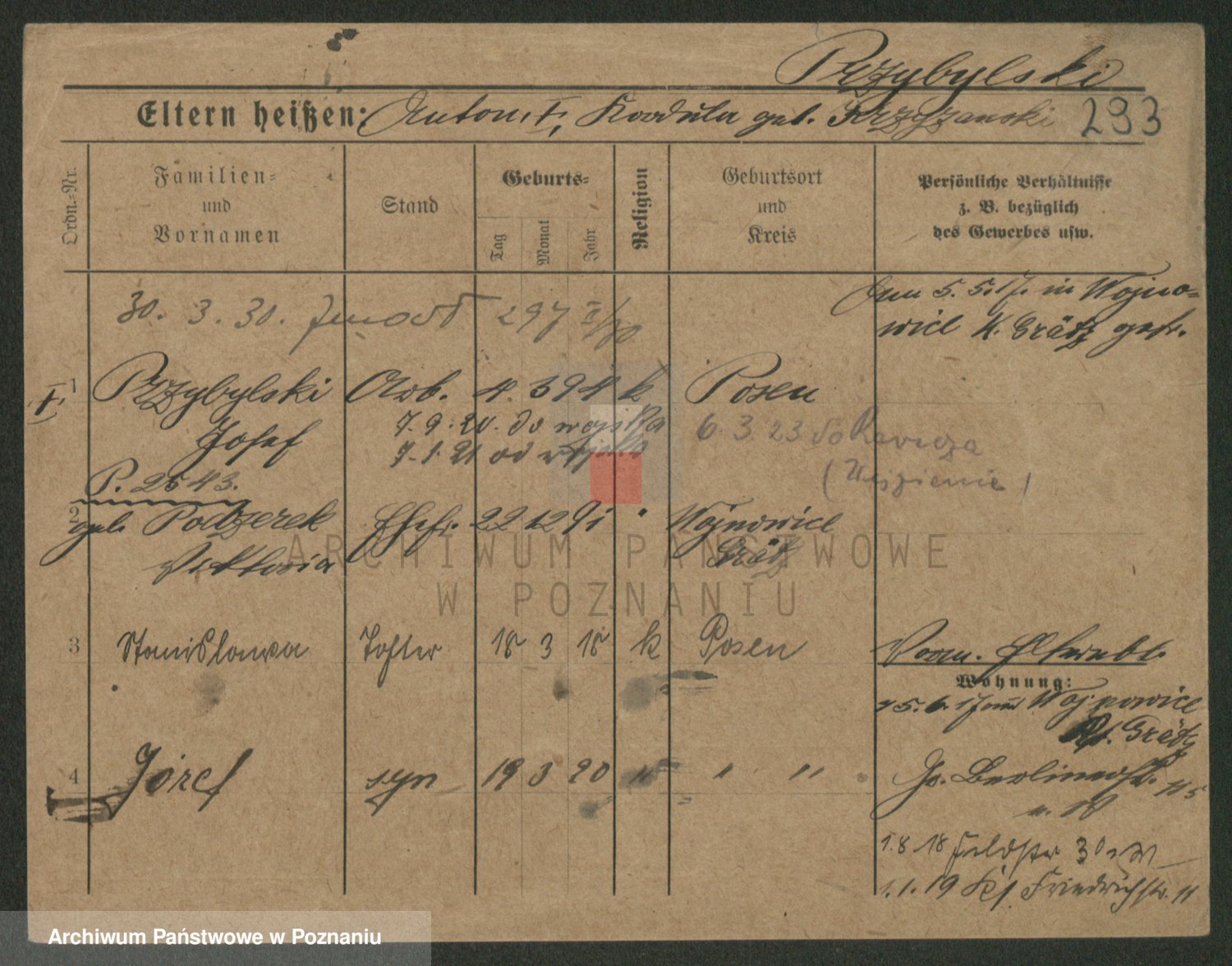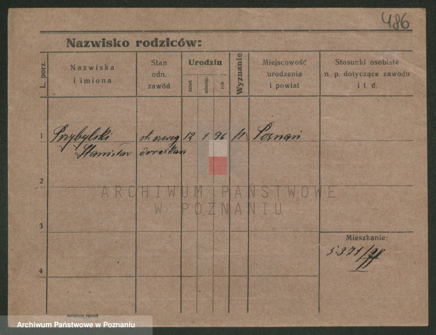 Podgląd karty osobowej dostępny jest po kliknięciu na nazwisko lub ikonkę karty. Można dokonywać powiększenia (ikony na górze) lub przechodzić między kolejnymi skanami (strzałki po bokach).