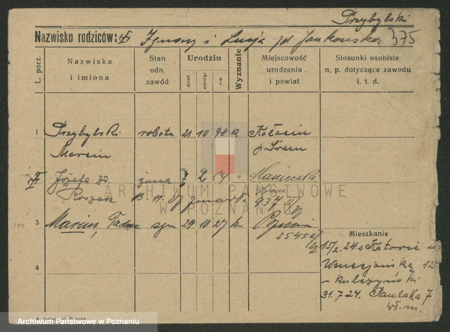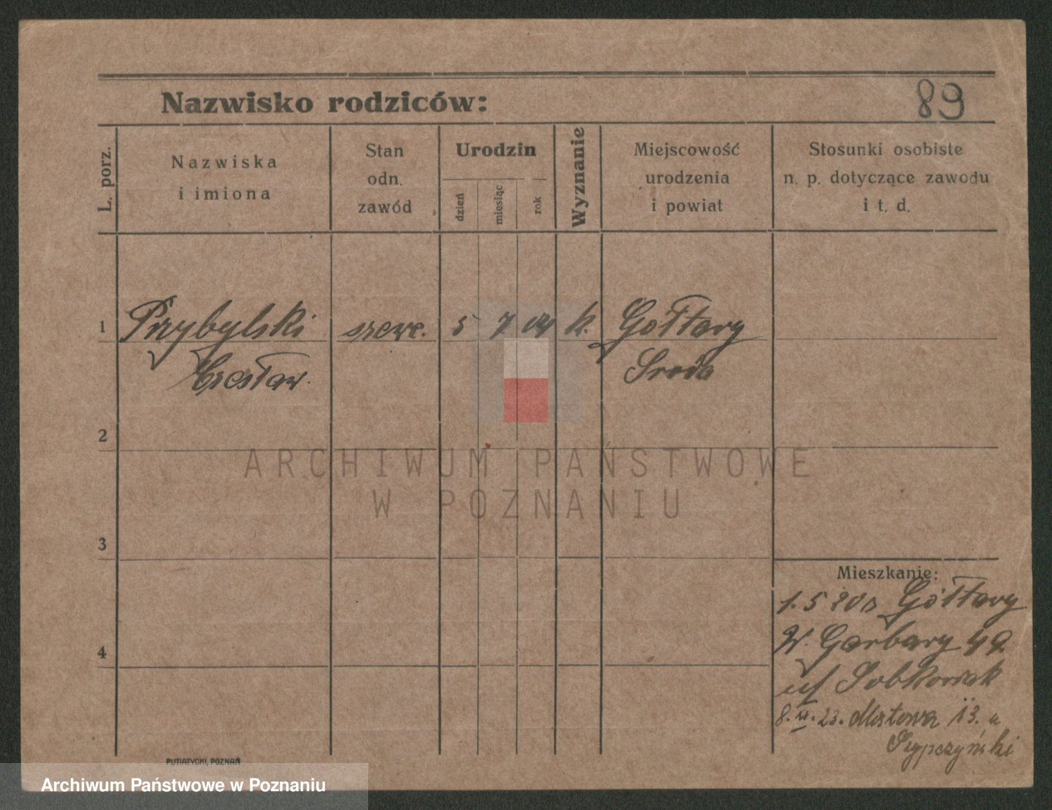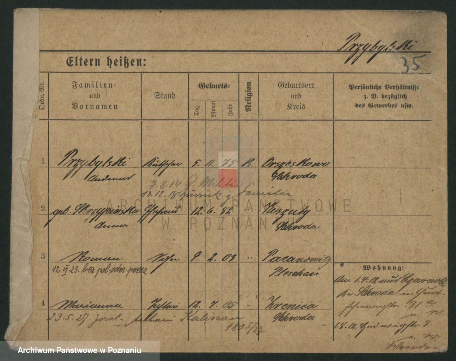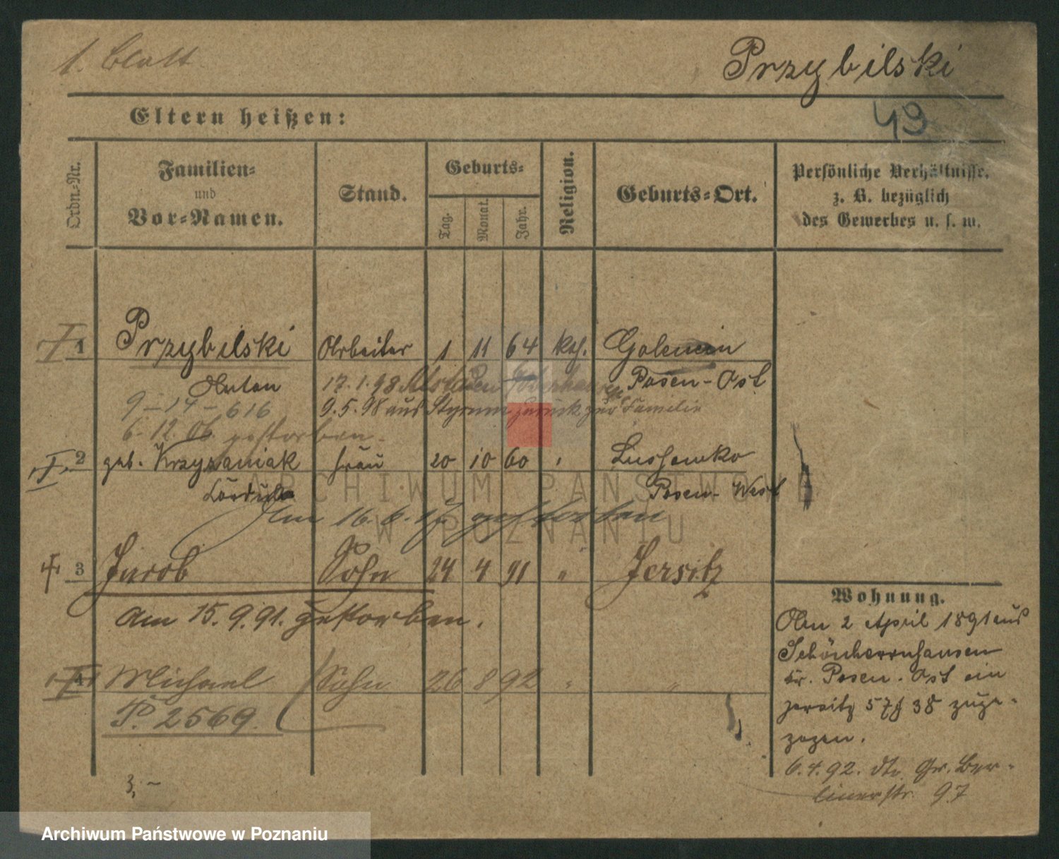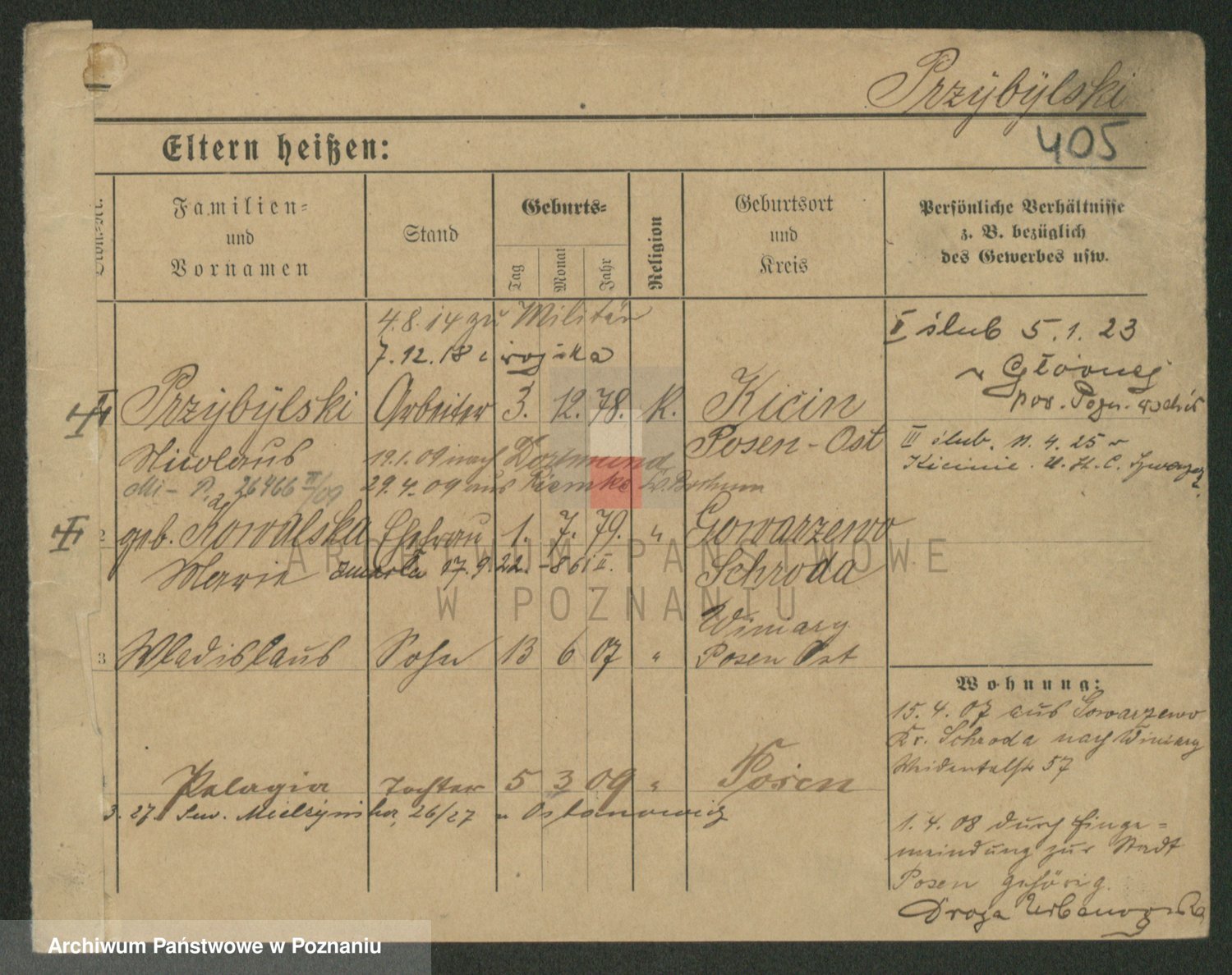 Podgląd karty osobowej dostępny jest po kliknięciu na nazwisko lub ikonkę karty. Można dokonywać powiększenia (ikony na górze) lub przechodzić między kolejnymi skanami (strzałki po bokach).