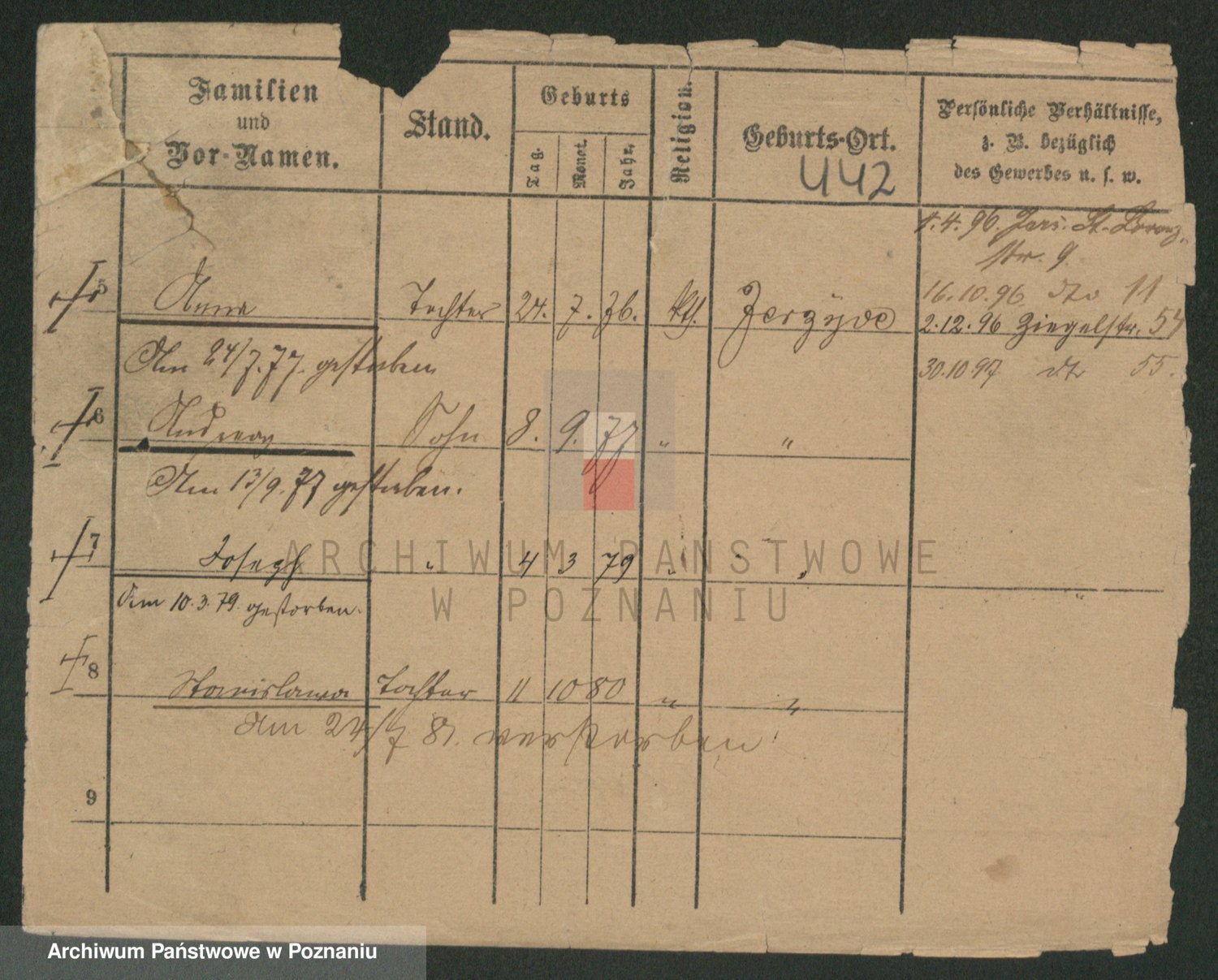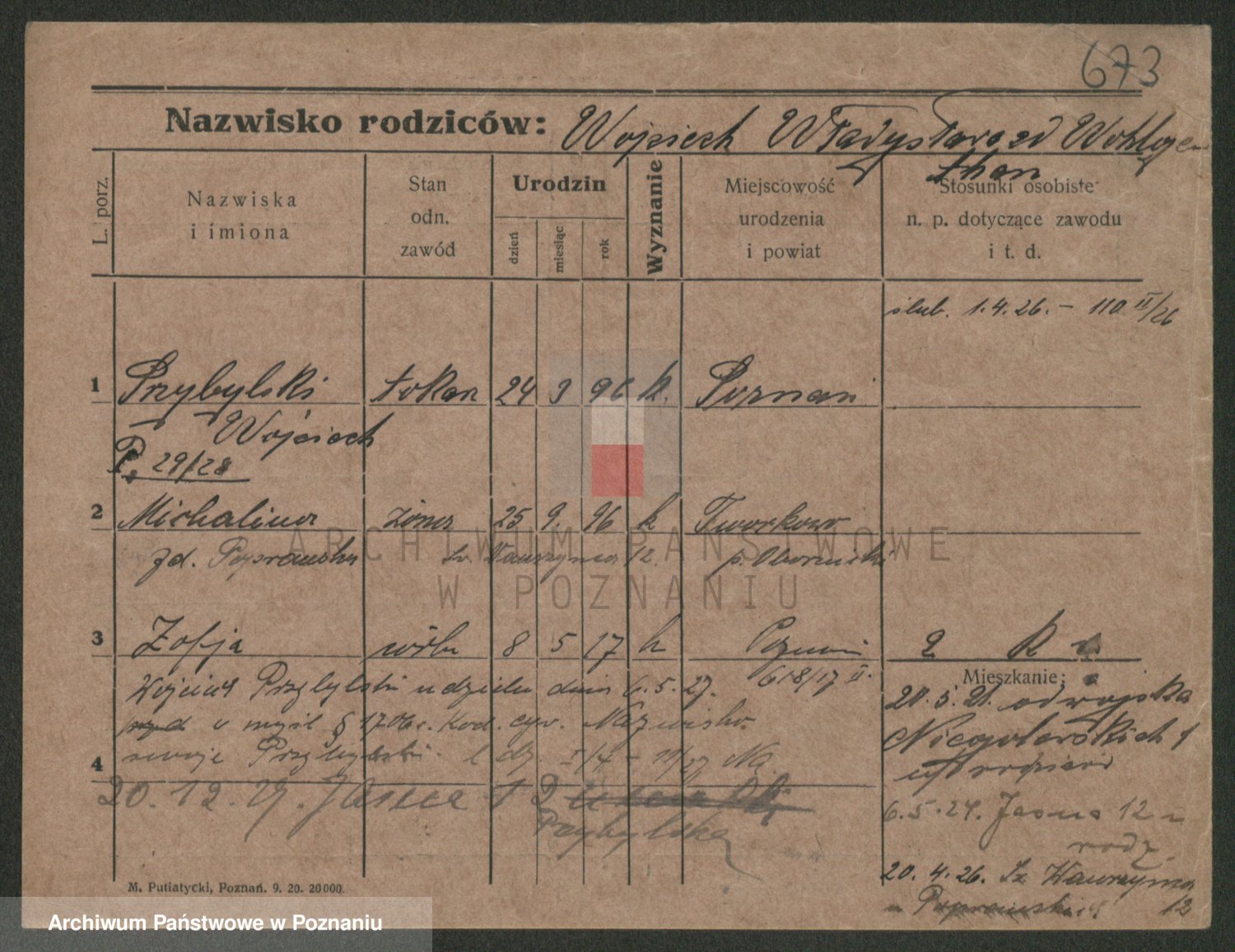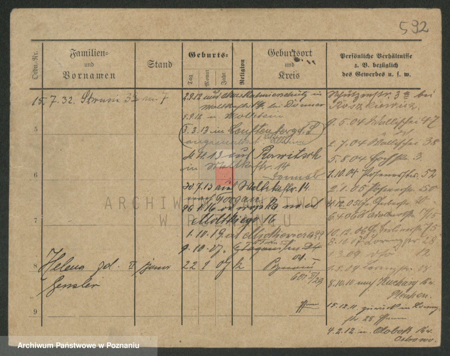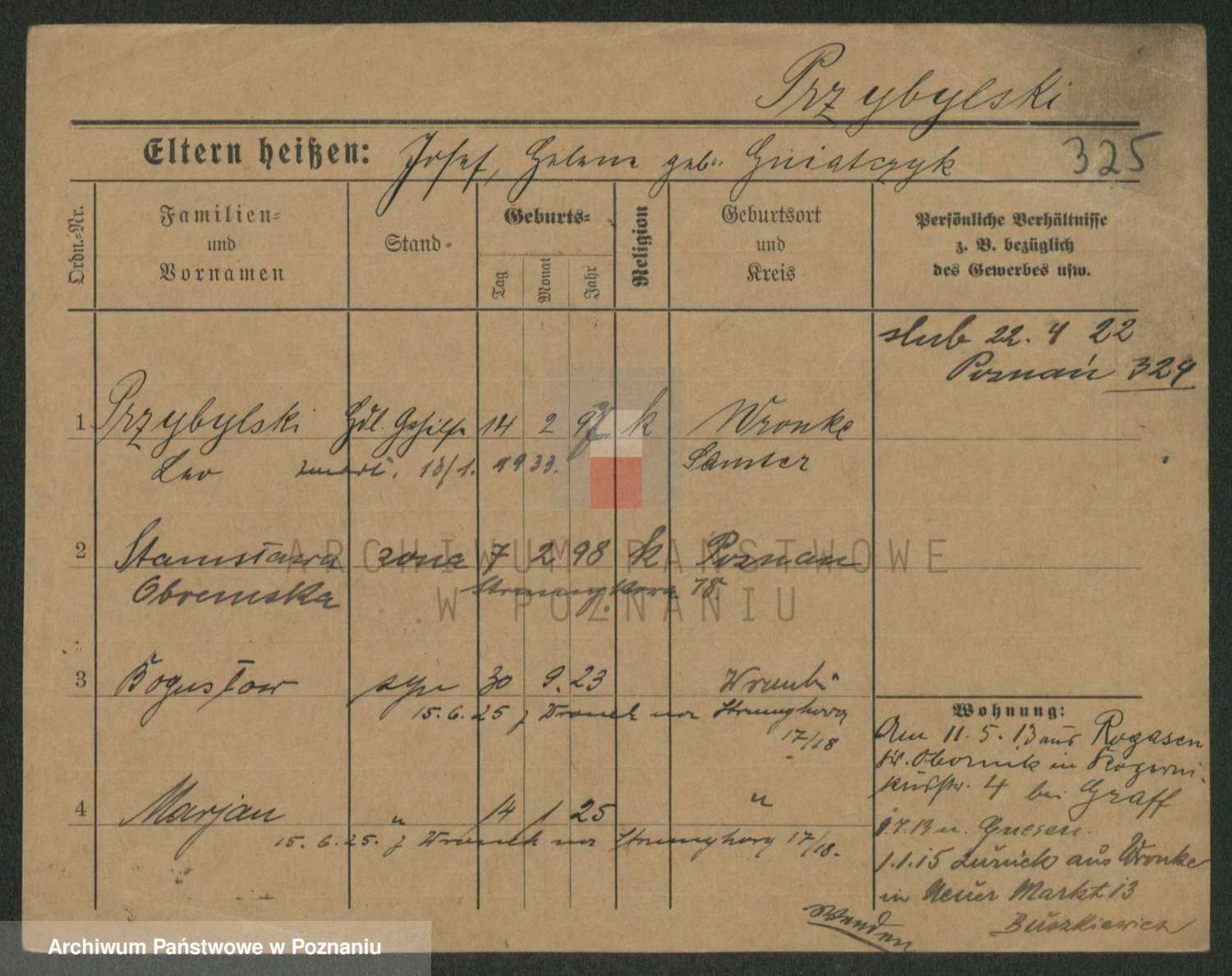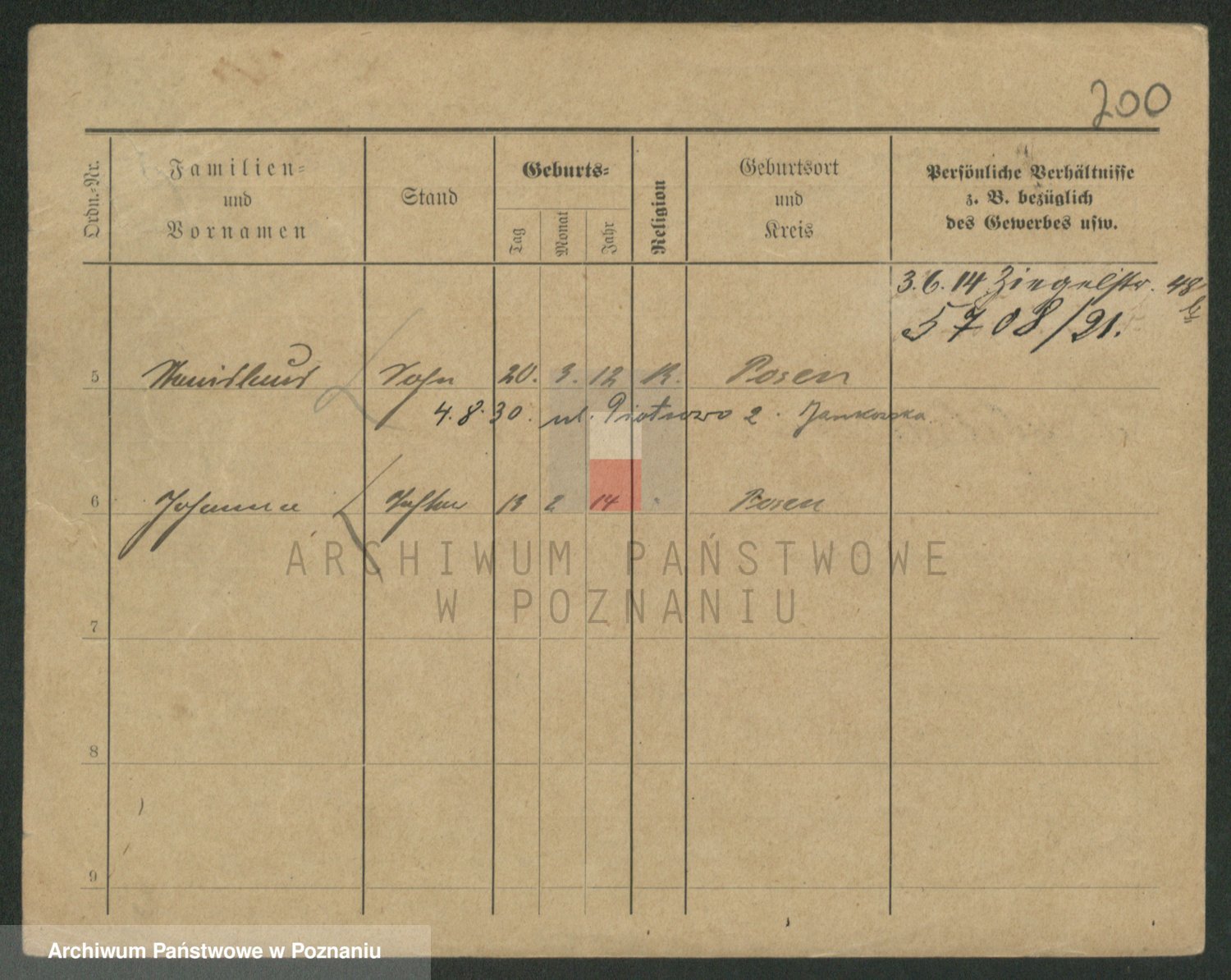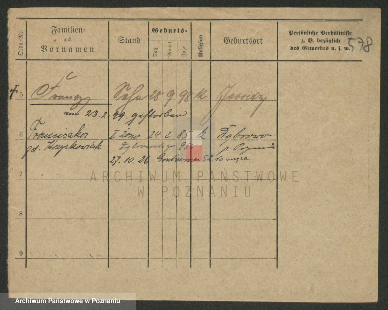 Podgląd karty osobowej dostępny jest po kliknięciu na nazwisko lub ikonkę karty. Można dokonywać powiększenia (ikony na górze) lub przechodzić między kolejnymi skanami (strzałki po bokach).