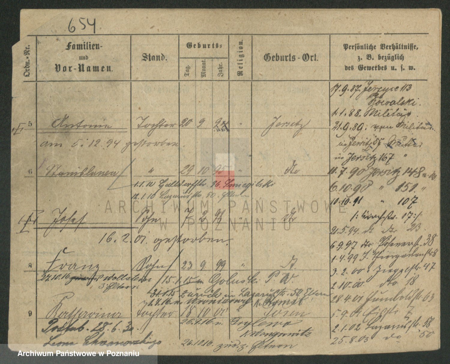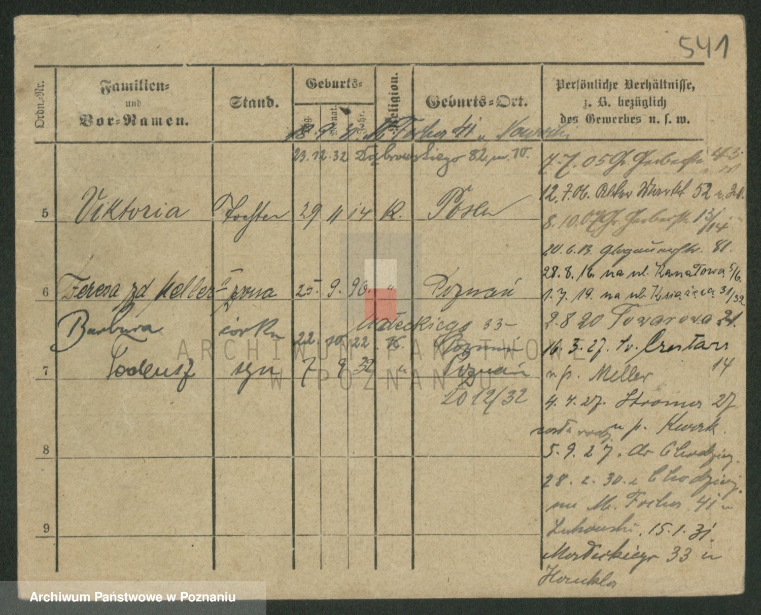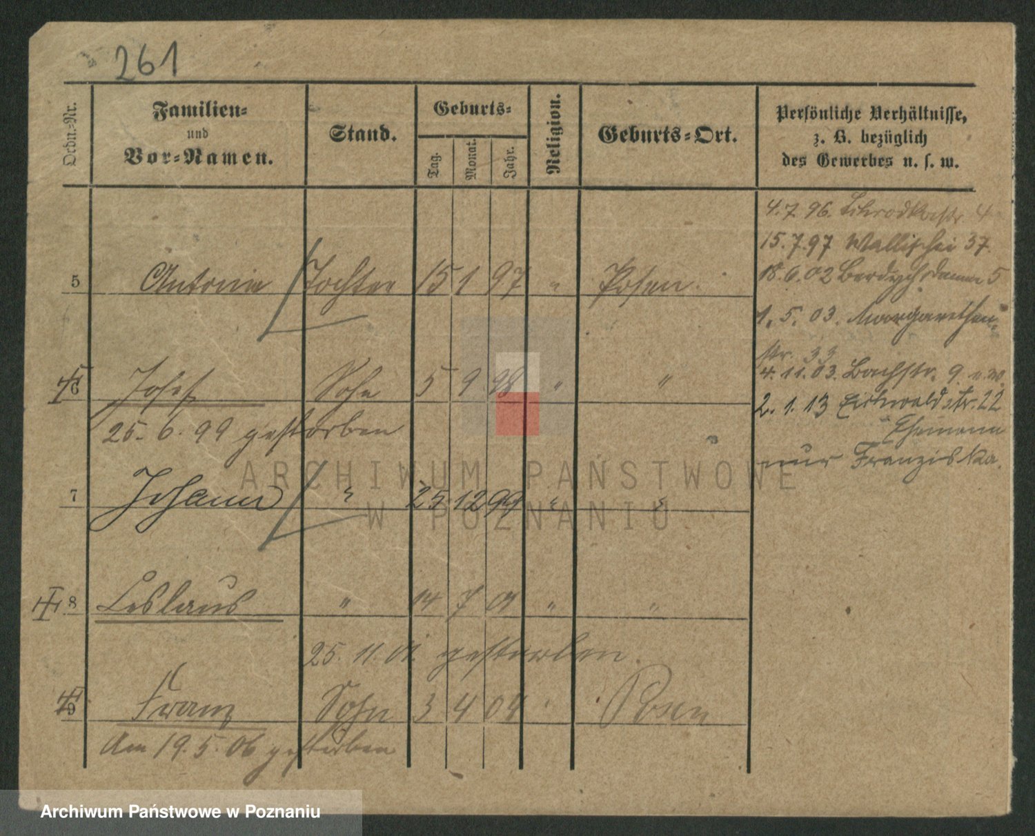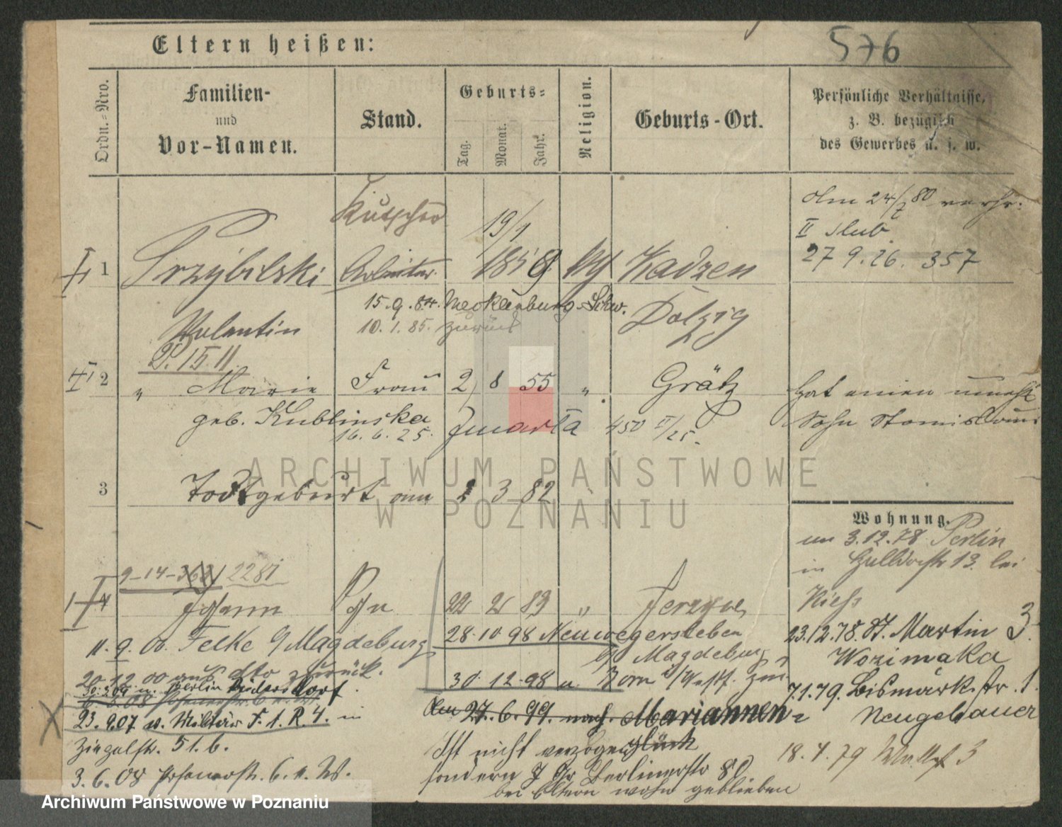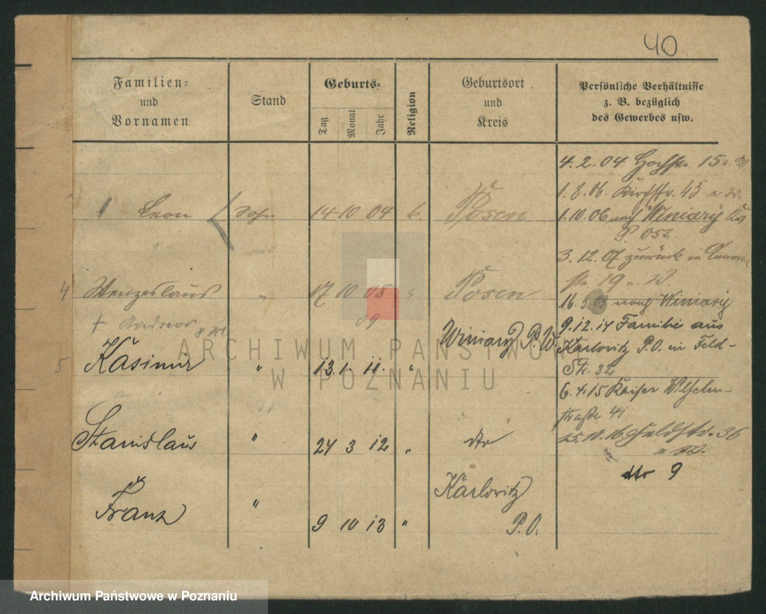 Podgląd karty osobowej dostępny jest po kliknięciu na nazwisko lub ikonkę karty. Można dokonywać powiększenia (ikony na górze) lub przechodzić między kolejnymi skanami (strzałki po bokach).