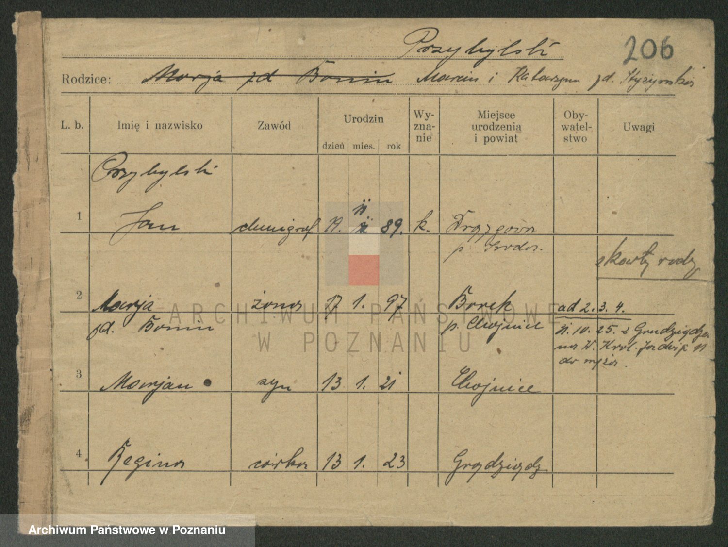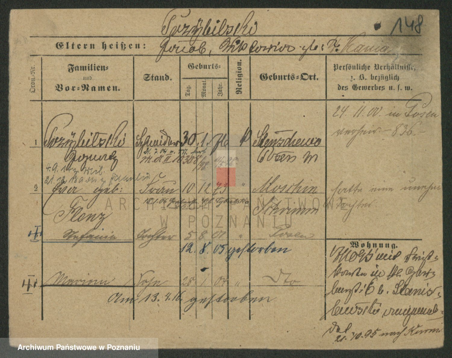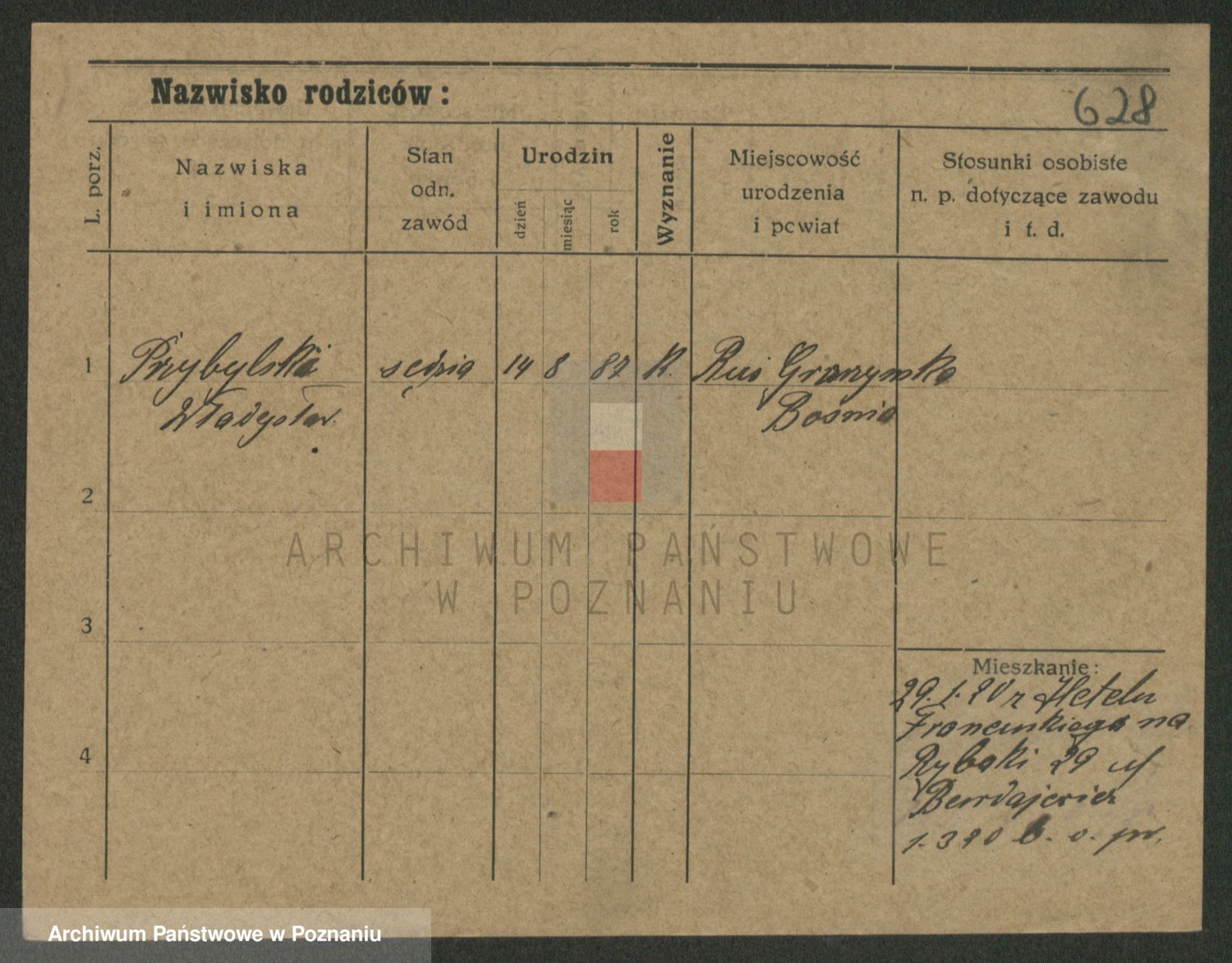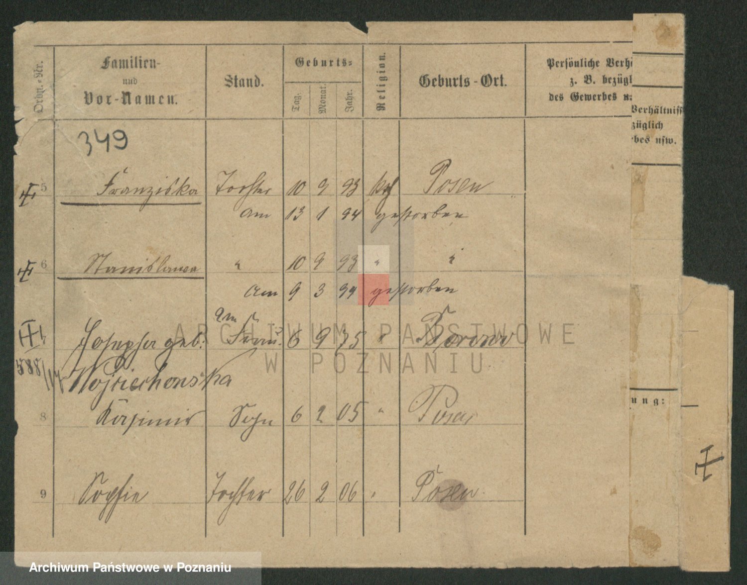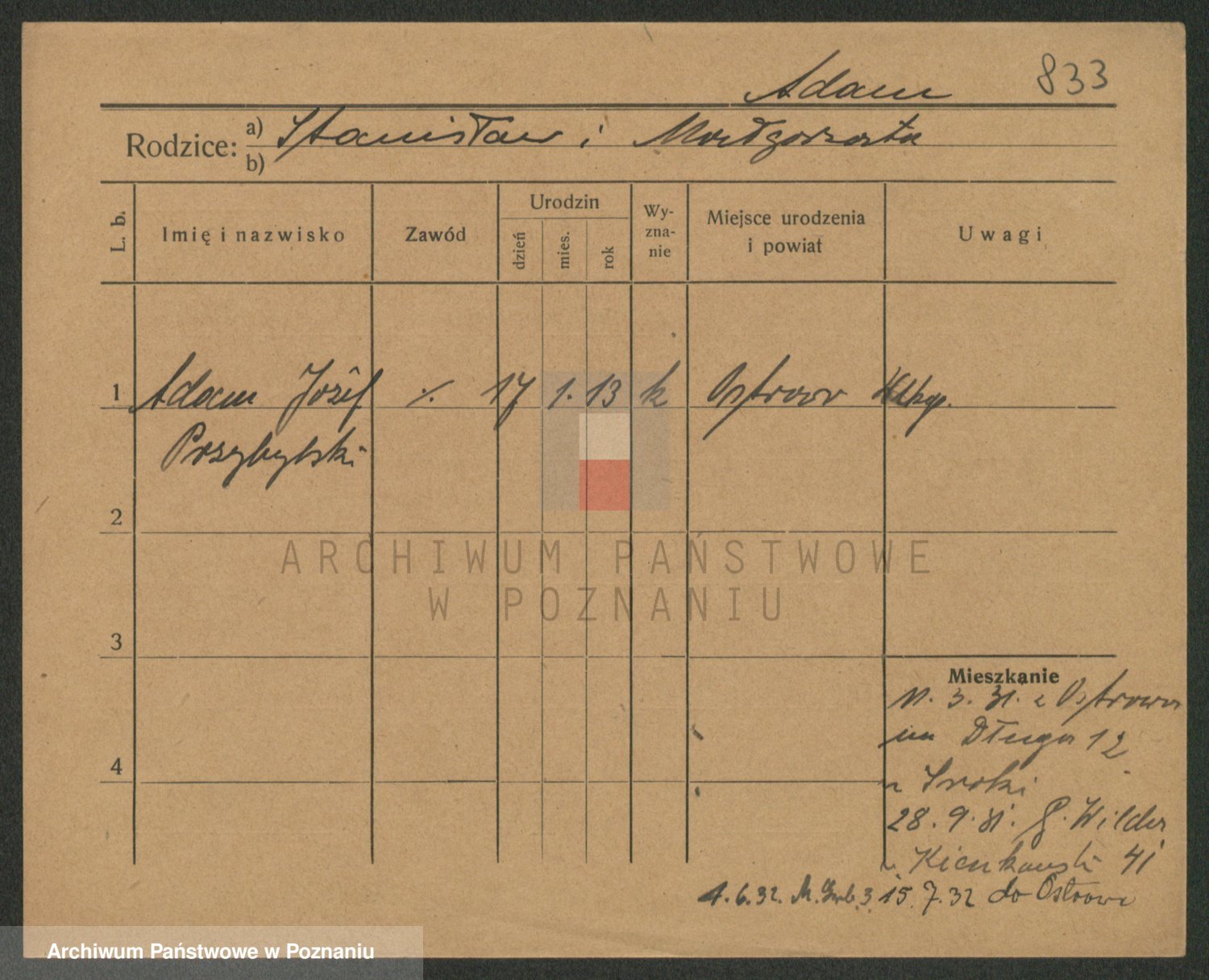 Podgląd karty osobowej dostępny jest po kliknięciu na nazwisko lub ikonkę karty. Można dokonywać powiększenia (ikony na górze) lub przechodzić między kolejnymi skanami (strzałki po bokach).