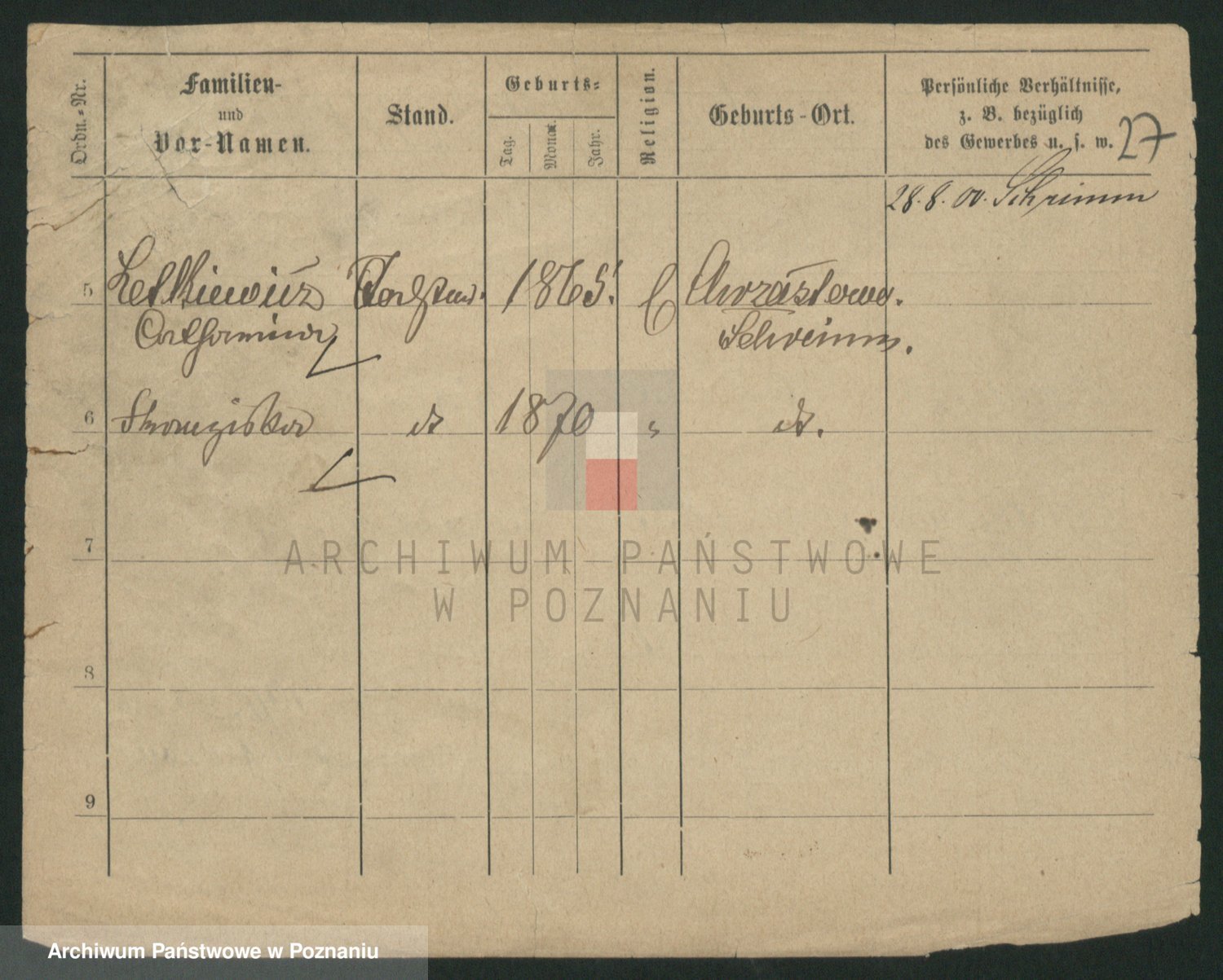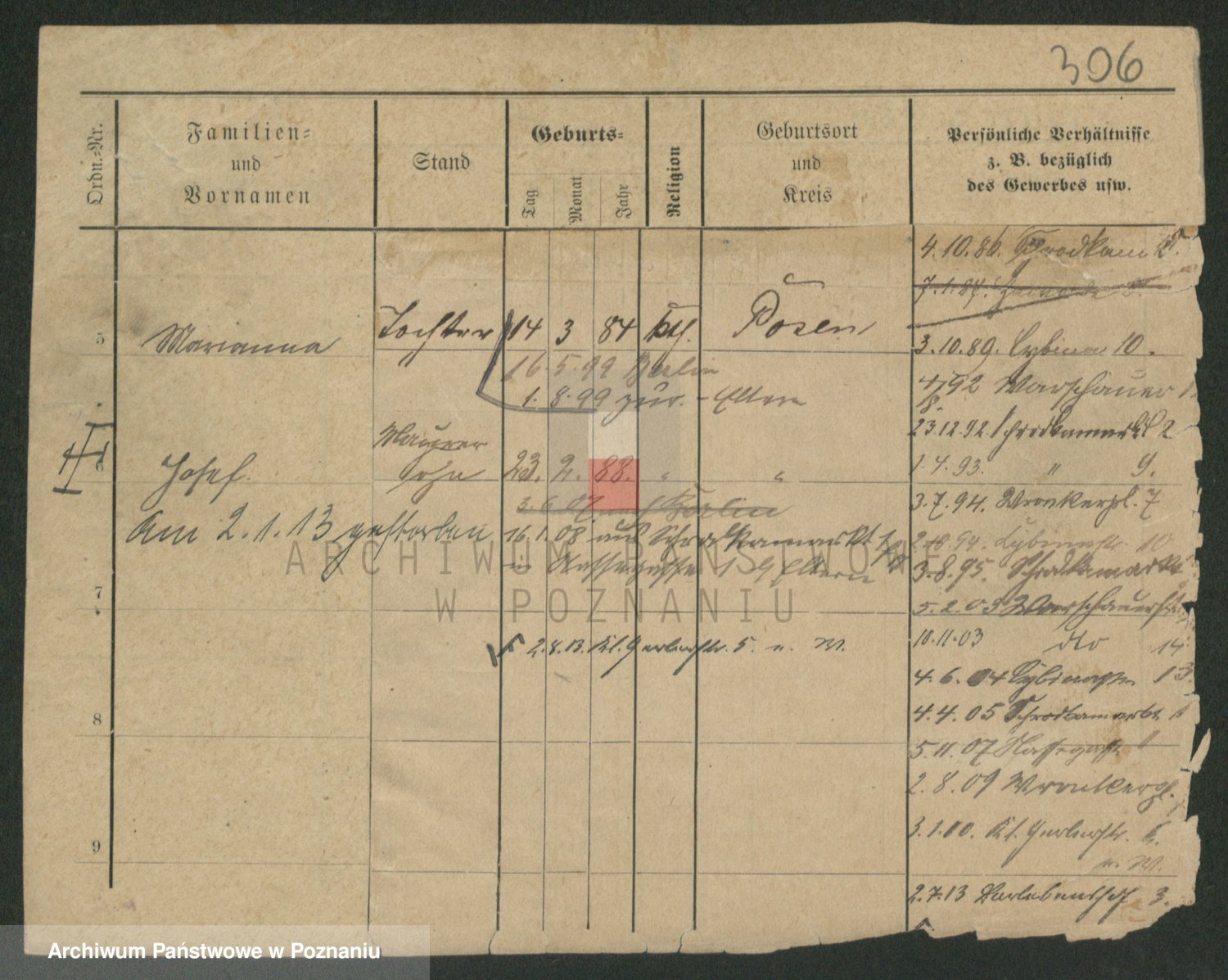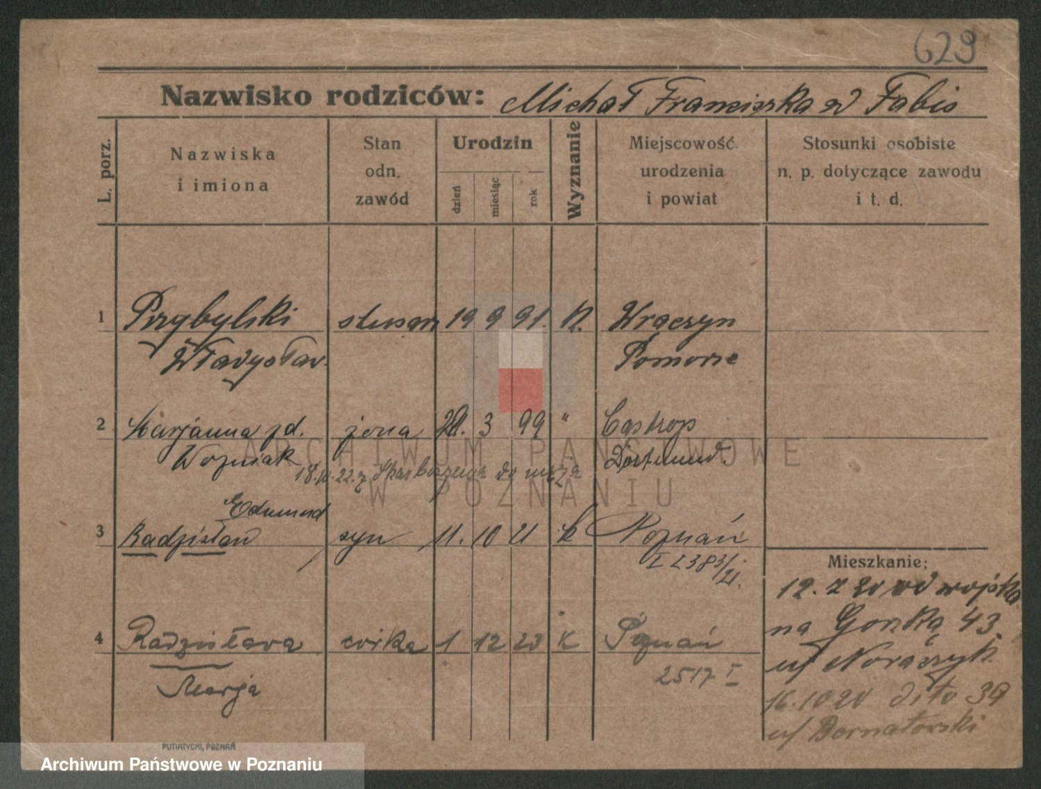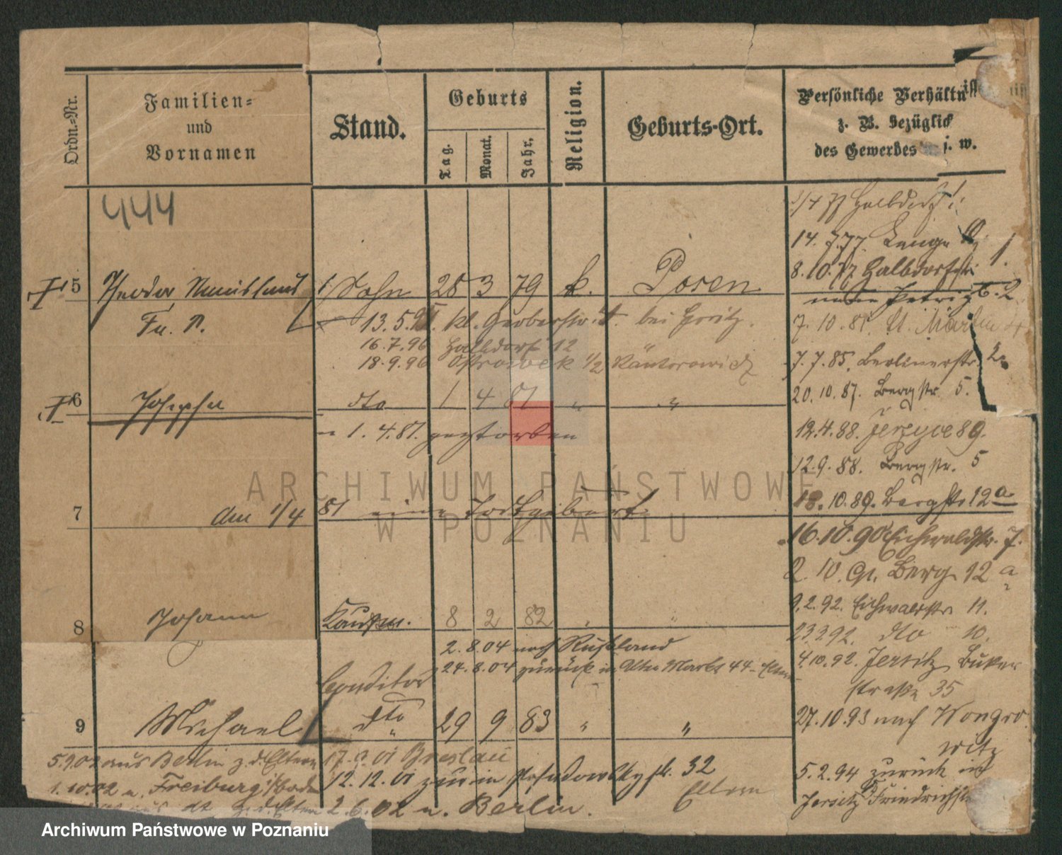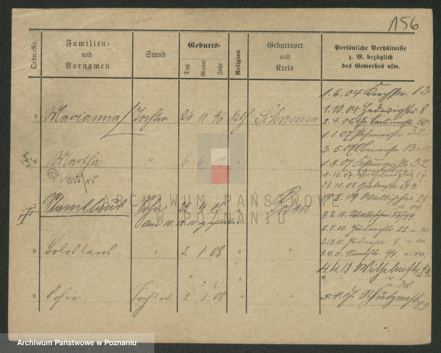 Podgląd karty osobowej dostępny jest po kliknięciu na nazwisko lub ikonkę karty. Można dokonywać powiększenia (ikony na górze) lub przechodzić między kolejnymi skanami (strzałki po bokach).