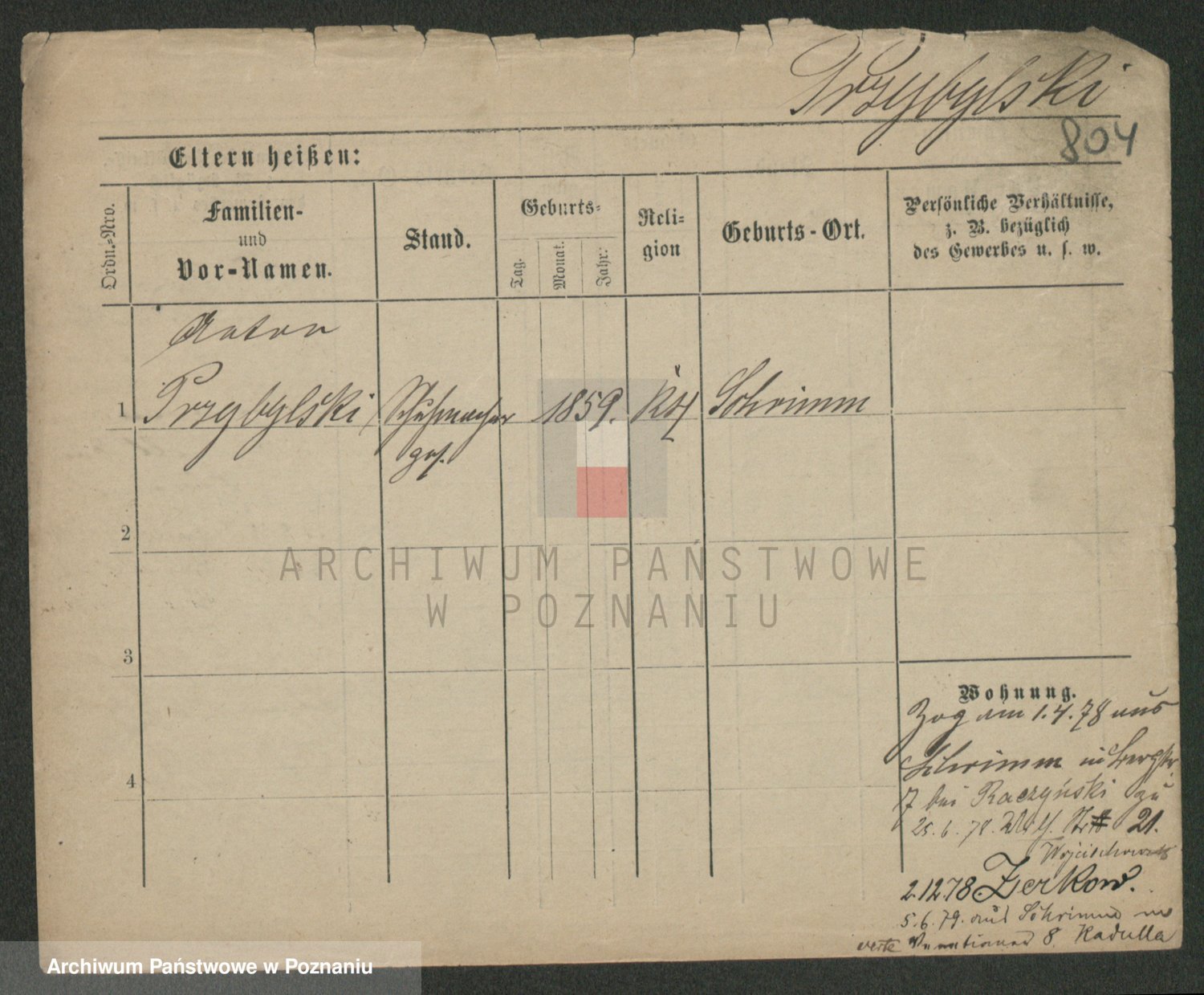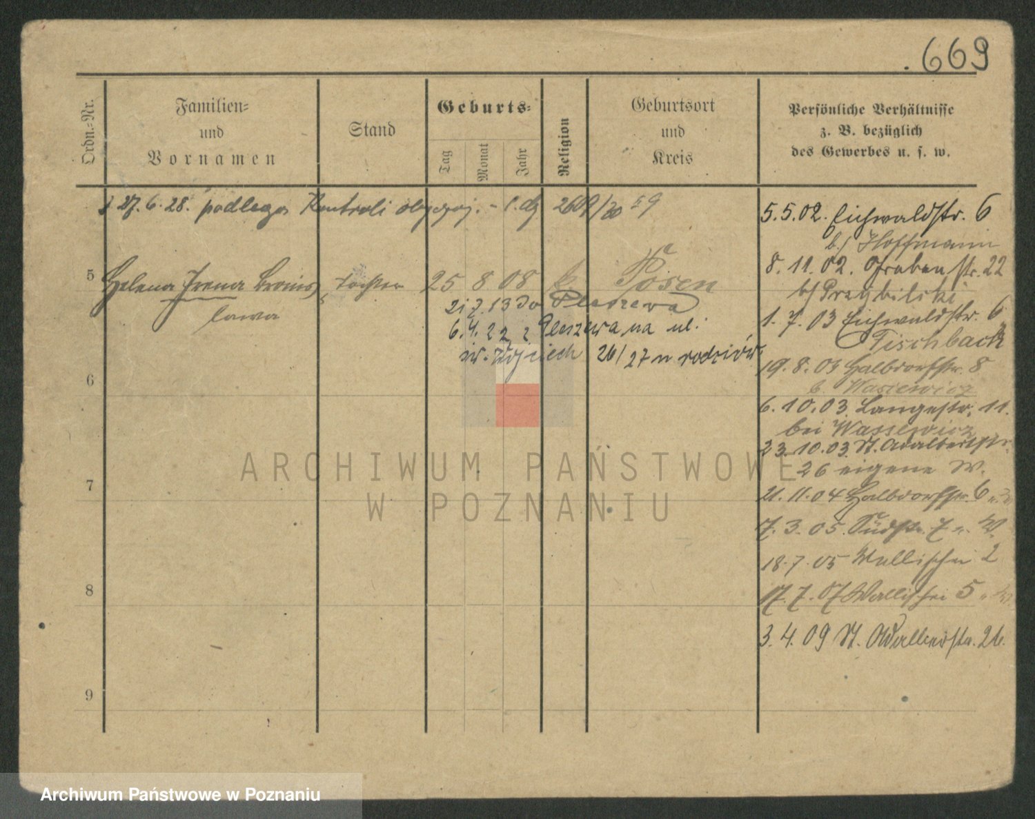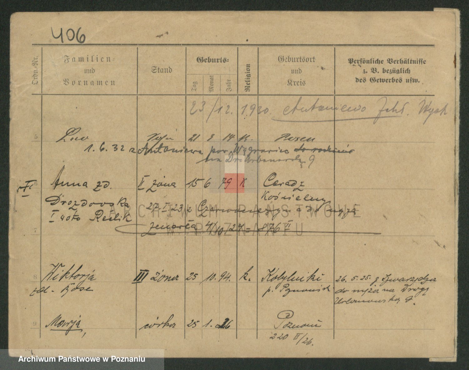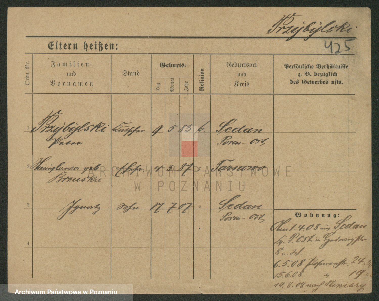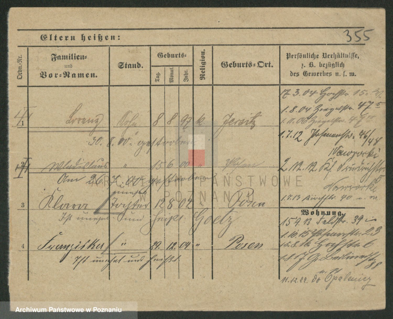 Podgląd karty osobowej dostępny jest po kliknięciu na nazwisko lub ikonkę karty. Można dokonywać powiększenia (ikony na górze) lub przechodzić między kolejnymi skanami (strzałki po bokach).