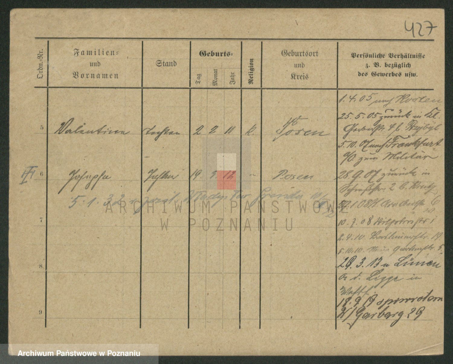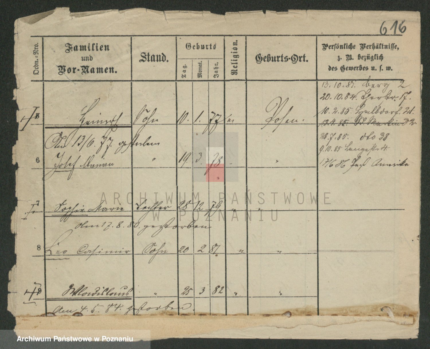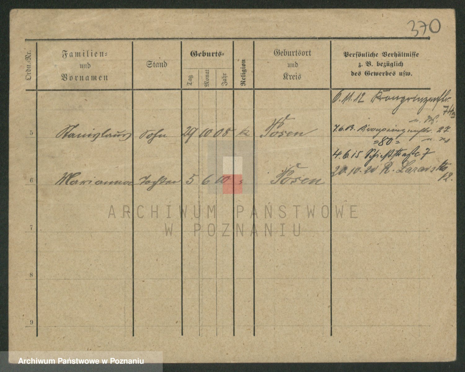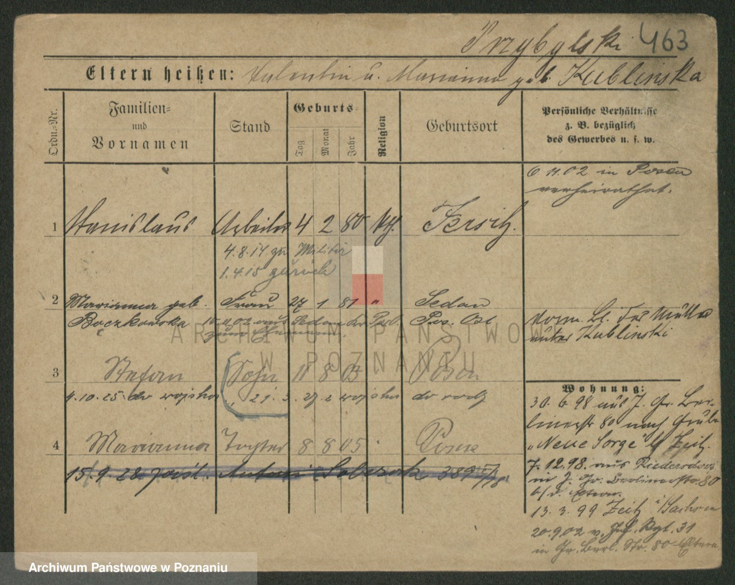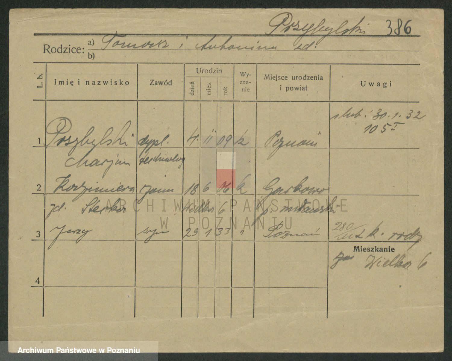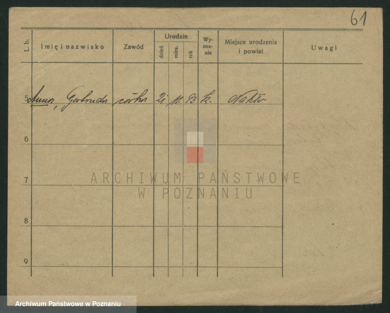 Podgląd karty osobowej dostępny jest po kliknięciu na nazwisko lub ikonkę karty. Można dokonywać powiększenia (ikony na górze) lub przechodzić między kolejnymi skanami (strzałki po bokach).