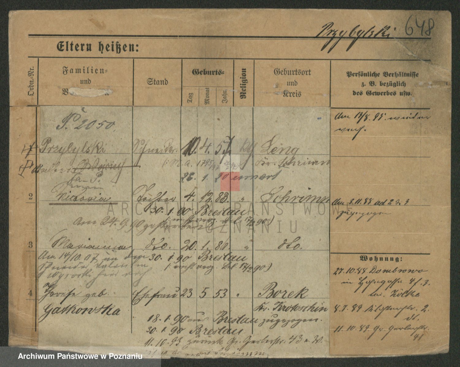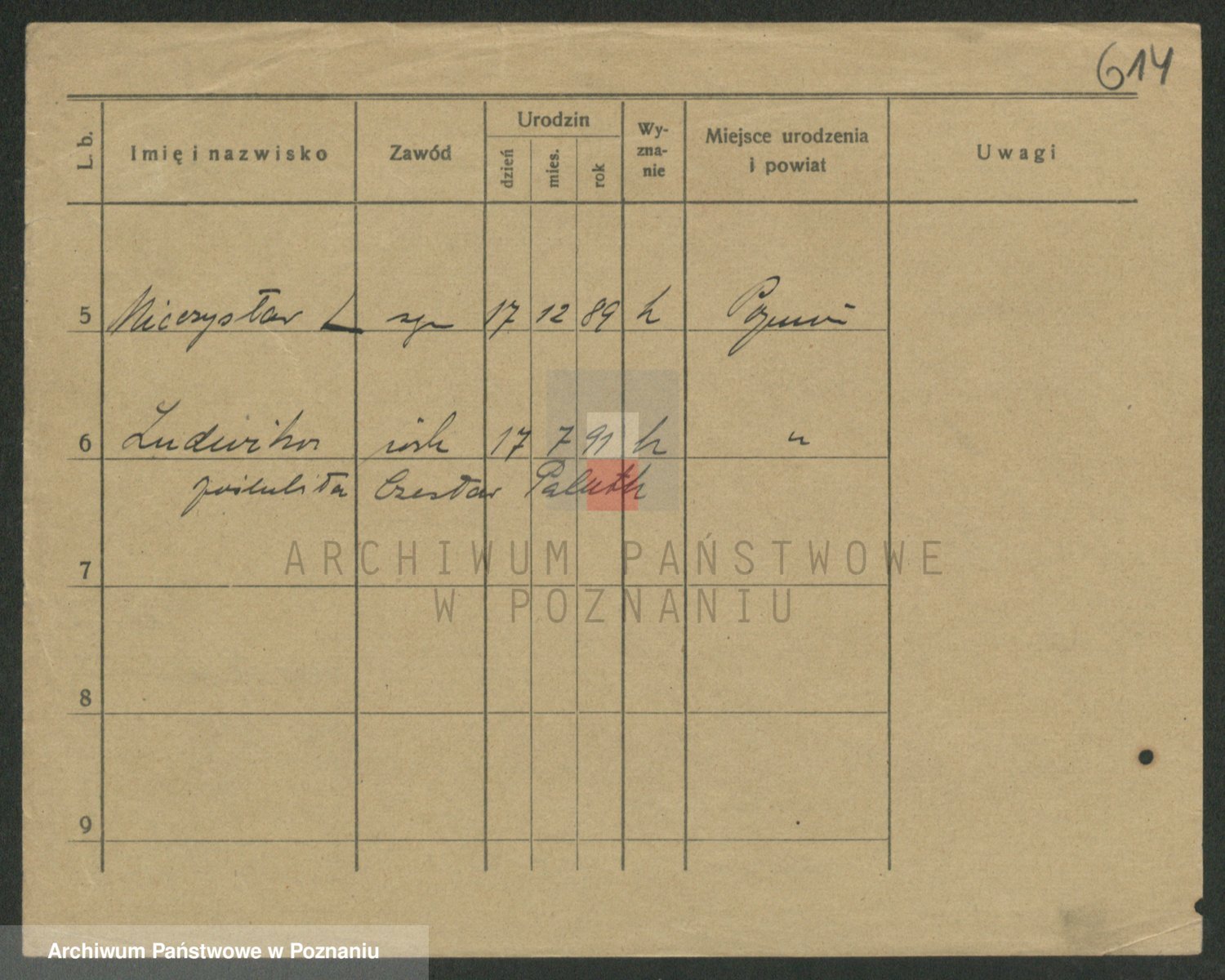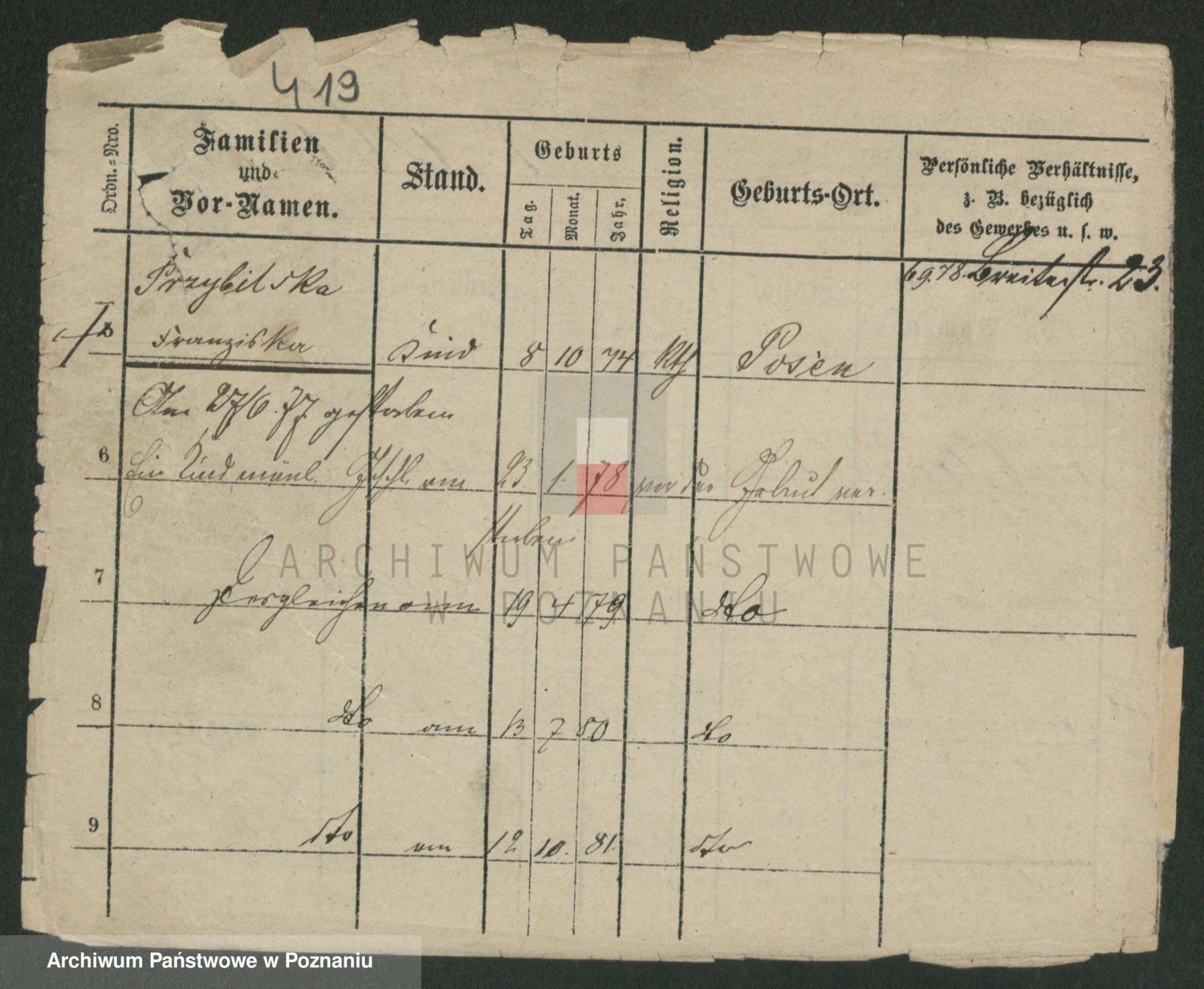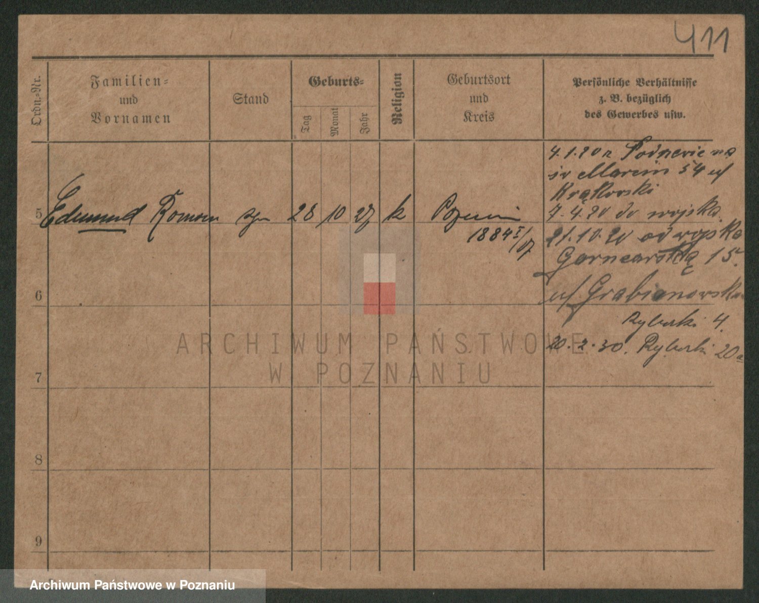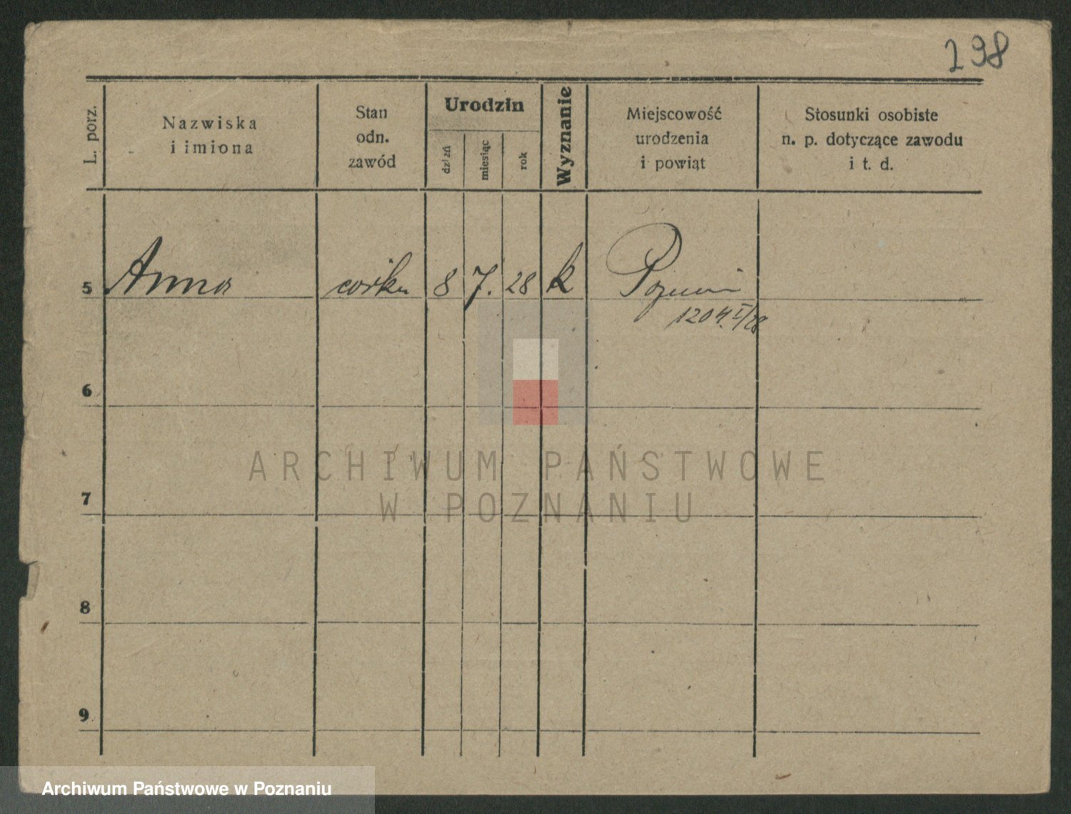 Podgląd karty osobowej dostępny jest po kliknięciu na nazwisko lub ikonkę karty. Można dokonywać powiększenia (ikony na górze) lub przechodzić między kolejnymi skanami (strzałki po bokach).