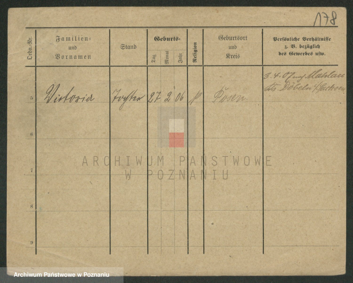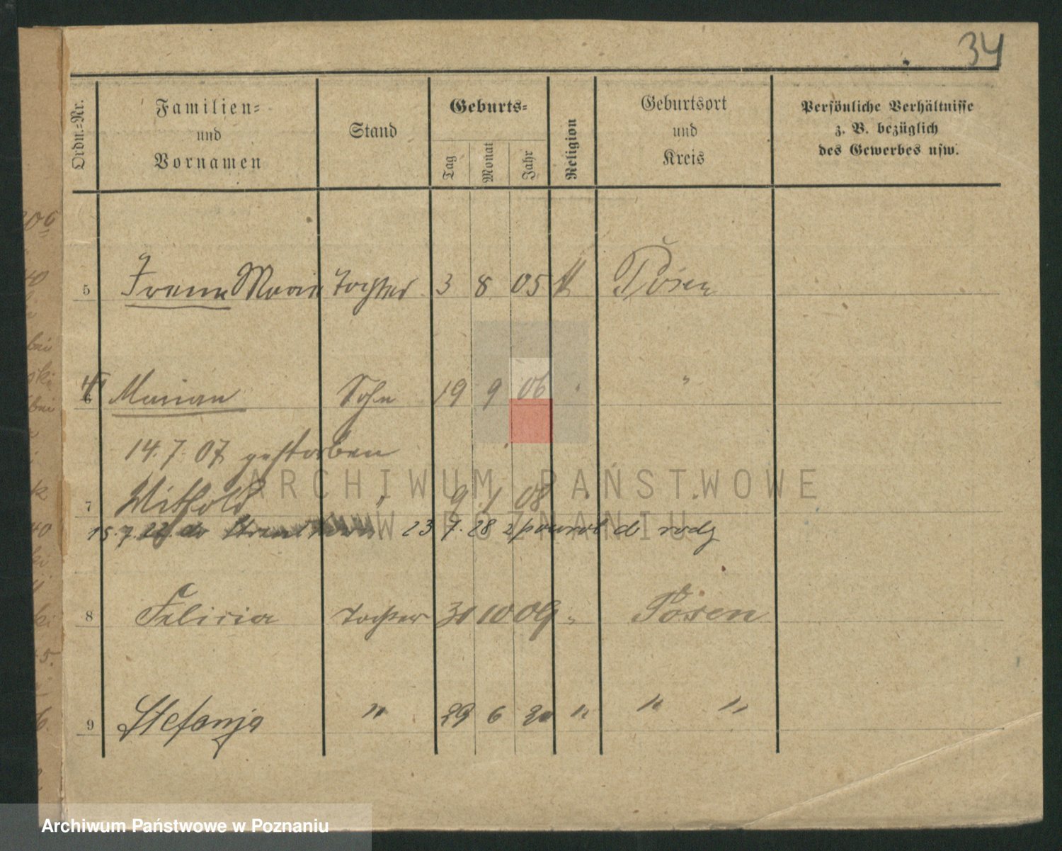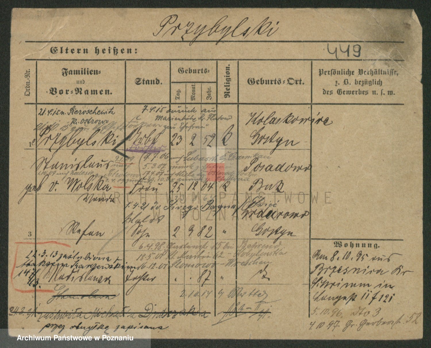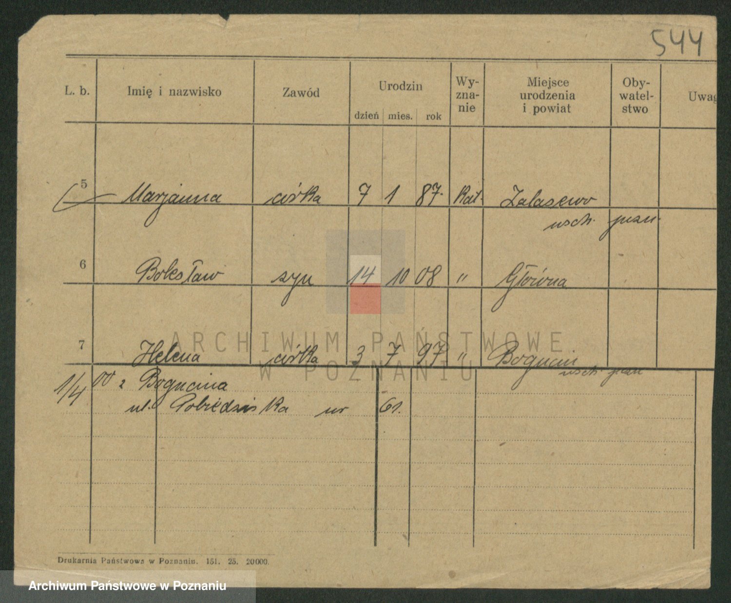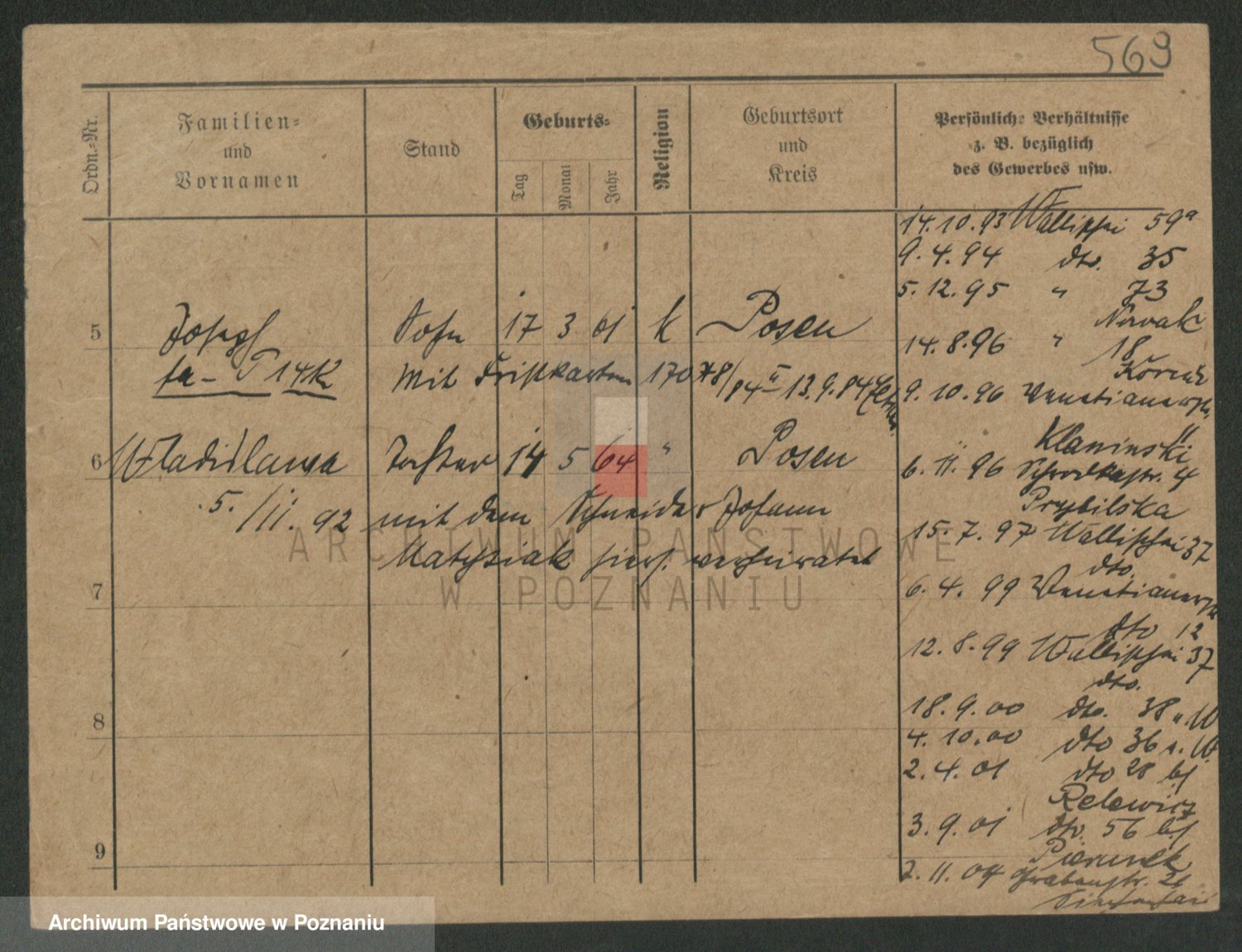 Podgląd karty osobowej dostępny jest po kliknięciu na nazwisko lub ikonkę karty. Można dokonywać powiększenia (ikony na górze) lub przechodzić między kolejnymi skanami (strzałki po bokach).