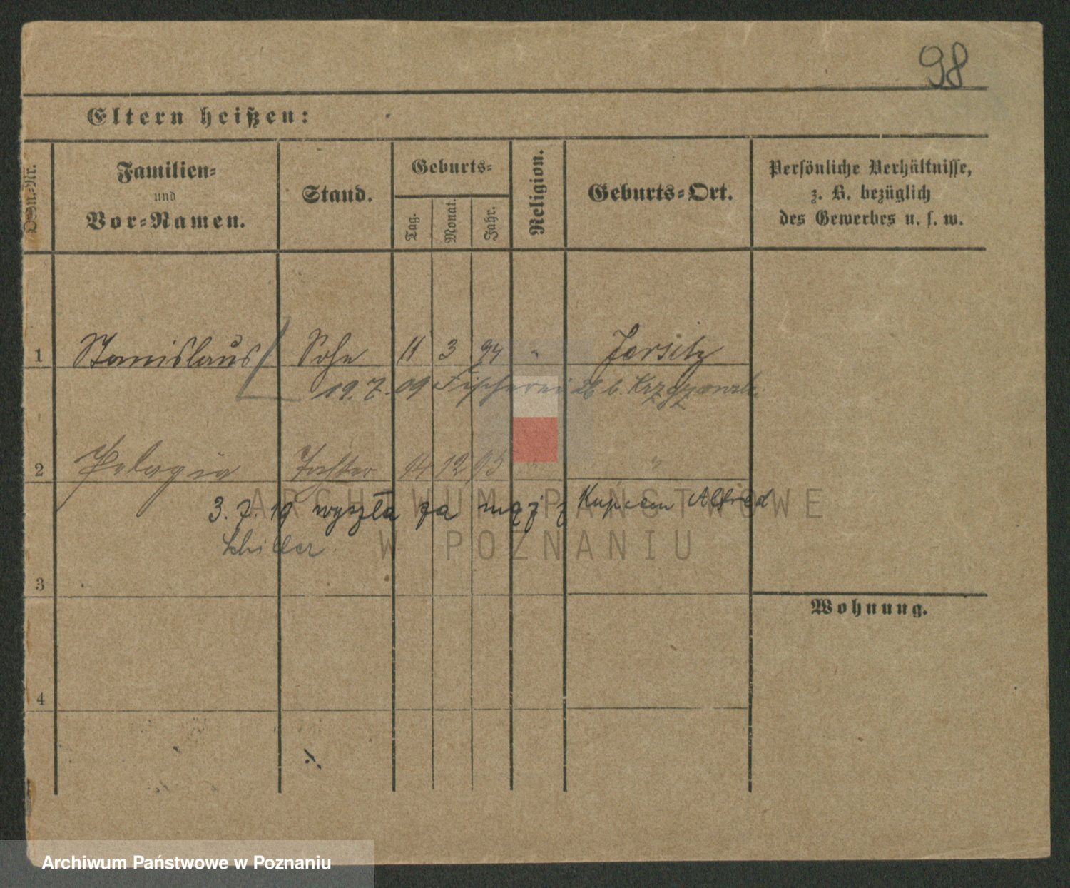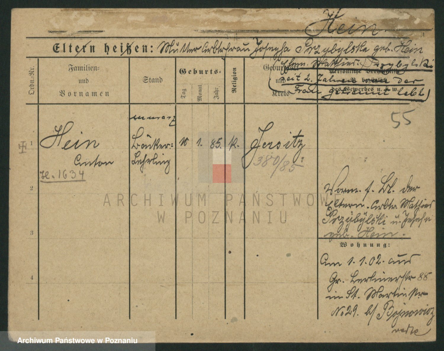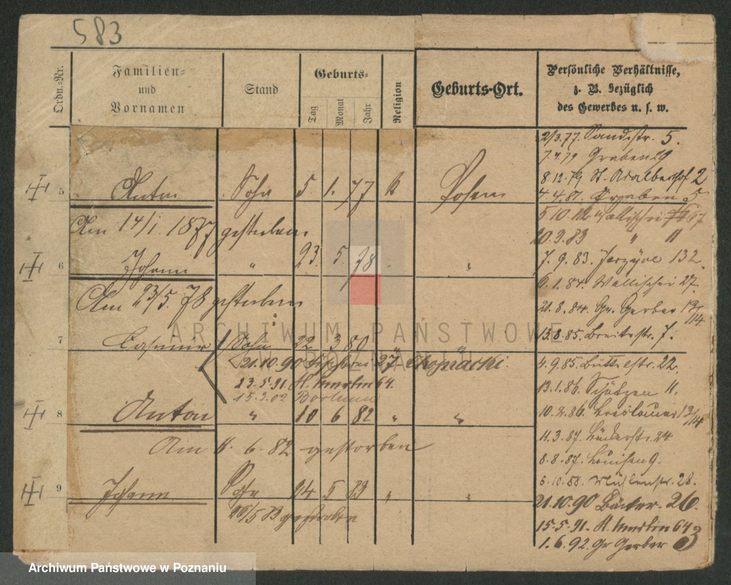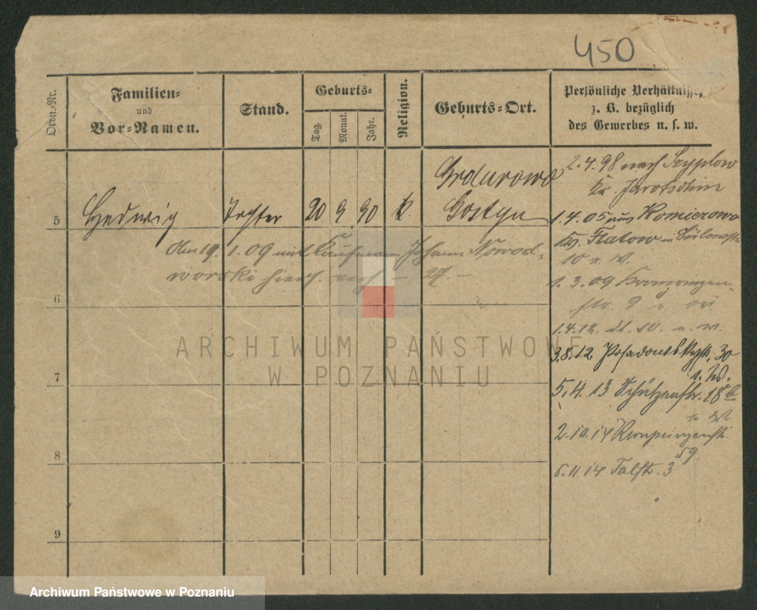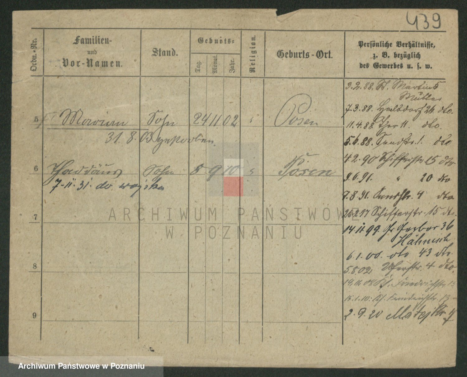 Podgląd karty osobowej dostępny jest po kliknięciu na nazwisko lub ikonkę karty. Można dokonywać powiększenia (ikony na górze) lub przechodzić między kolejnymi skanami (strzałki po bokach).