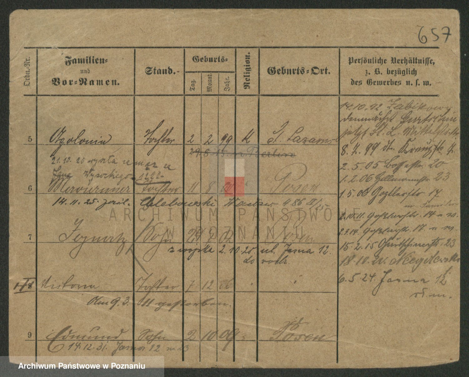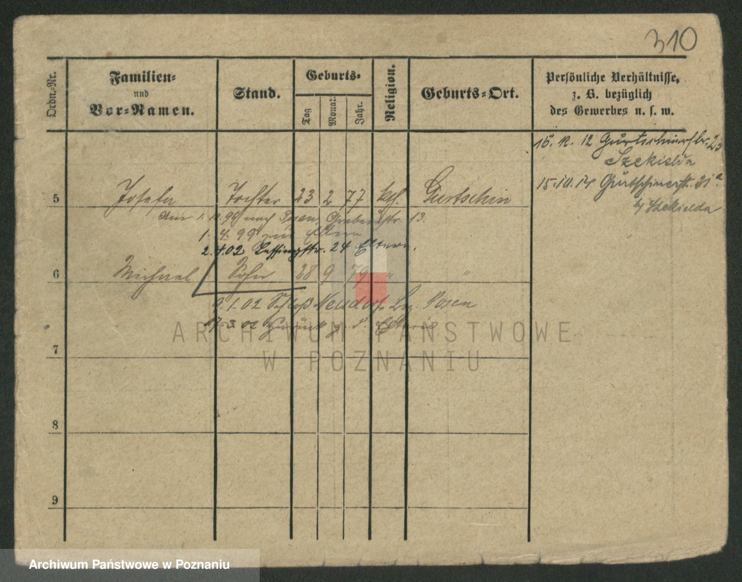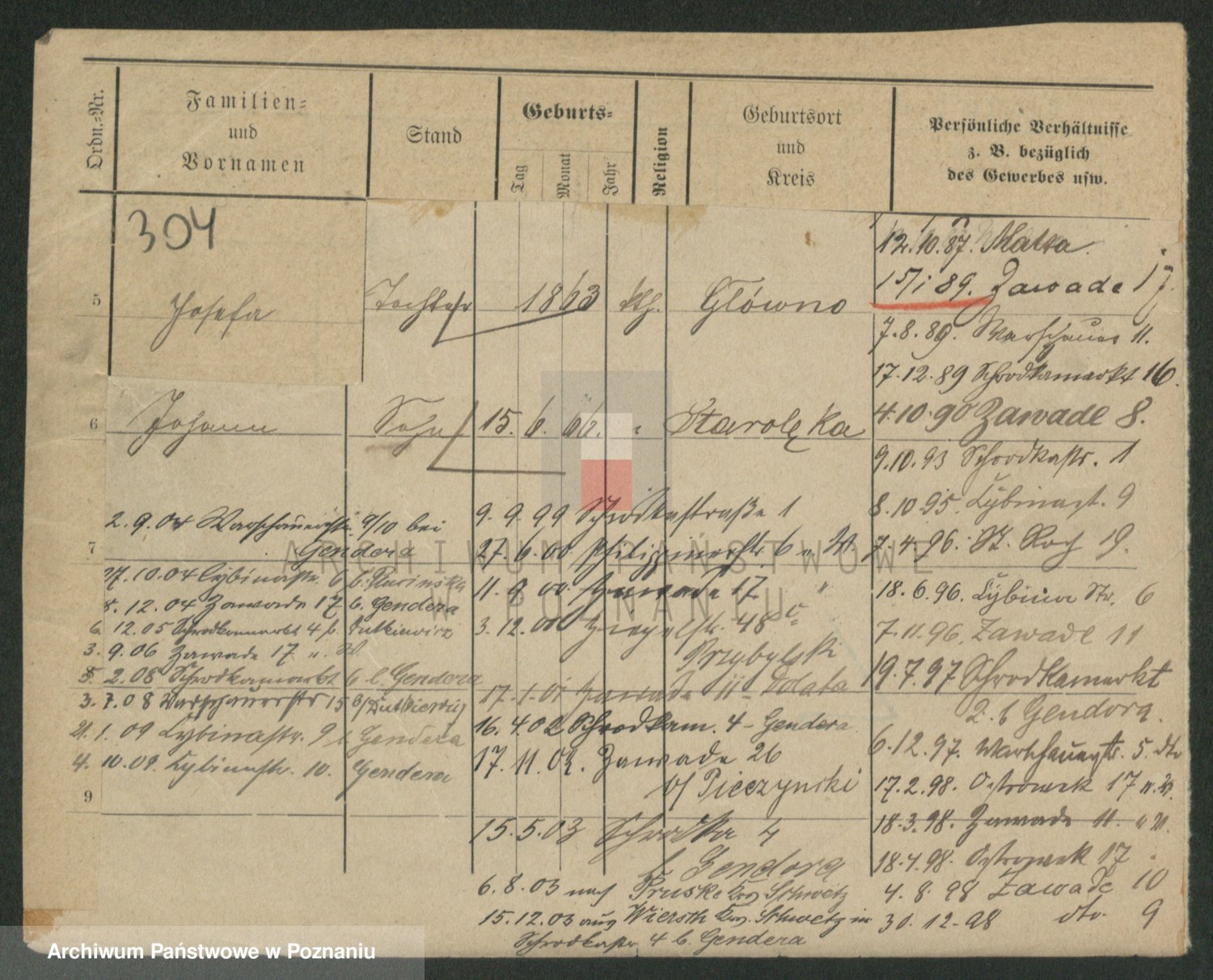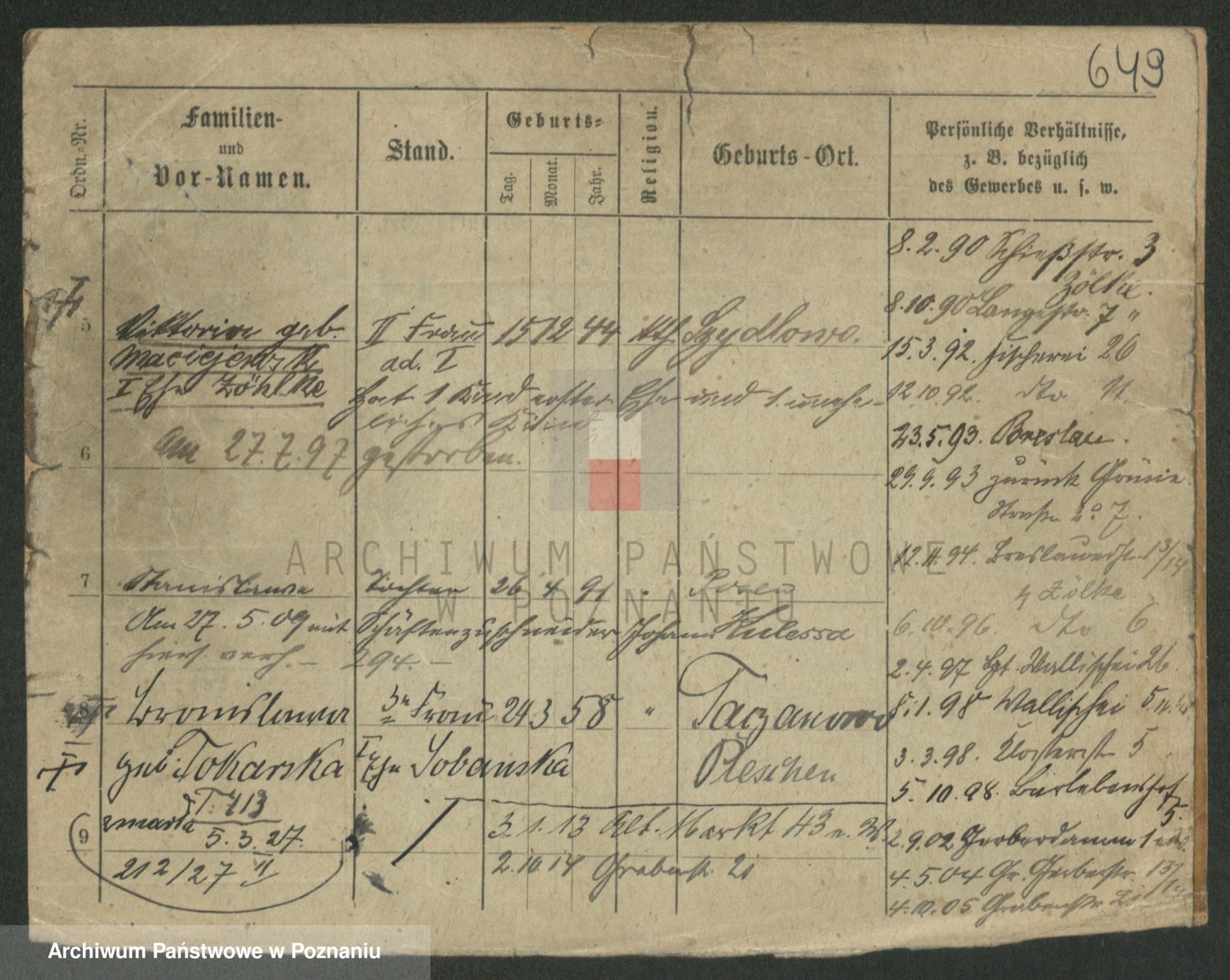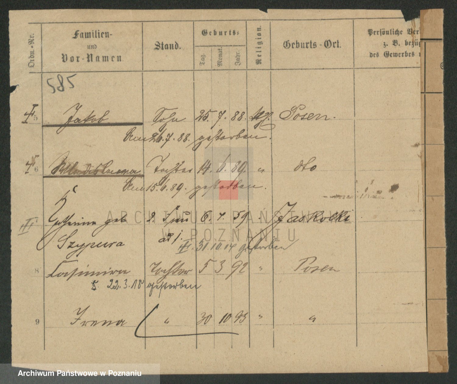Podgląd karty osobowej dostępny jest po kliknięciu na nazwisko lub ikonkę karty. Można dokonywać powiększenia (ikony na górze) lub przechodzić między kolejnymi skanami (strzałki po bokach).
