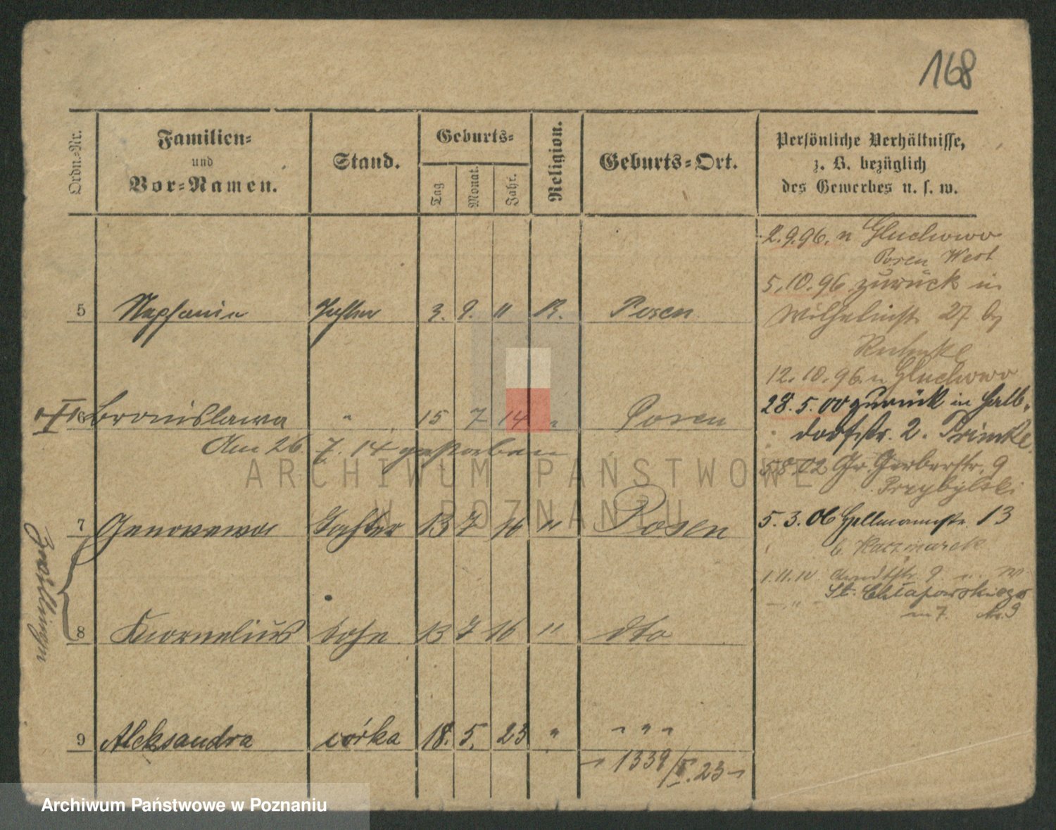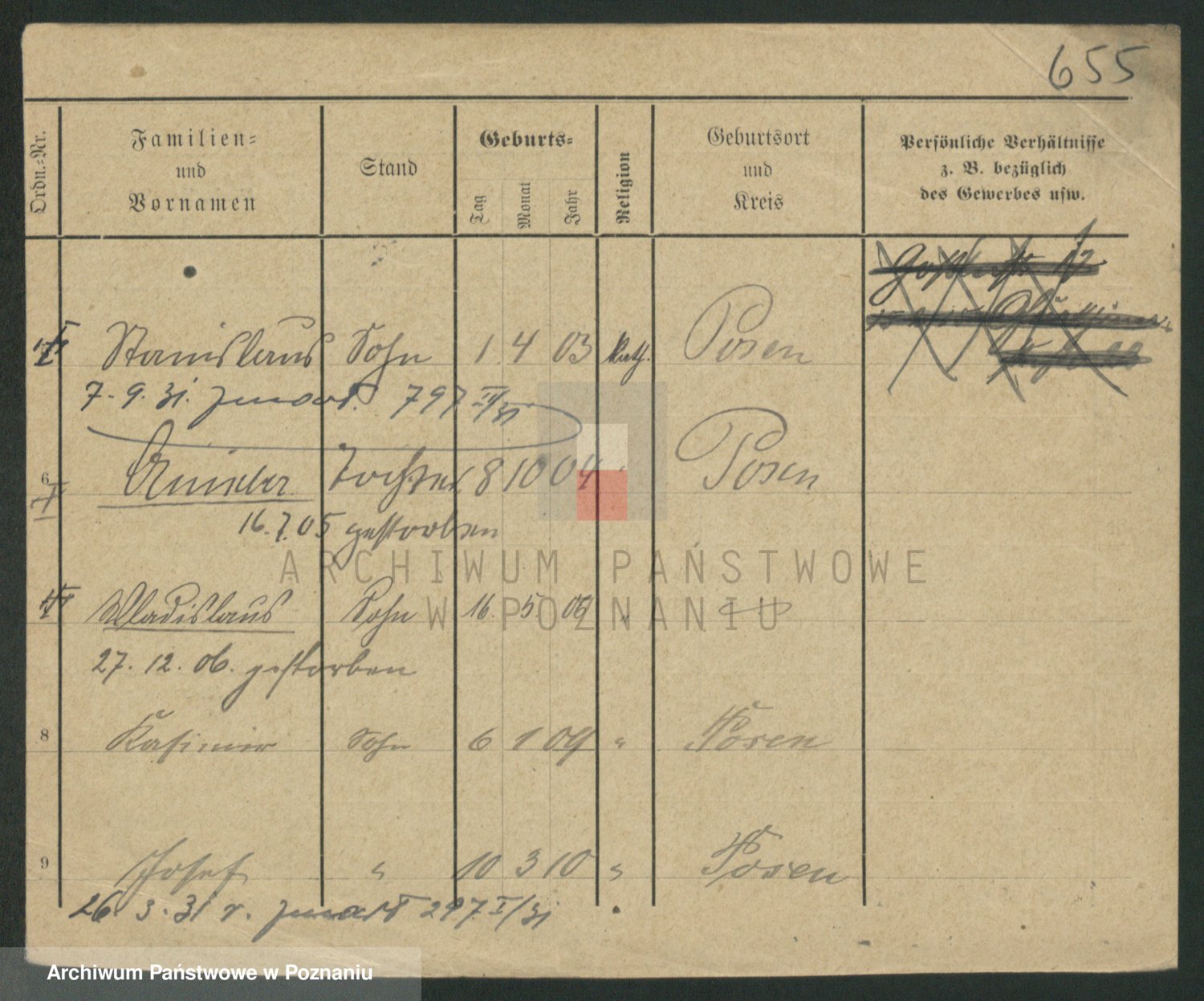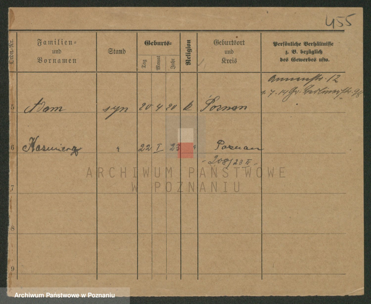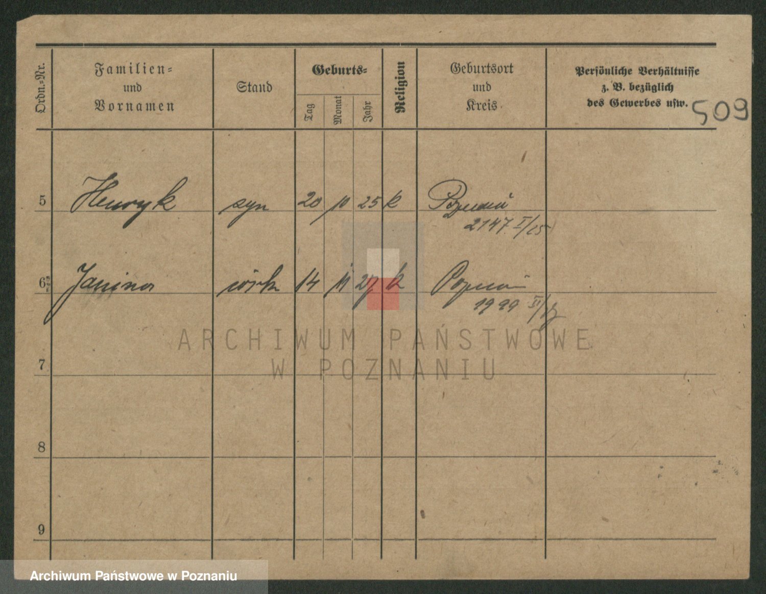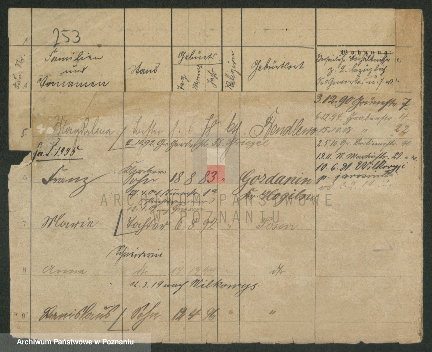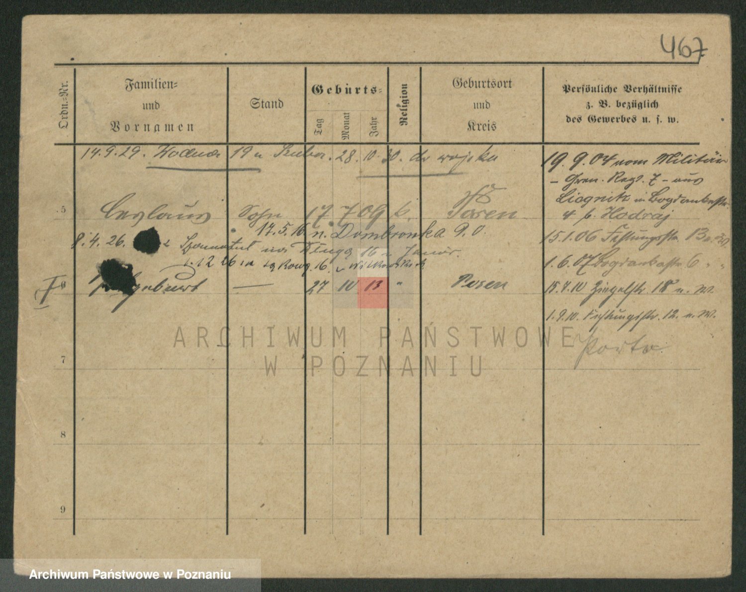 Podgląd karty osobowej dostępny jest po kliknięciu na nazwisko lub ikonkę karty. Można dokonywać powiększenia (ikony na górze) lub przechodzić między kolejnymi skanami (strzałki po bokach).