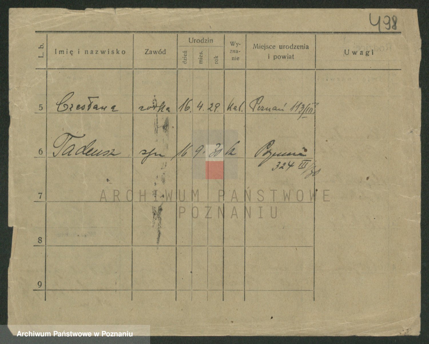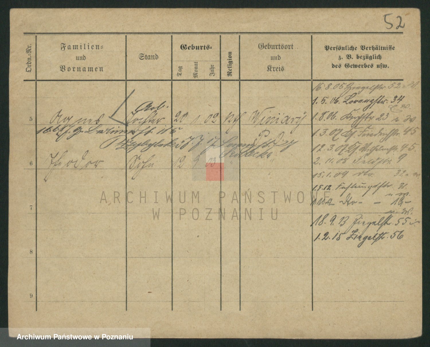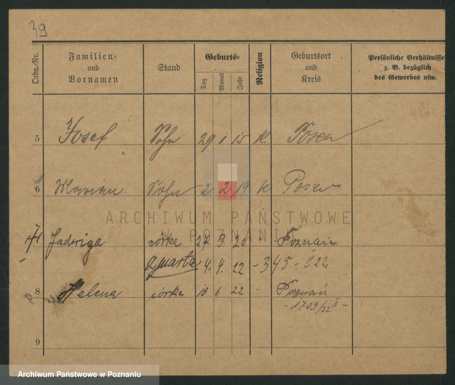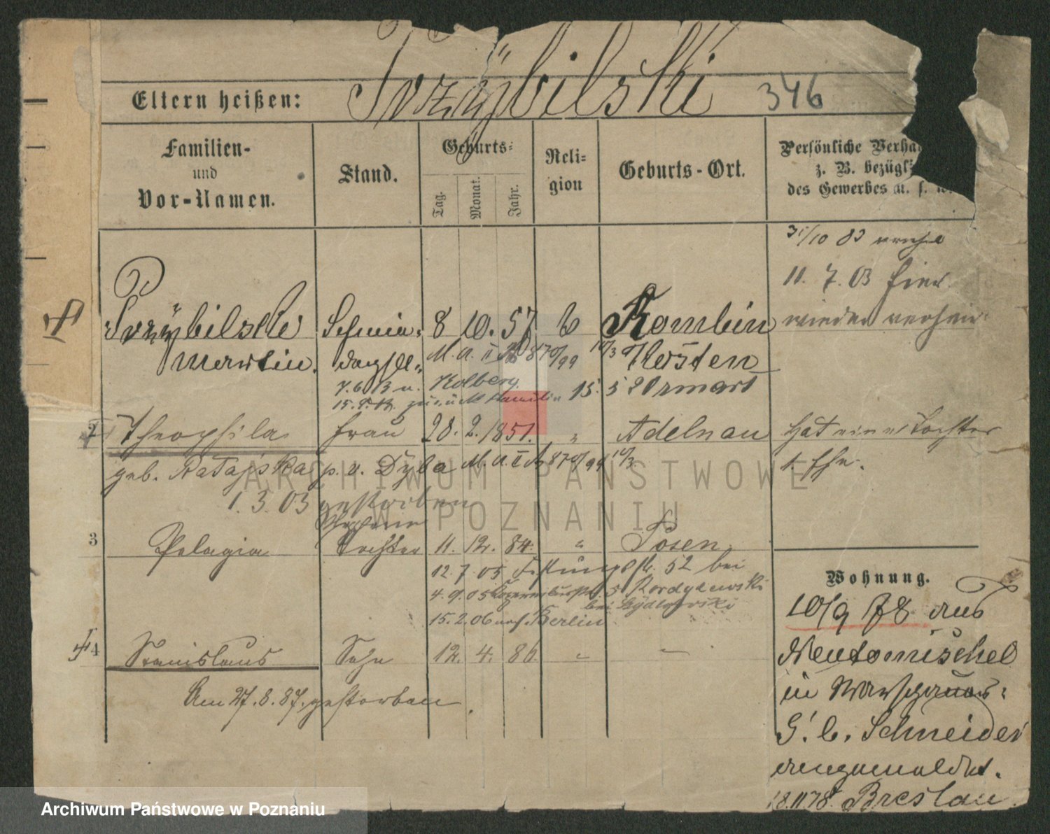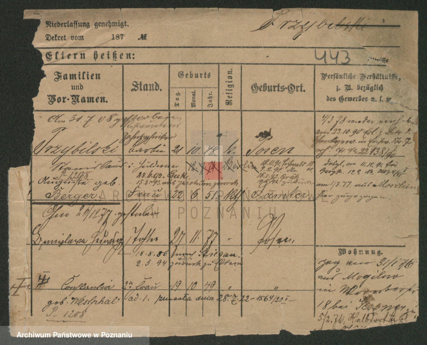 Podgląd karty osobowej dostępny jest po kliknięciu na nazwisko lub ikonkę karty. Można dokonywać powiększenia (ikony na górze) lub przechodzić między kolejnymi skanami (strzałki po bokach).