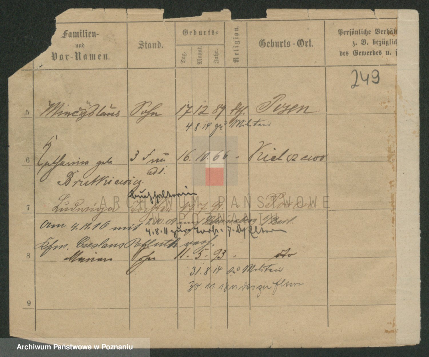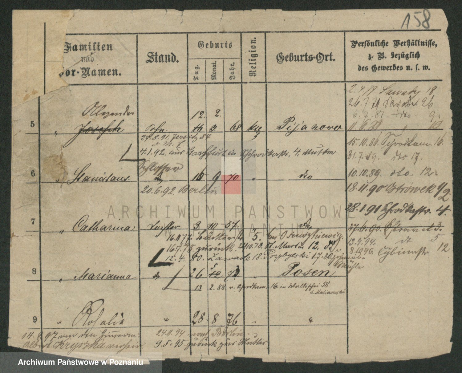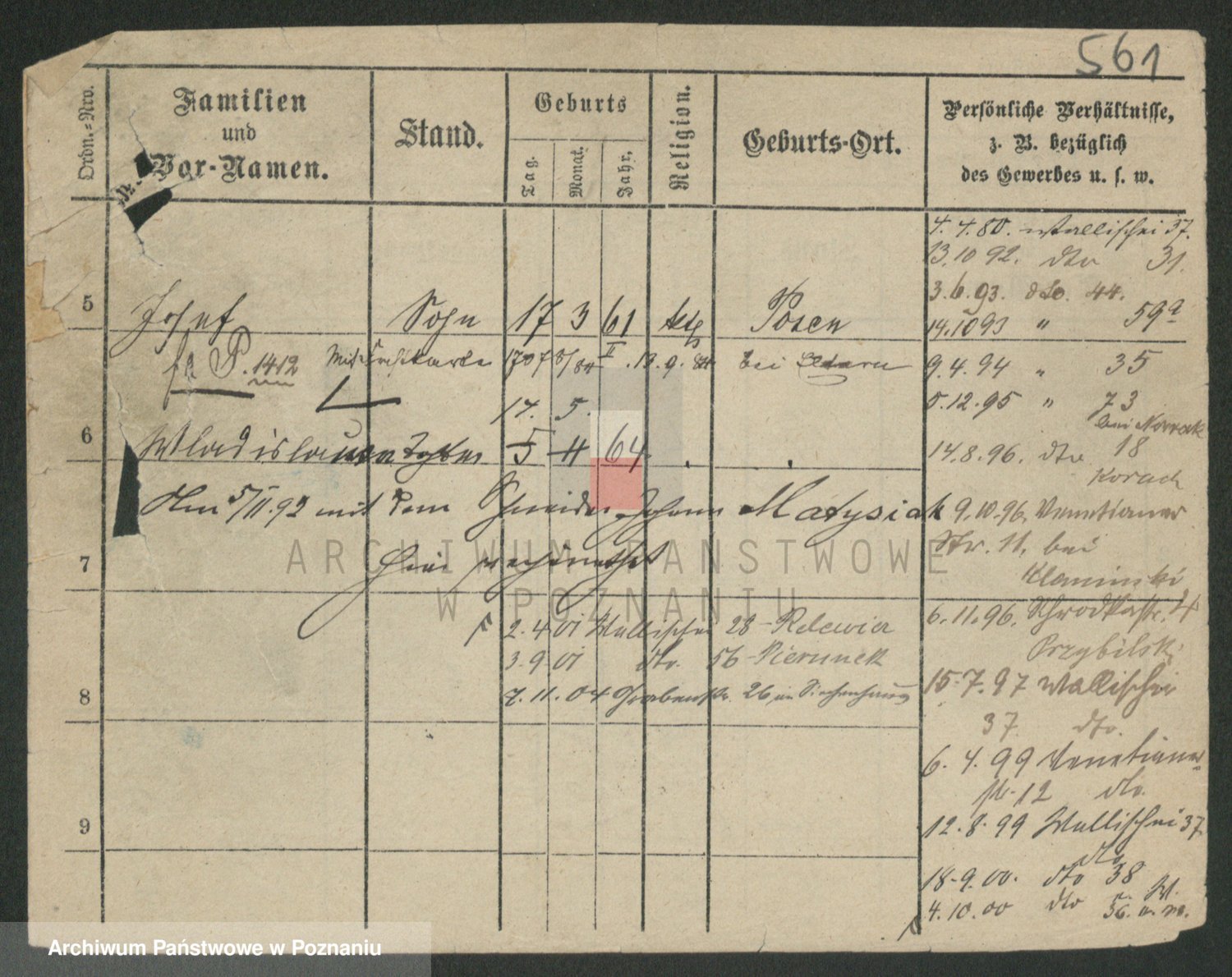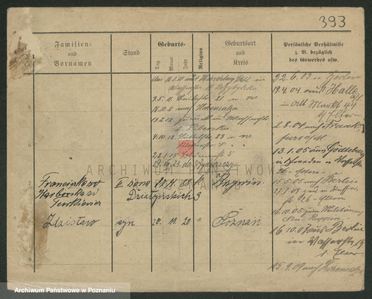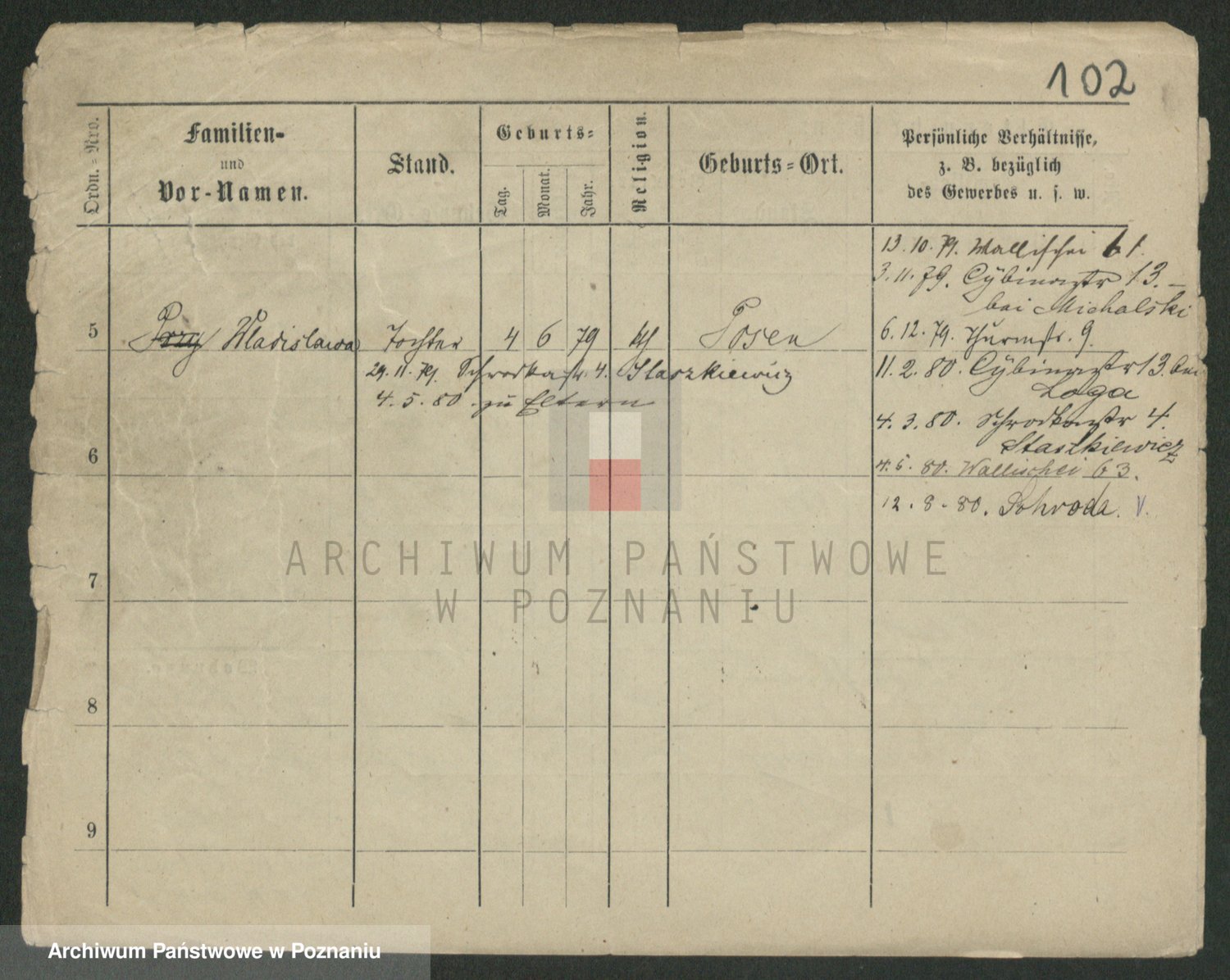 Podgląd karty osobowej dostępny jest po kliknięciu na nazwisko lub ikonkę karty. Można dokonywać powiększenia (ikony na górze) lub przechodzić między kolejnymi skanami (strzałki po bokach).