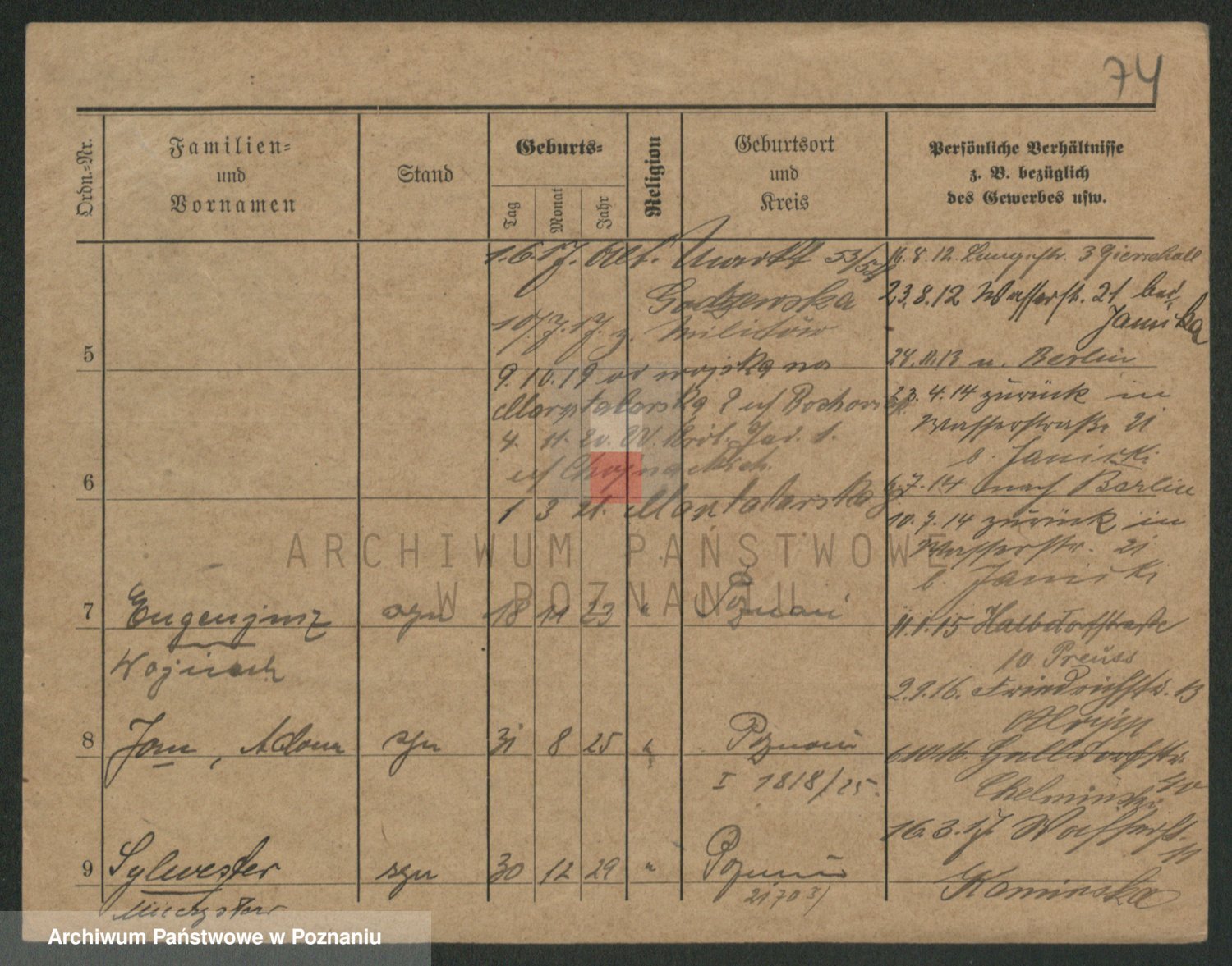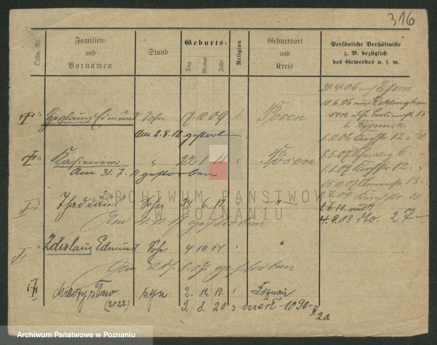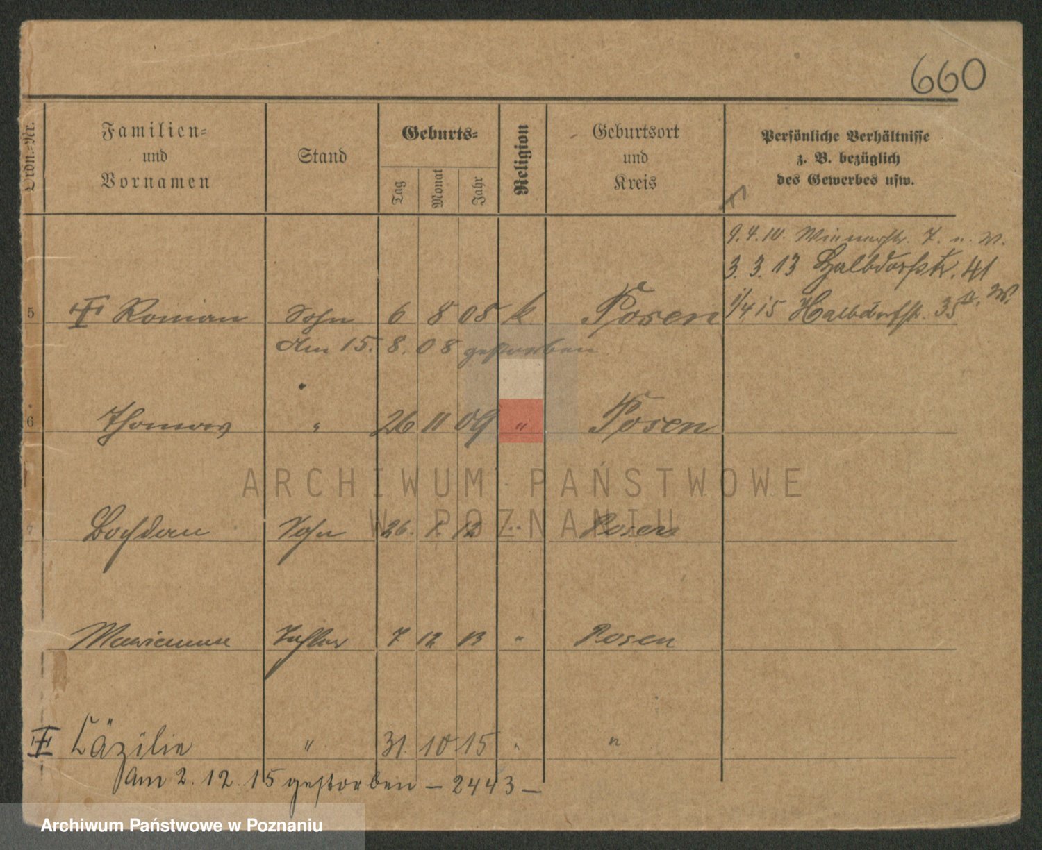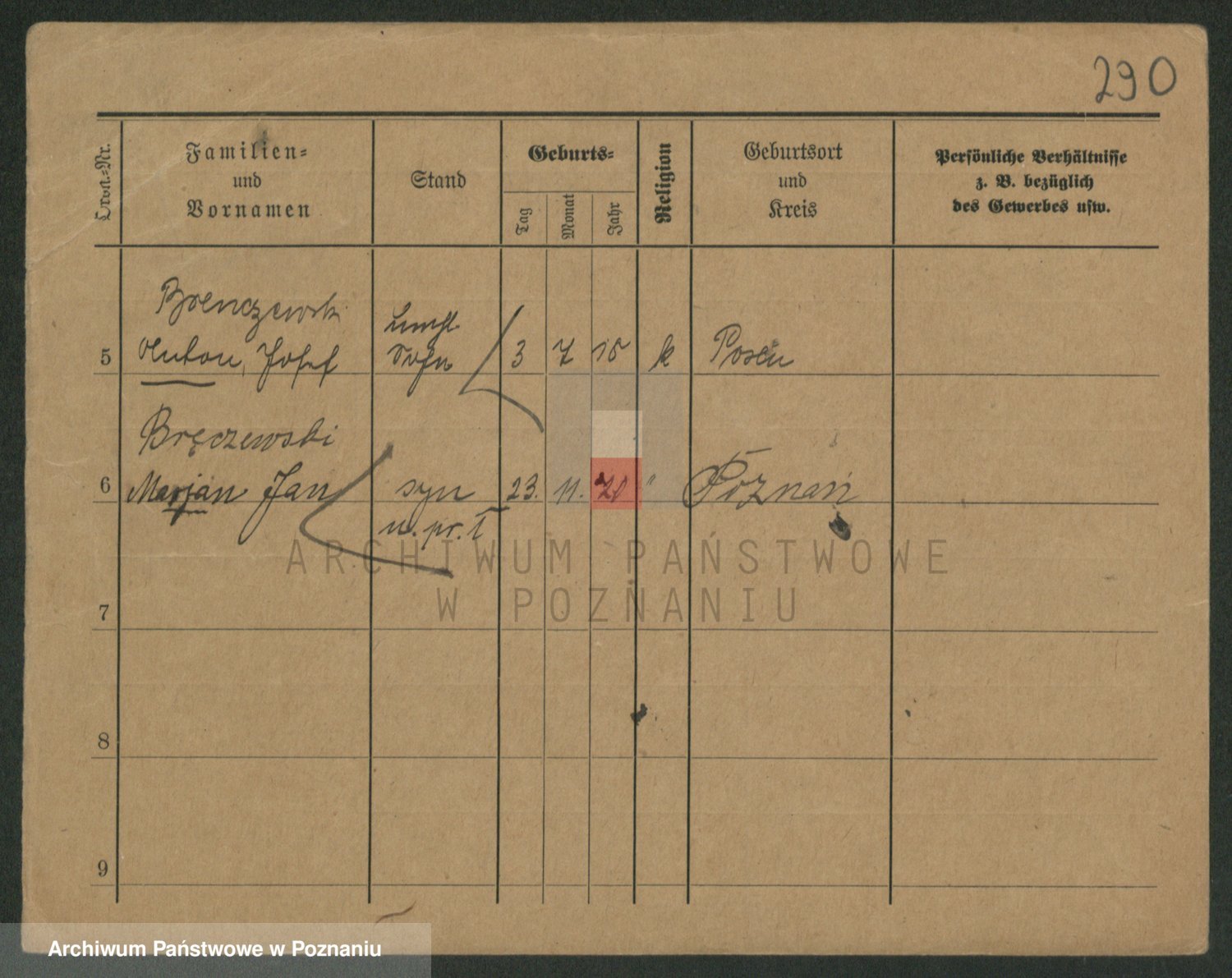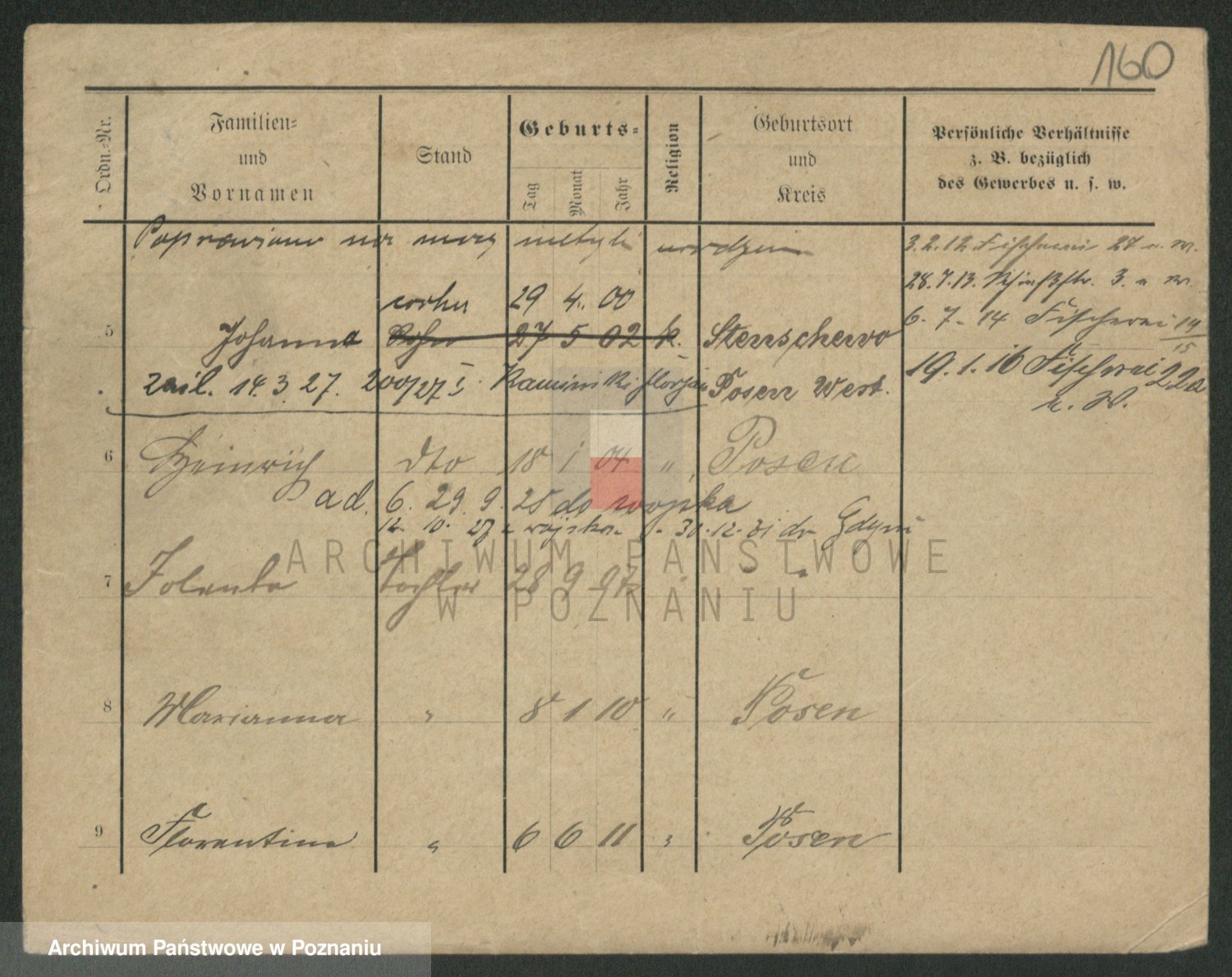 Podgląd karty osobowej dostępny jest po kliknięciu na nazwisko lub ikonkę karty. Można dokonywać powiększenia (ikony na górze) lub przechodzić między kolejnymi skanami (strzałki po bokach).