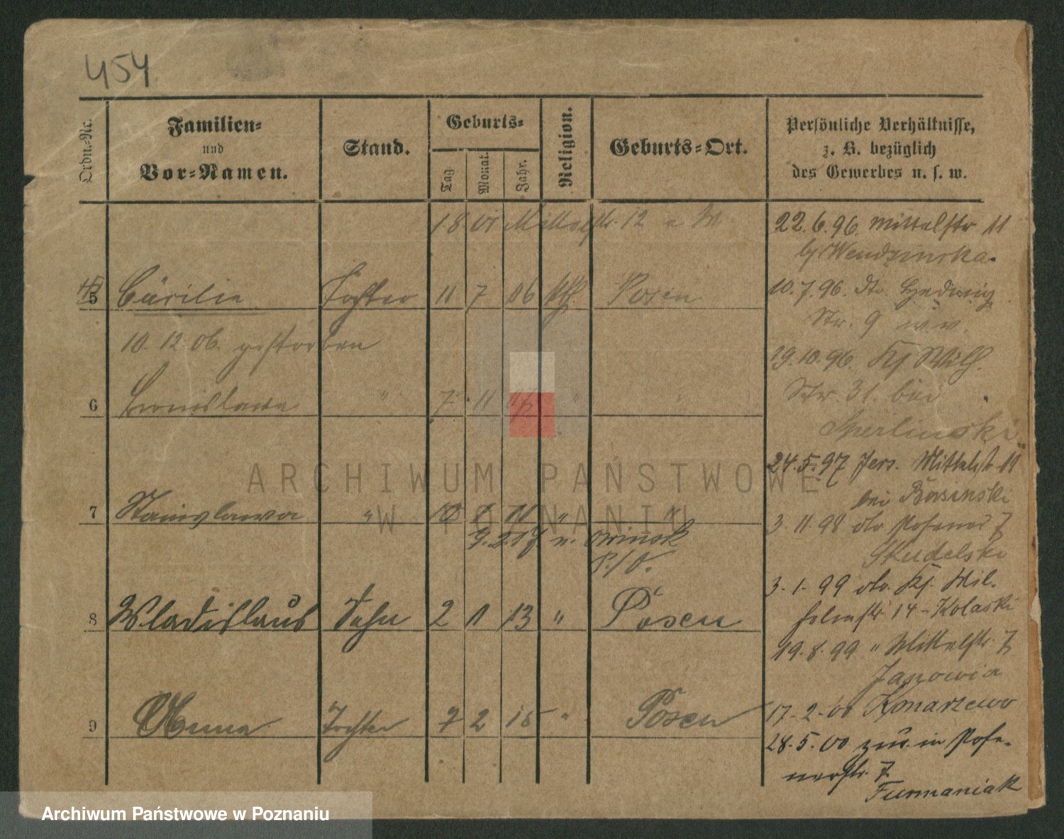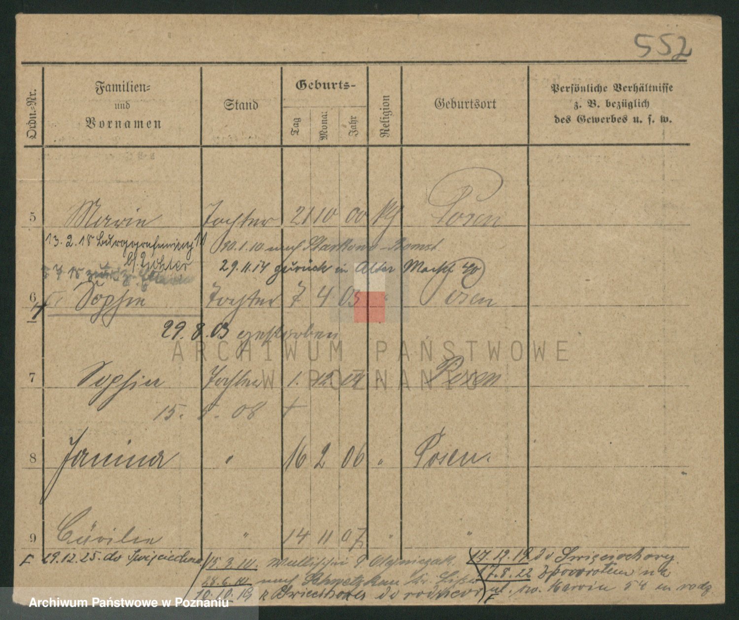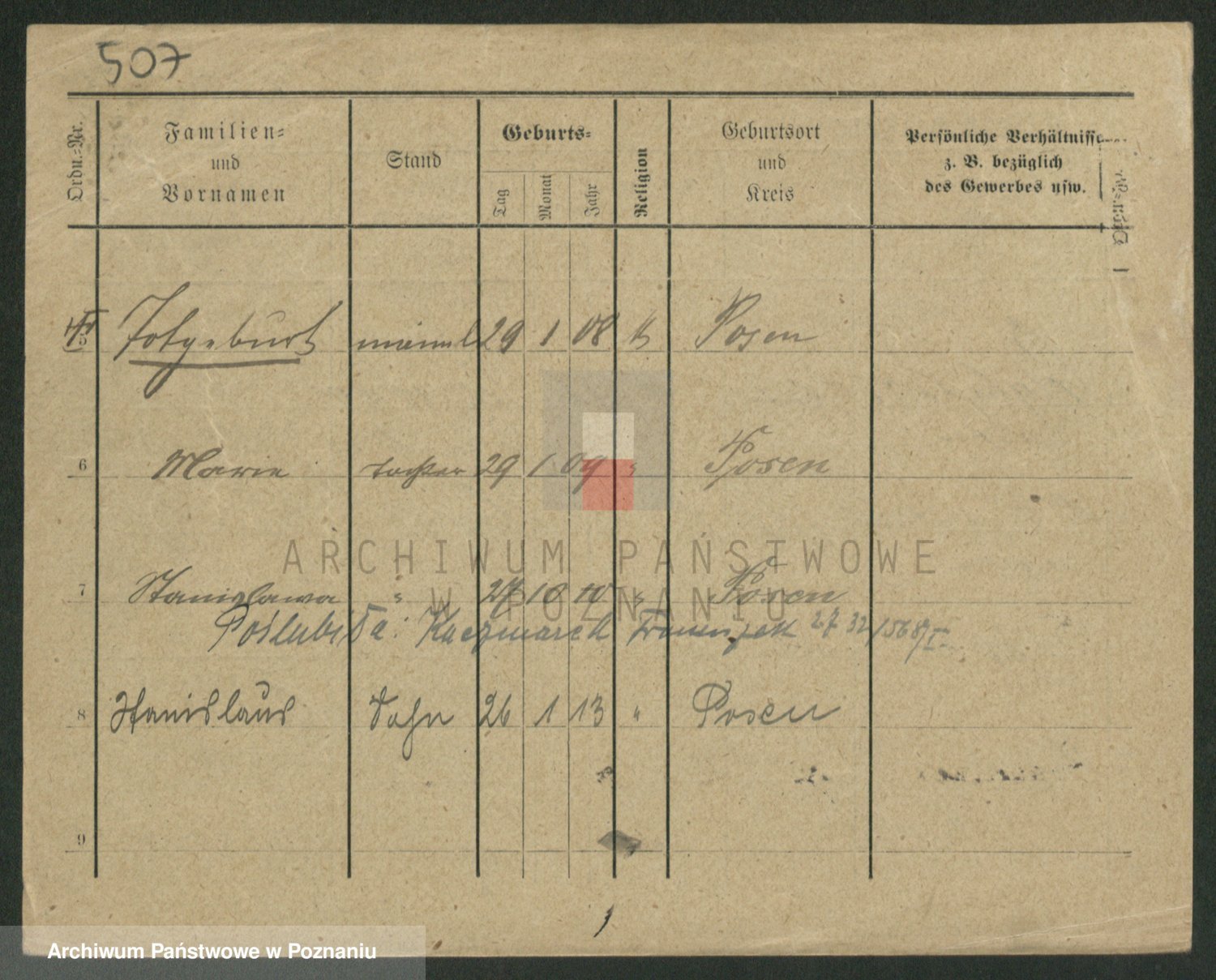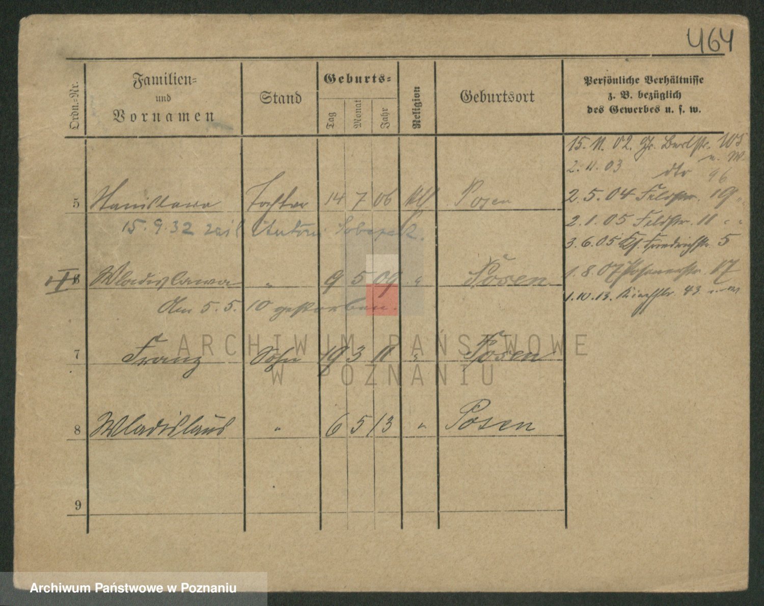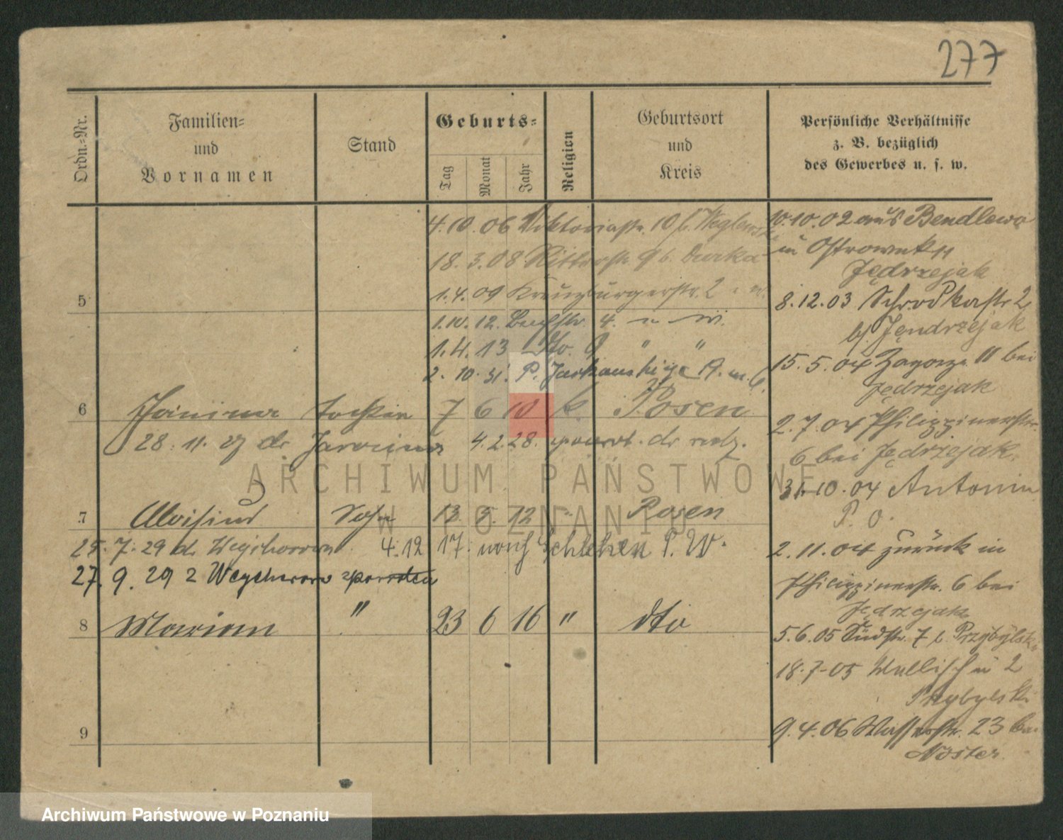 Podgląd karty osobowej dostępny jest po kliknięciu na nazwisko lub ikonkę karty. Można dokonywać powiększenia (ikony na górze) lub przechodzić między kolejnymi skanami (strzałki po bokach).