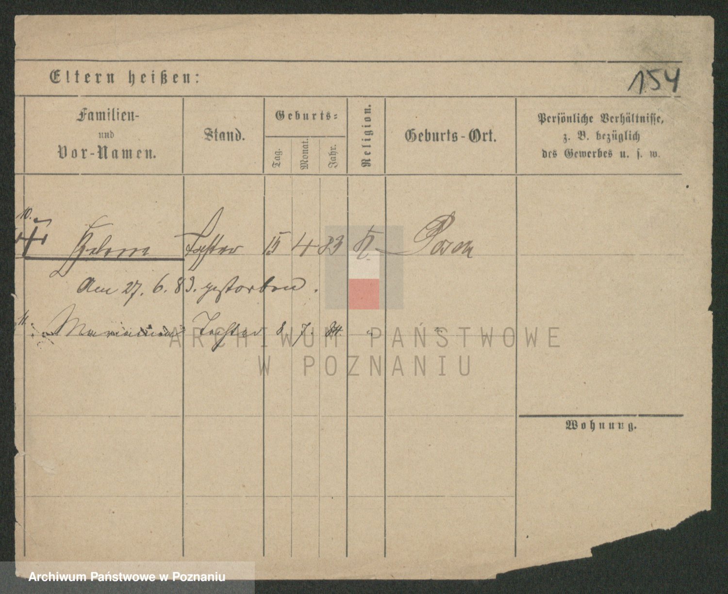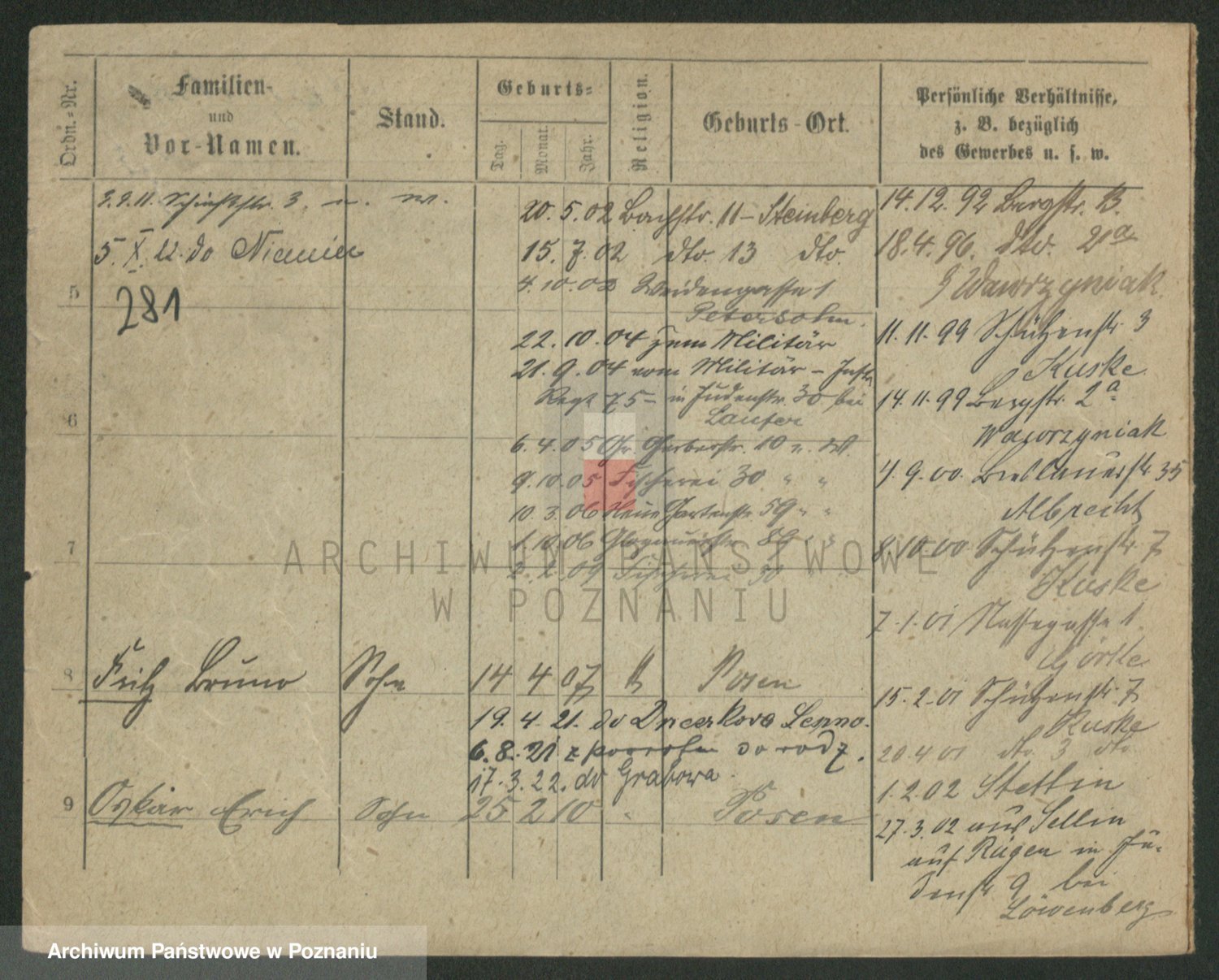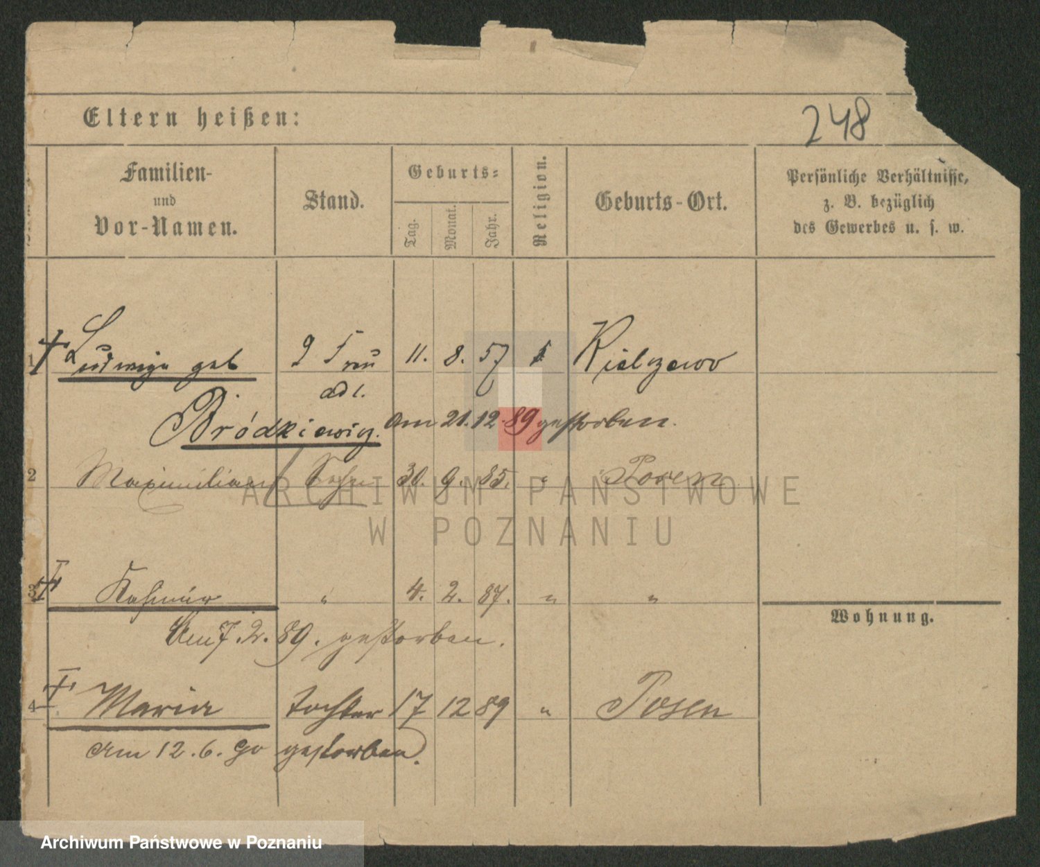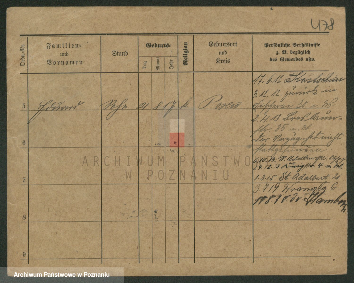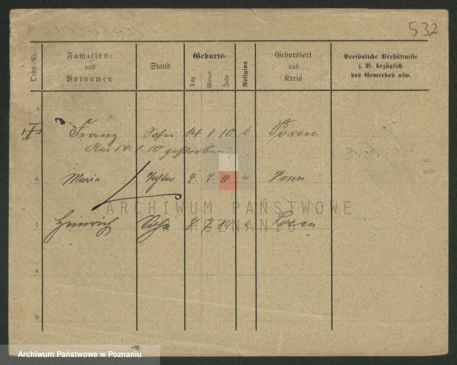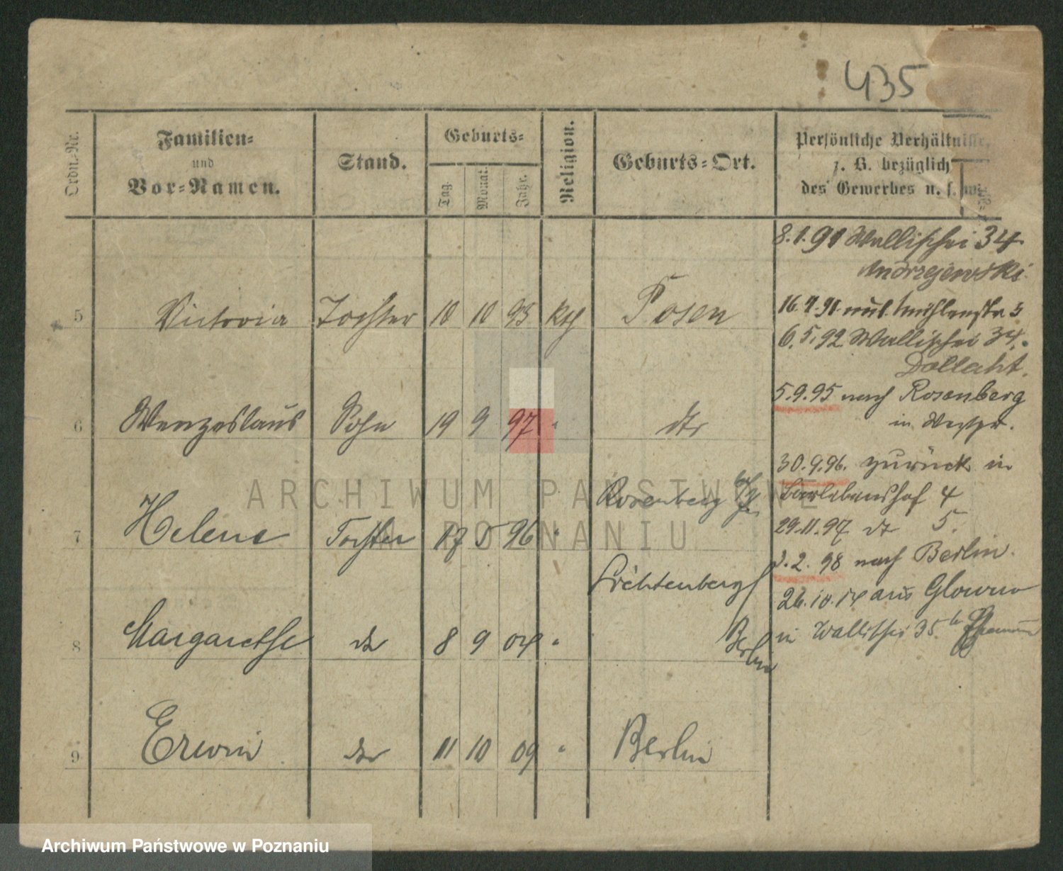 Podgląd karty osobowej dostępny jest po kliknięciu na nazwisko lub ikonkę karty. Można dokonywać powiększenia (ikony na górze) lub przechodzić między kolejnymi skanami (strzałki po bokach).