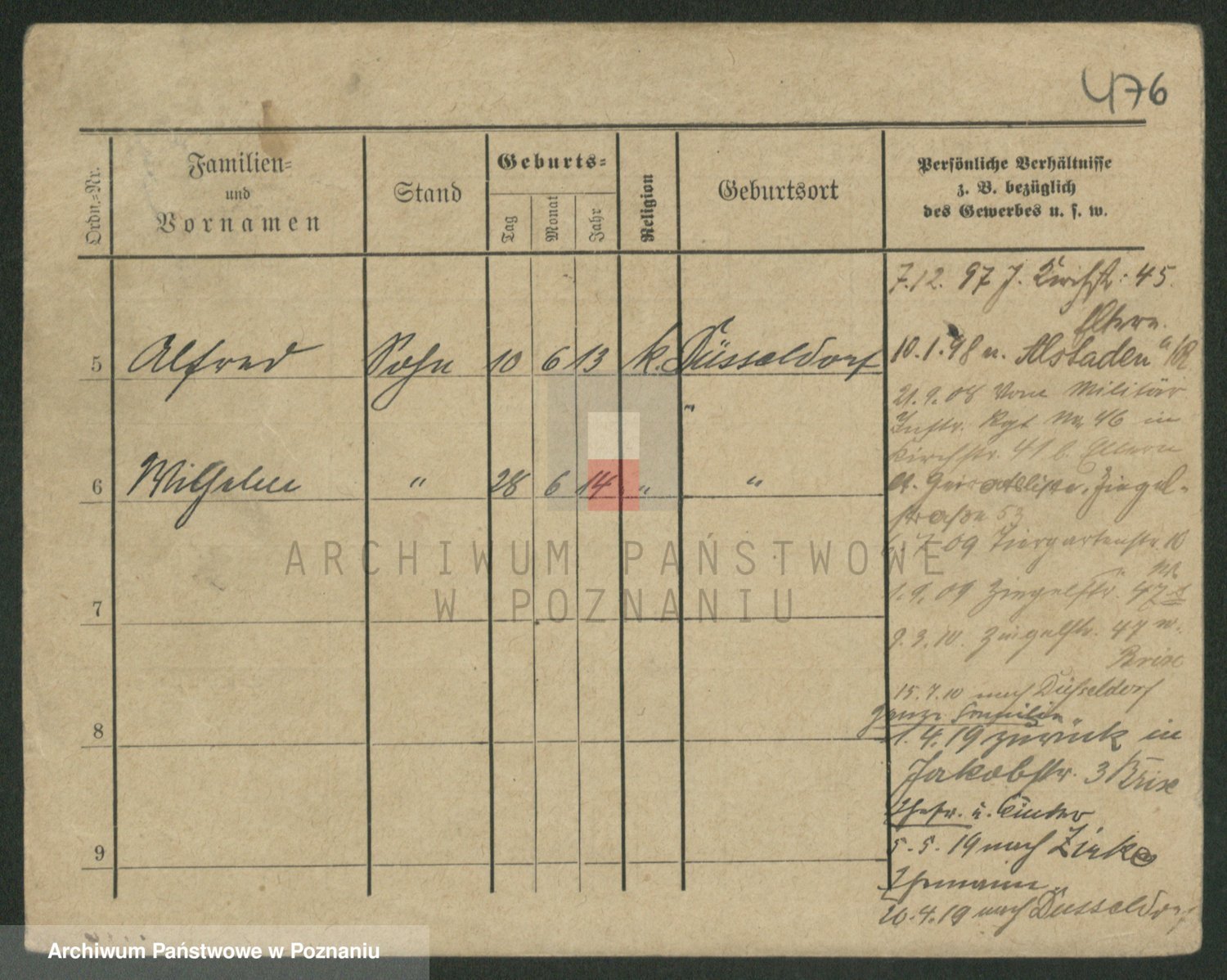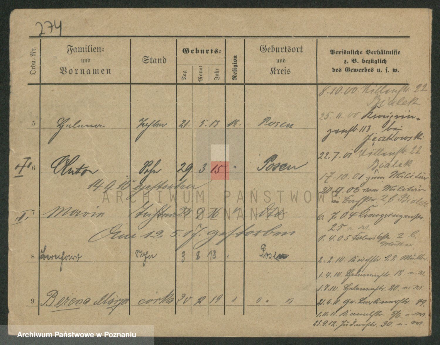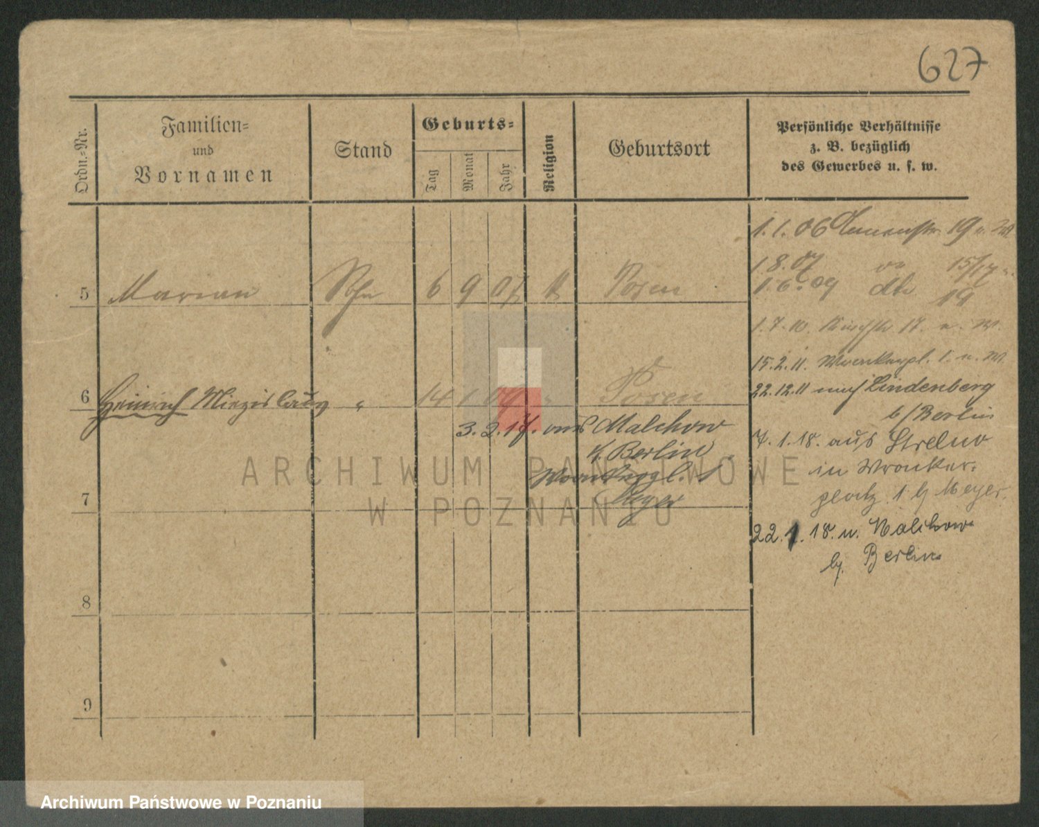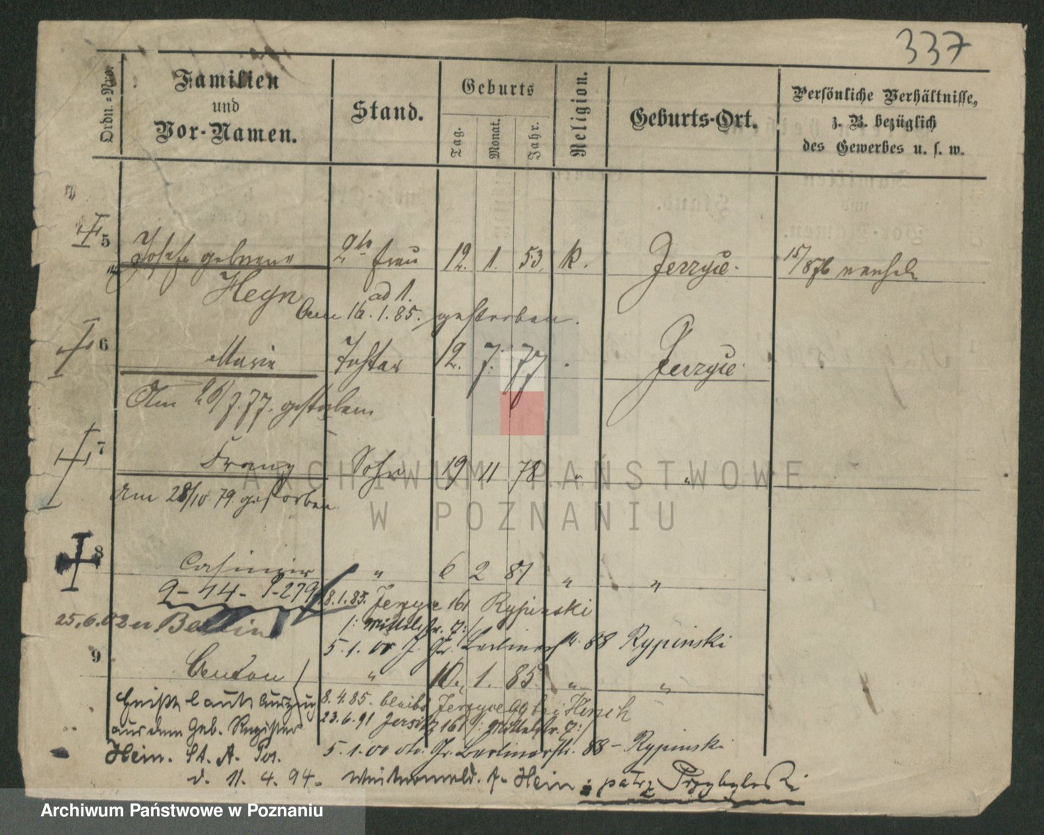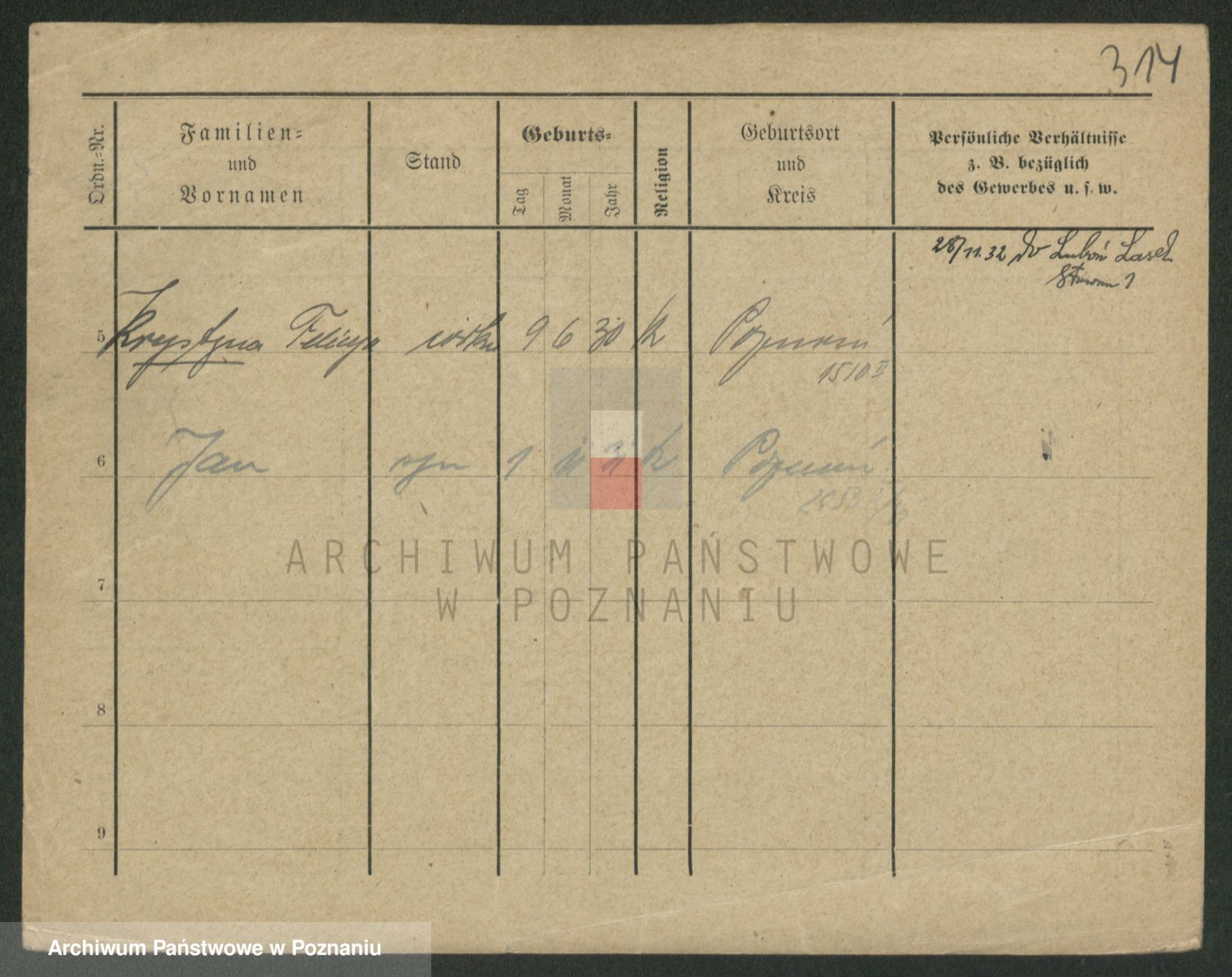 Podgląd karty osobowej dostępny jest po kliknięciu na nazwisko lub ikonkę karty. Można dokonywać powiększenia (ikony na górze) lub przechodzić między kolejnymi skanami (strzałki po bokach).