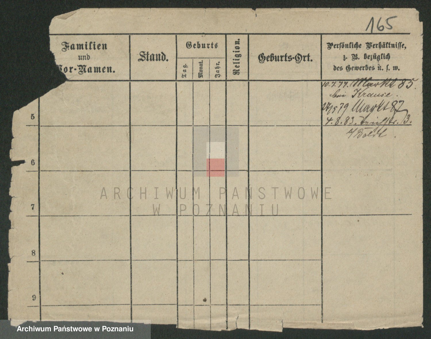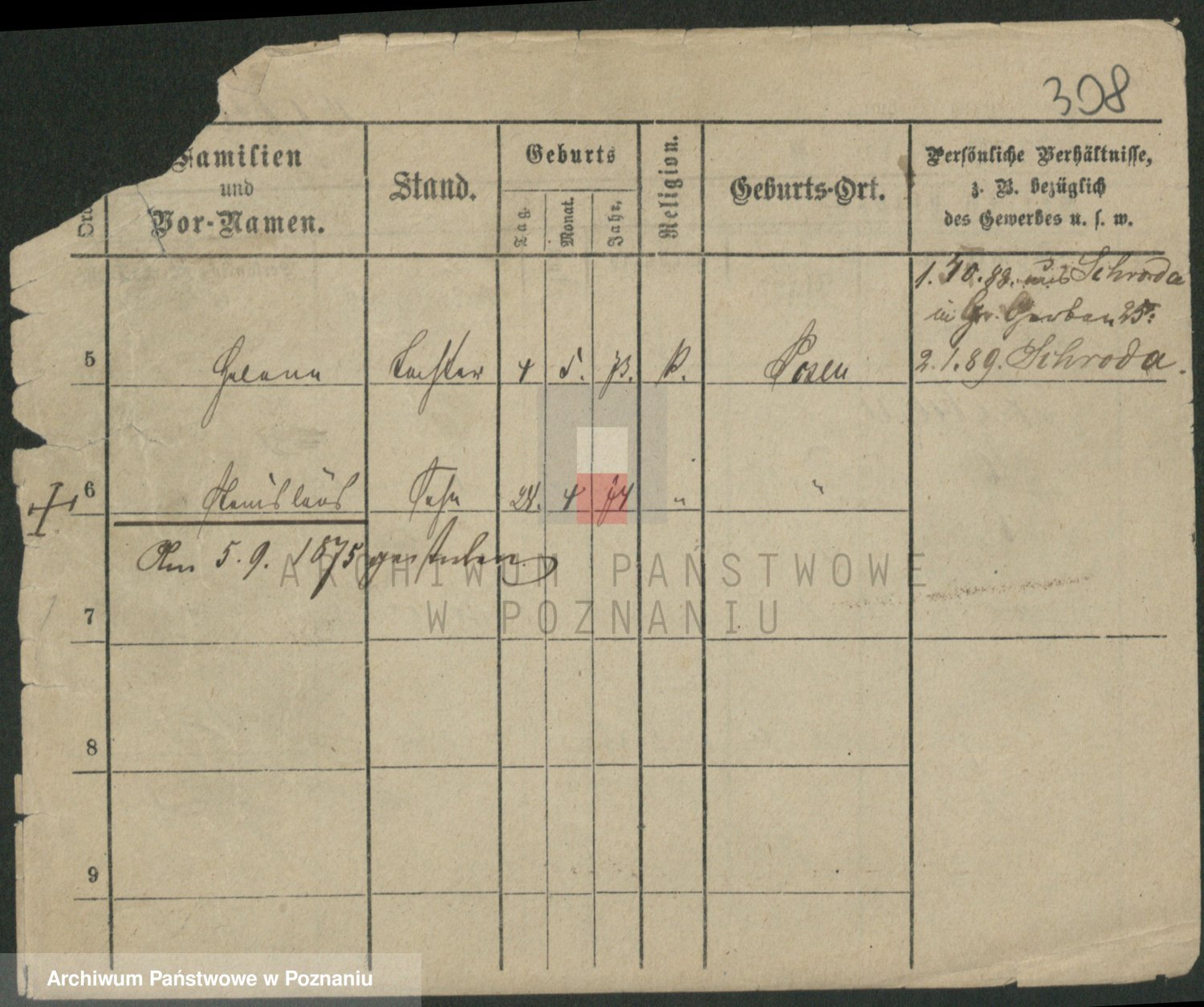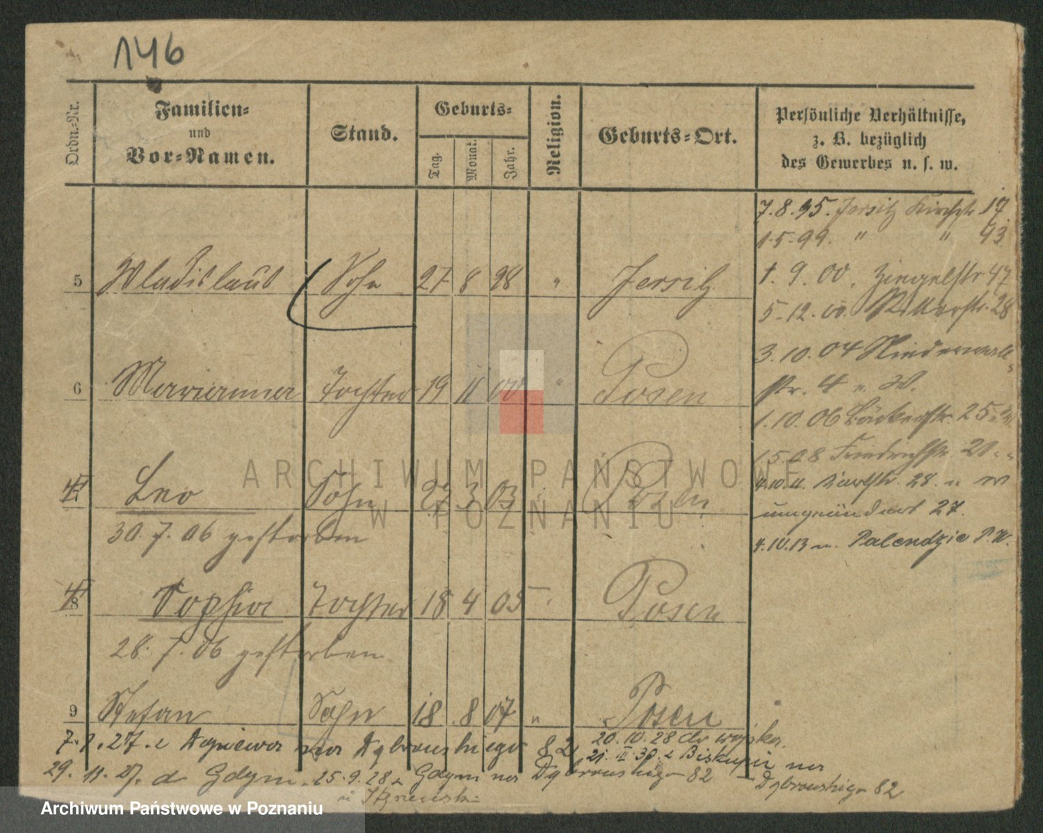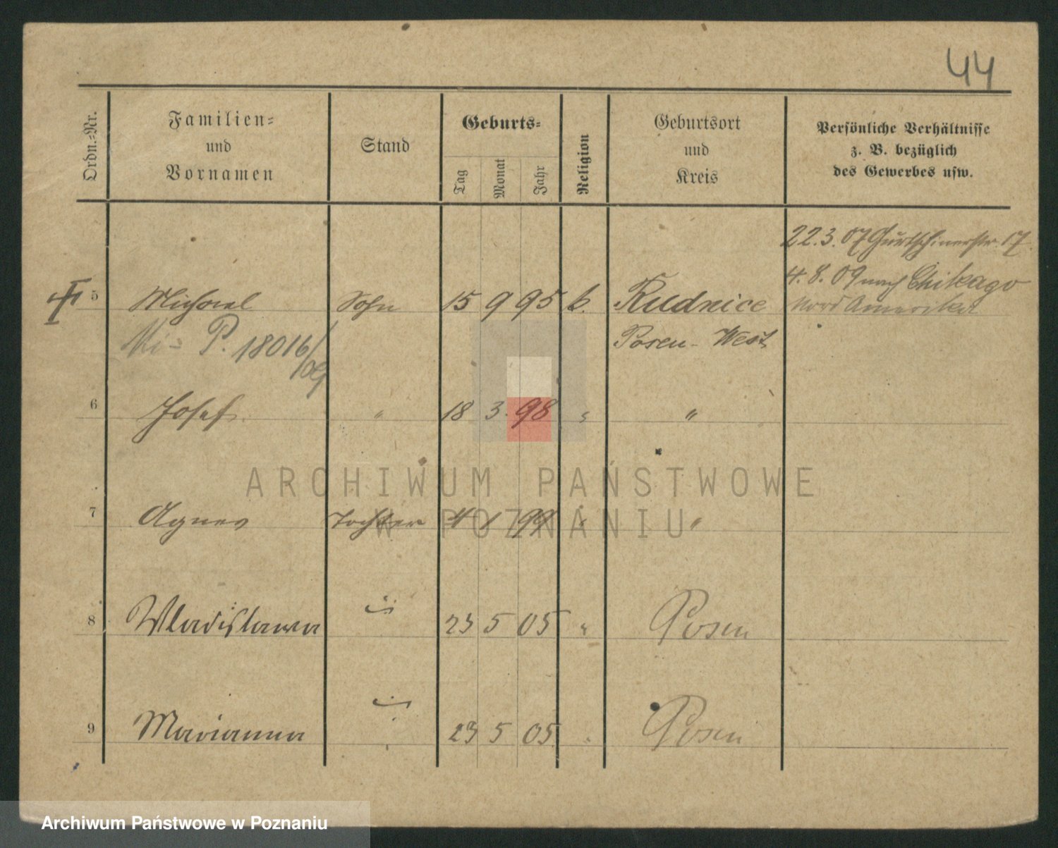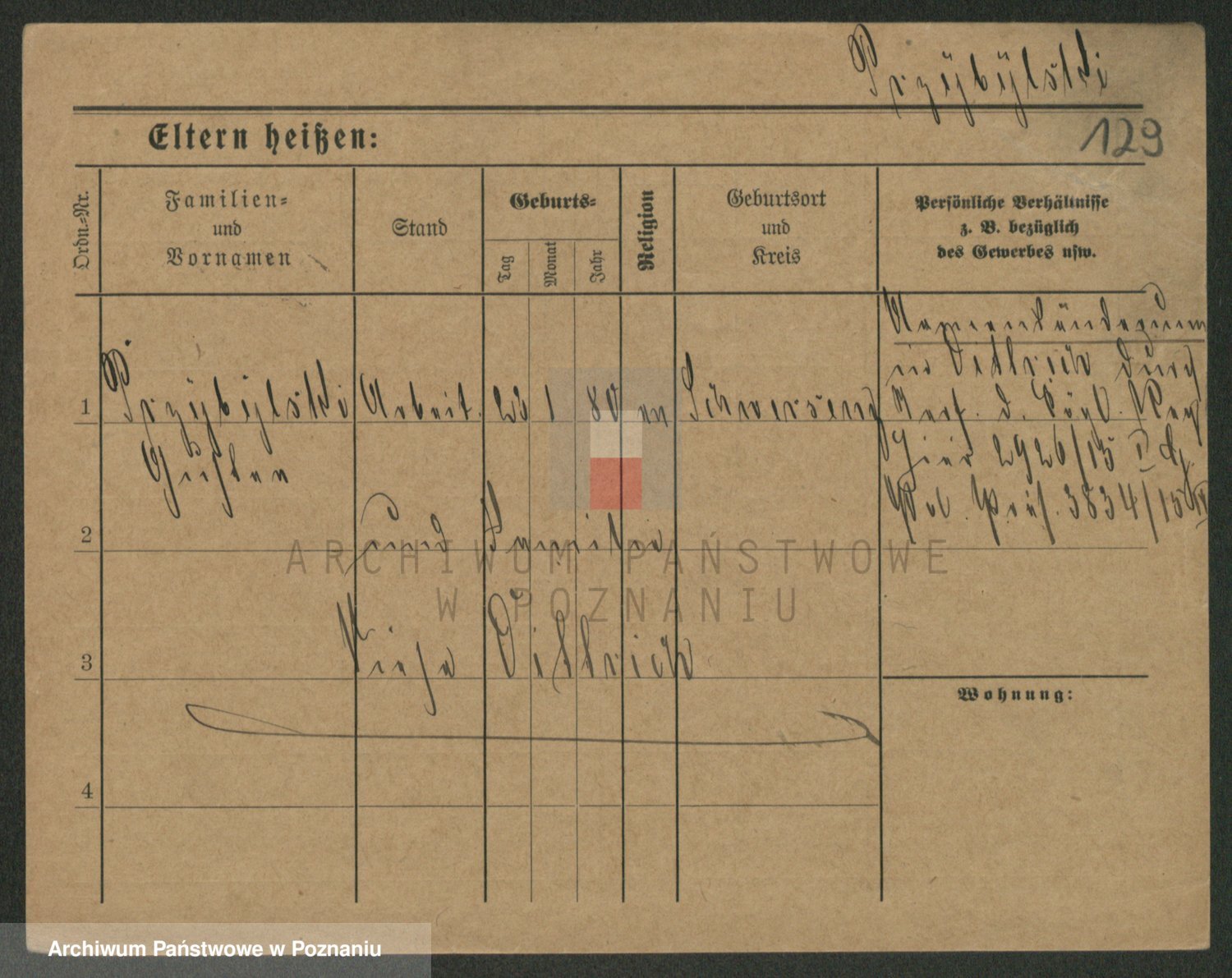 Podgląd karty osobowej dostępny jest po kliknięciu na nazwisko lub ikonkę karty. Można dokonywać powiększenia (ikony na górze) lub przechodzić między kolejnymi skanami (strzałki po bokach).
