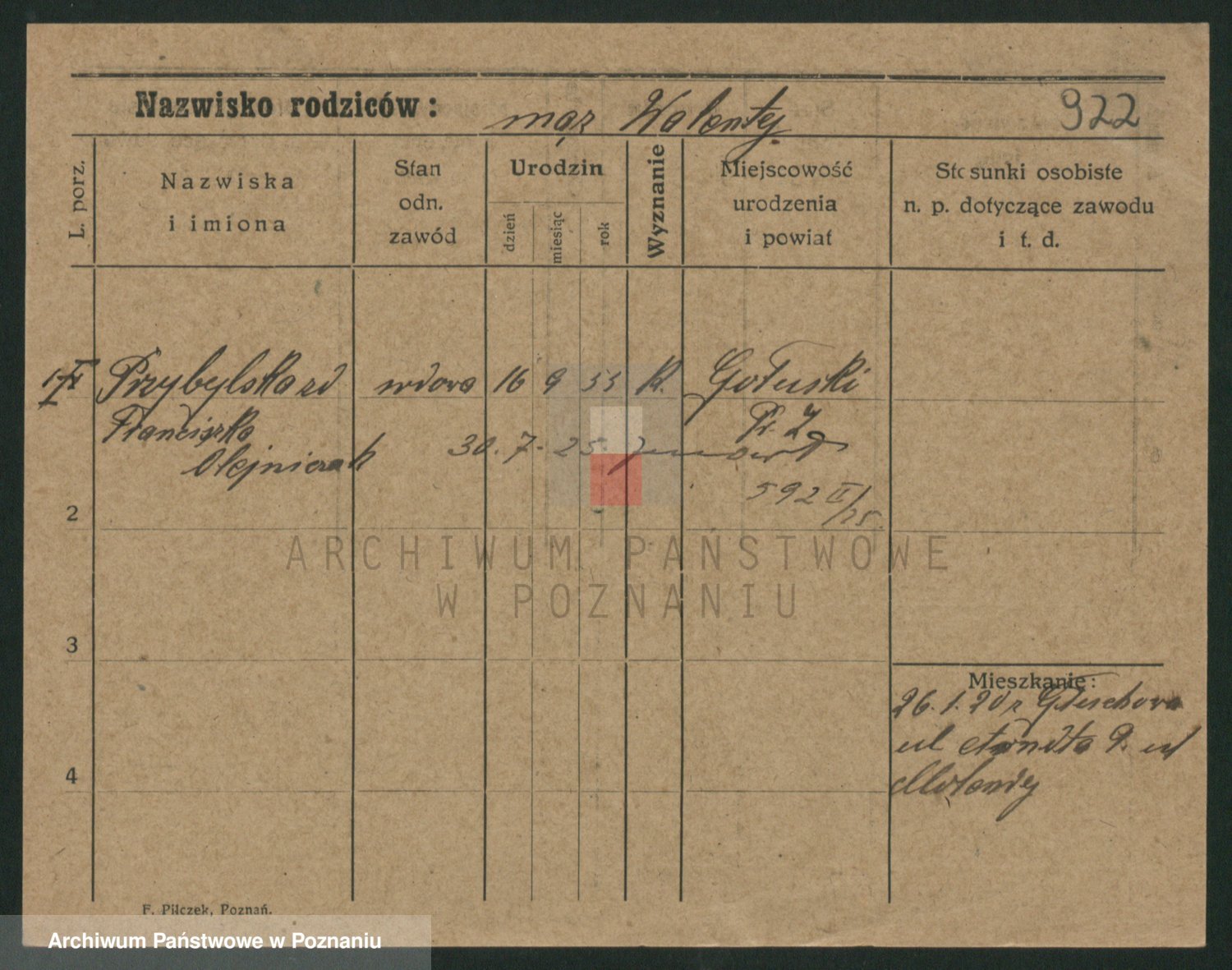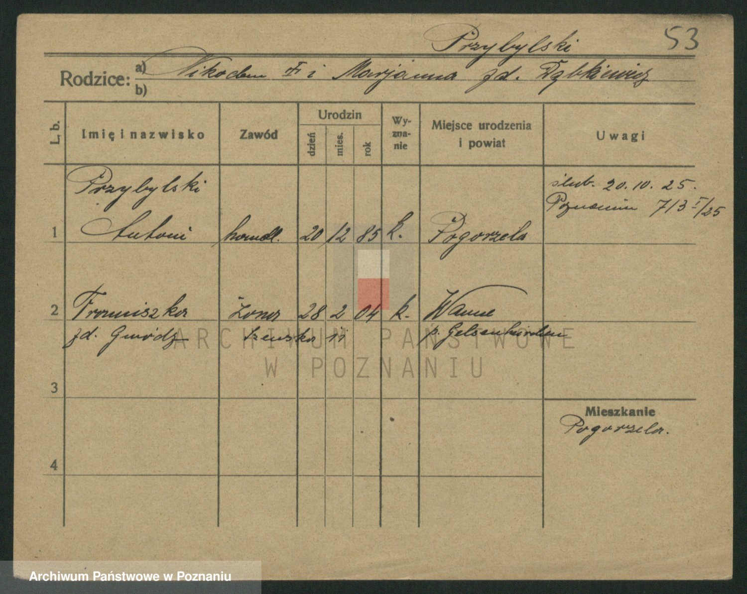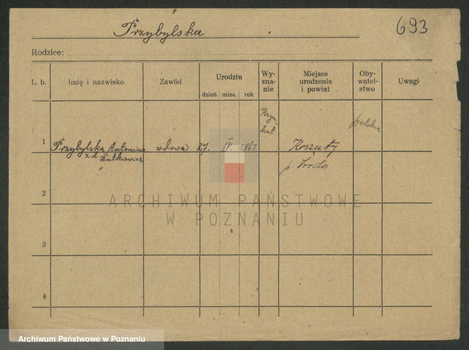 Przybylska z d. Fryzowska, Marya
