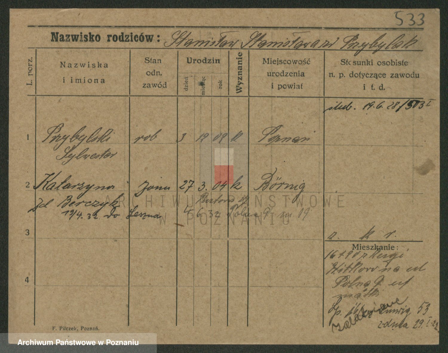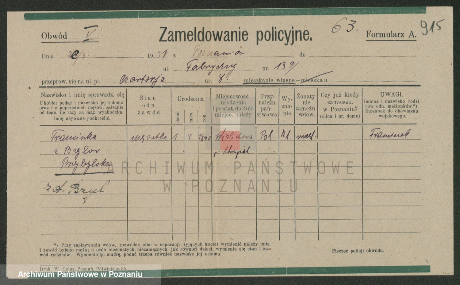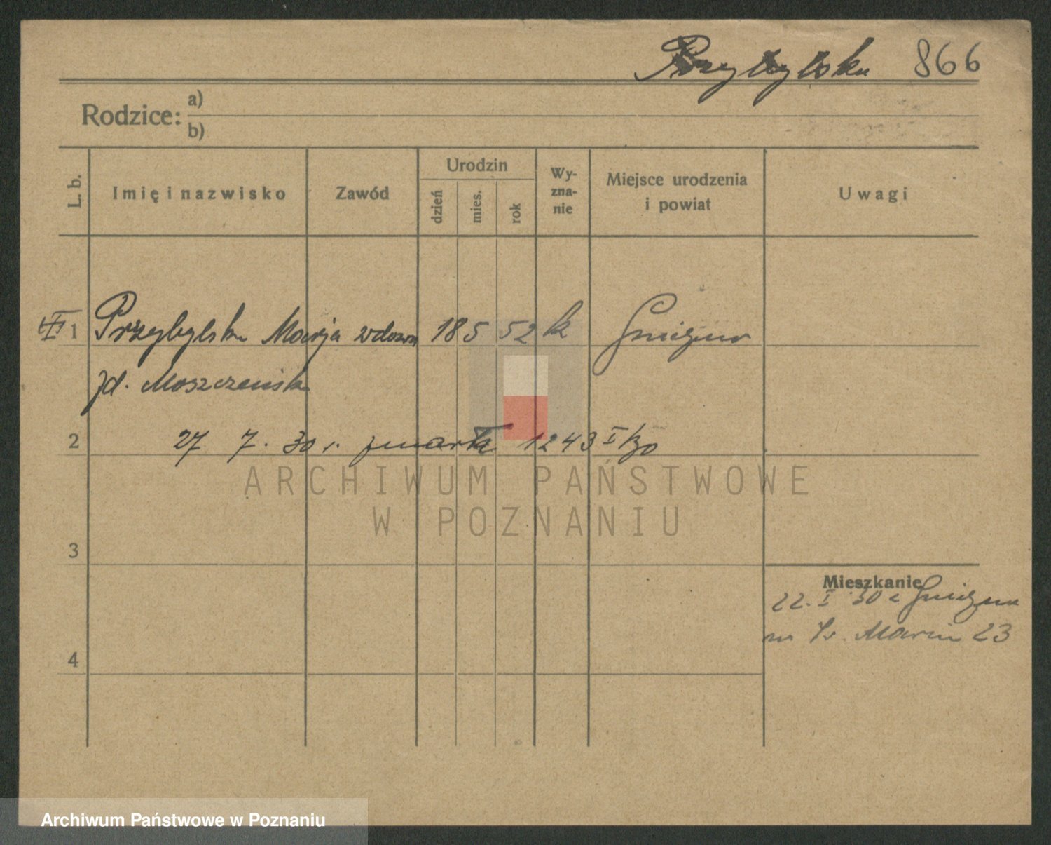 Przybylska z d. Fryzowska, Marya