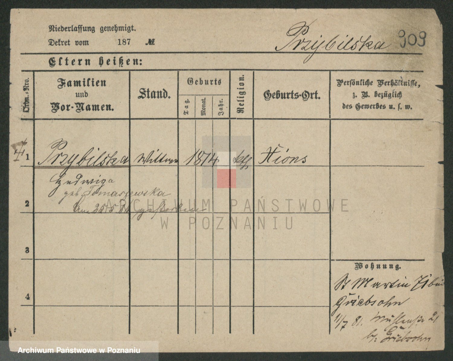 Przybilski z d. Drozdzewska, Anna Ladislawa