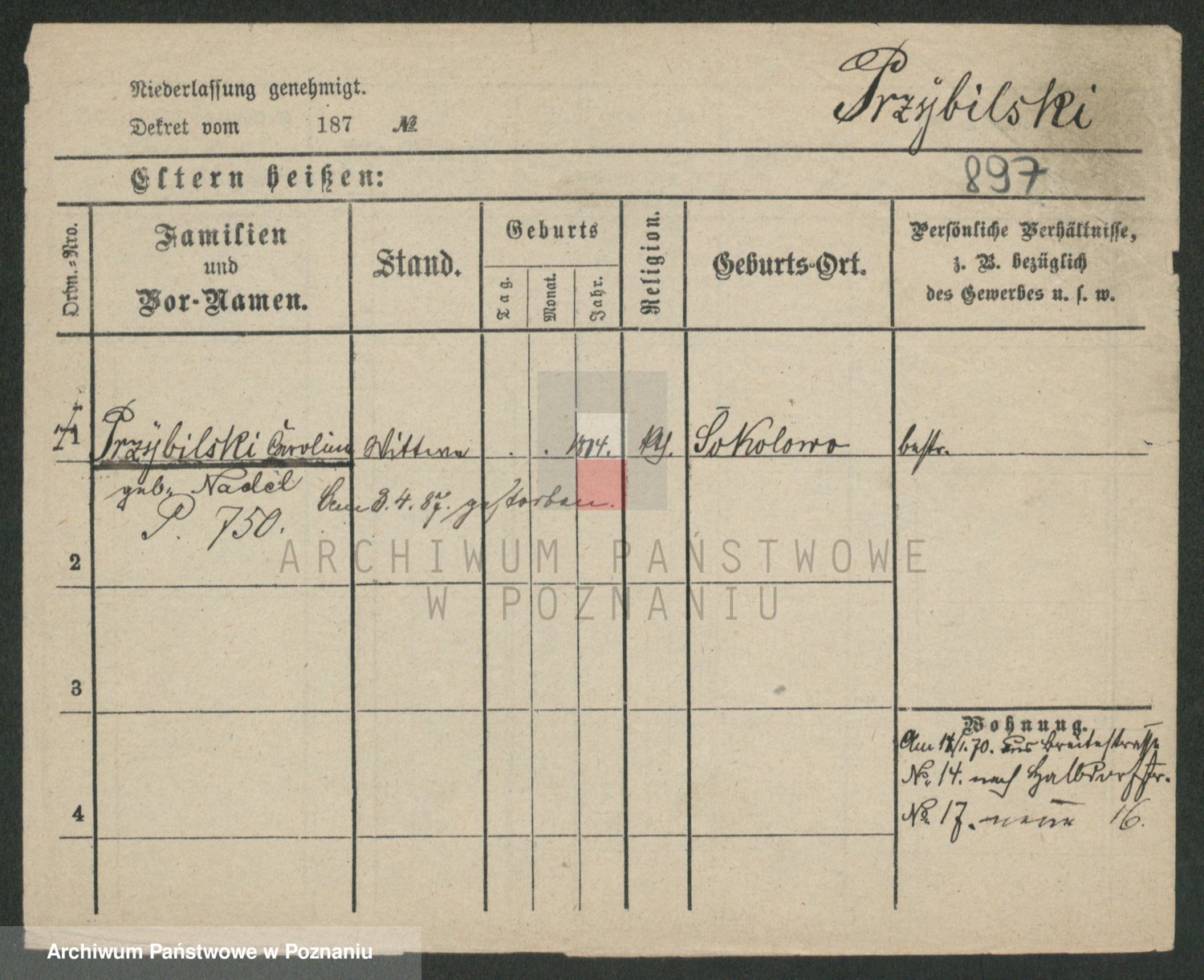 Przybylski z d. Wesołowska, Franziska