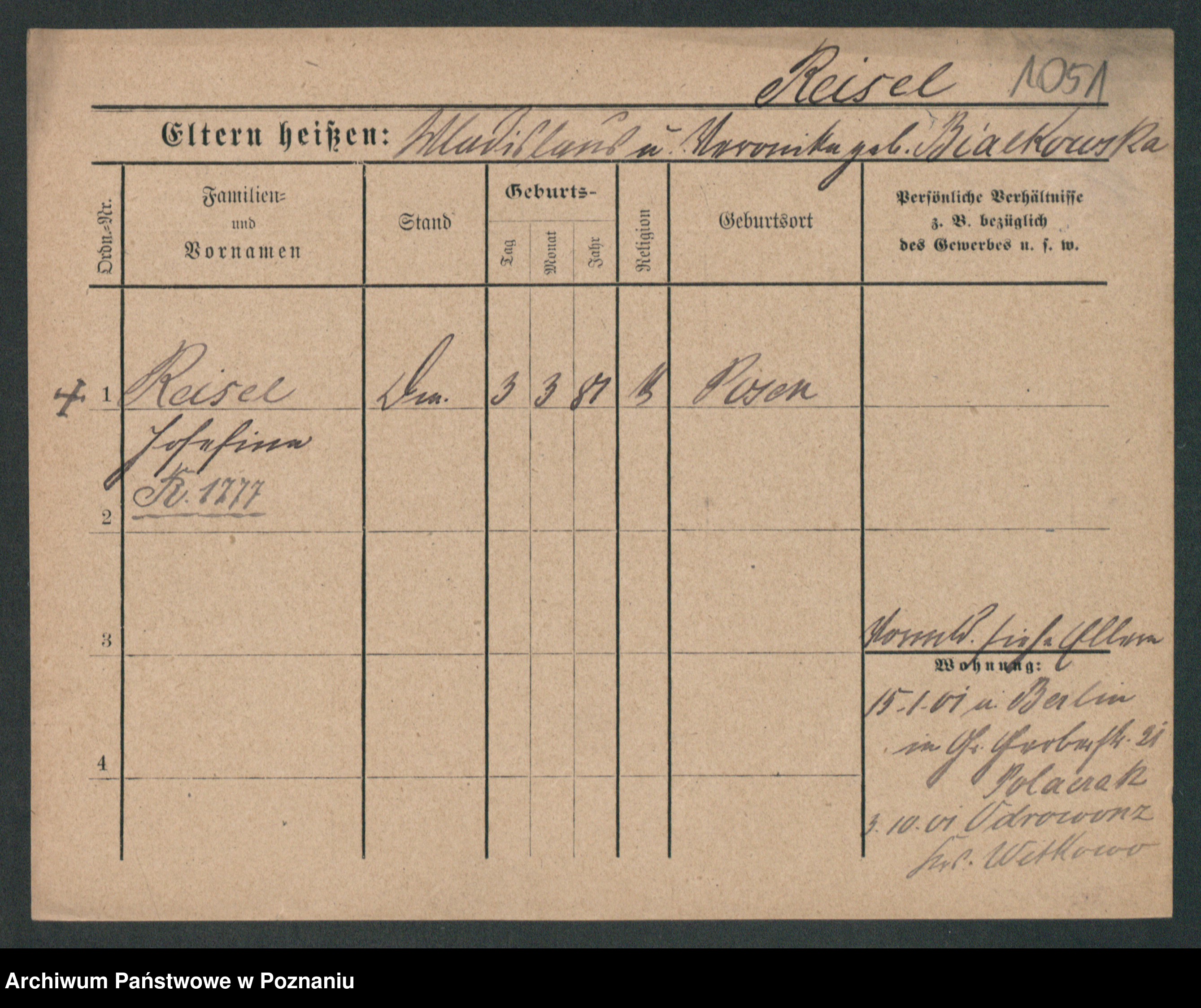 Reisel z d. Bialkowska 1.voto Gąsiorowska, Veronika