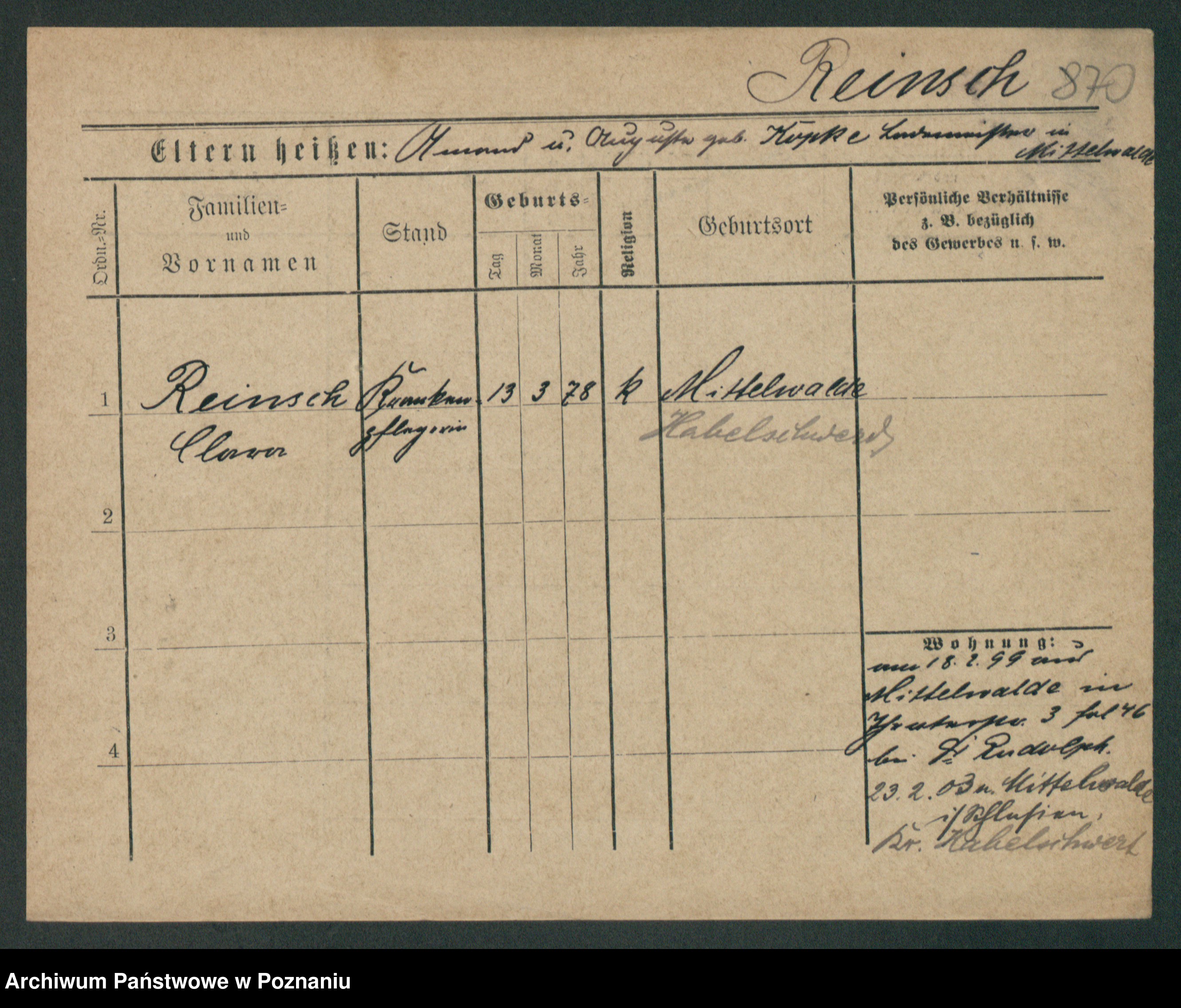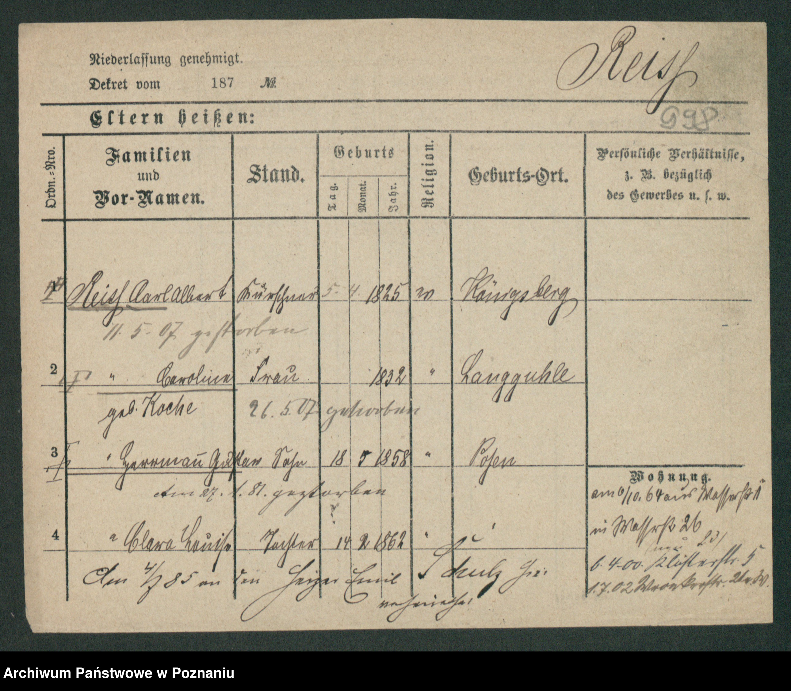 Reisener z d. Kraetschmann, Clara Emilie Friederike
