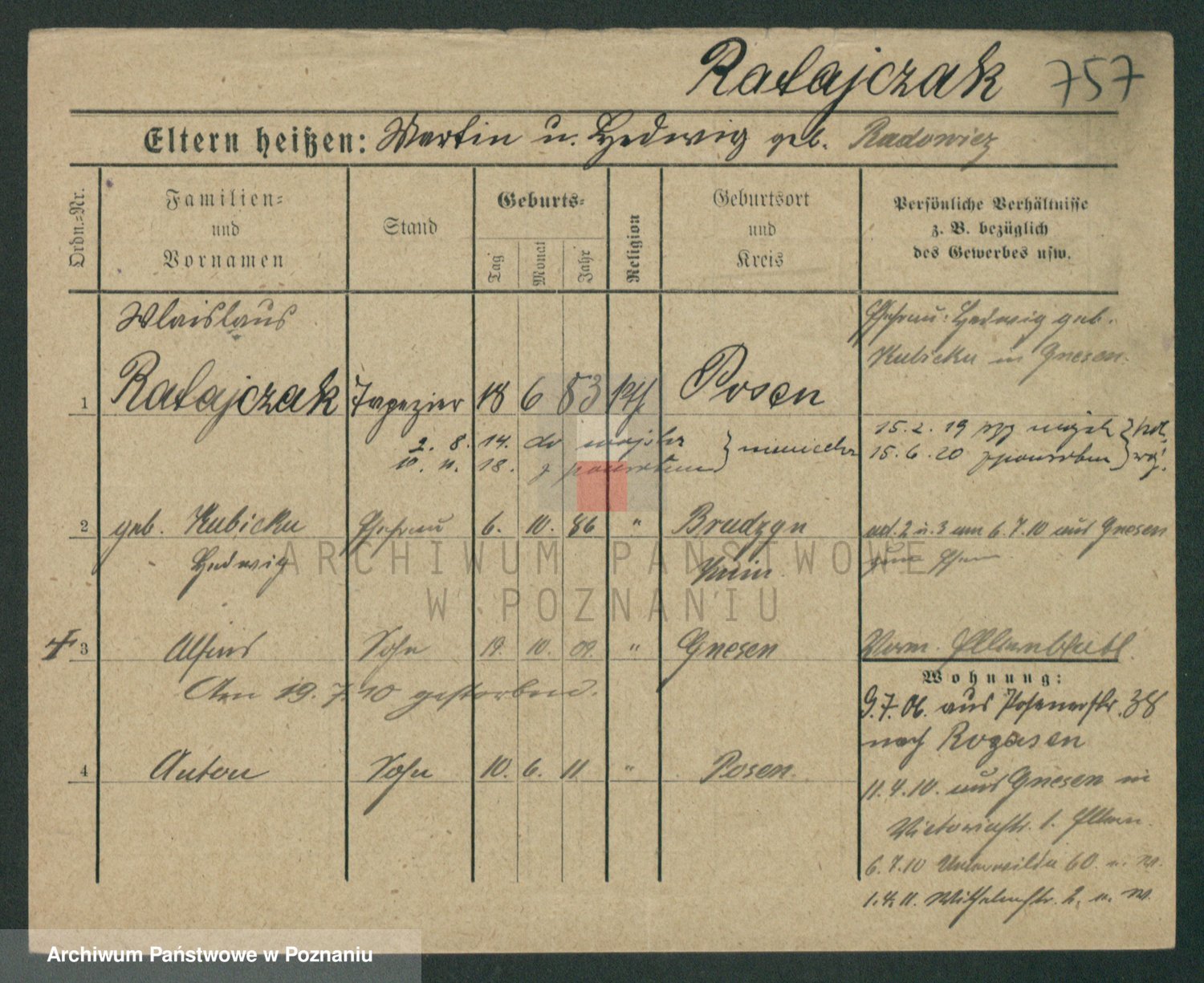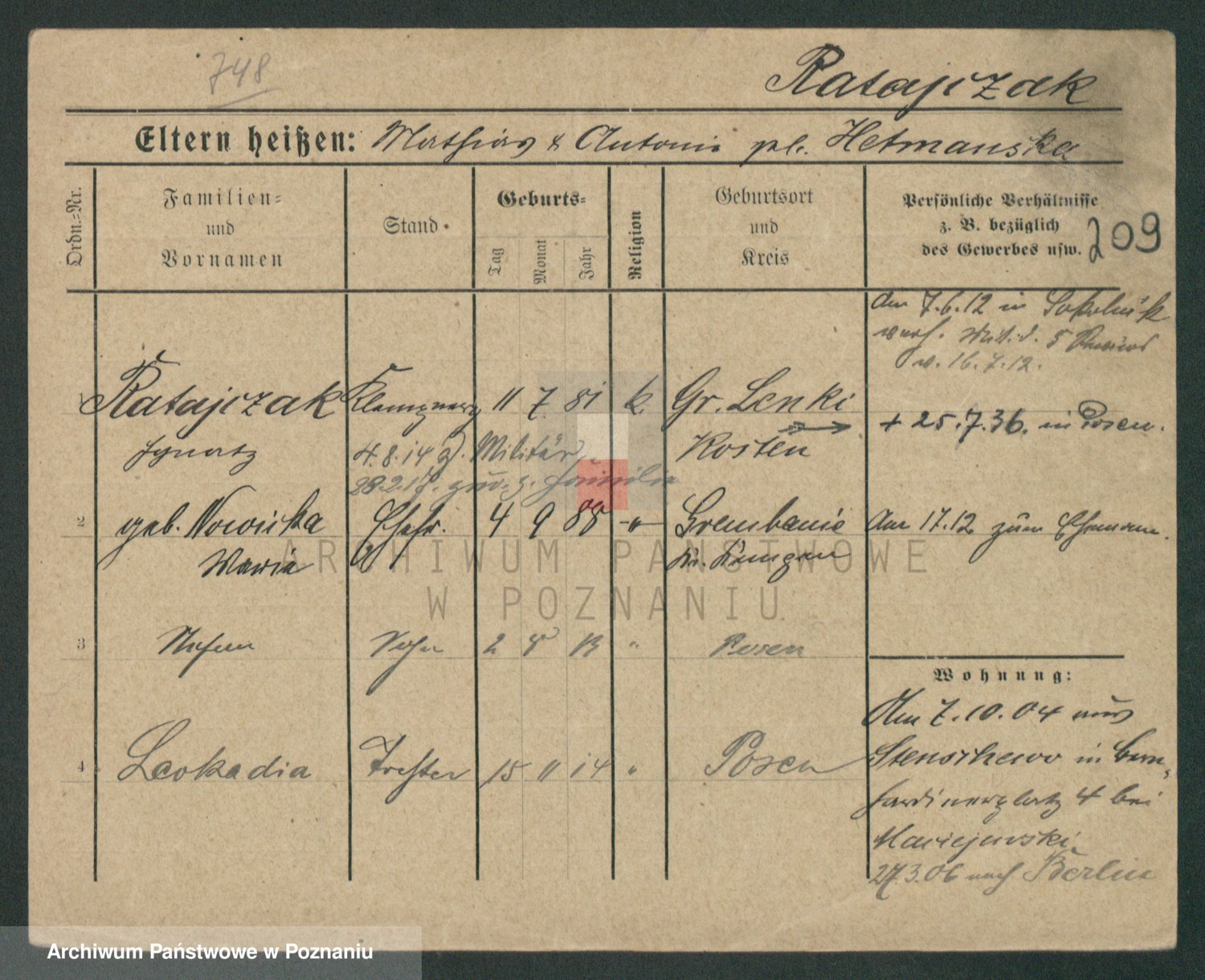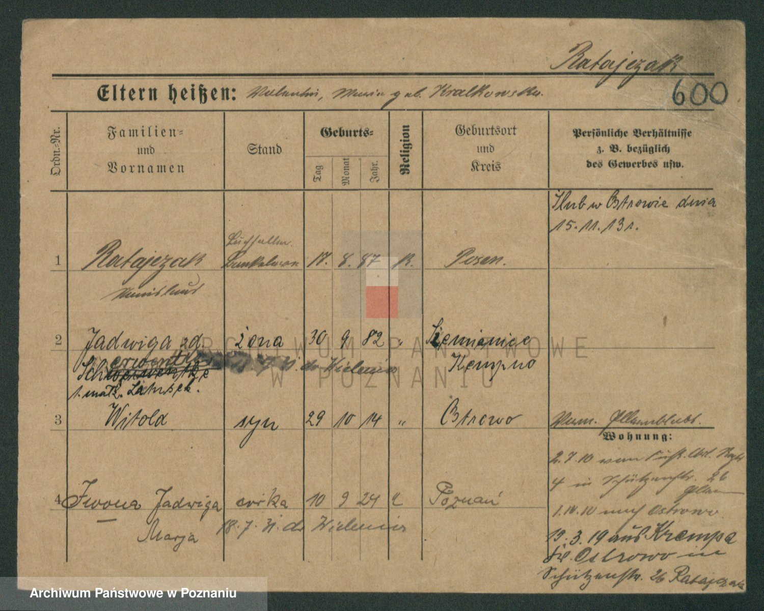 Ratajczak z.d. Witkowska I v.Zielińska, Therese