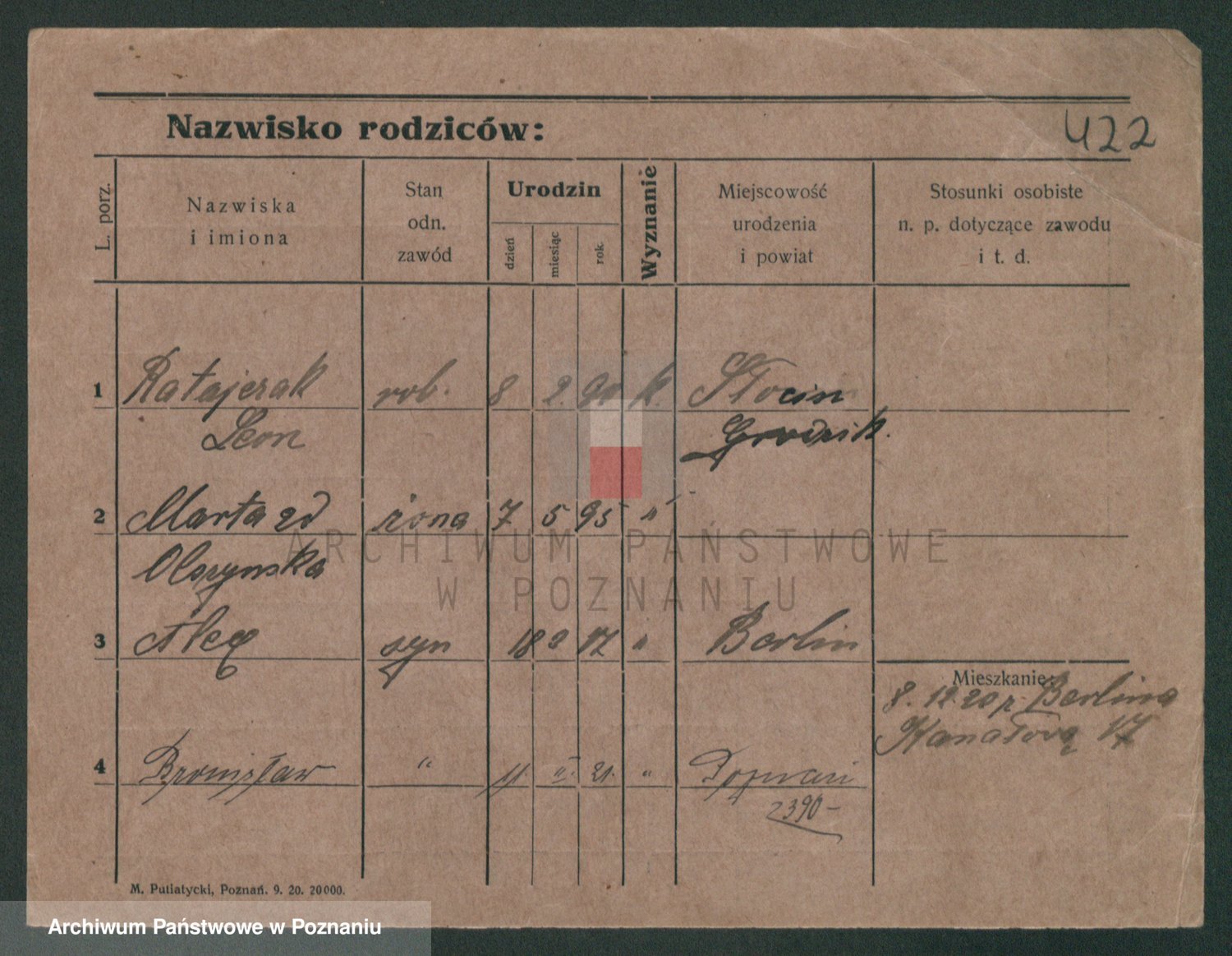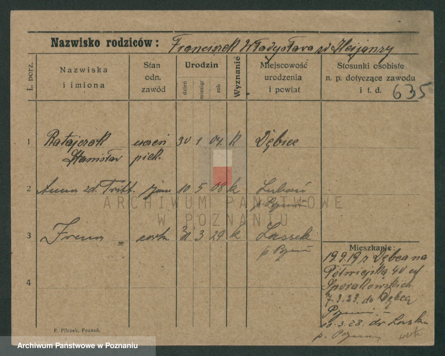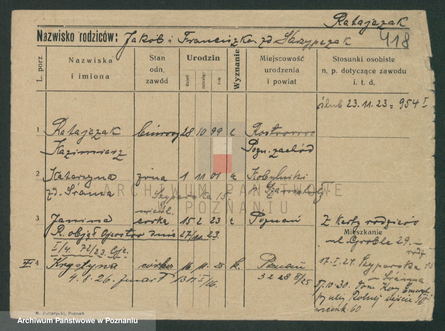 Ratajczak z.d. Kowalska I v. Studzinska, Marja