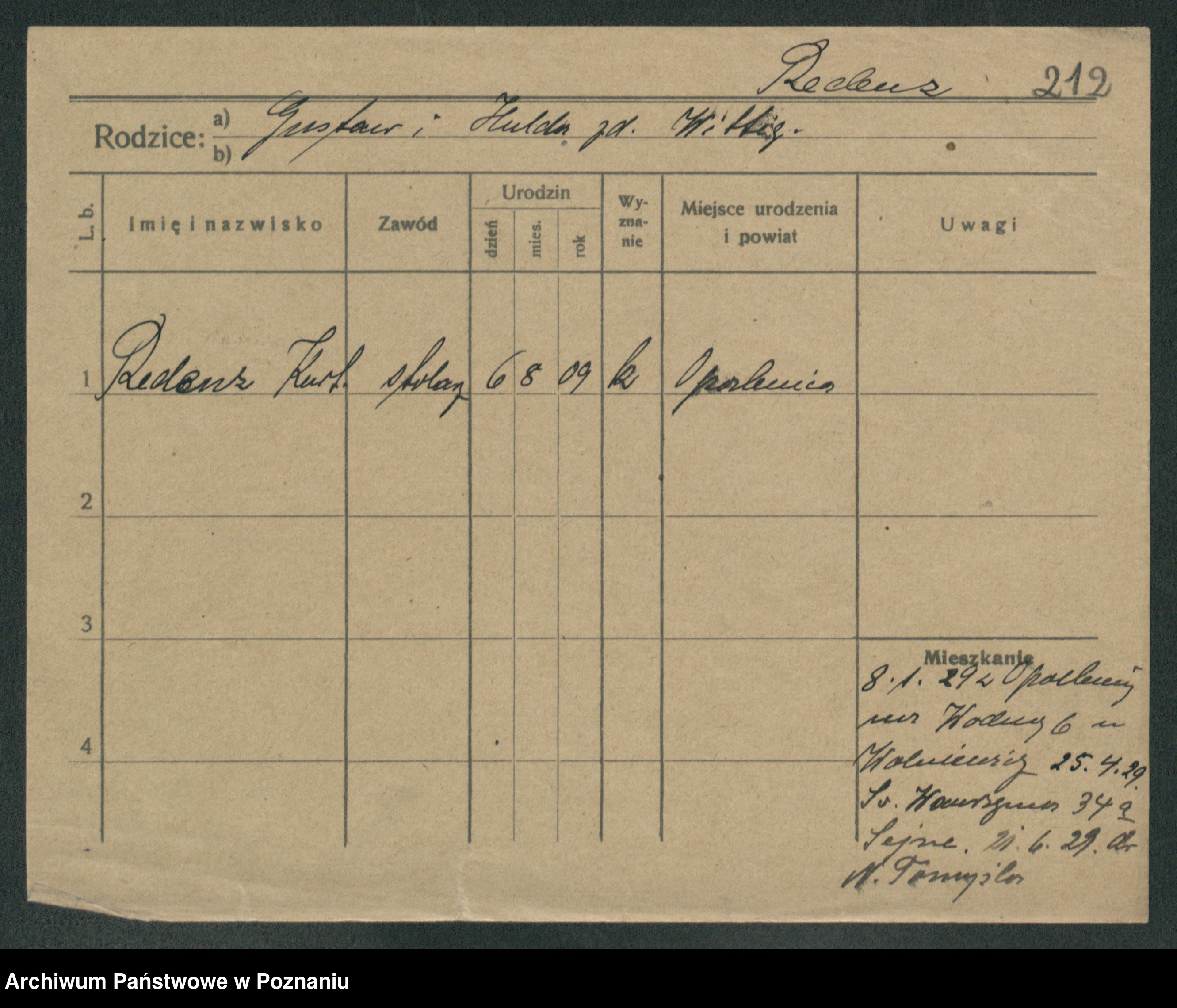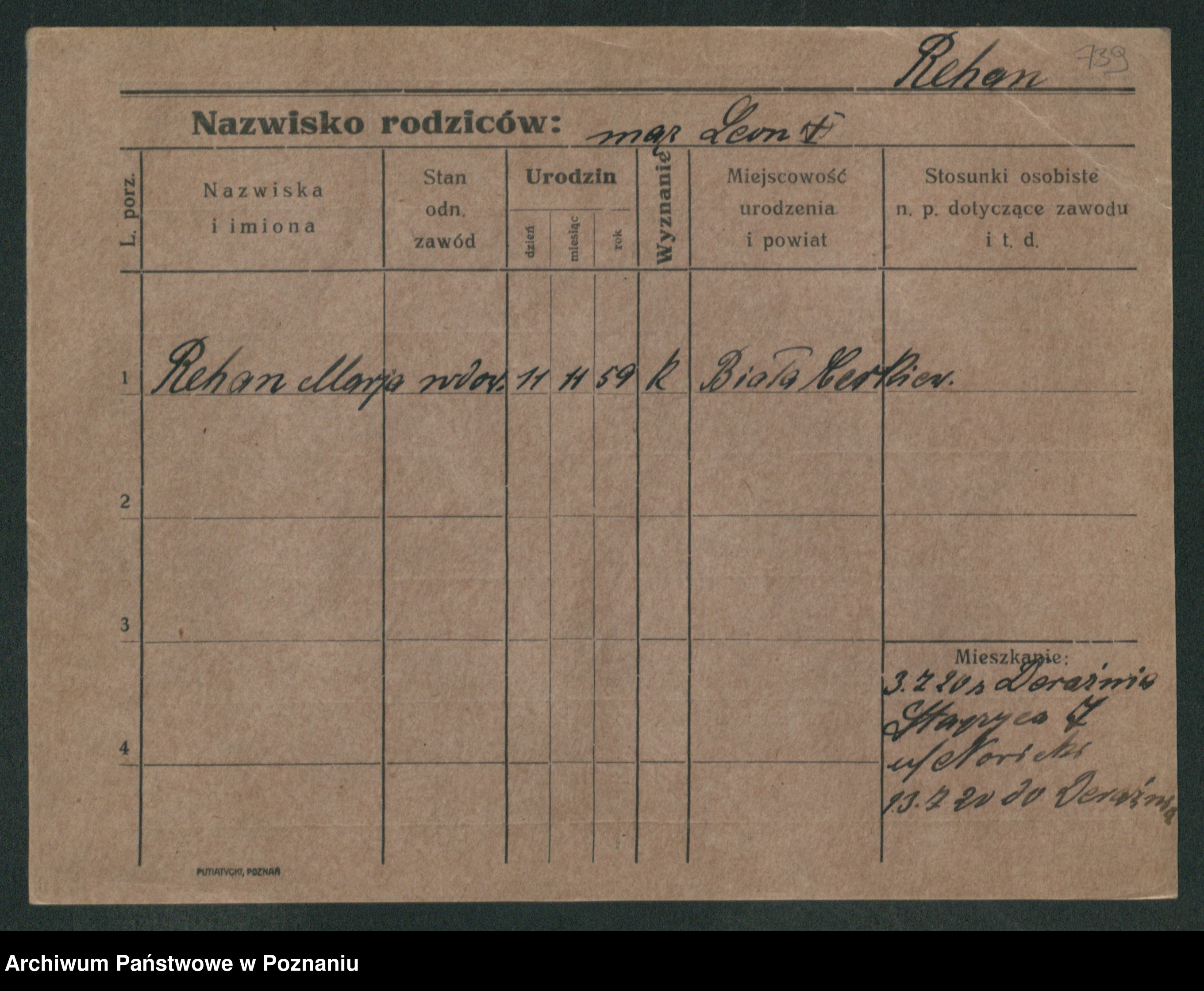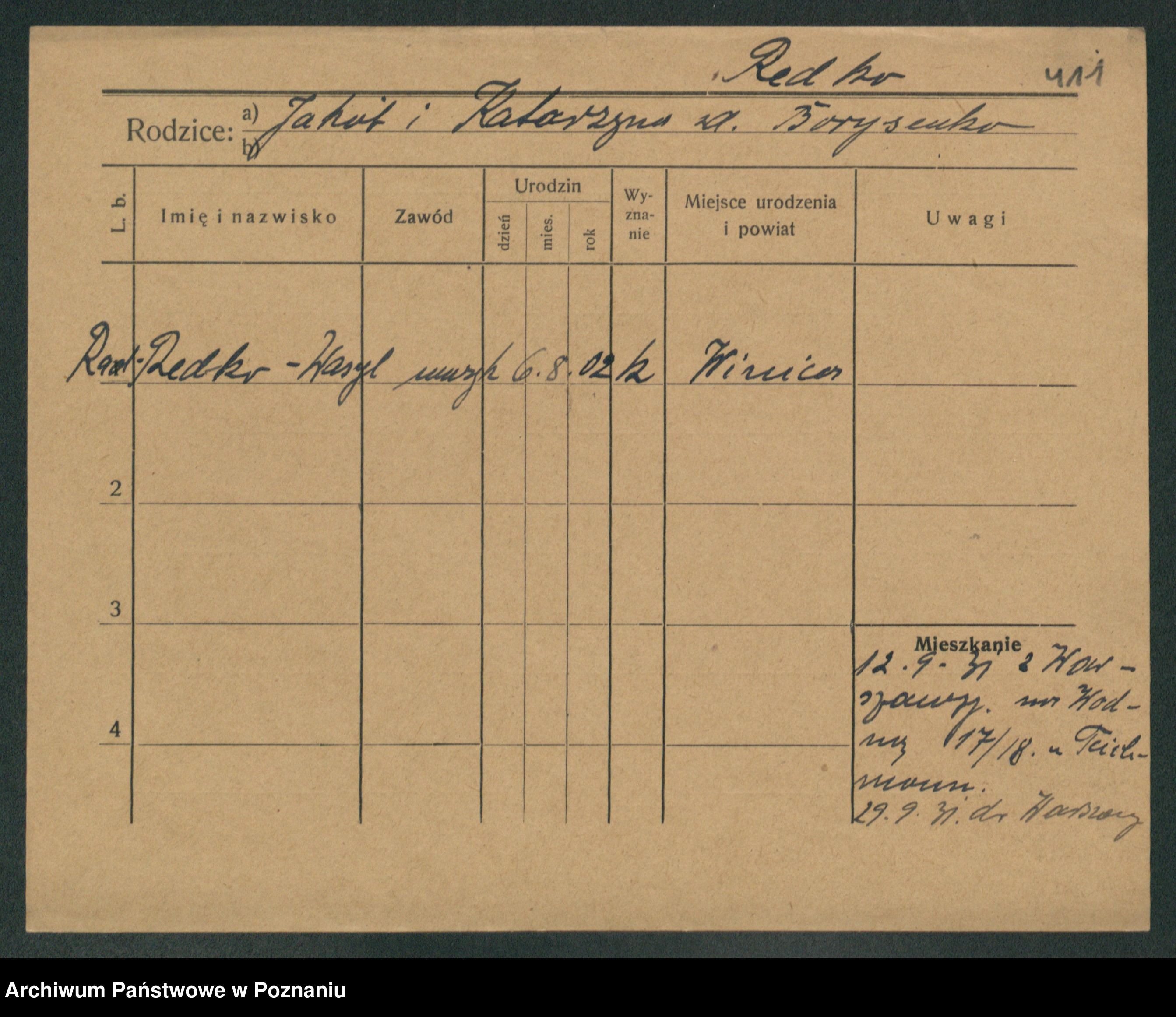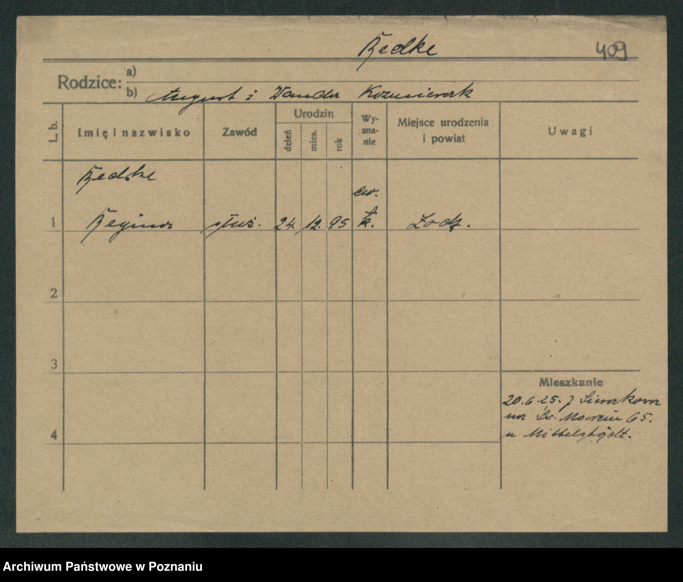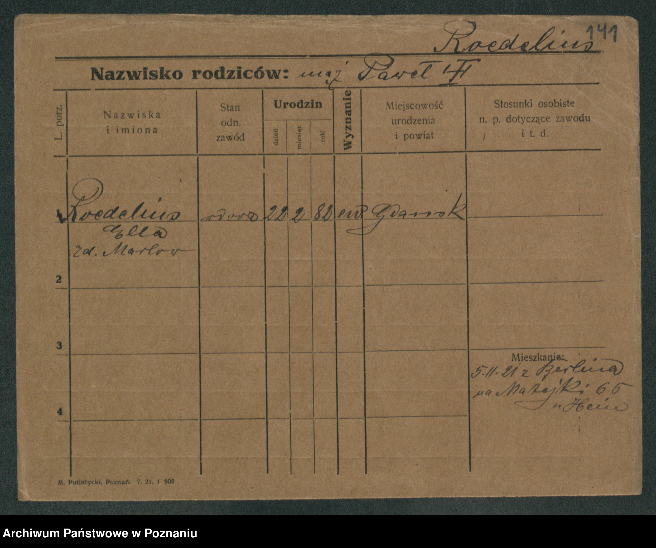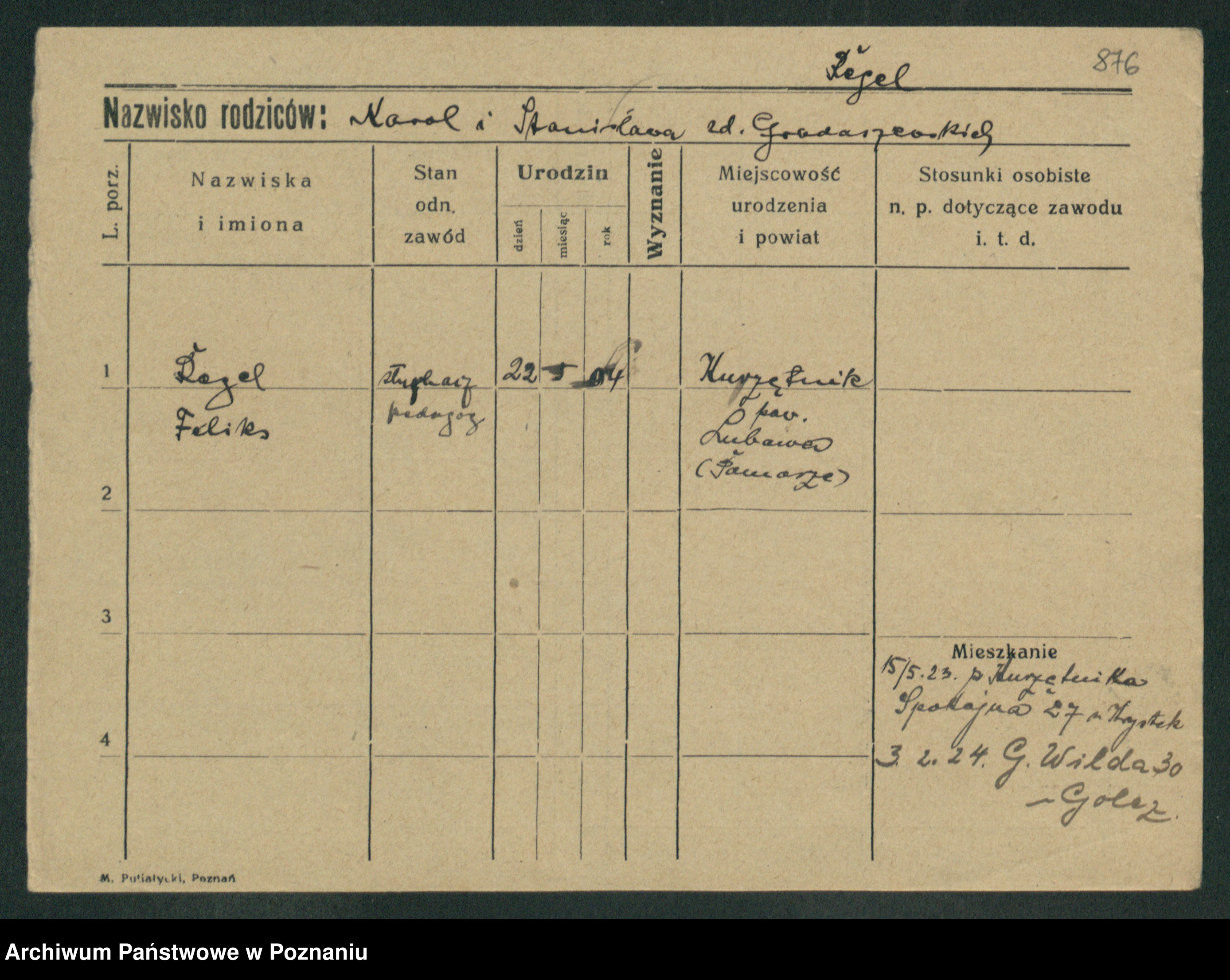 Podgląd karty osobowej dostępny jest po kliknięciu na nazwisko lub ikonkę karty. Można dokonywać powiększenia (ikony na górze) lub przechodzić między kolejnymi skanami (strzałki po bokach).