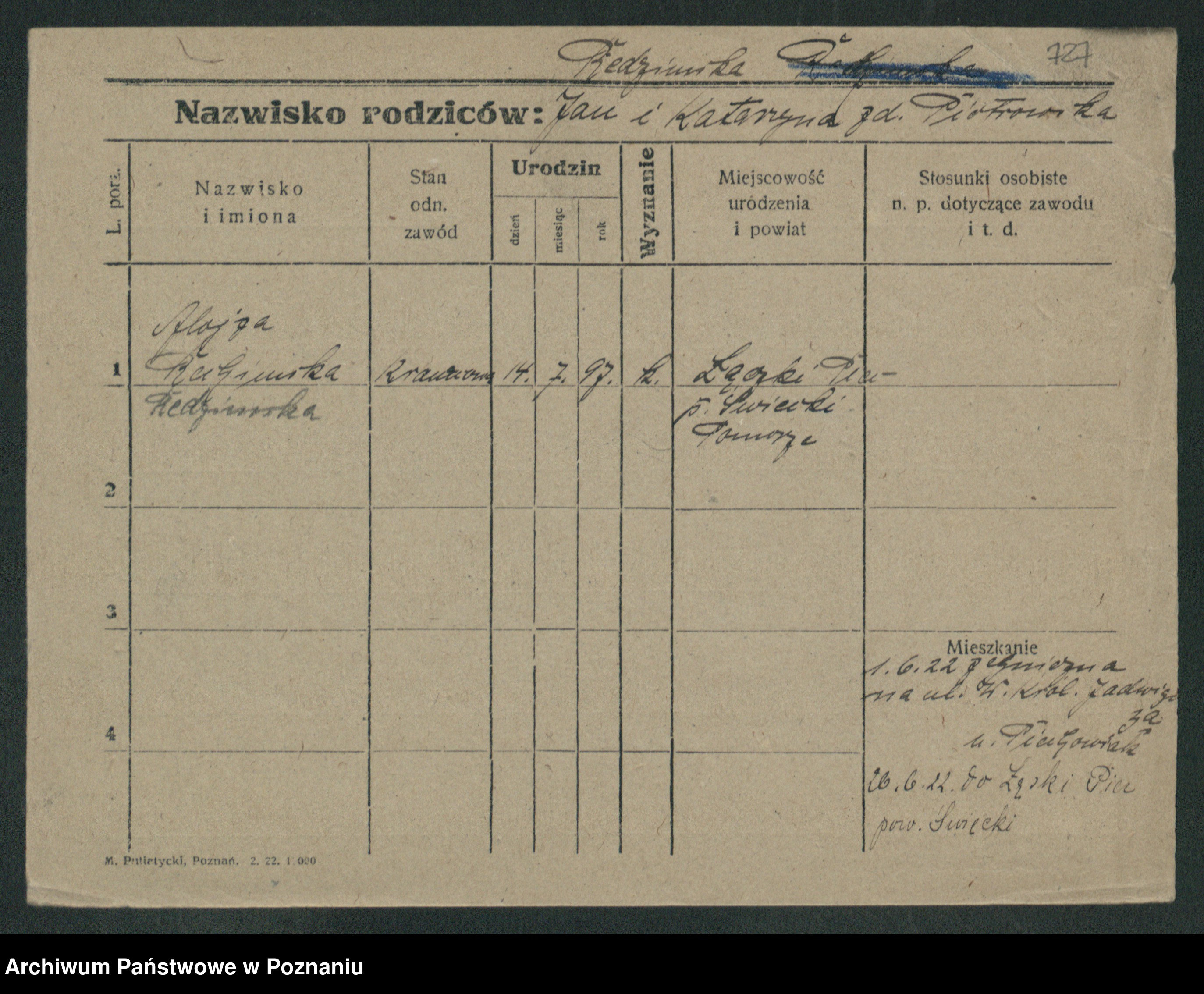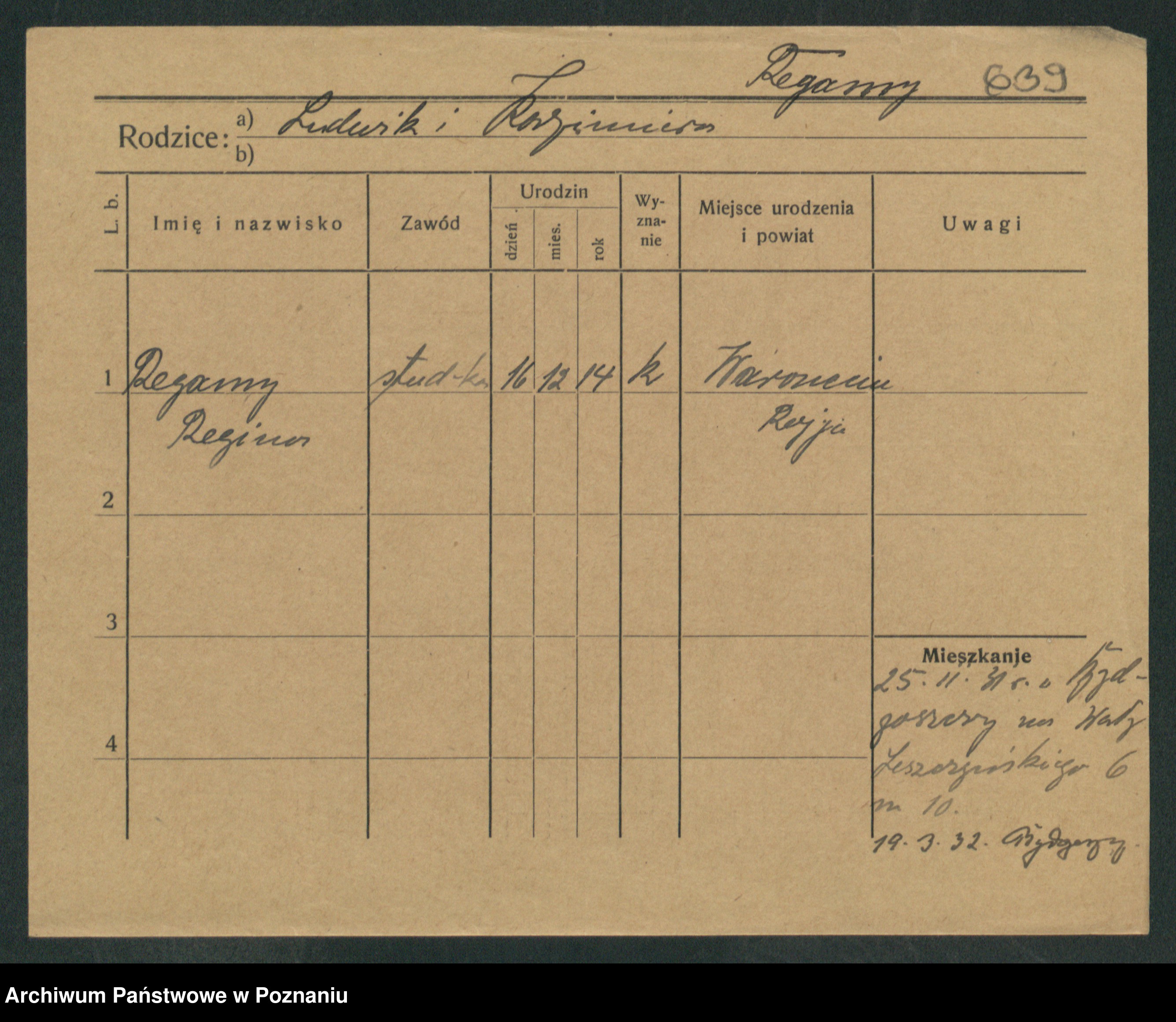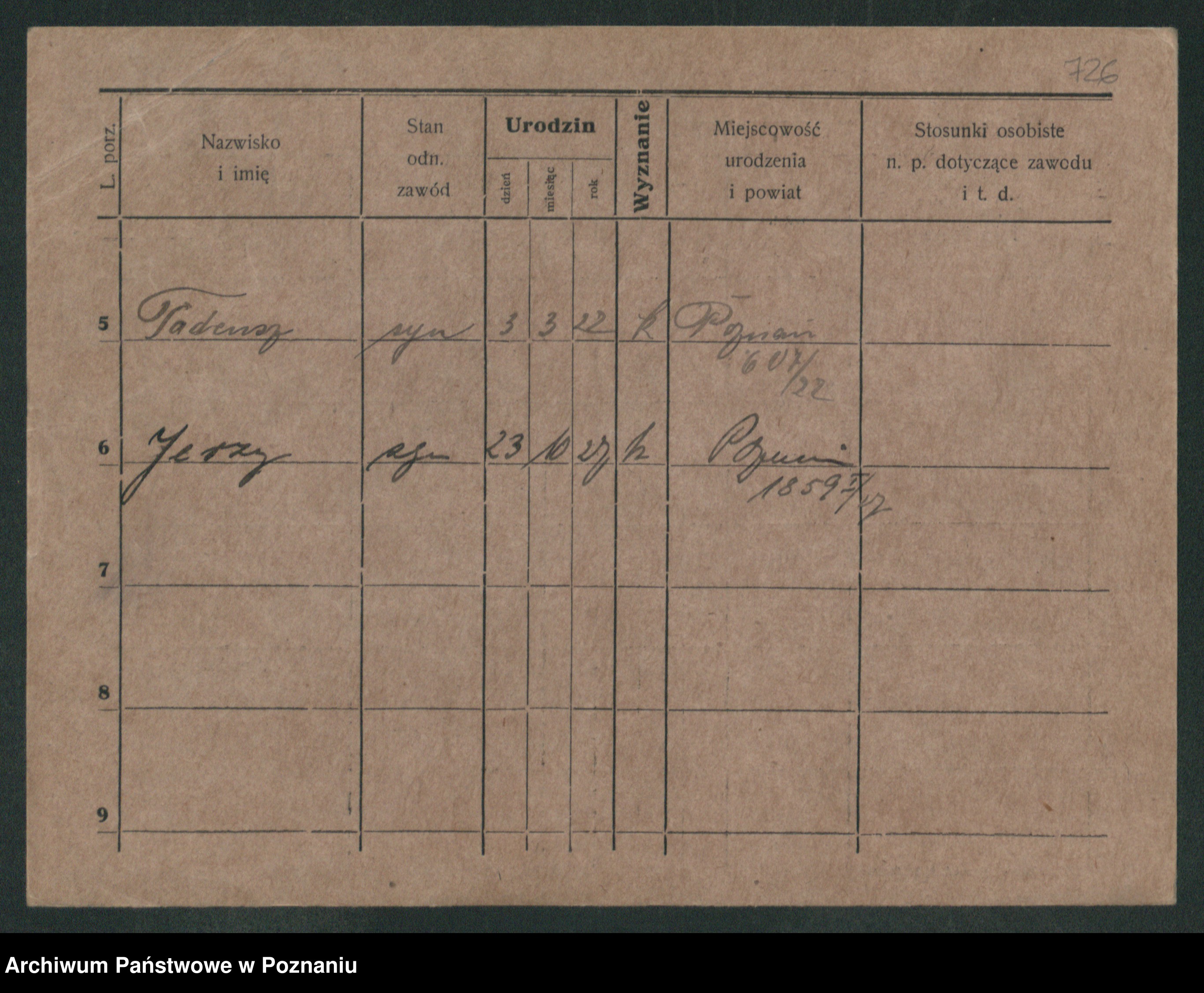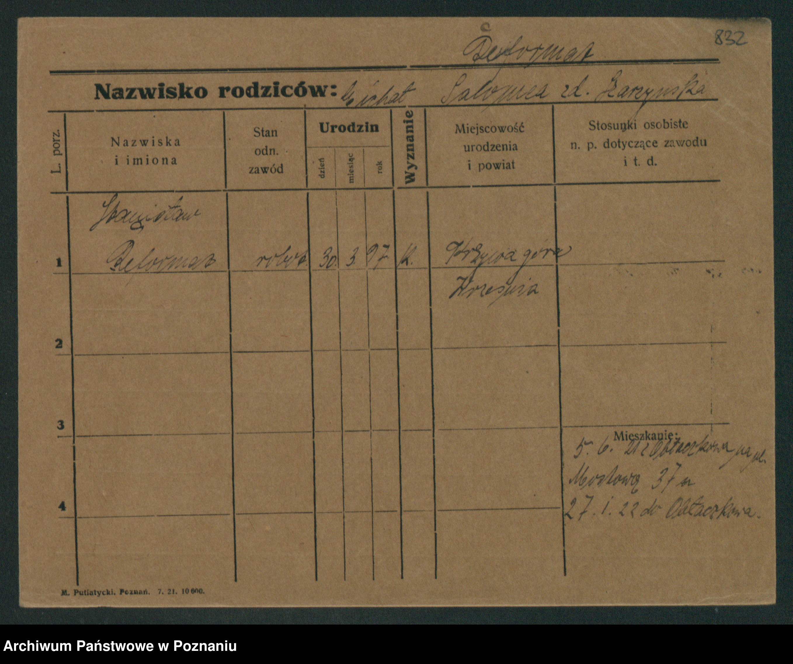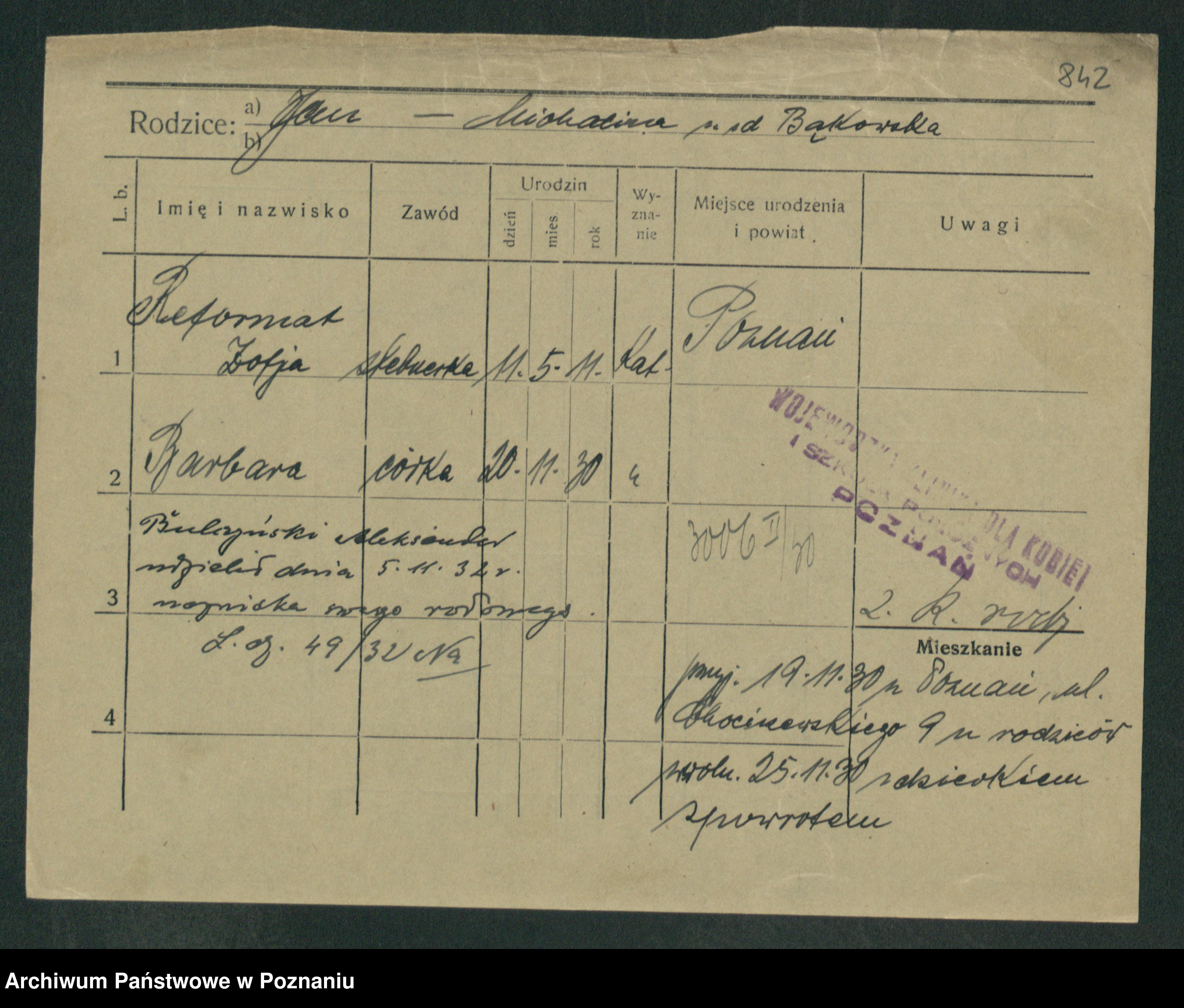 Podgląd karty osobowej dostępny jest po kliknięciu na nazwisko lub ikonkę karty. Można dokonywać powiększenia (ikony na górze) lub przechodzić między kolejnymi skanami (strzałki po bokach).