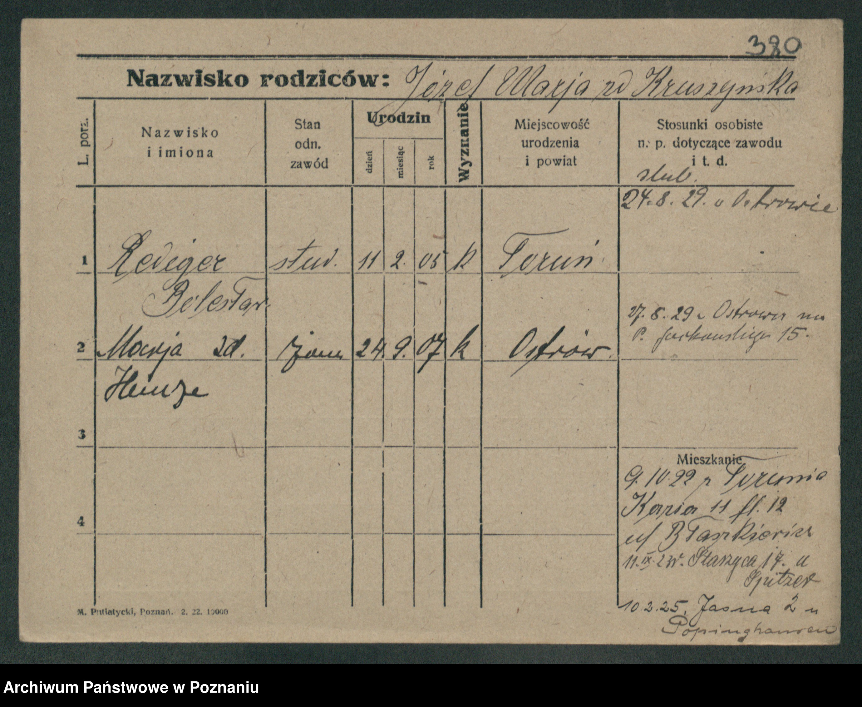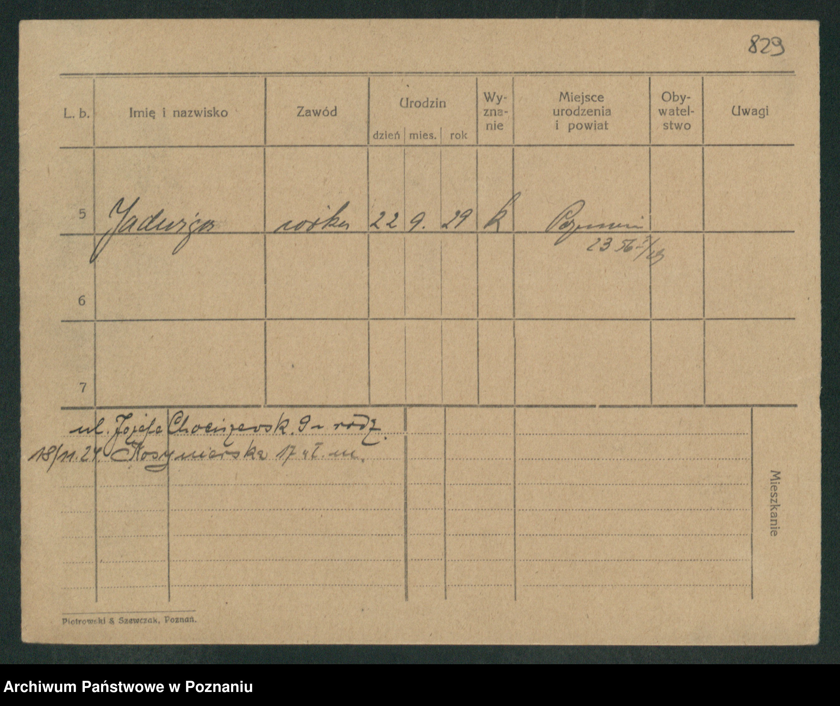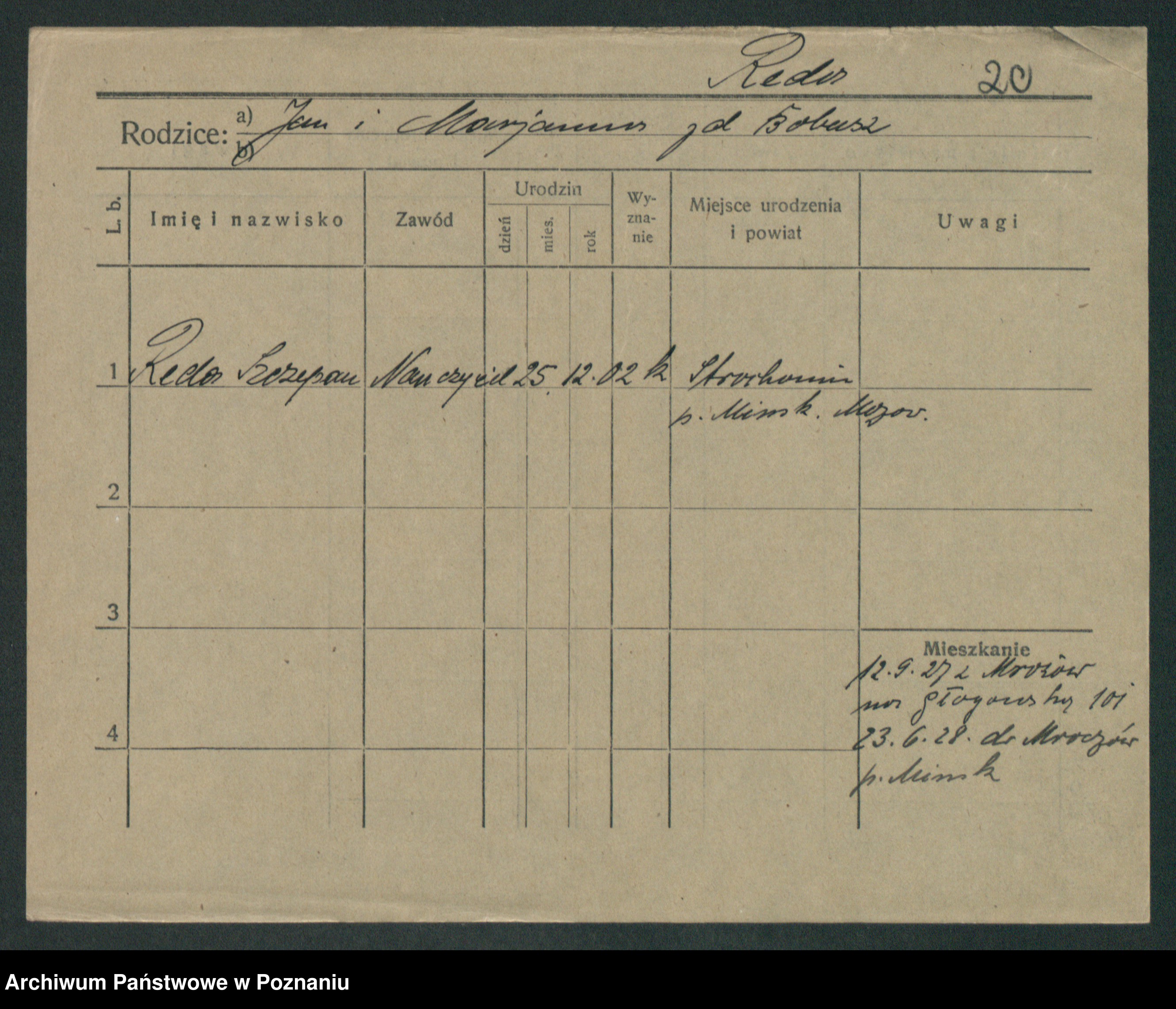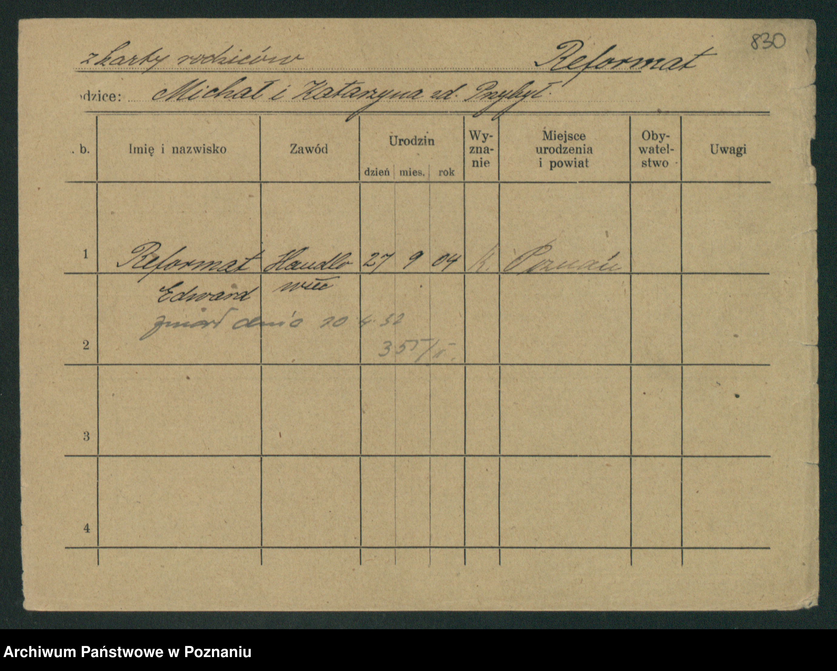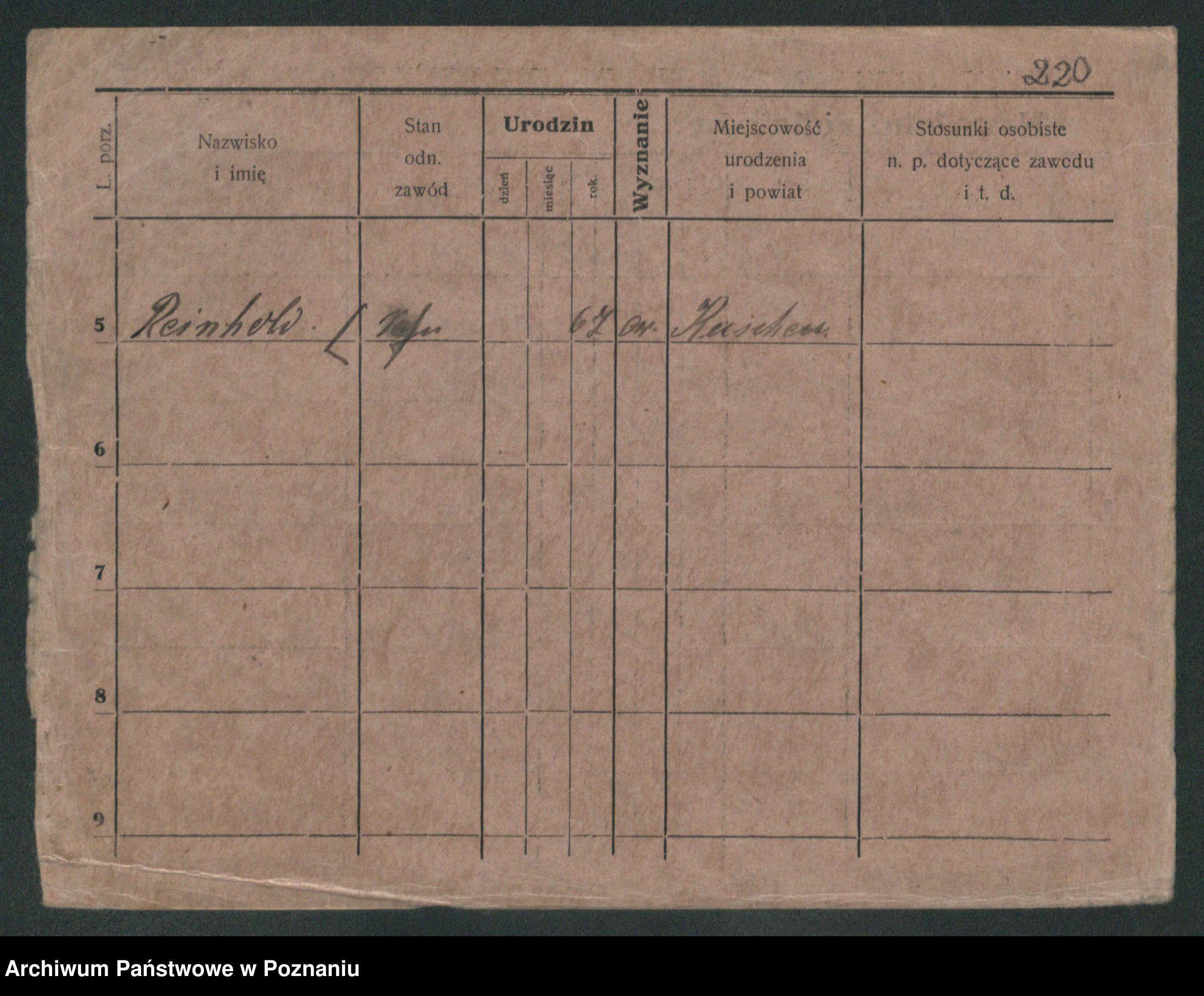Podgląd karty osobowej dostępny jest po kliknięciu na nazwisko lub ikonkę karty. Można dokonywać powiększenia (ikony na górze) lub przechodzić między kolejnymi skanami (strzałki po bokach).