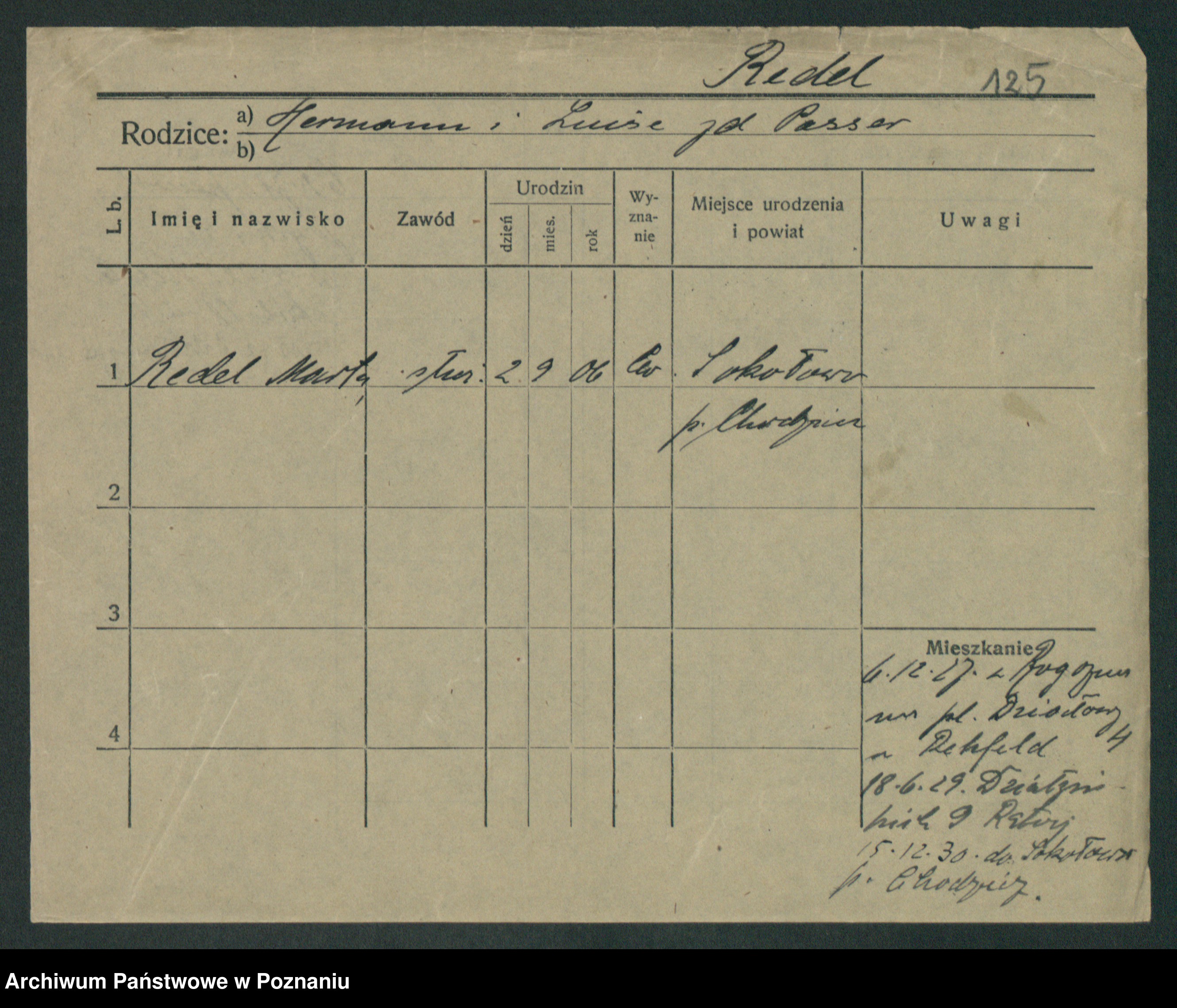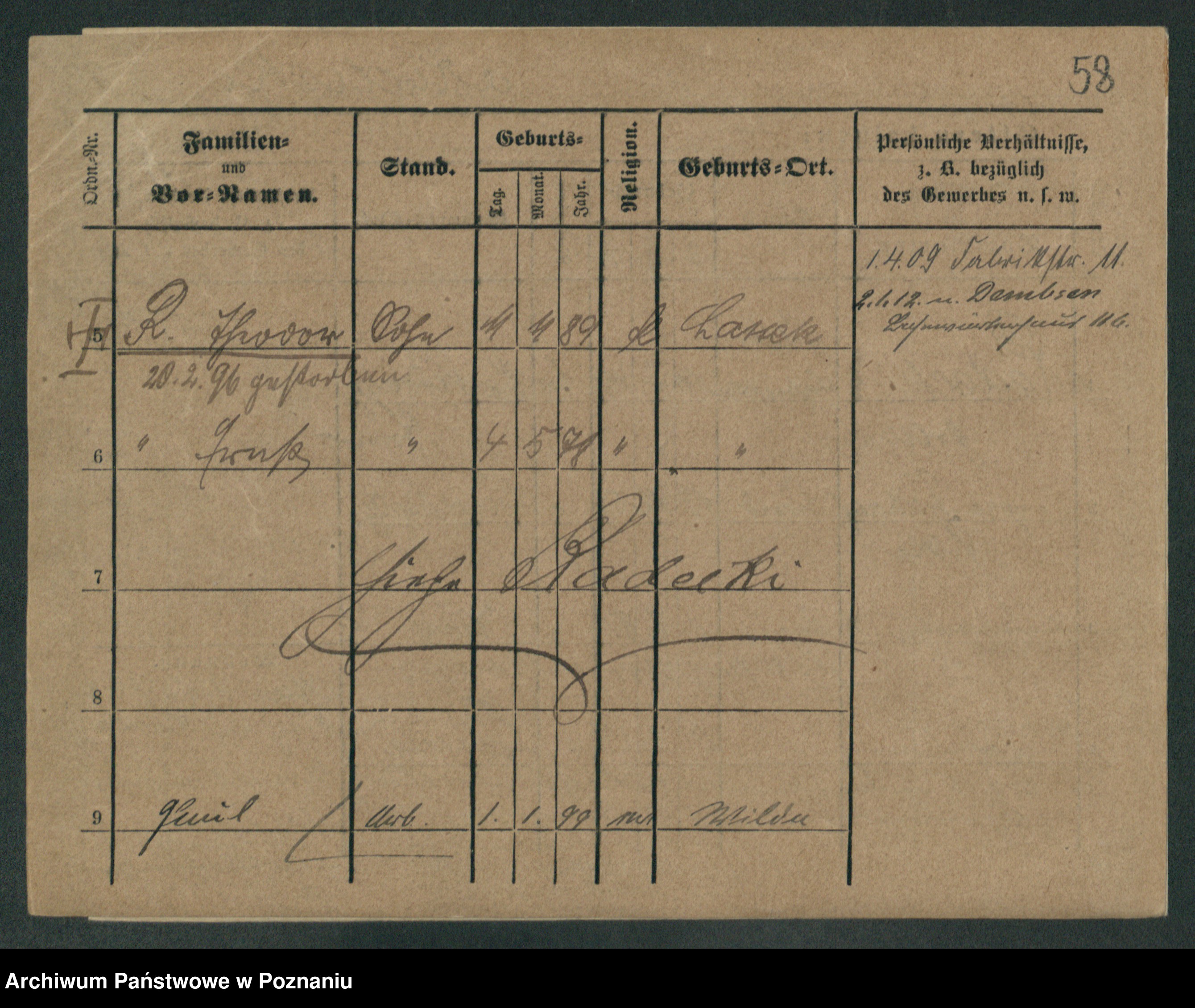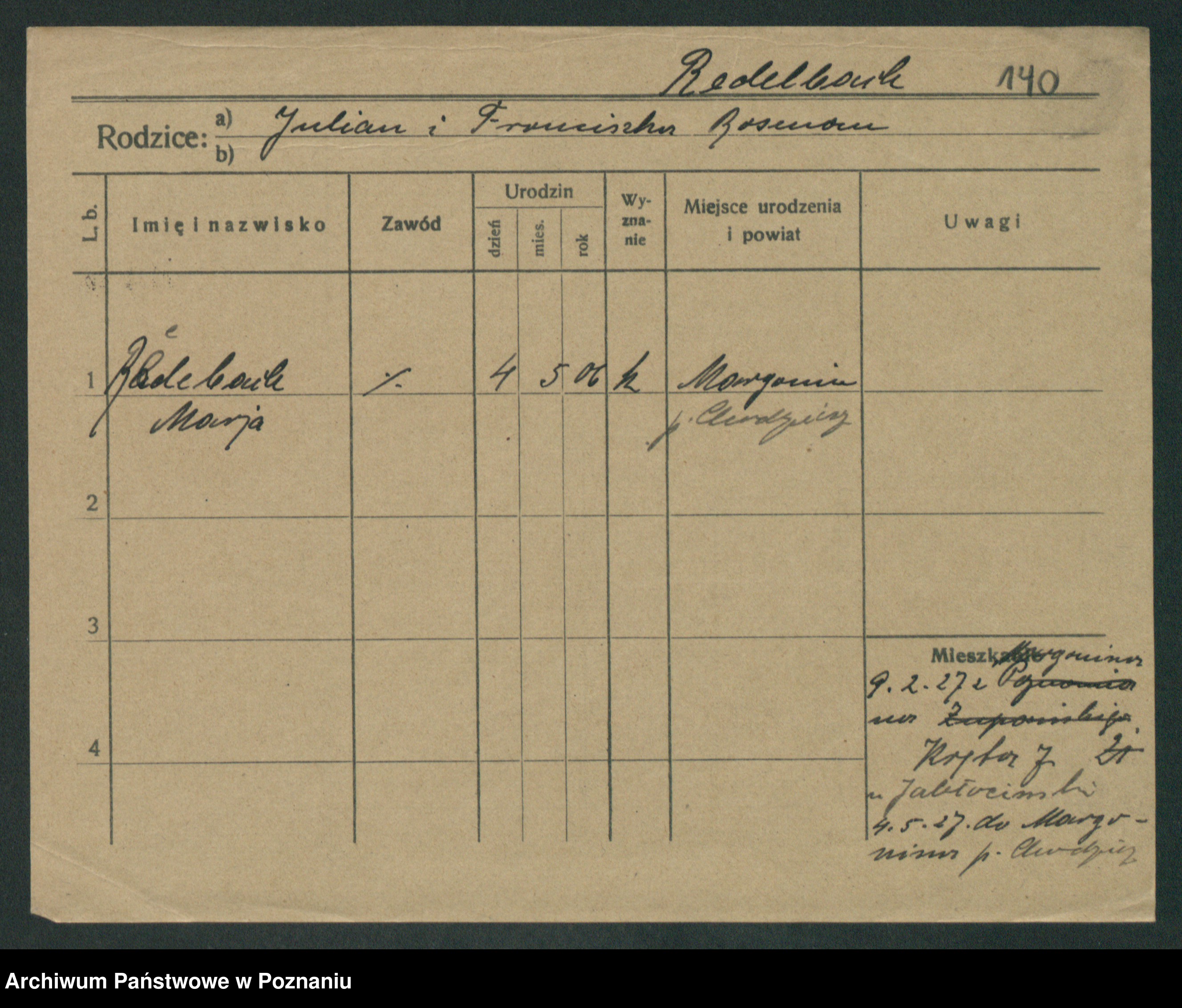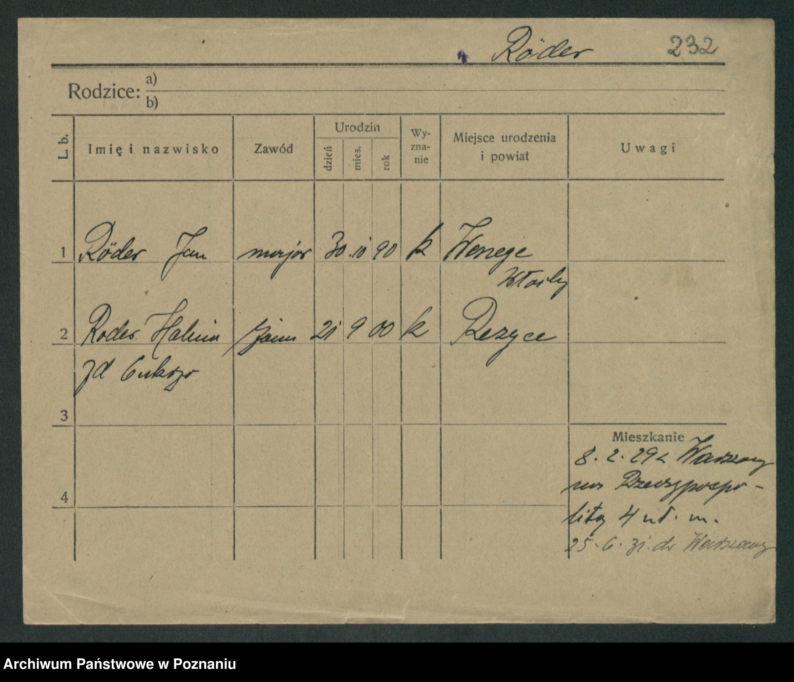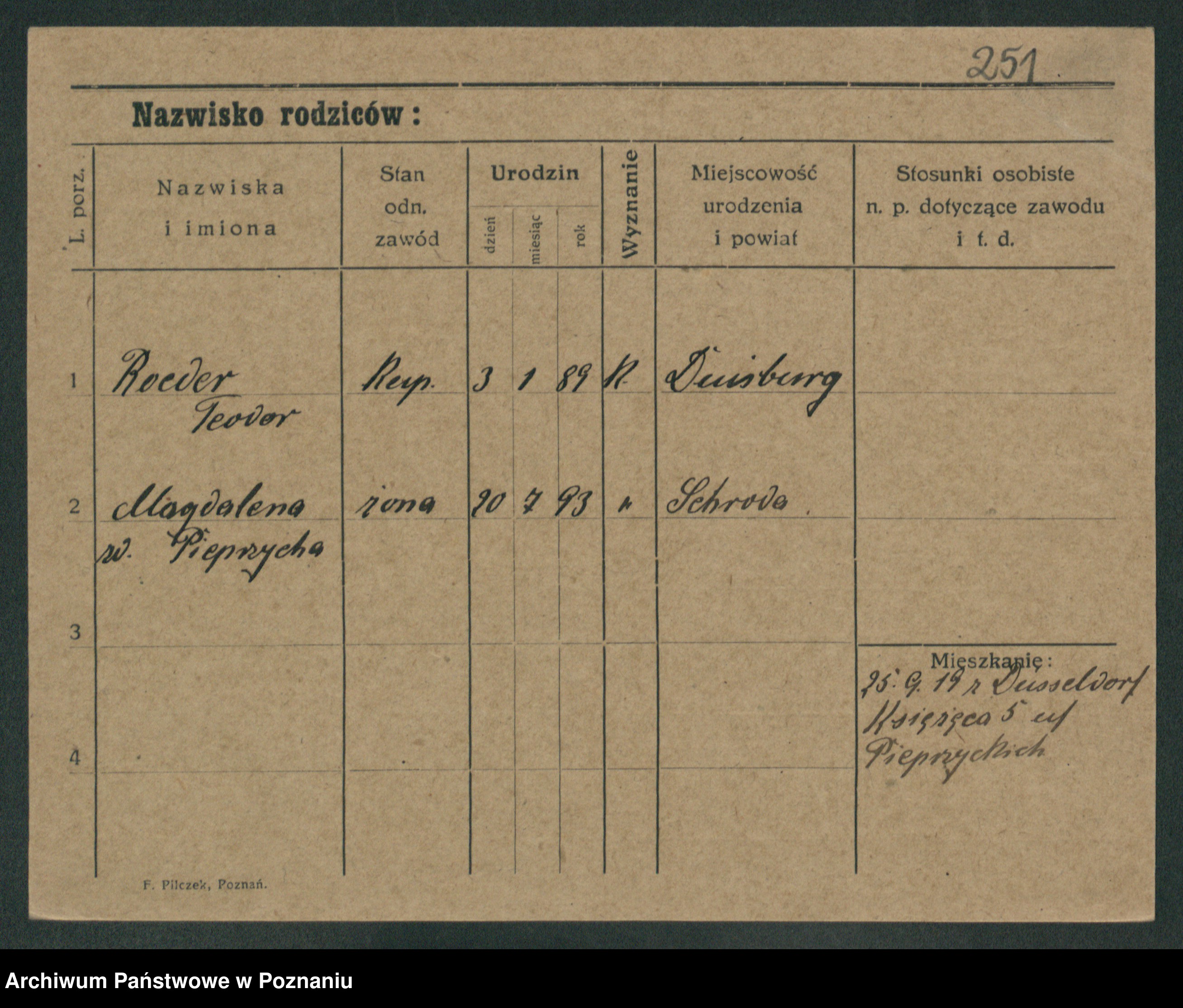 Podgląd karty osobowej dostępny jest po kliknięciu na nazwisko lub ikonkę karty. Można dokonywać powiększenia (ikony na górze) lub przechodzić między kolejnymi skanami (strzałki po bokach).