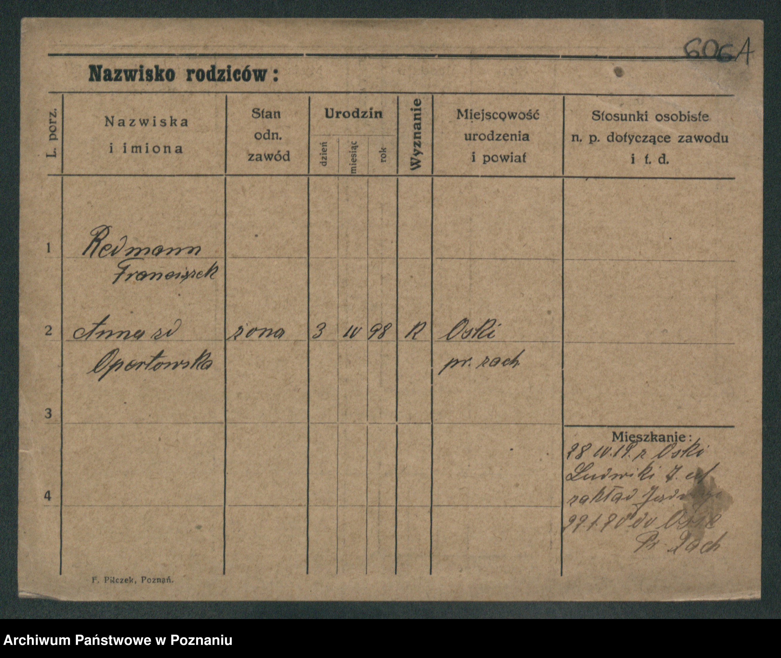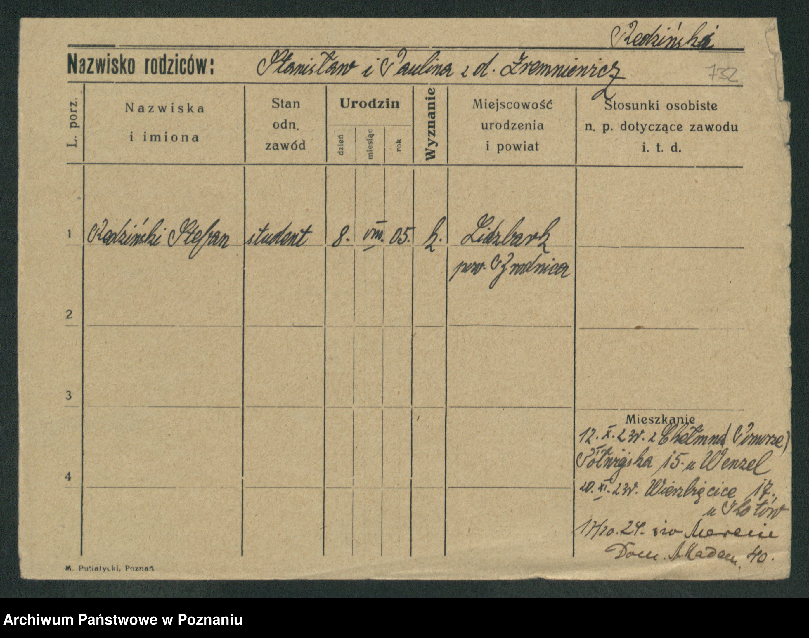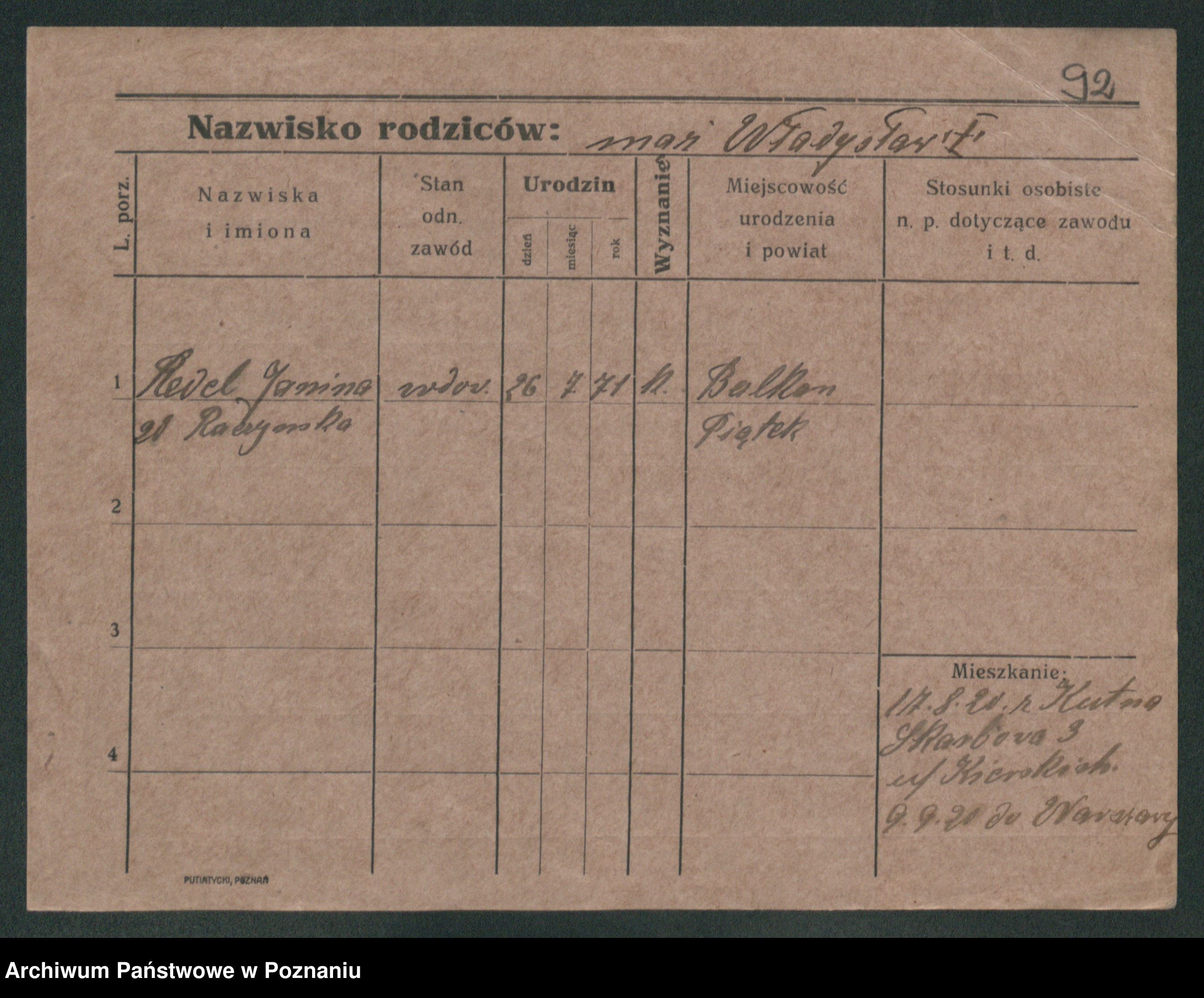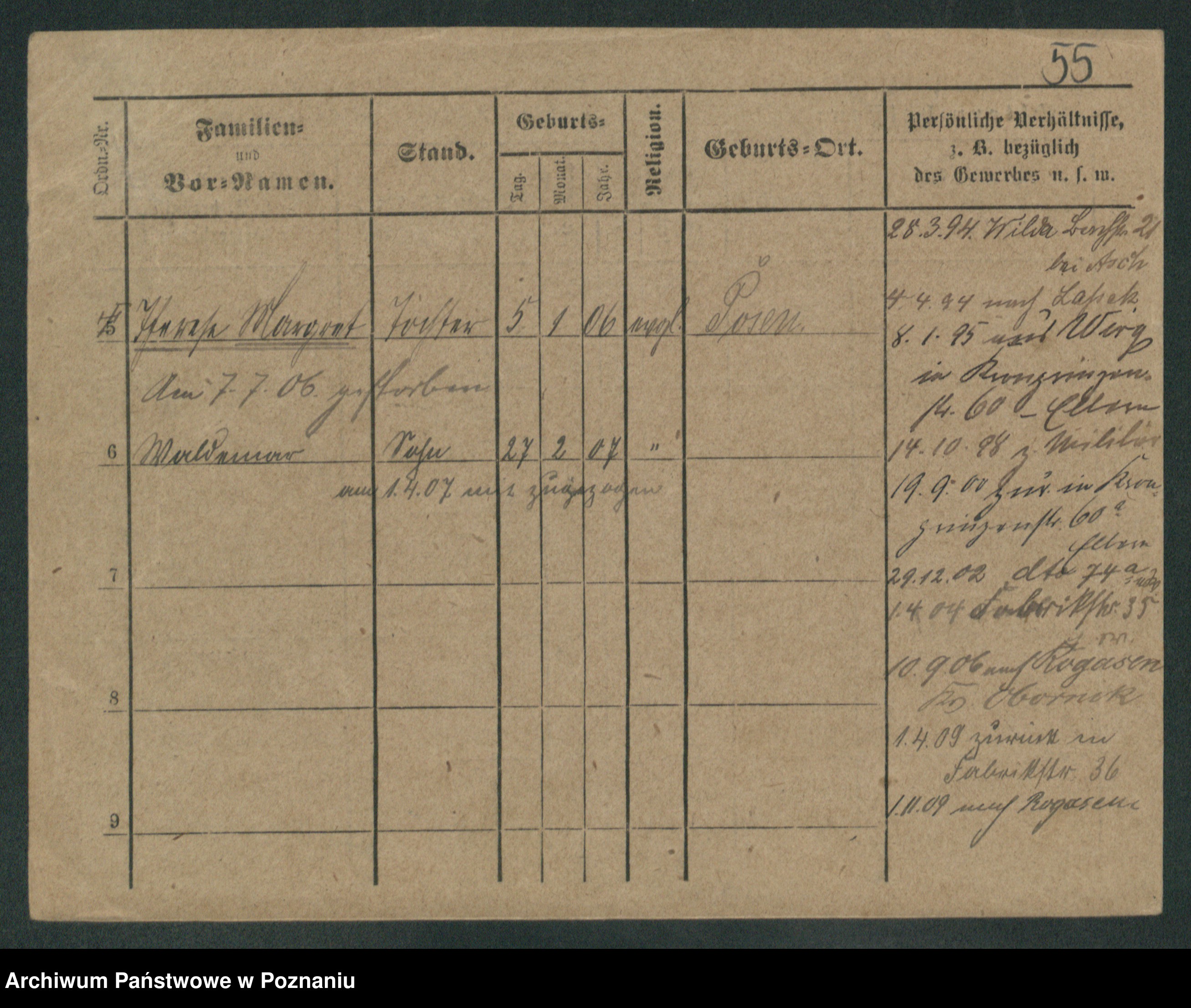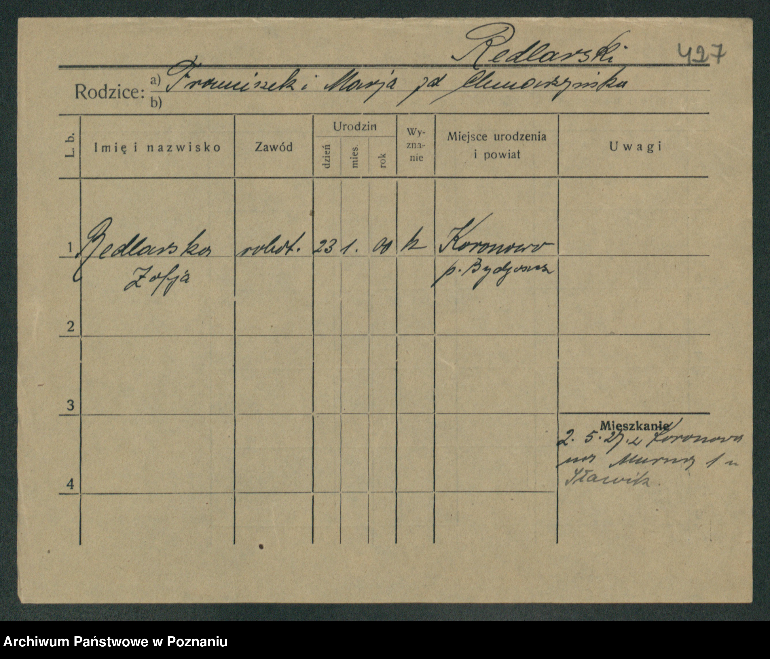 Podgląd karty osobowej dostępny jest po kliknięciu na nazwisko lub ikonkę karty. Można dokonywać powiększenia (ikony na górze) lub przechodzić między kolejnymi skanami (strzałki po bokach).