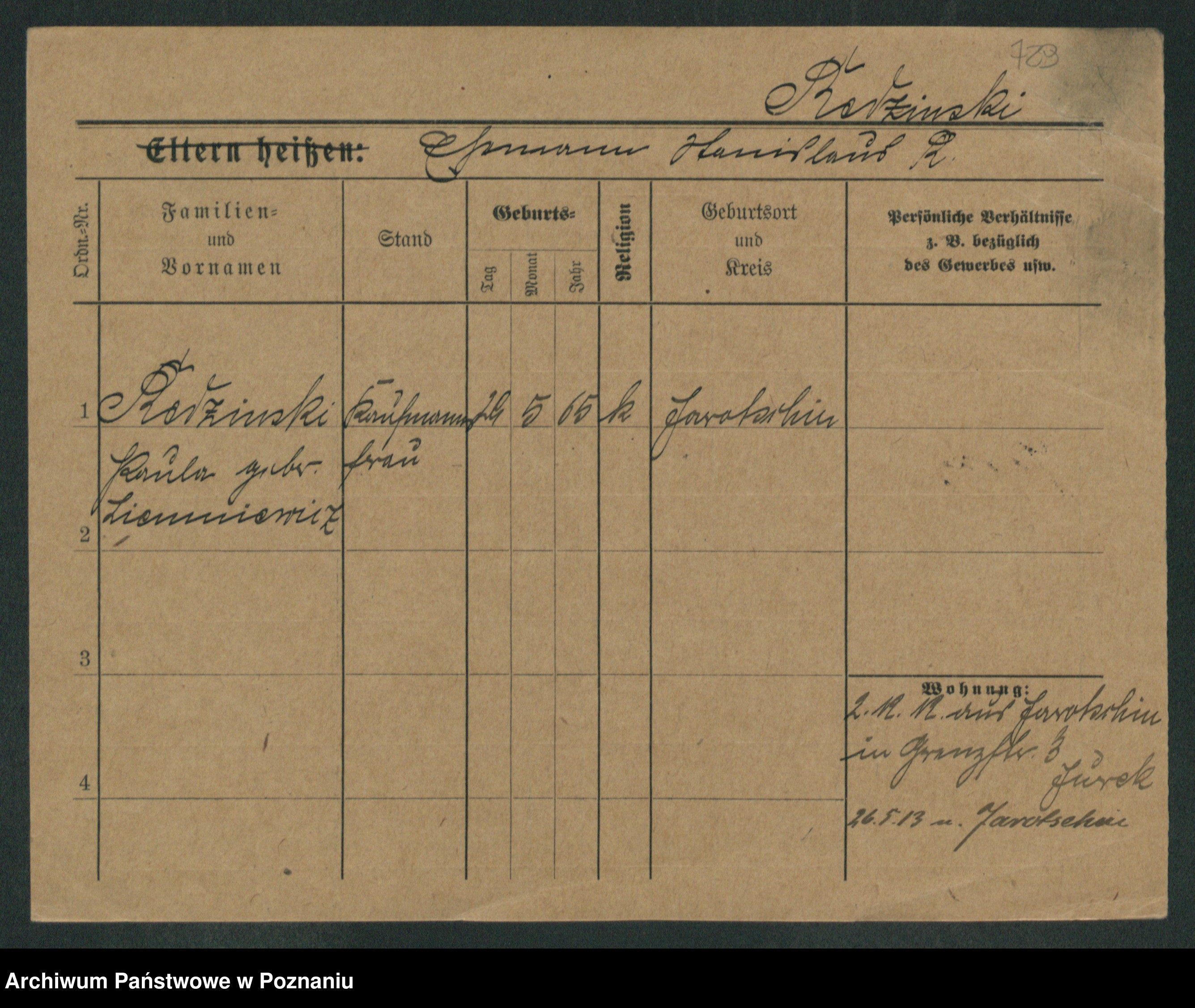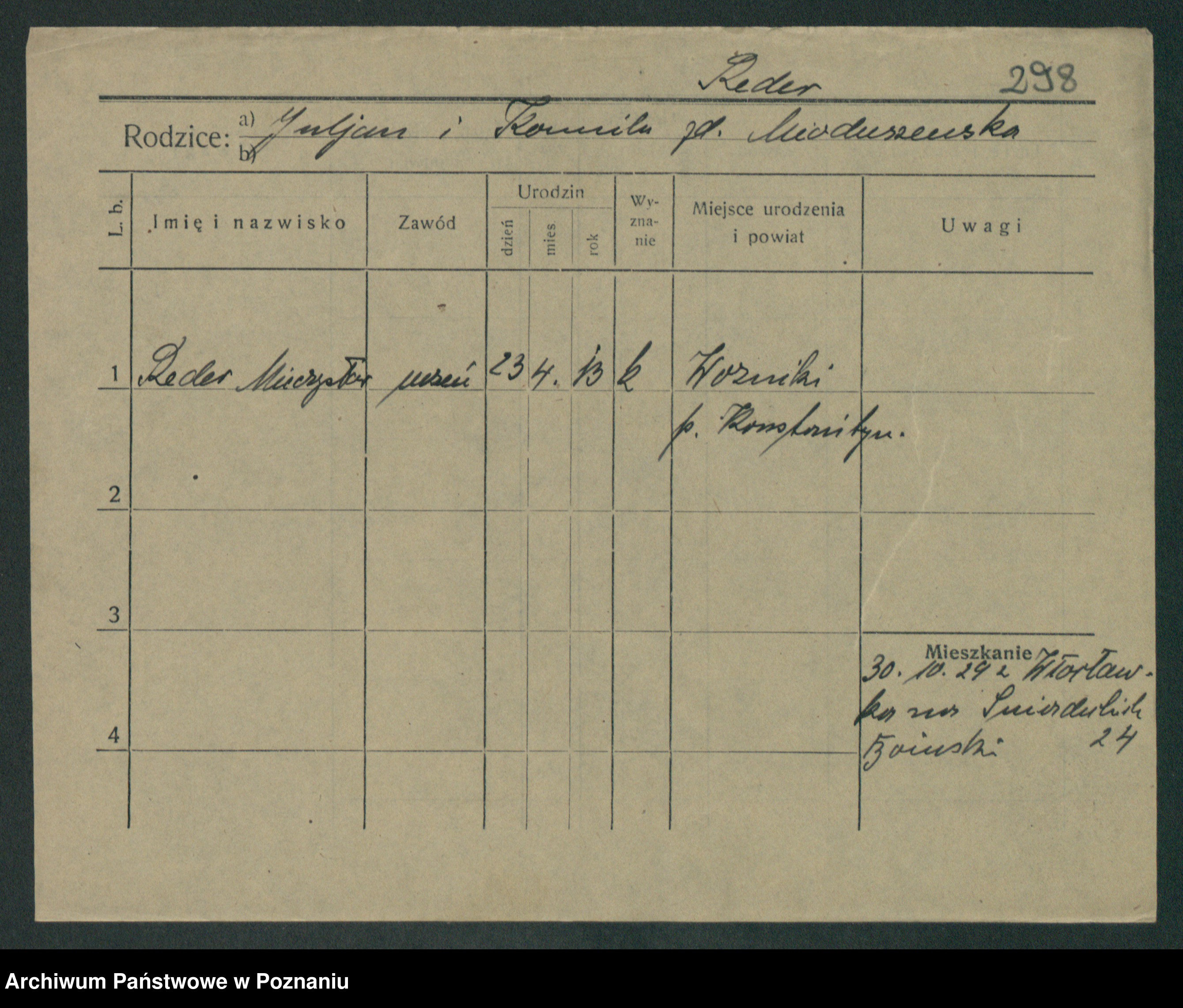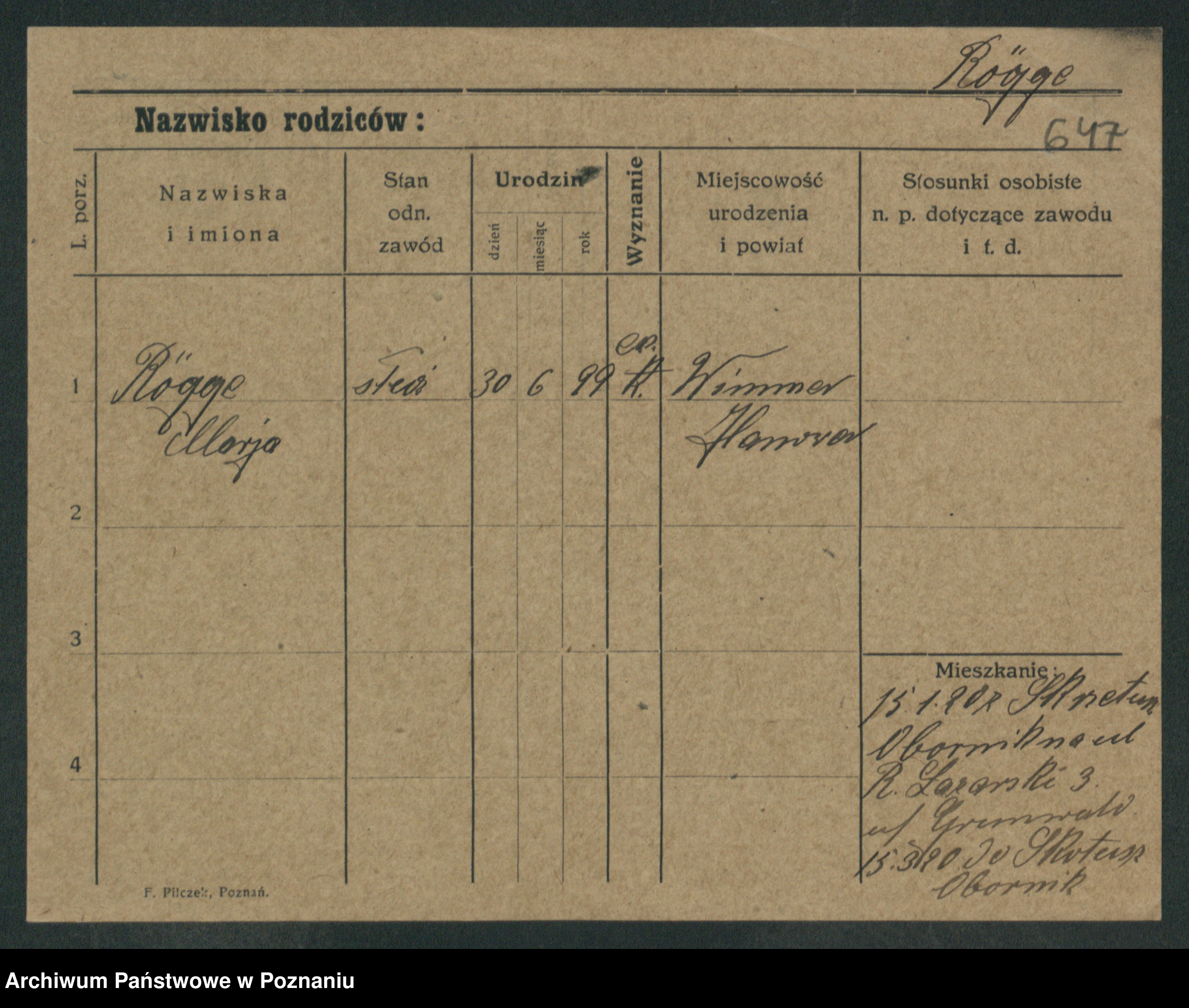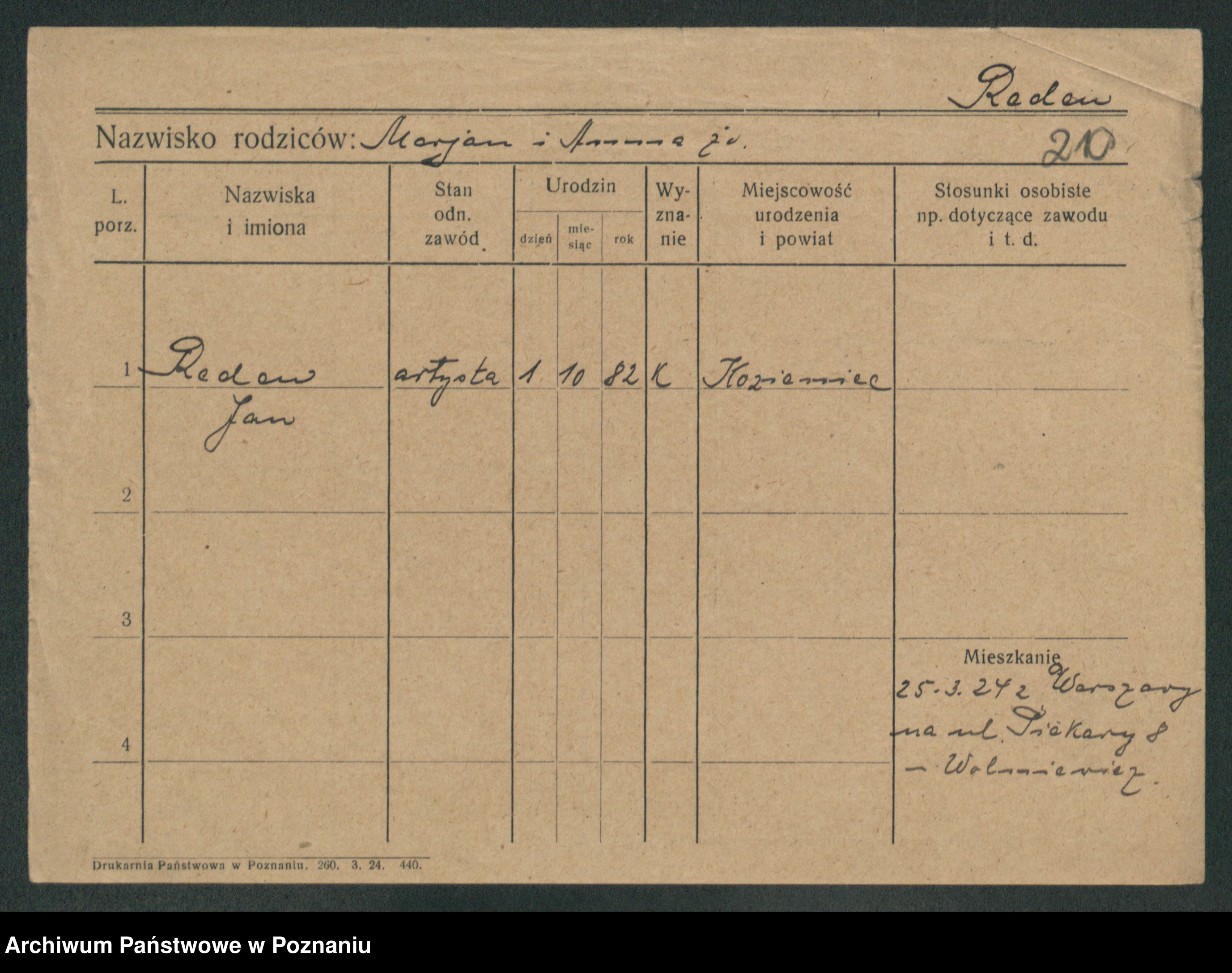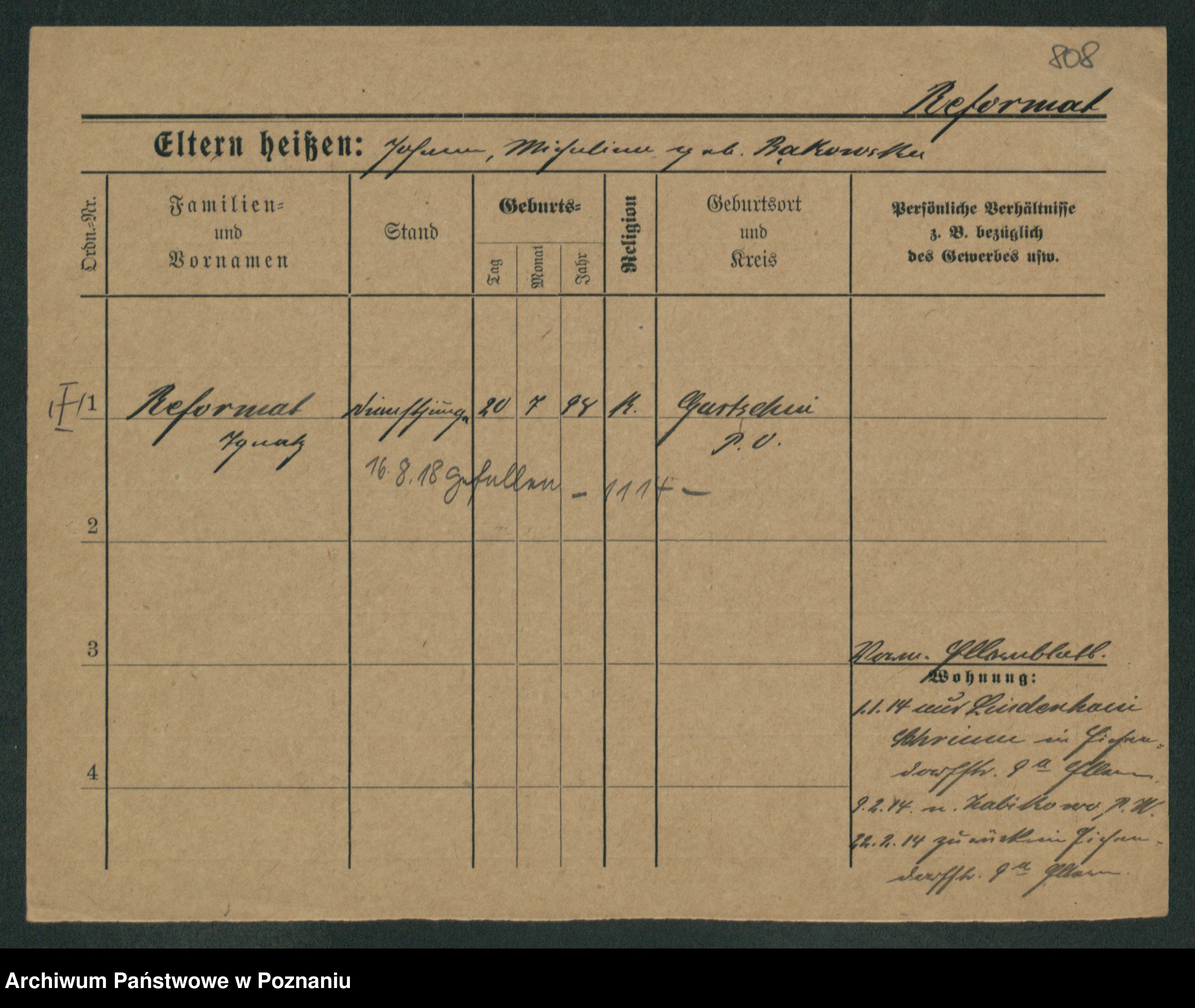 Podgląd karty osobowej dostępny jest po kliknięciu na nazwisko lub ikonkę karty. Można dokonywać powiększenia (ikony na górze) lub przechodzić między kolejnymi skanami (strzałki po bokach).
