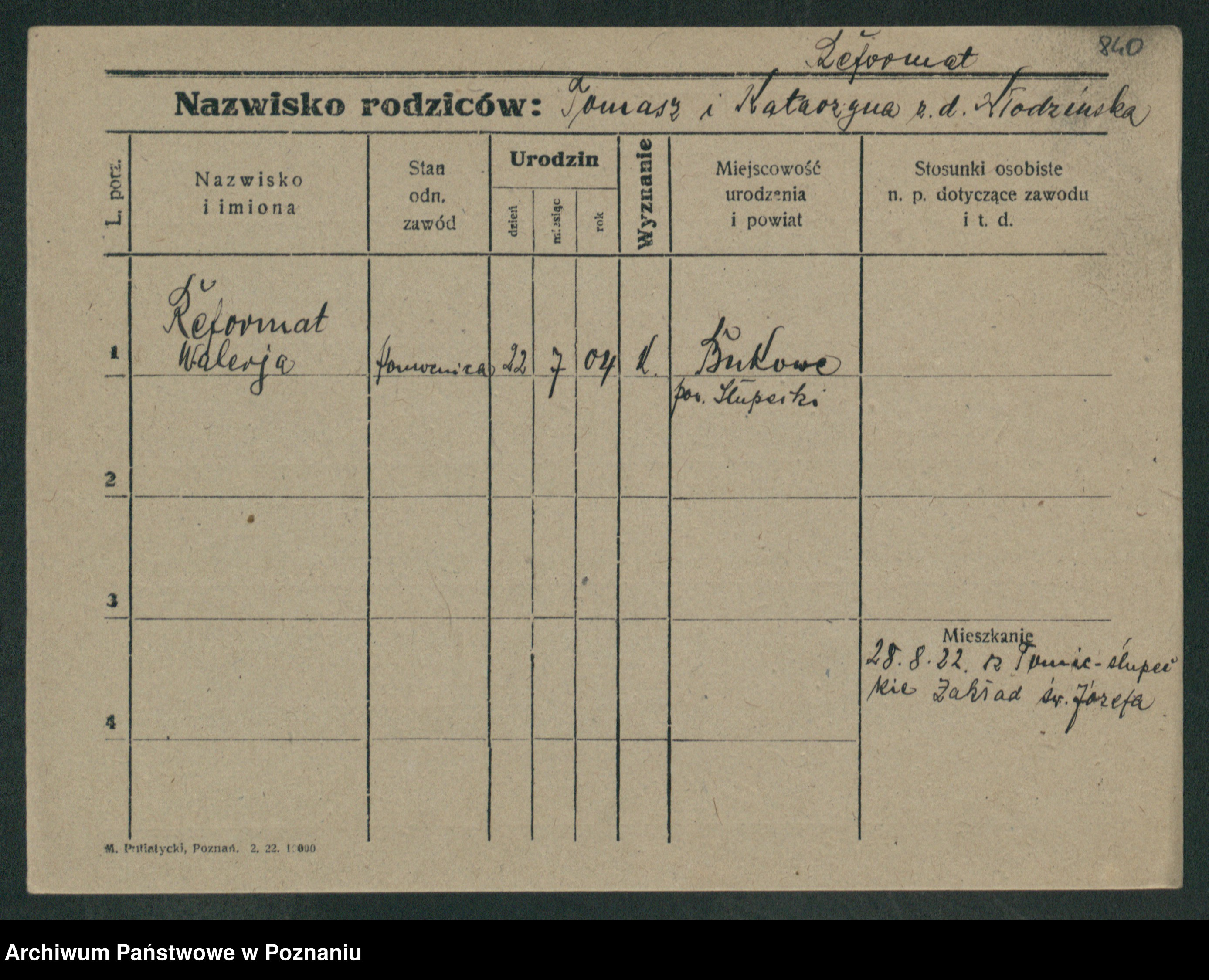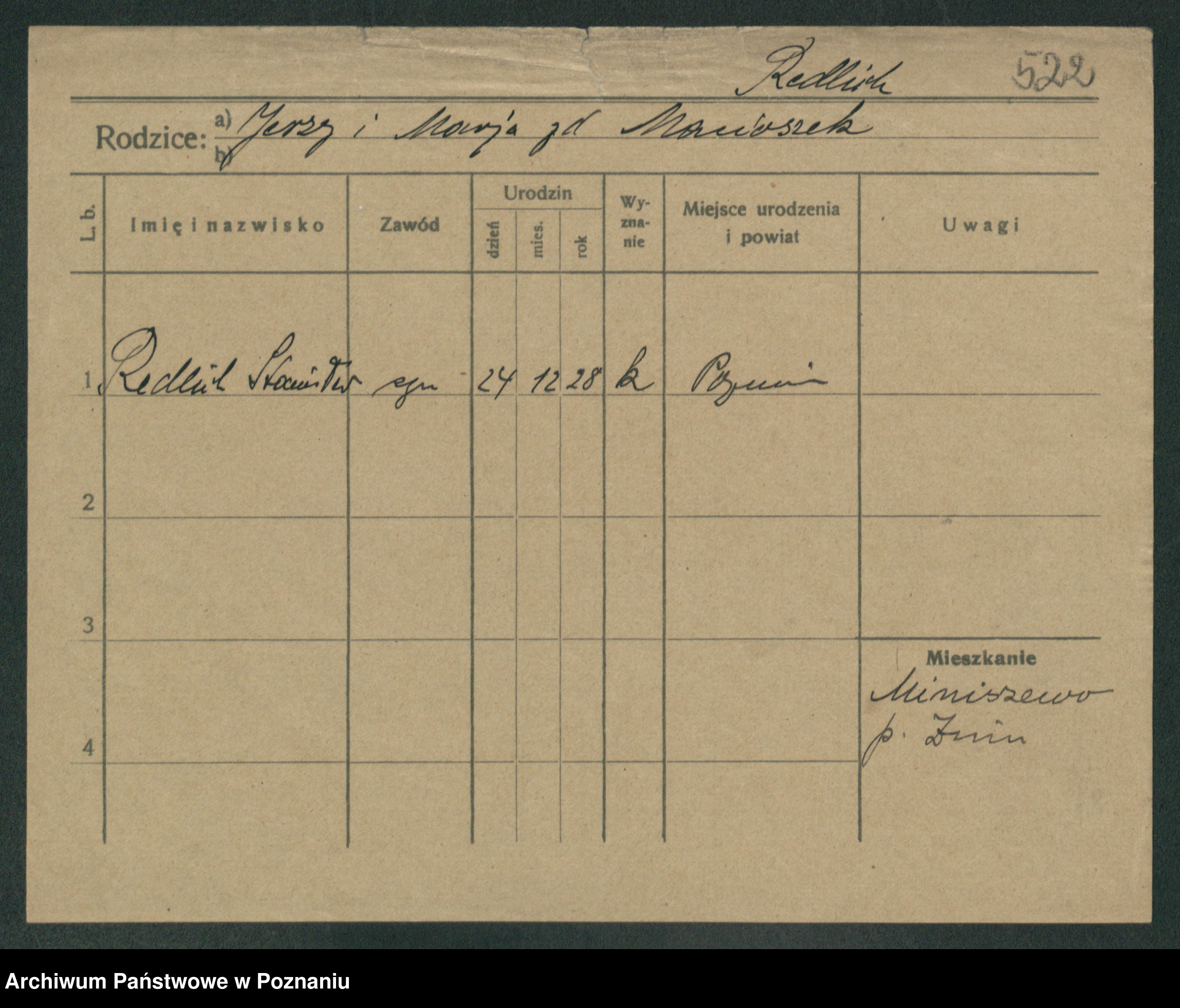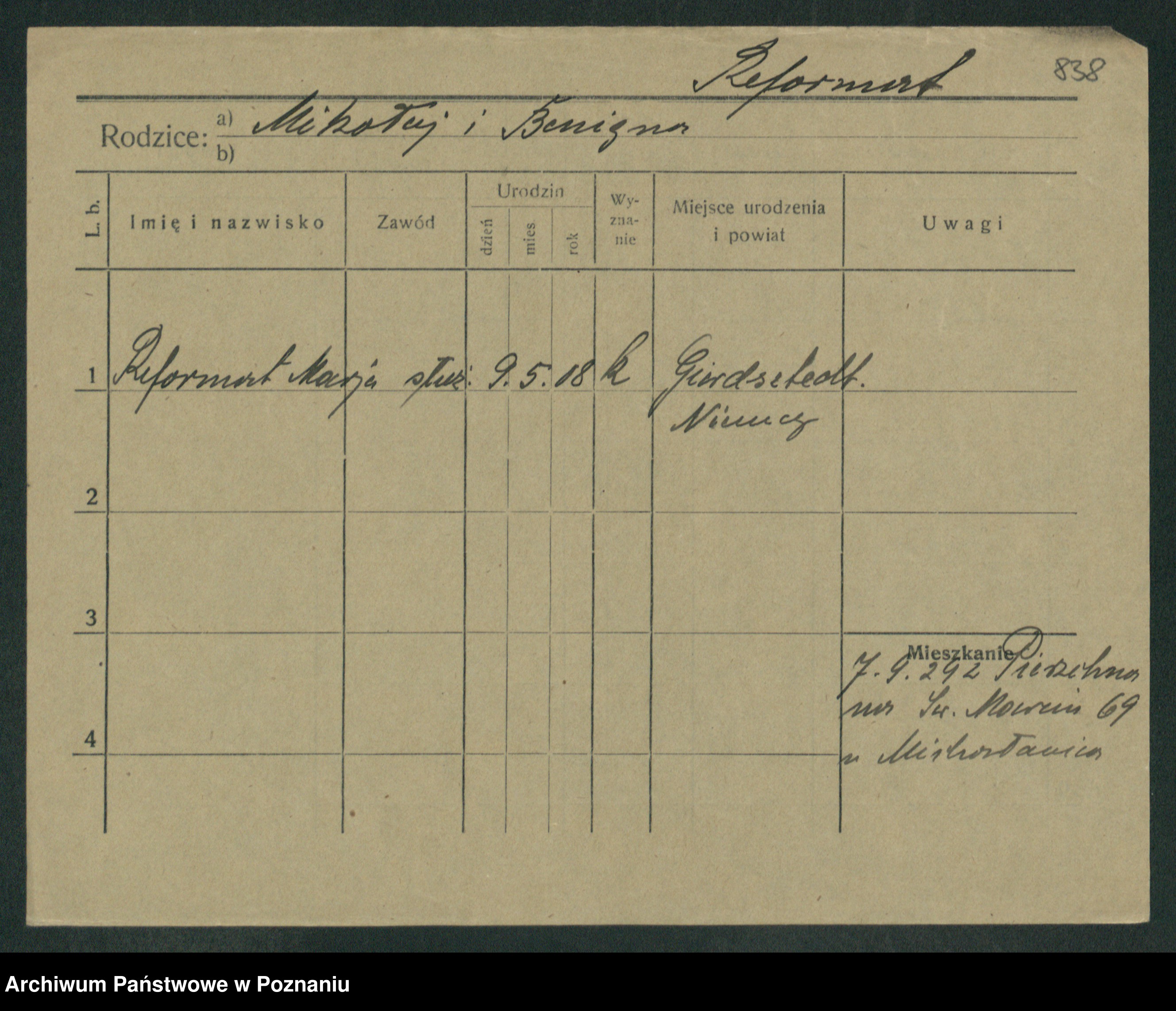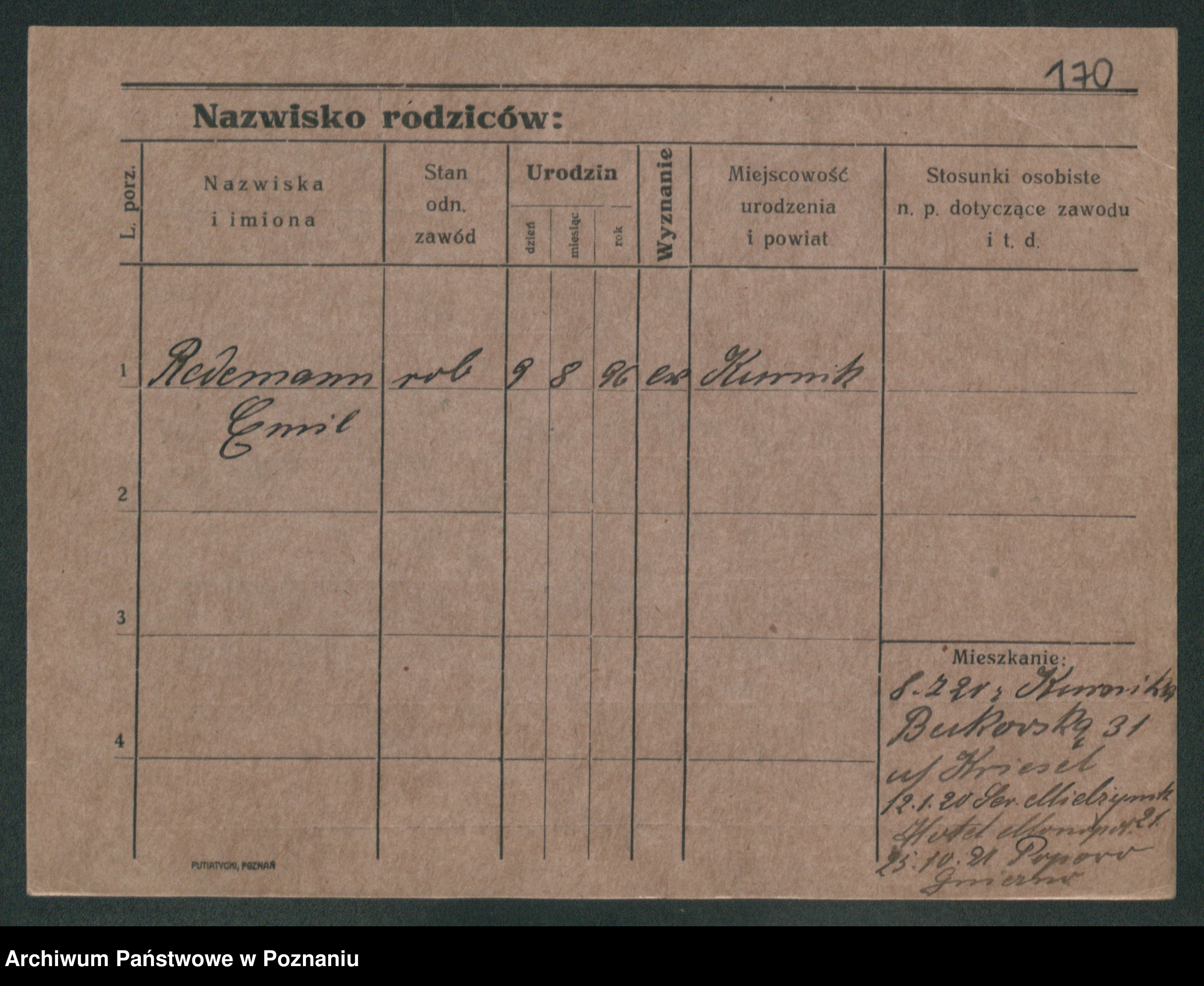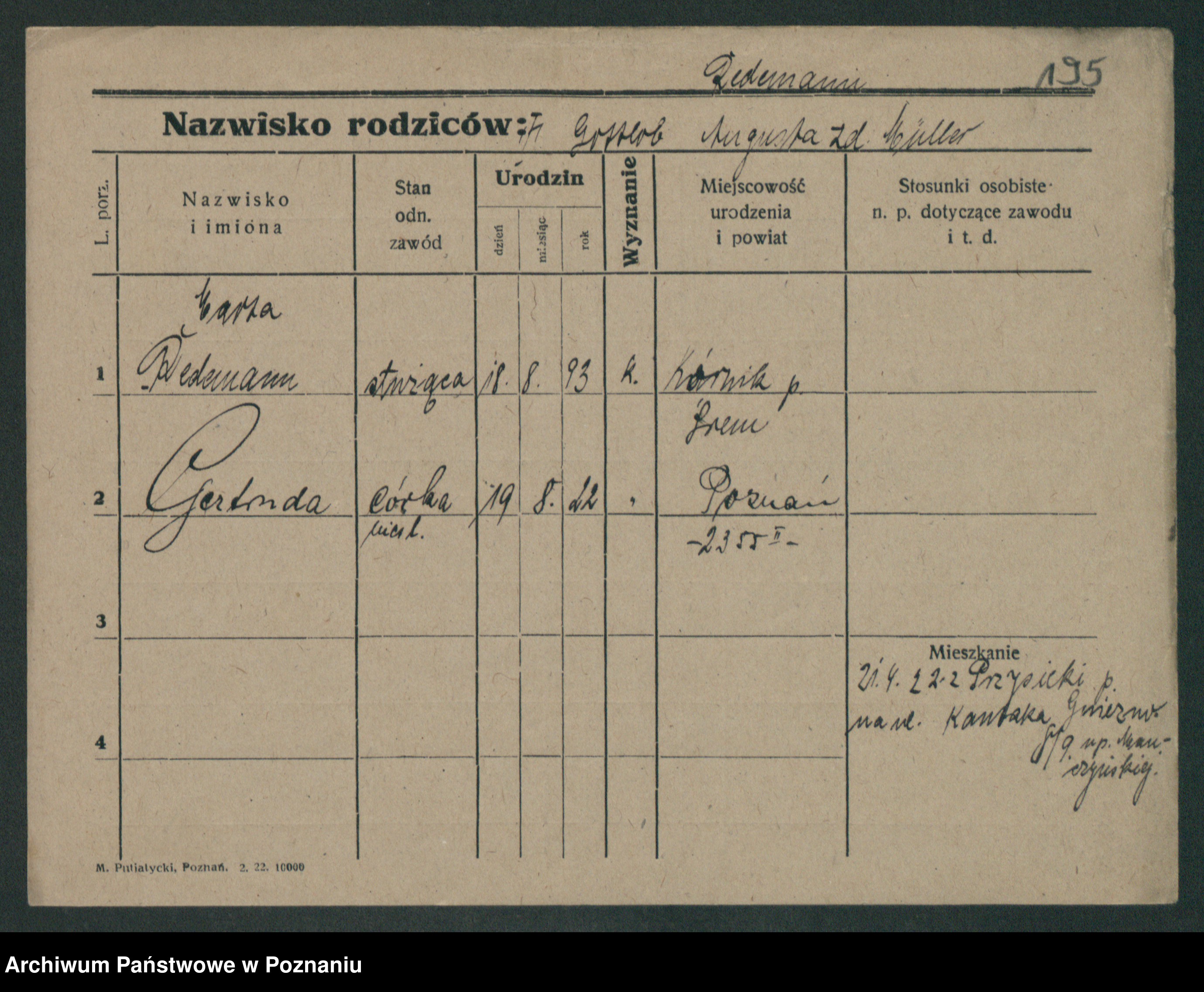 Podgląd karty osobowej dostępny jest po kliknięciu na nazwisko lub ikonkę karty. Można dokonywać powiększenia (ikony na górze) lub przechodzić między kolejnymi skanami (strzałki po bokach).