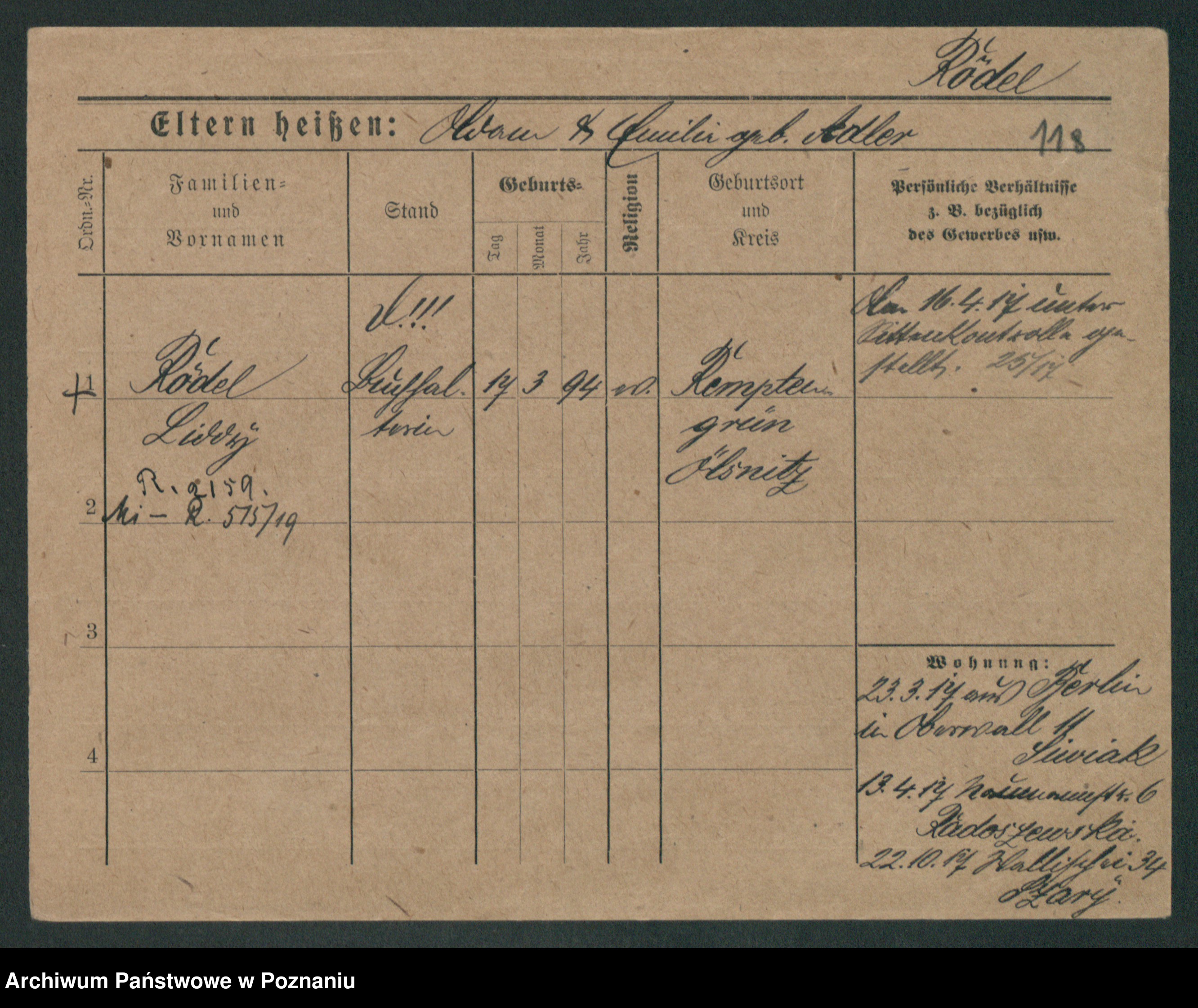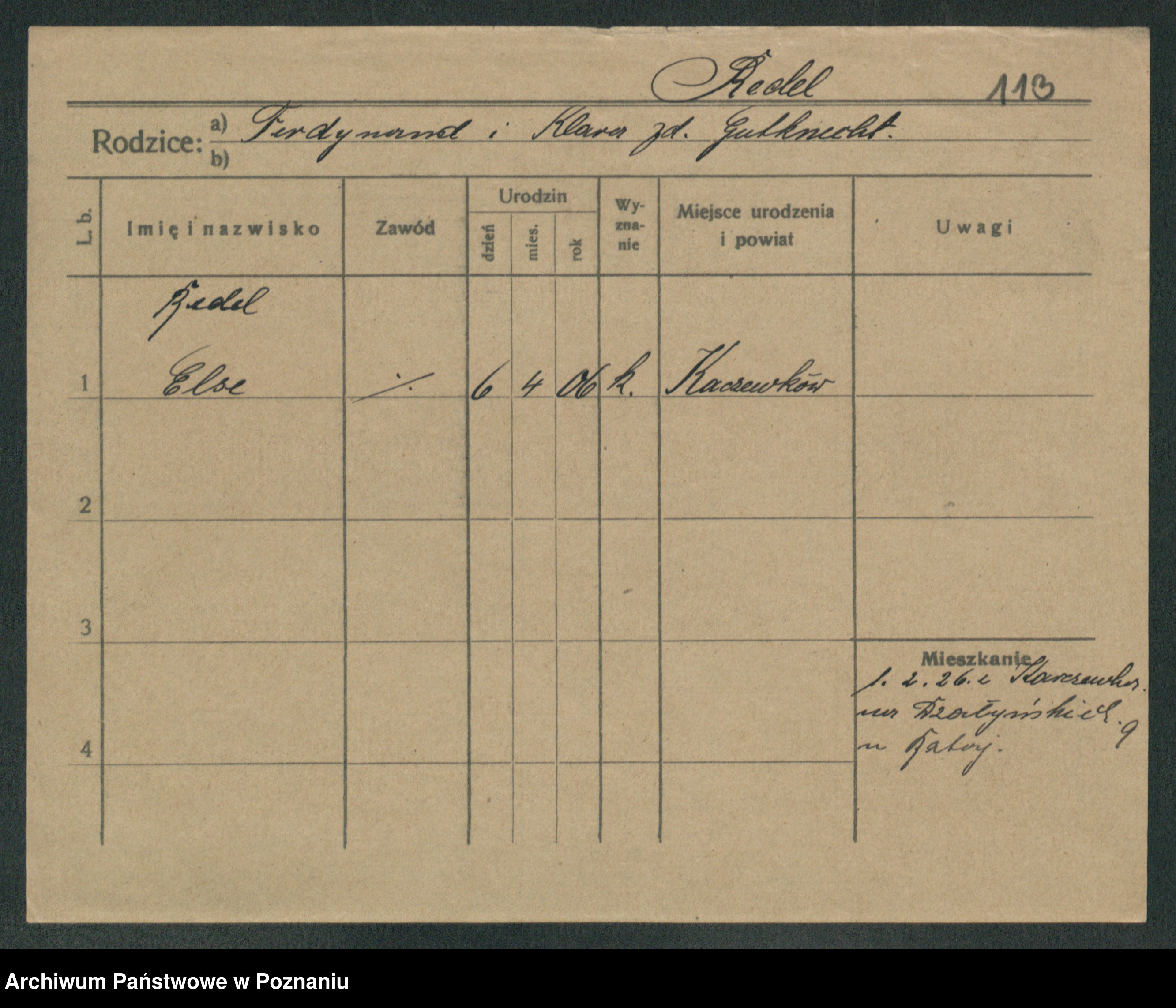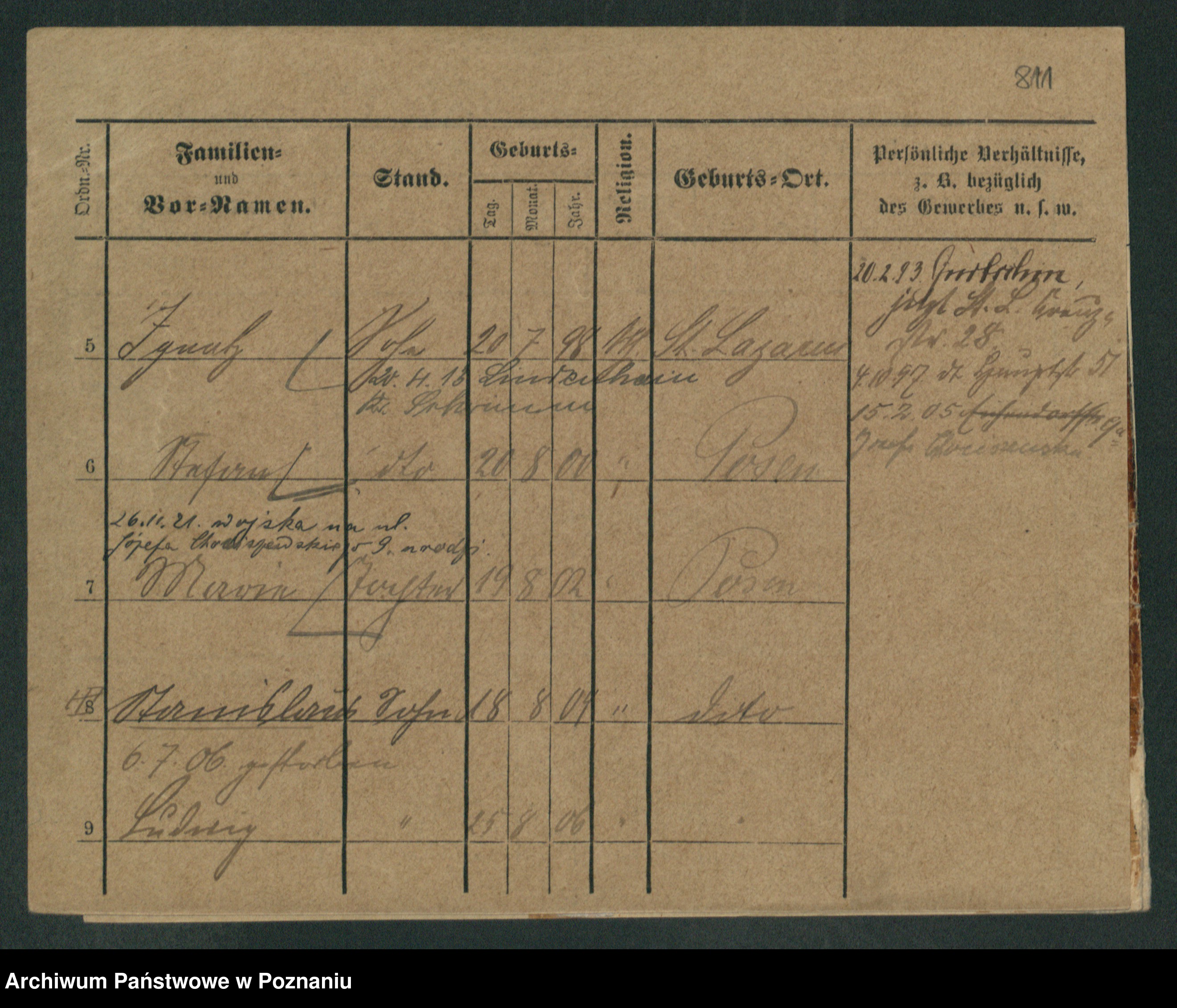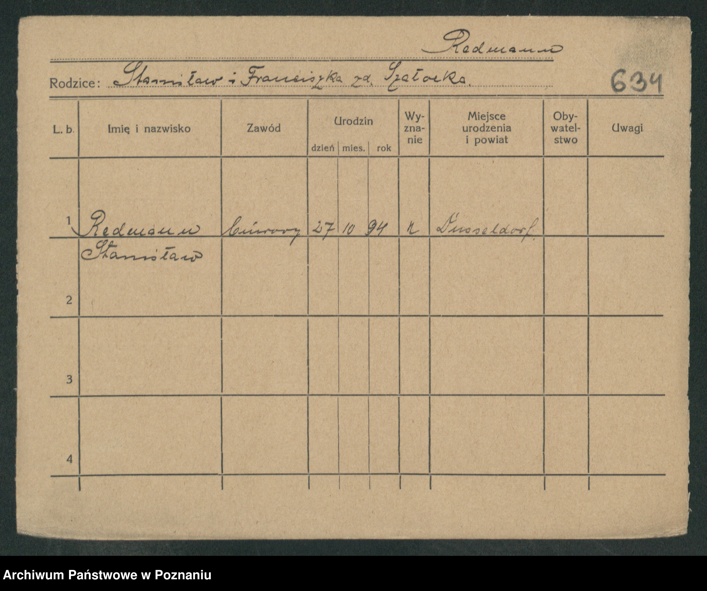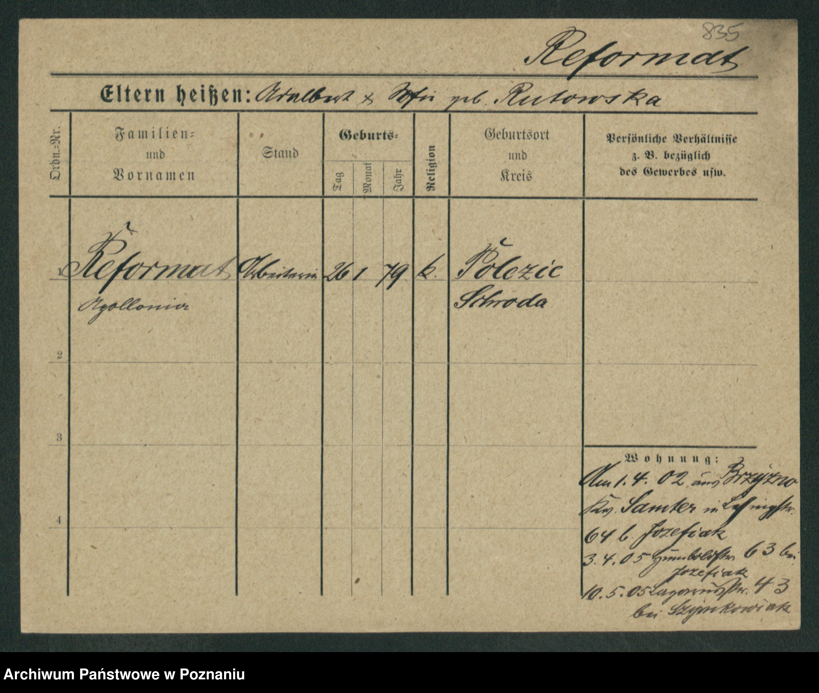 Podgląd karty osobowej dostępny jest po kliknięciu na nazwisko lub ikonkę karty. Można dokonywać powiększenia (ikony na górze) lub przechodzić między kolejnymi skanami (strzałki po bokach).