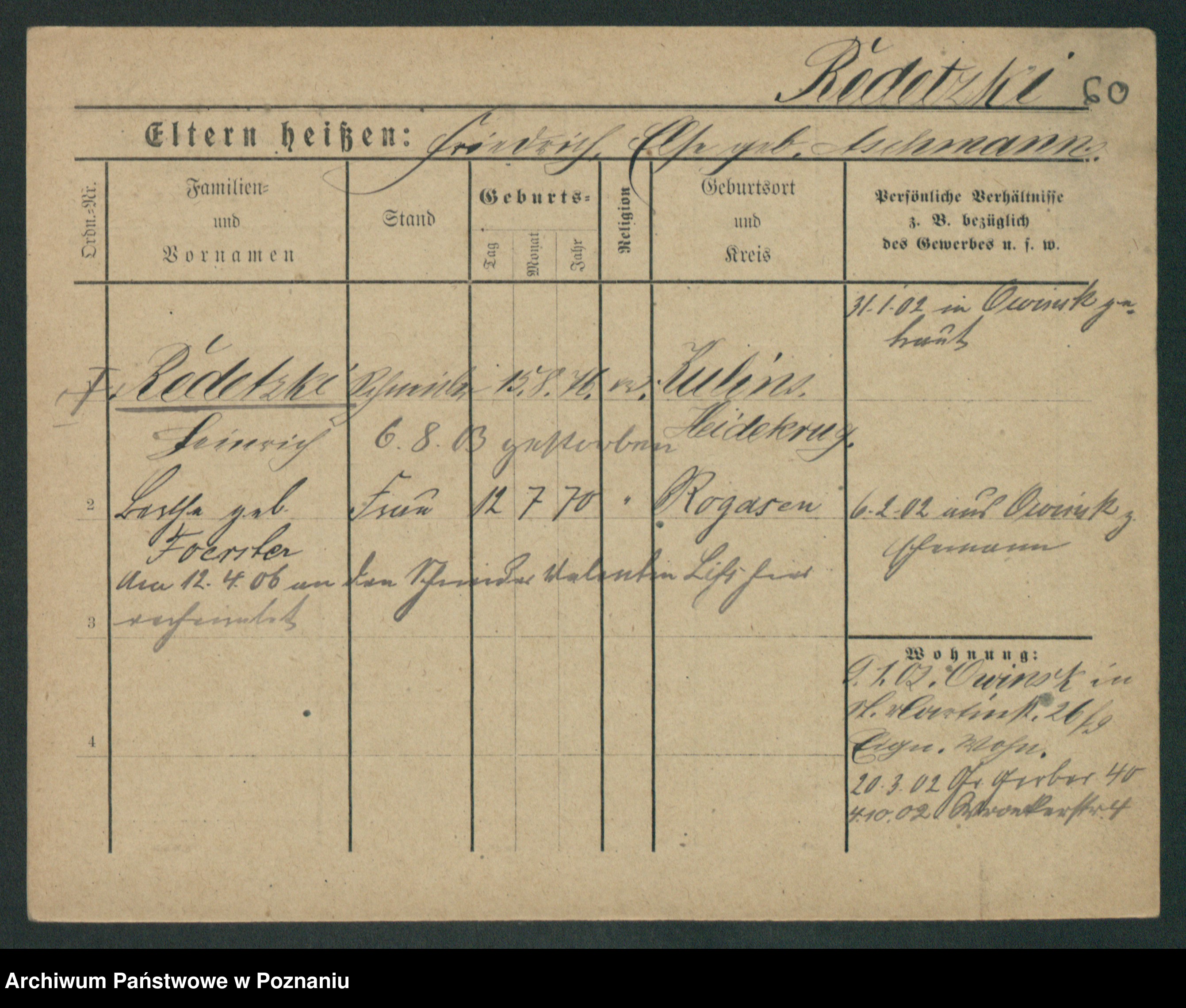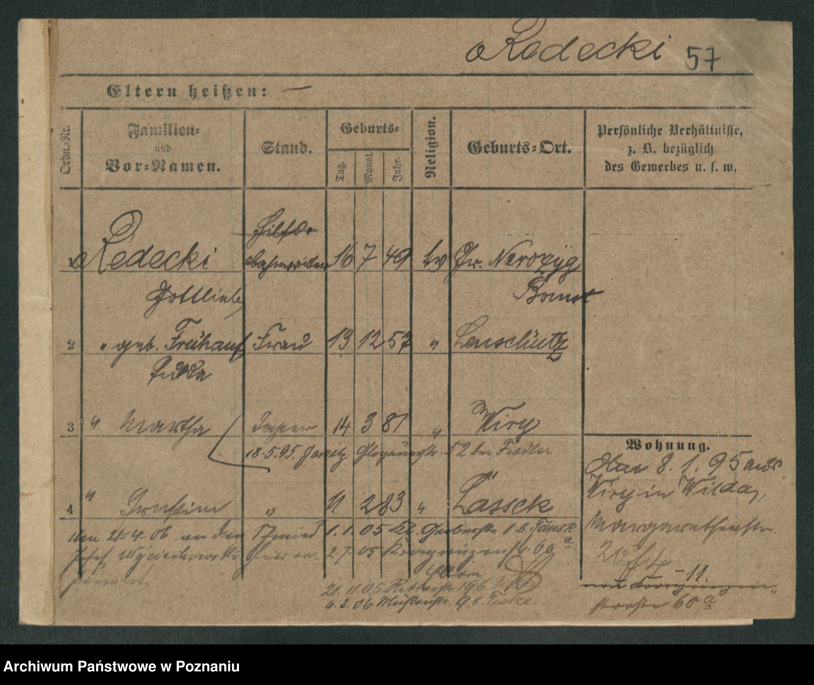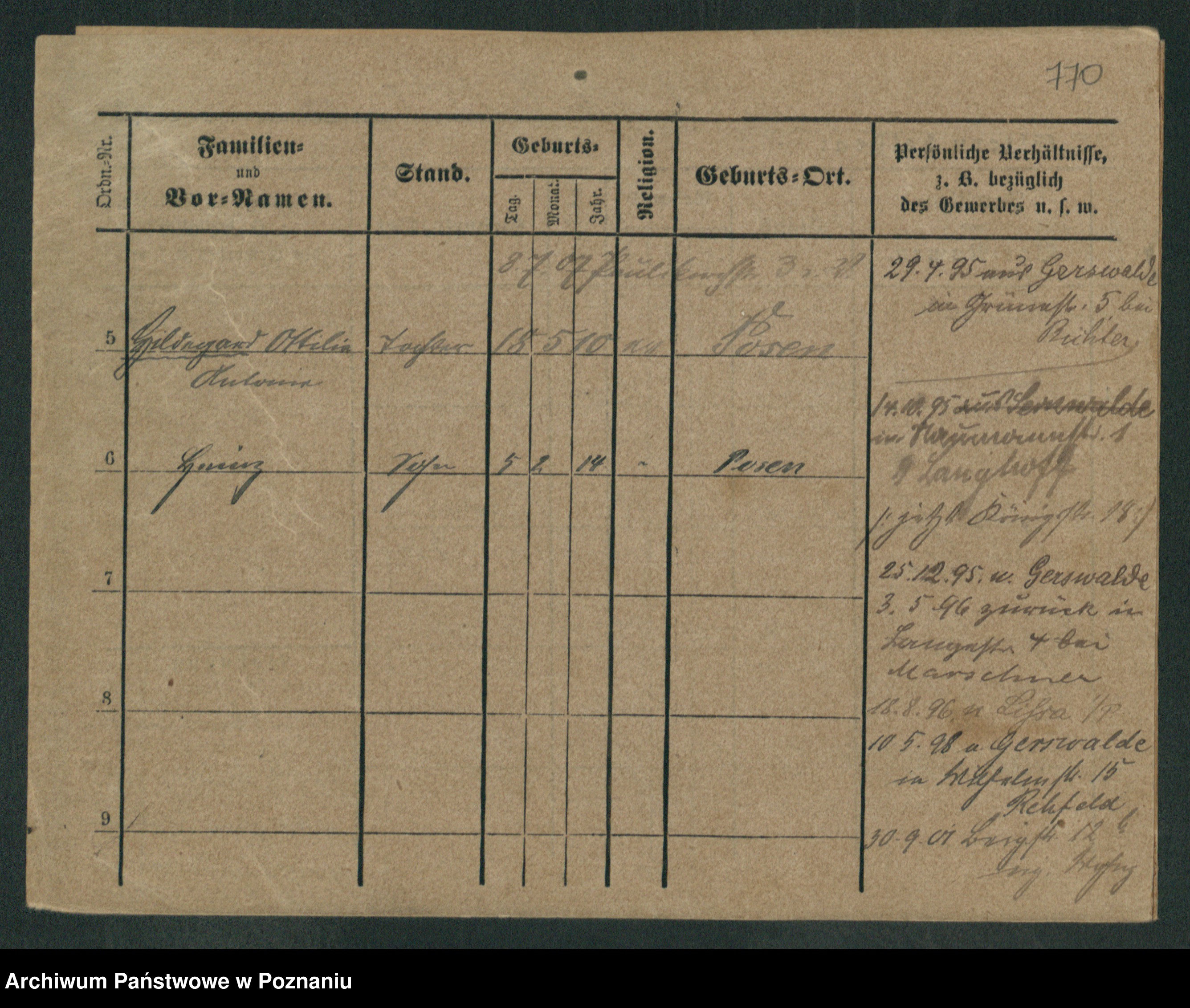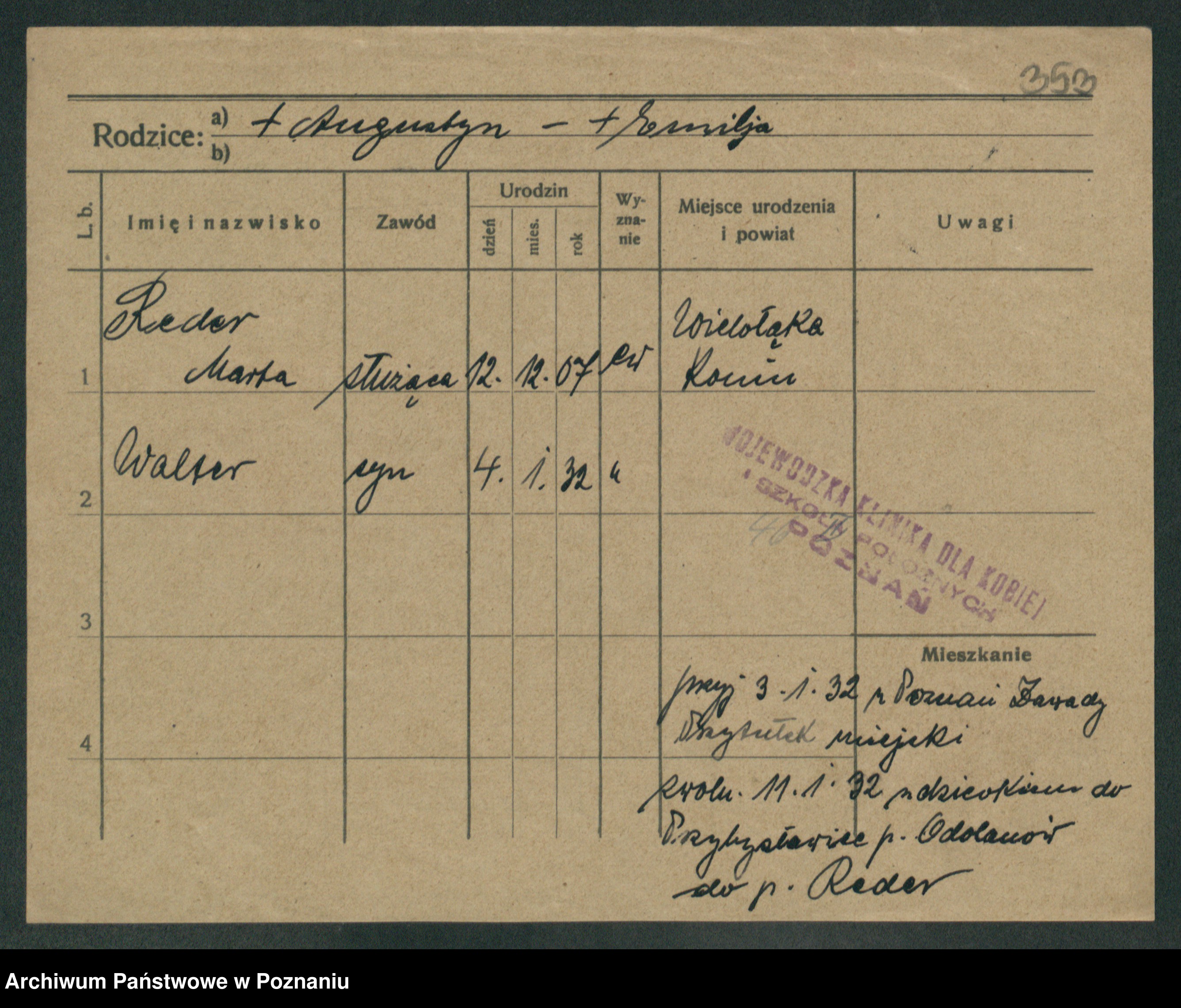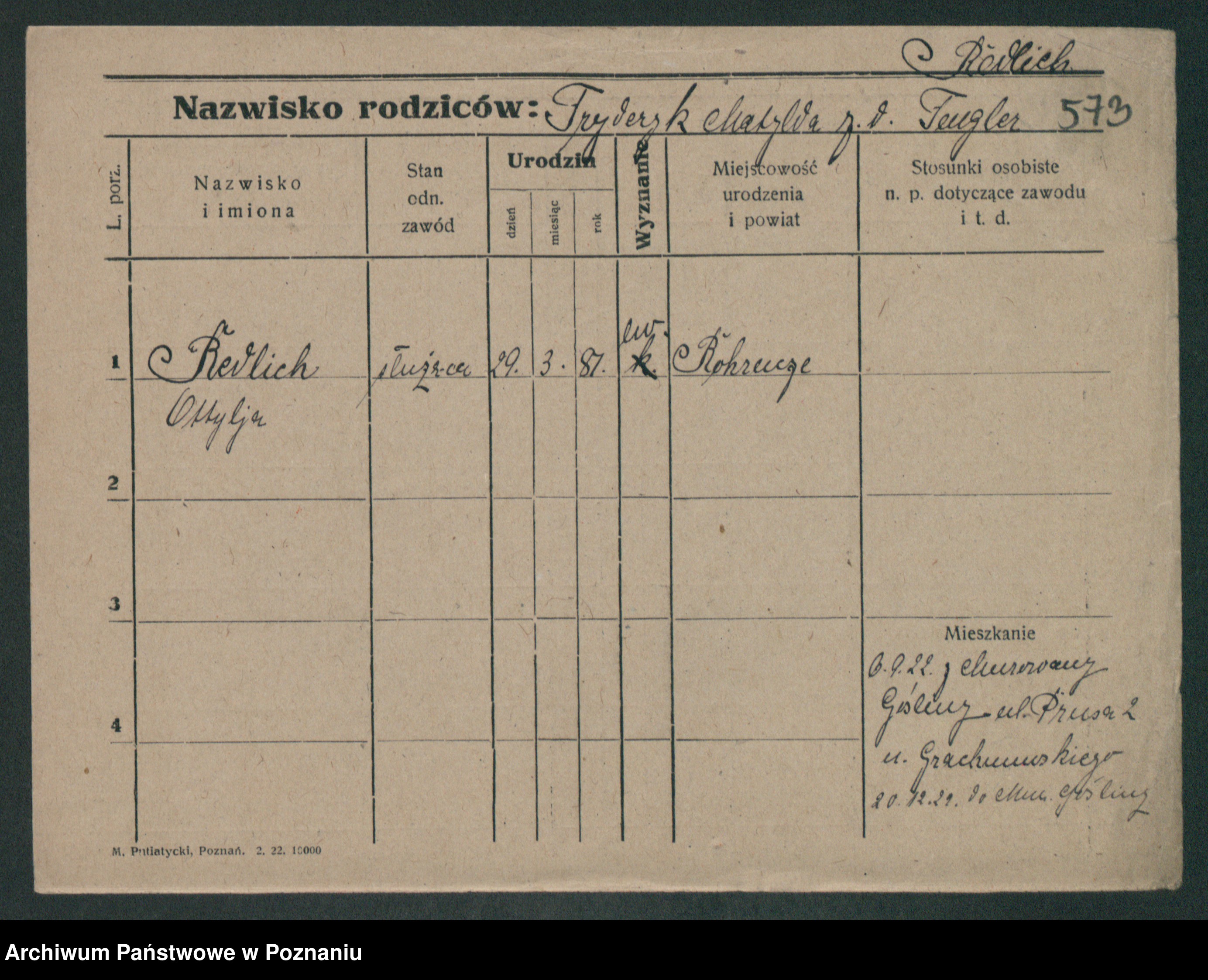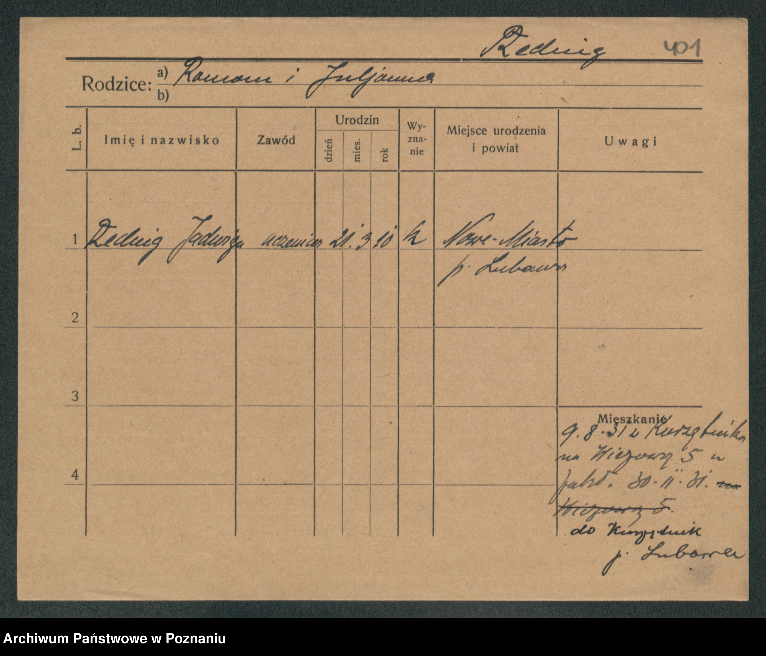 Podgląd karty osobowej dostępny jest po kliknięciu na nazwisko lub ikonkę karty. Można dokonywać powiększenia (ikony na górze) lub przechodzić między kolejnymi skanami (strzałki po bokach).