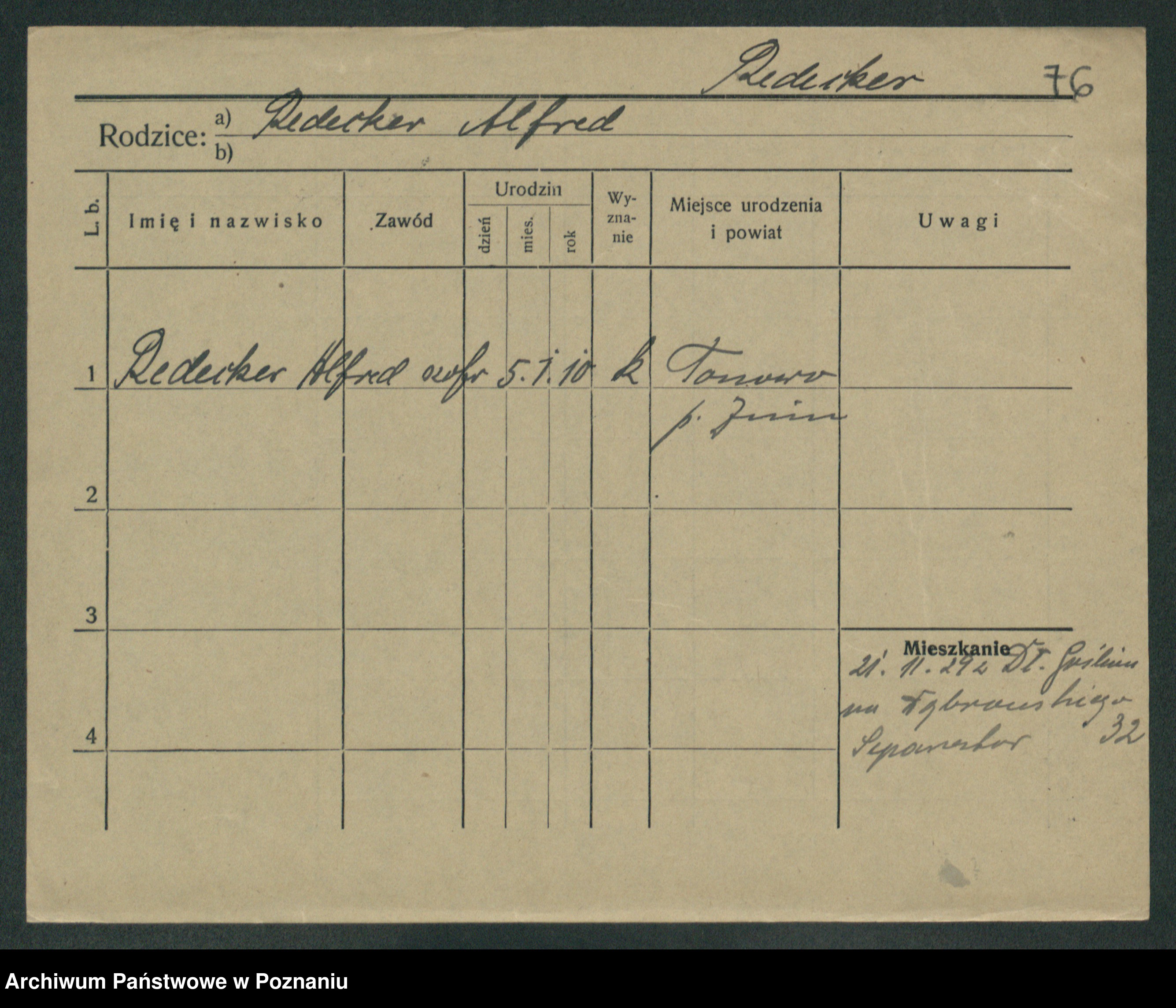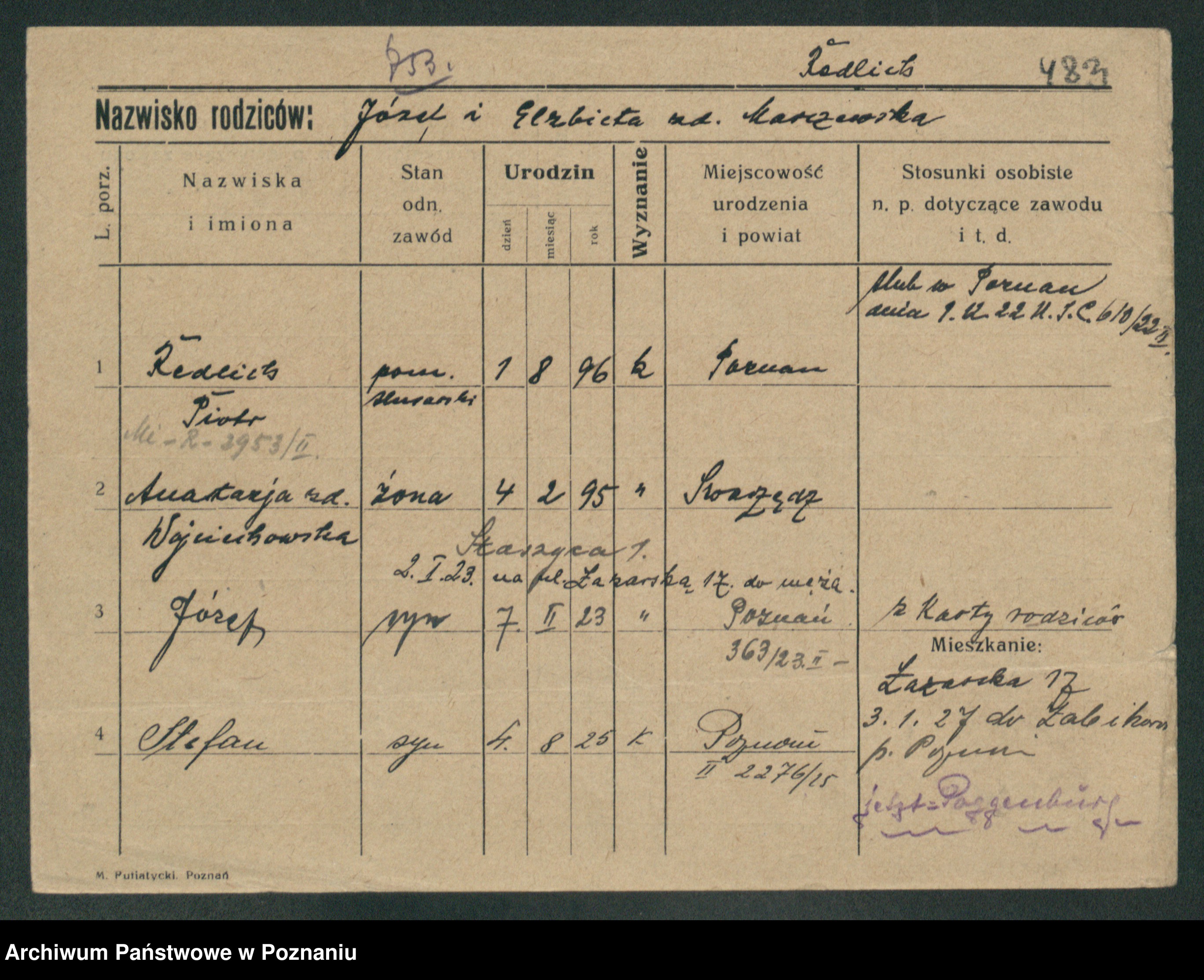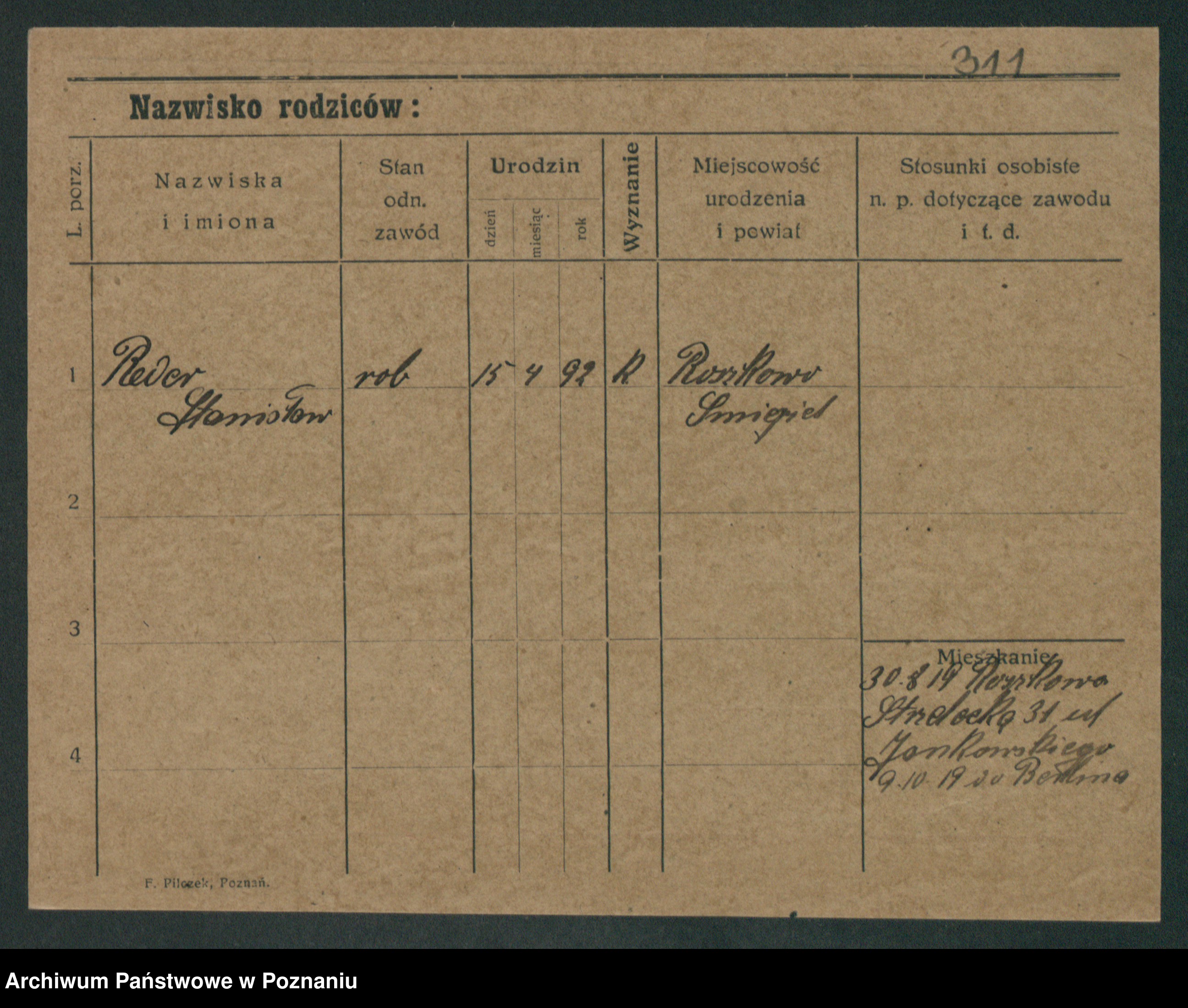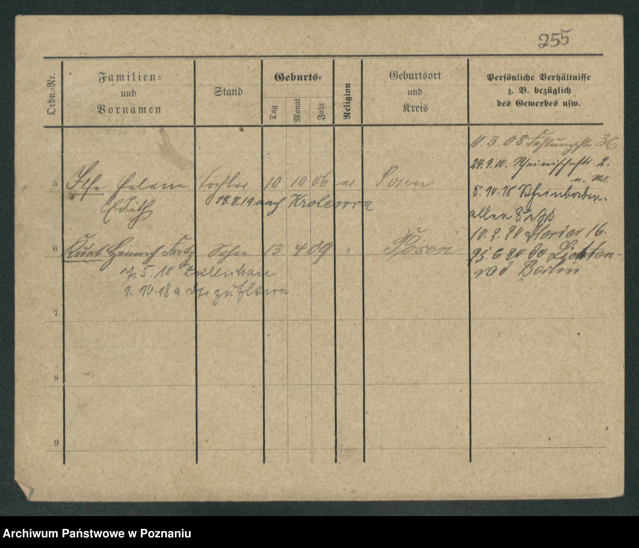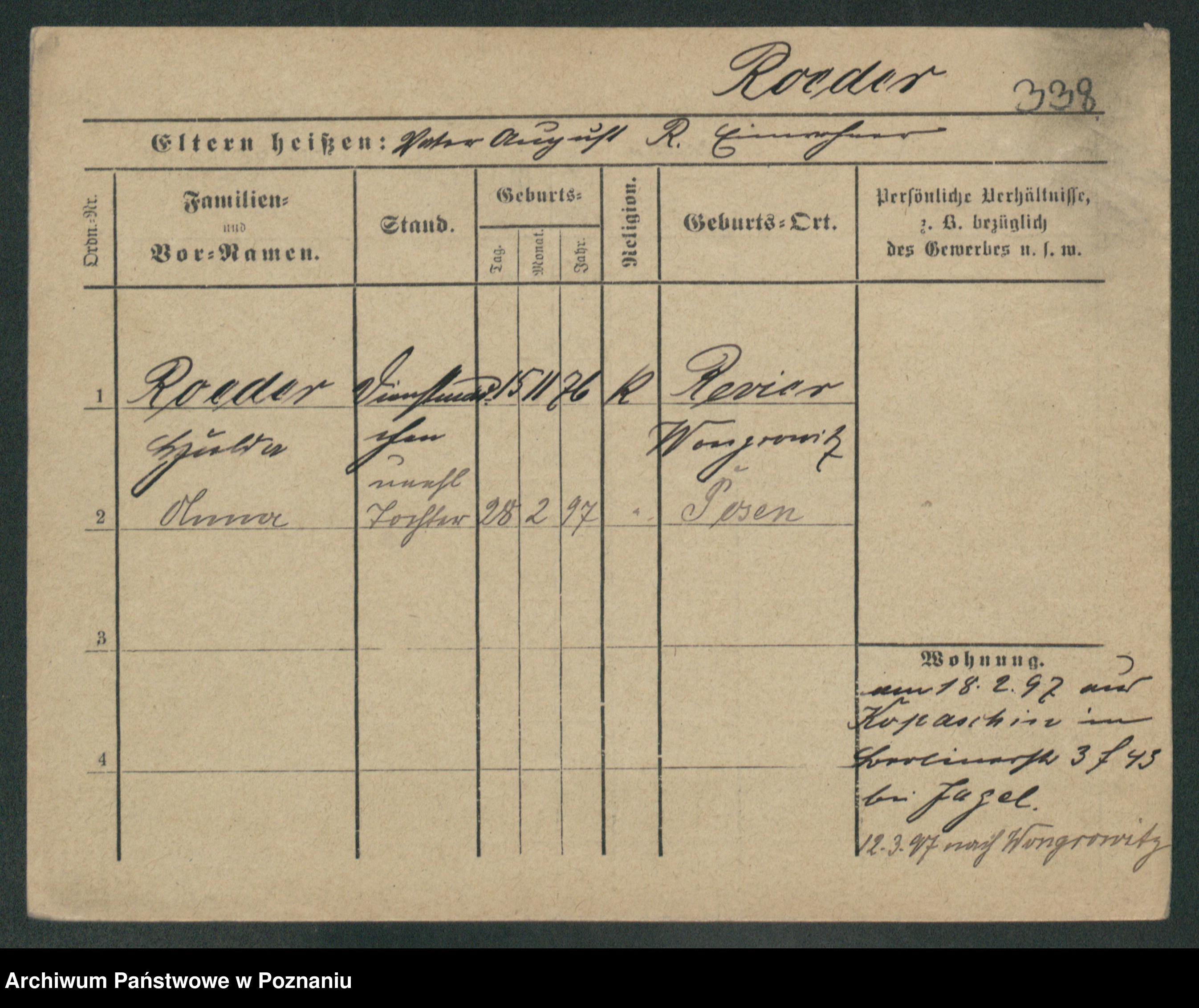 Podgląd karty osobowej dostępny jest po kliknięciu na nazwisko lub ikonkę karty. Można dokonywać powiększenia (ikony na górze) lub przechodzić między kolejnymi skanami (strzałki po bokach).