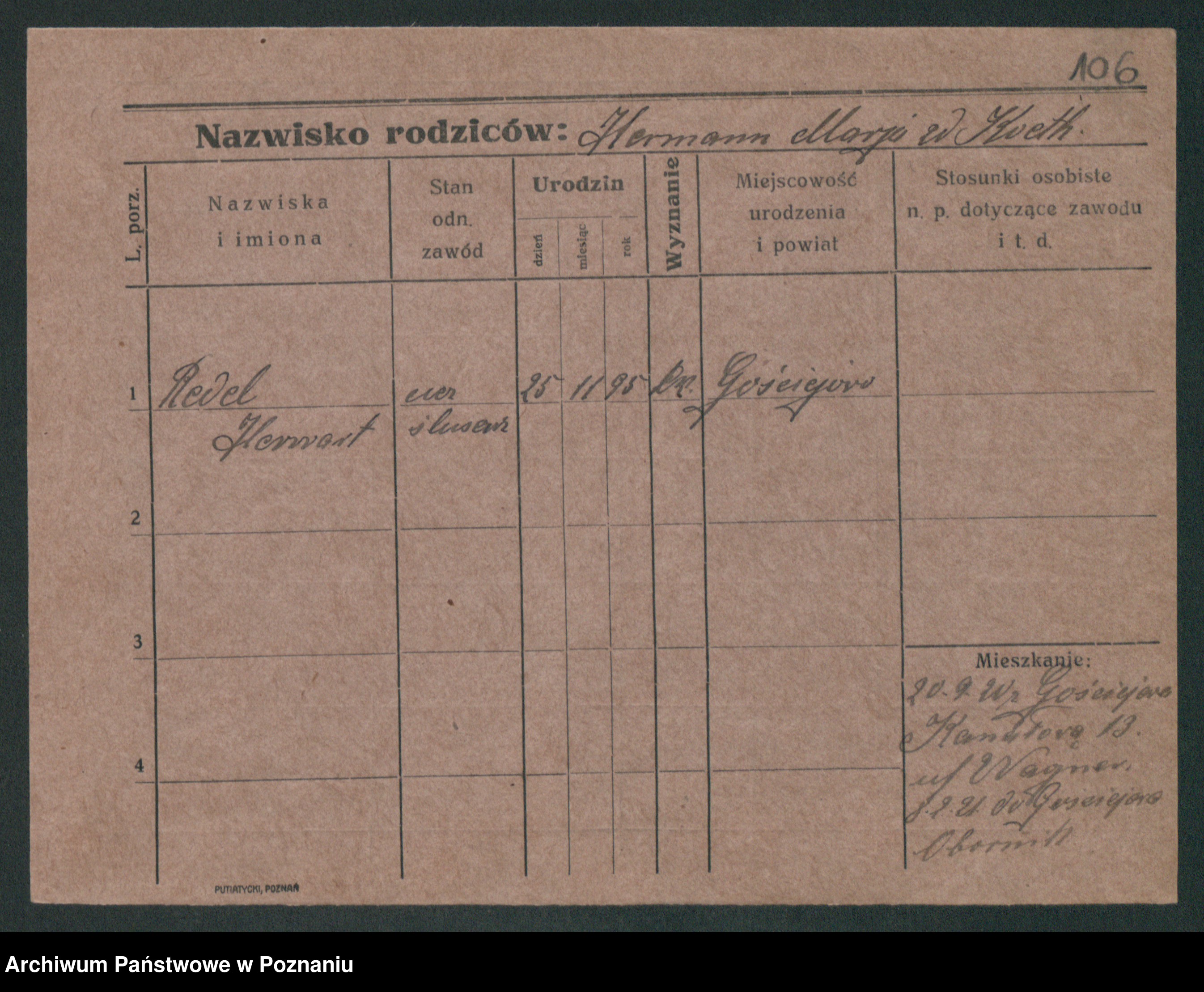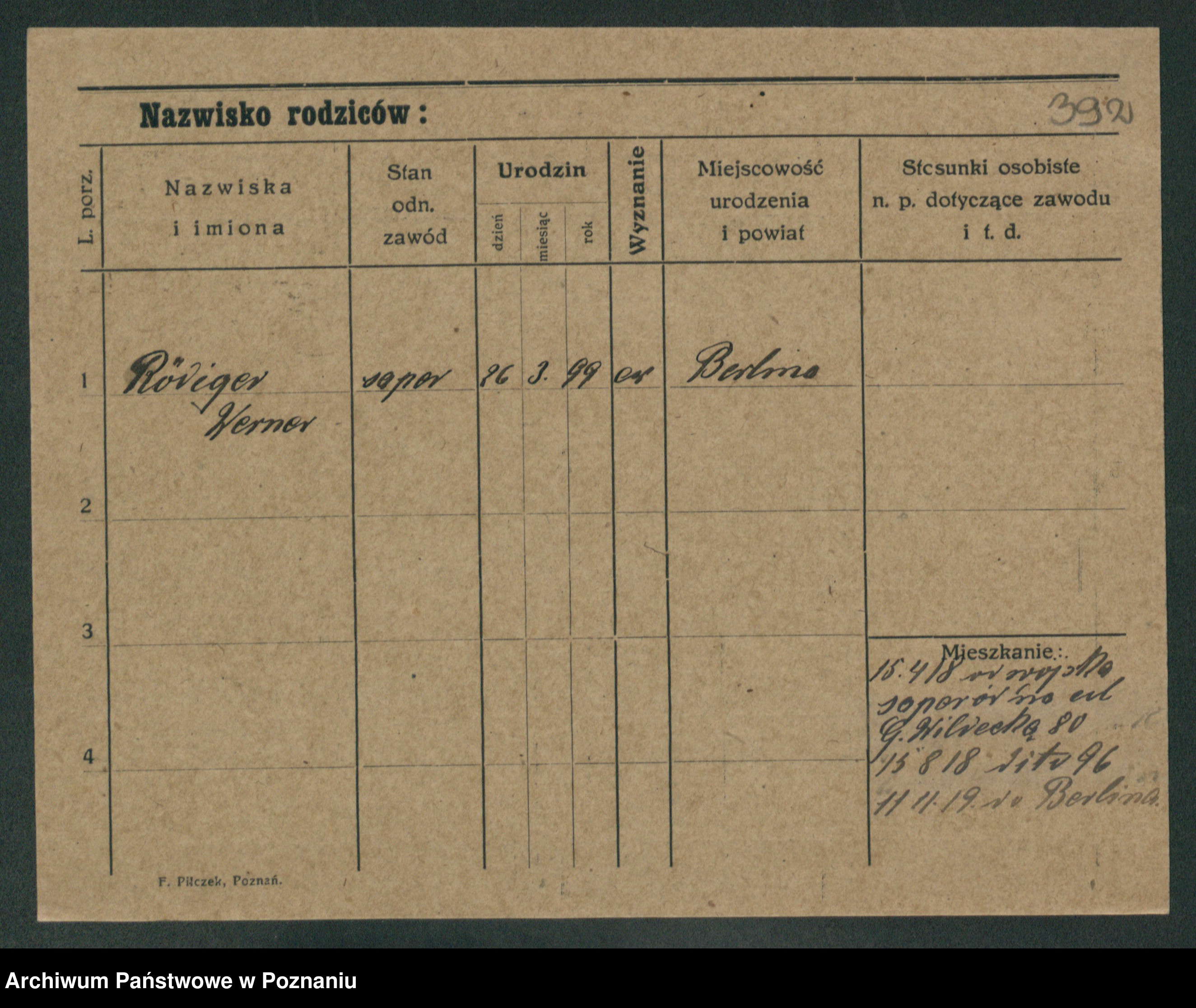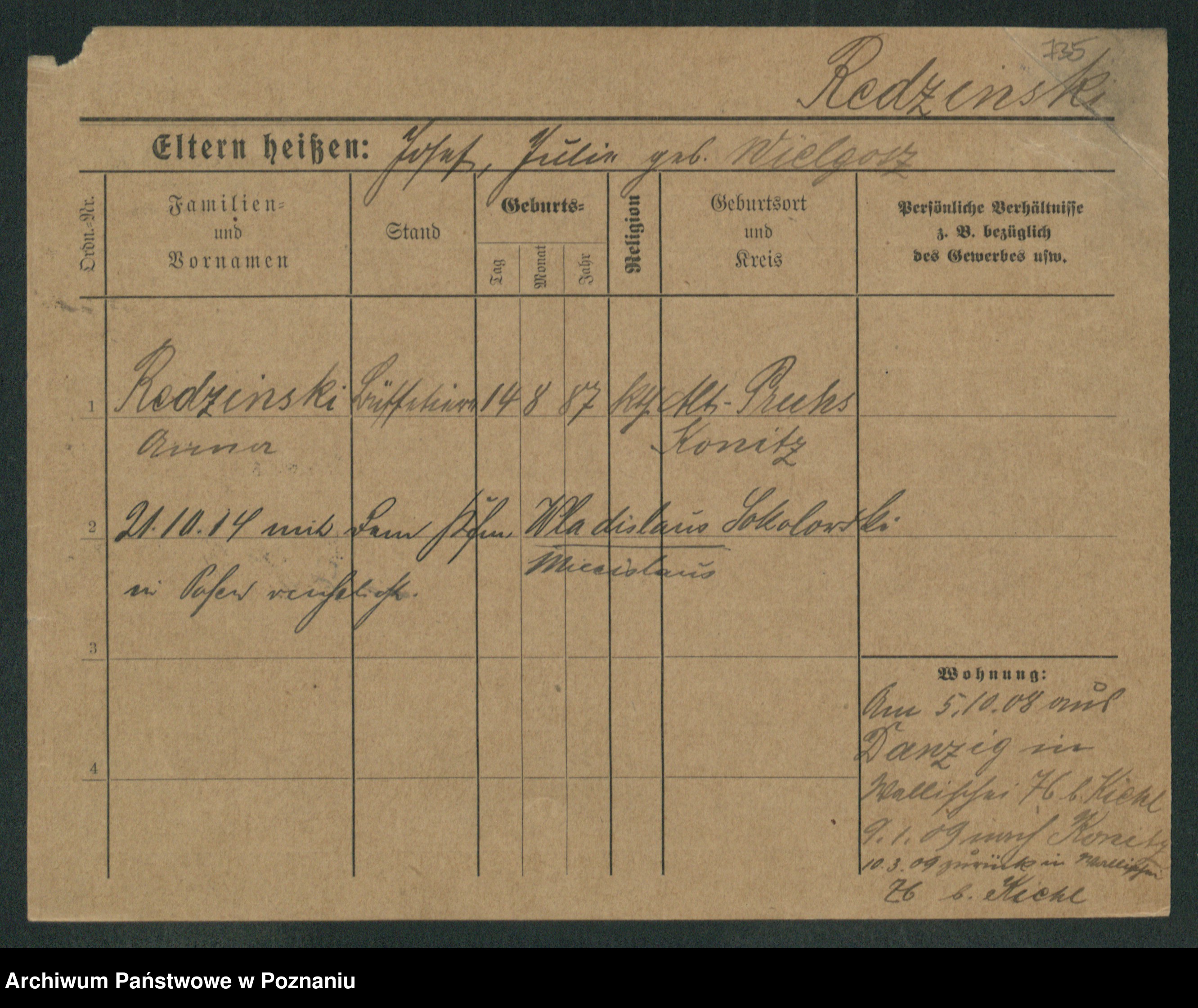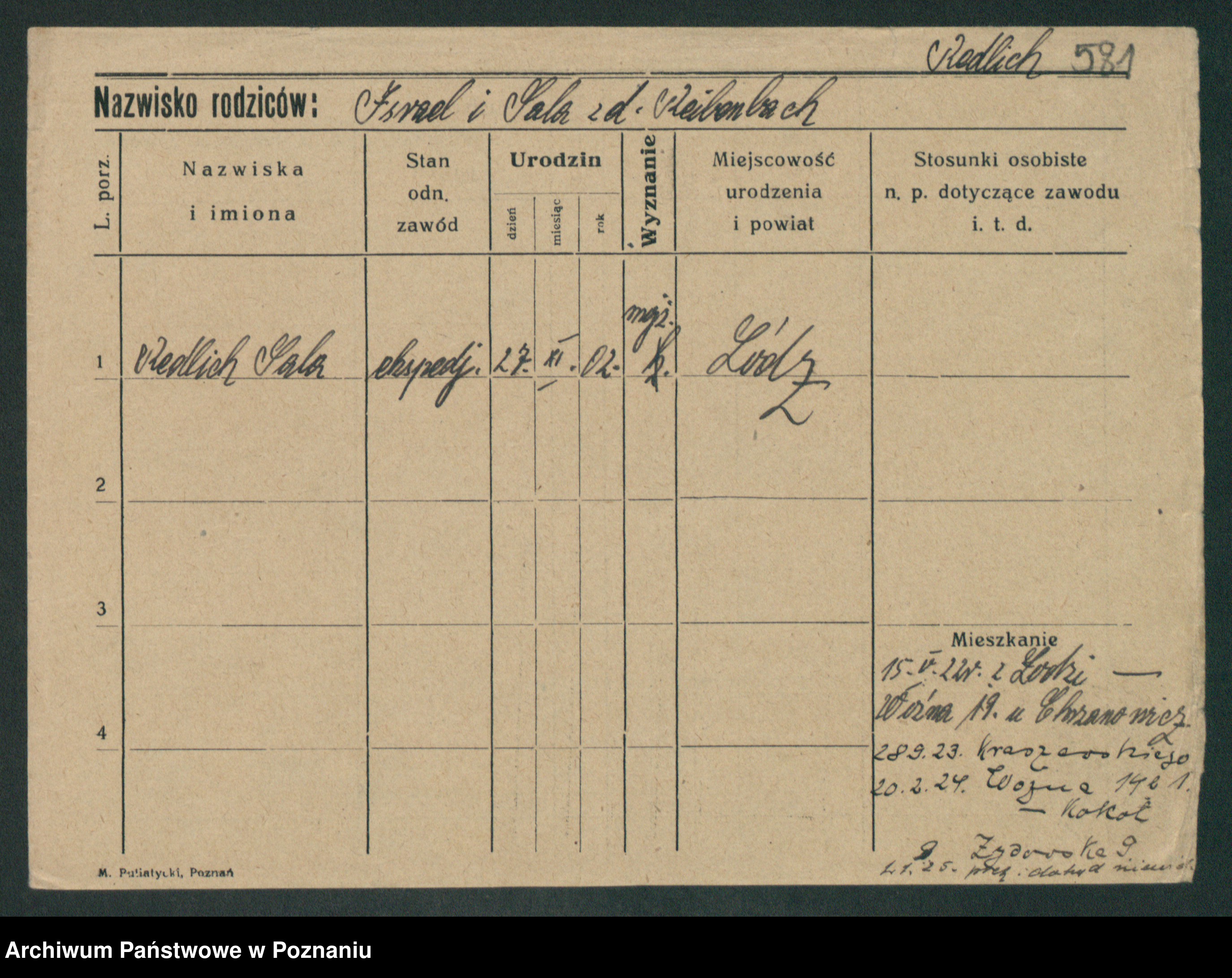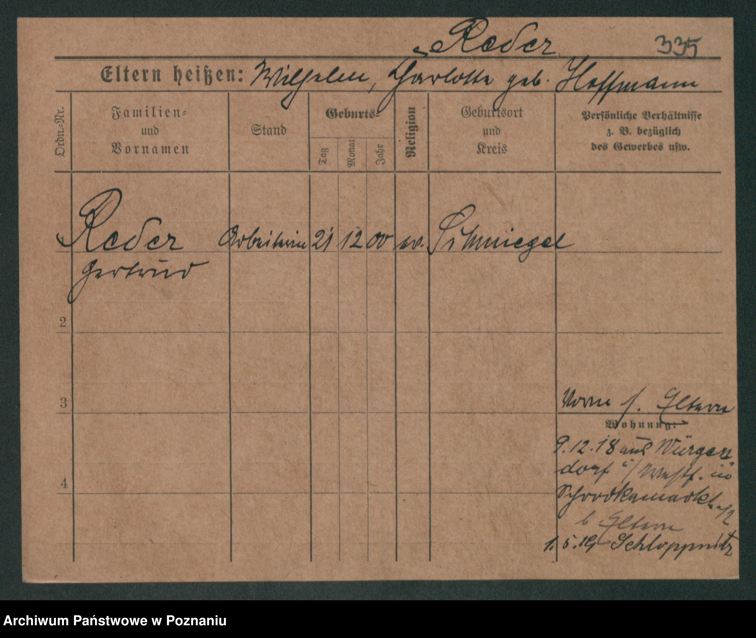 Podgląd karty osobowej dostępny jest po kliknięciu na nazwisko lub ikonkę karty. Można dokonywać powiększenia (ikony na górze) lub przechodzić między kolejnymi skanami (strzałki po bokach).